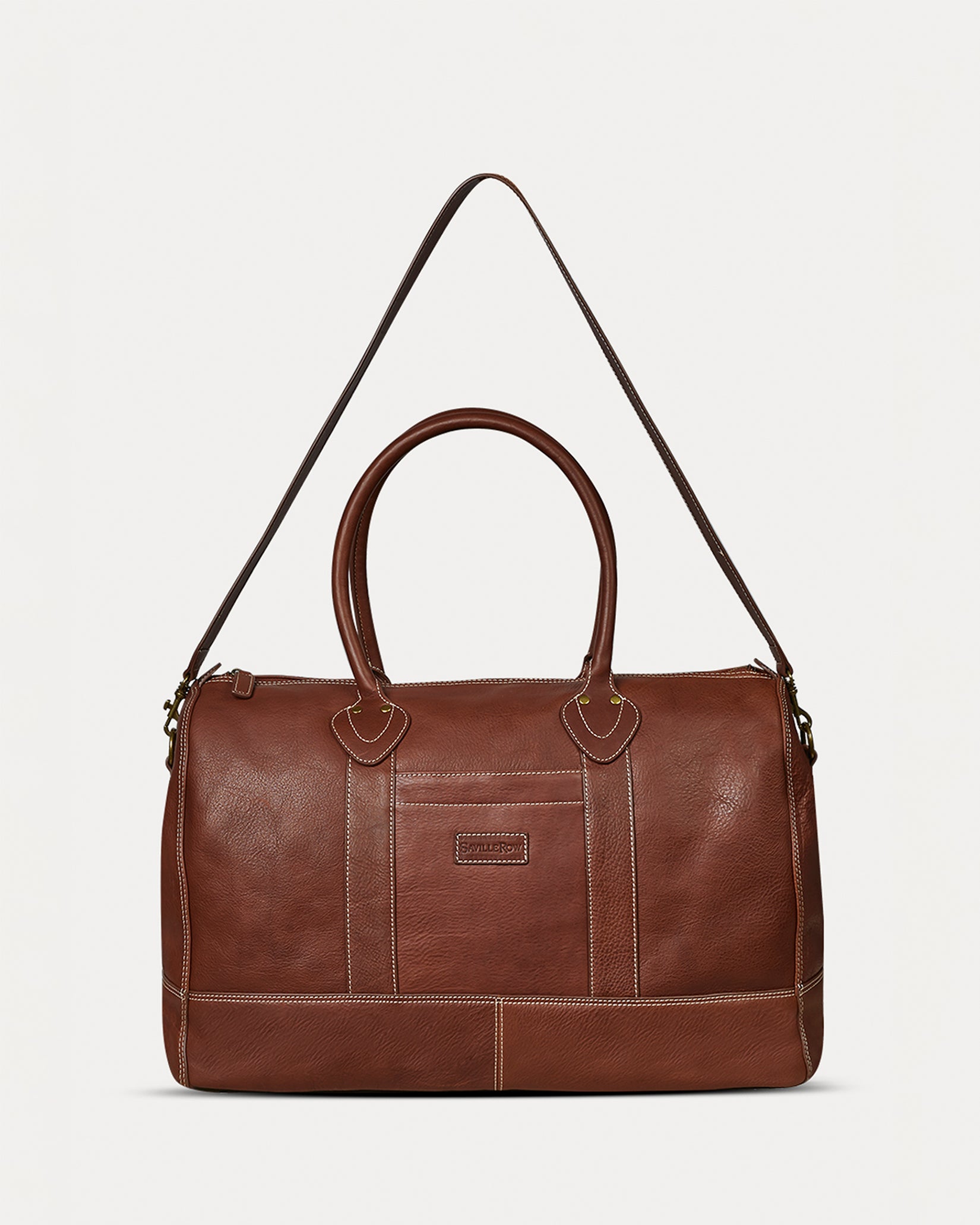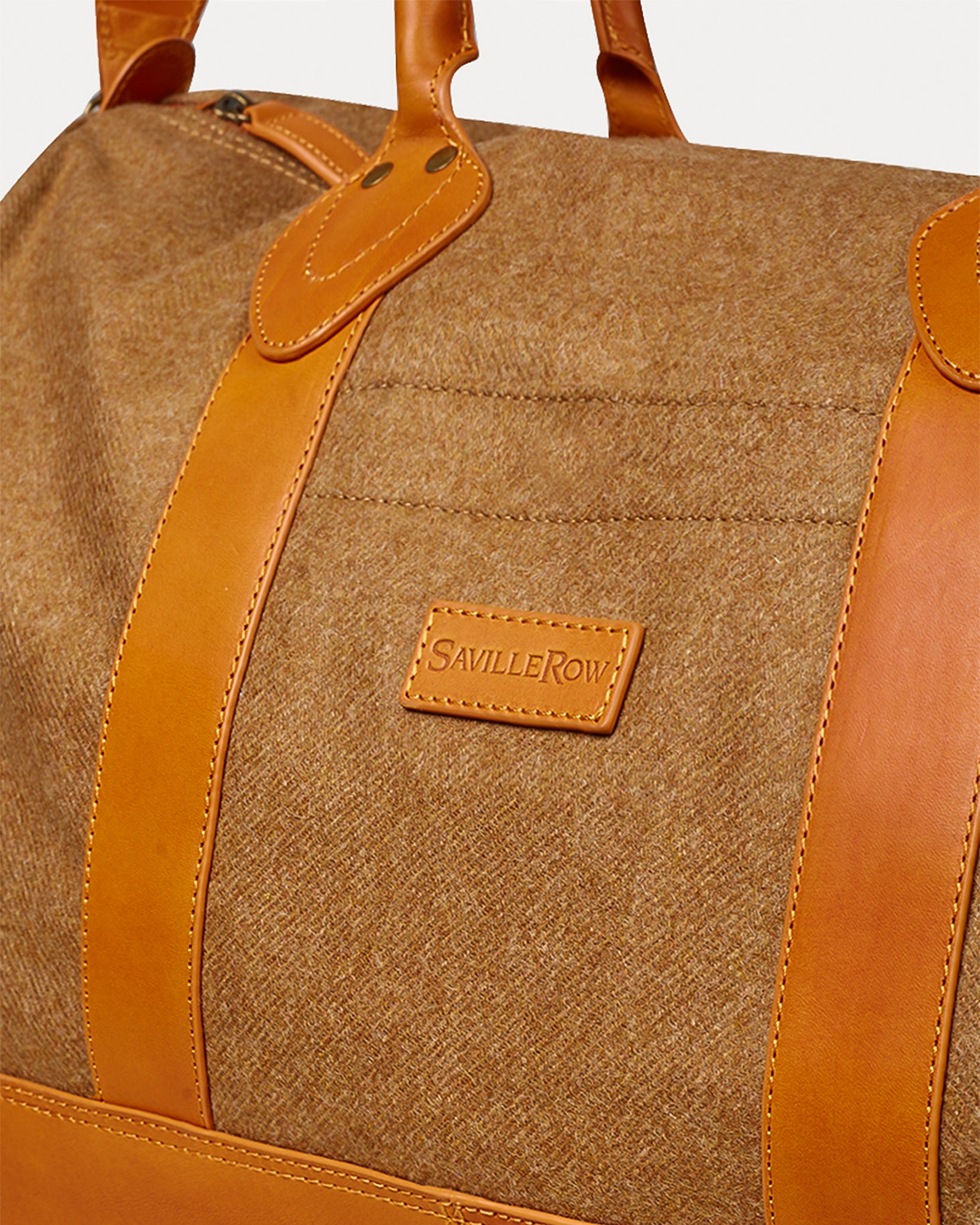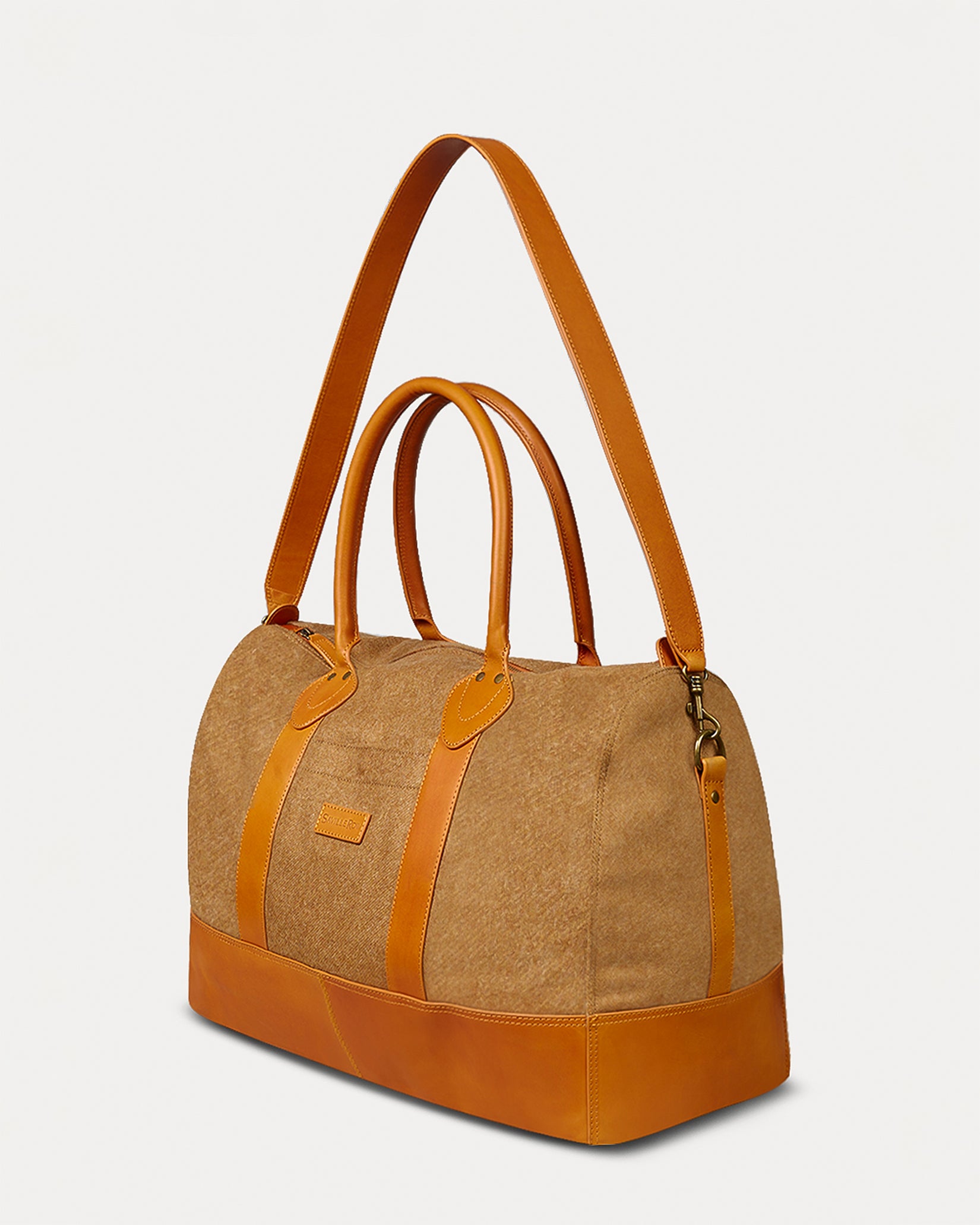 Bolso Traveller Cuero Combinado con Tela Tweed