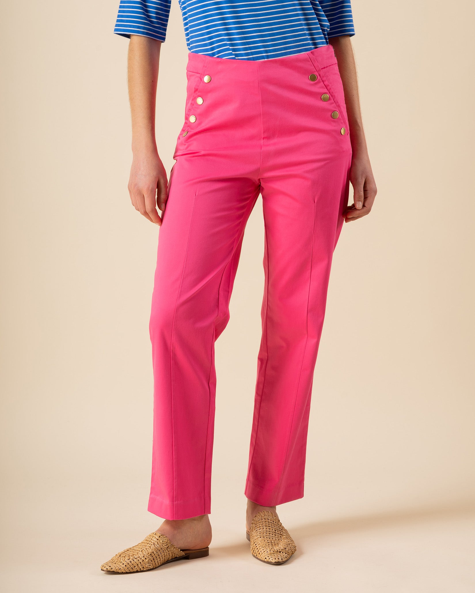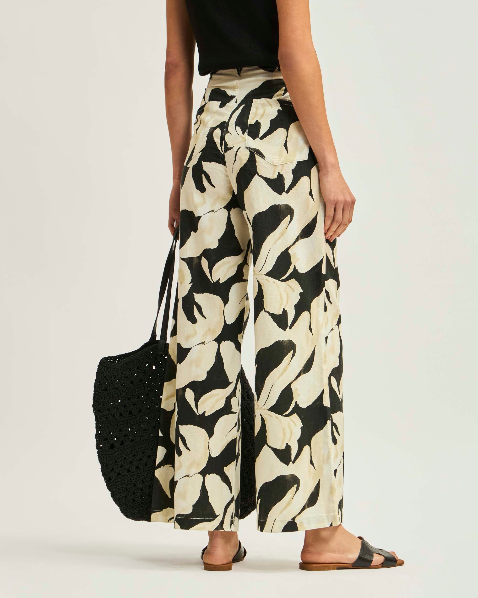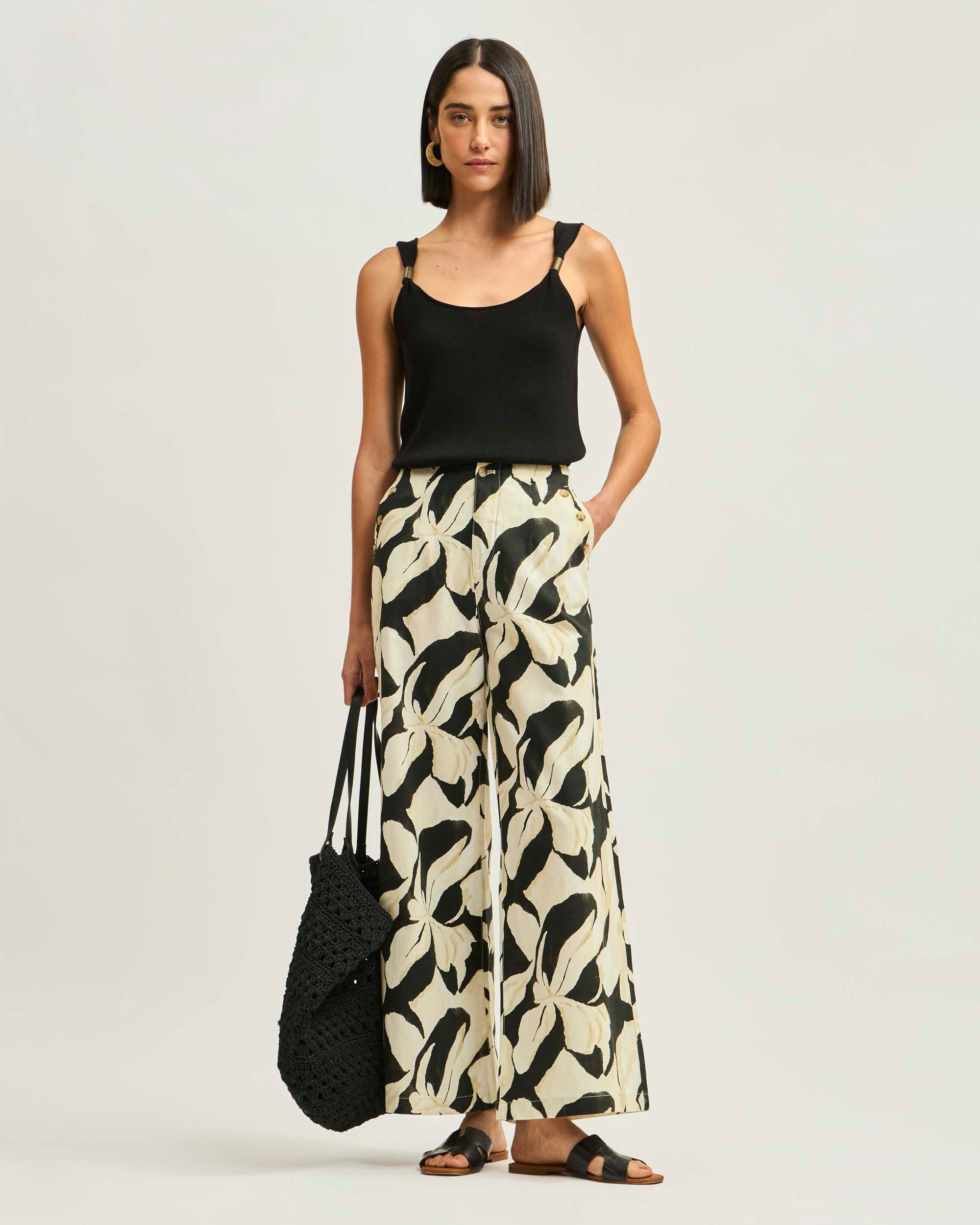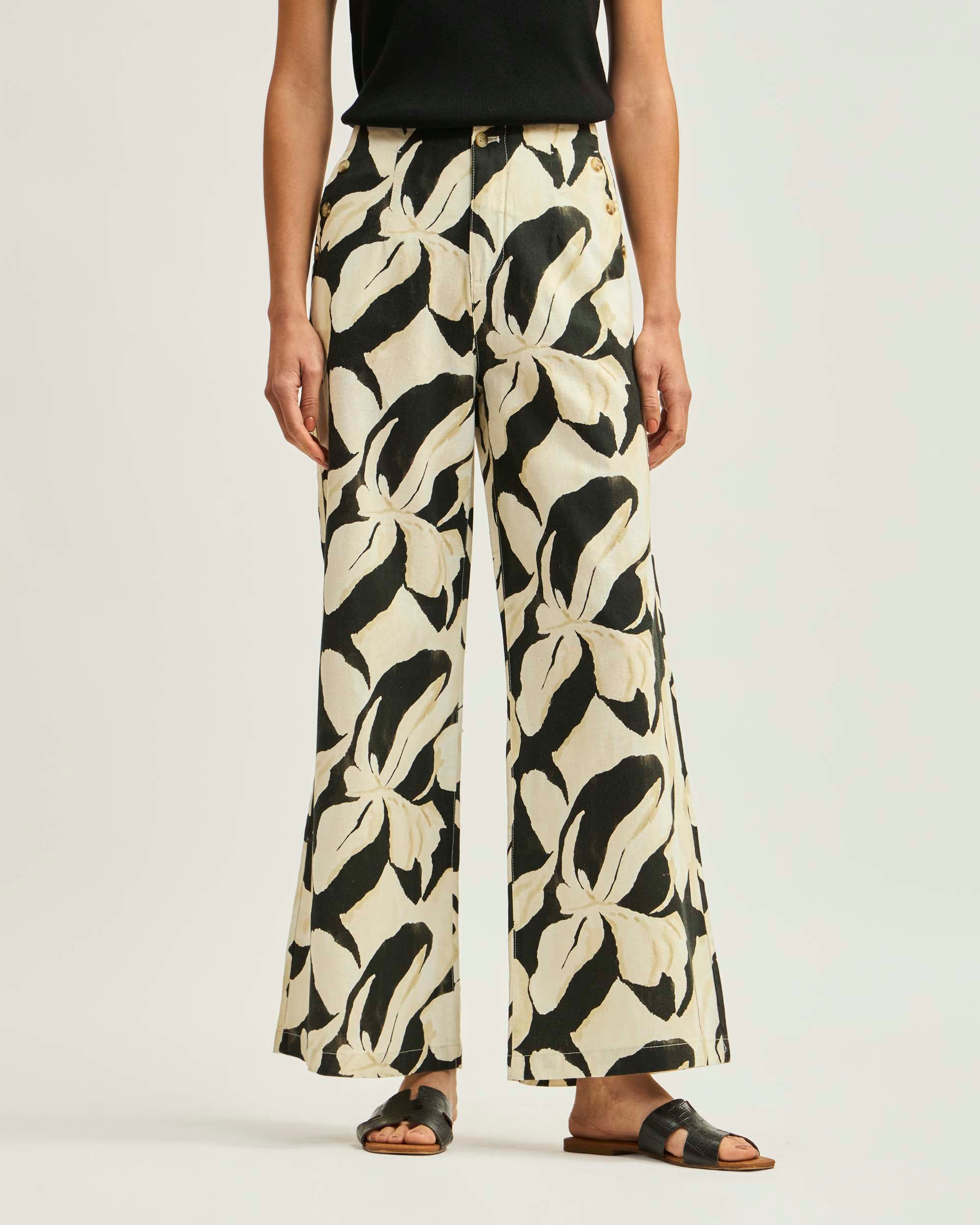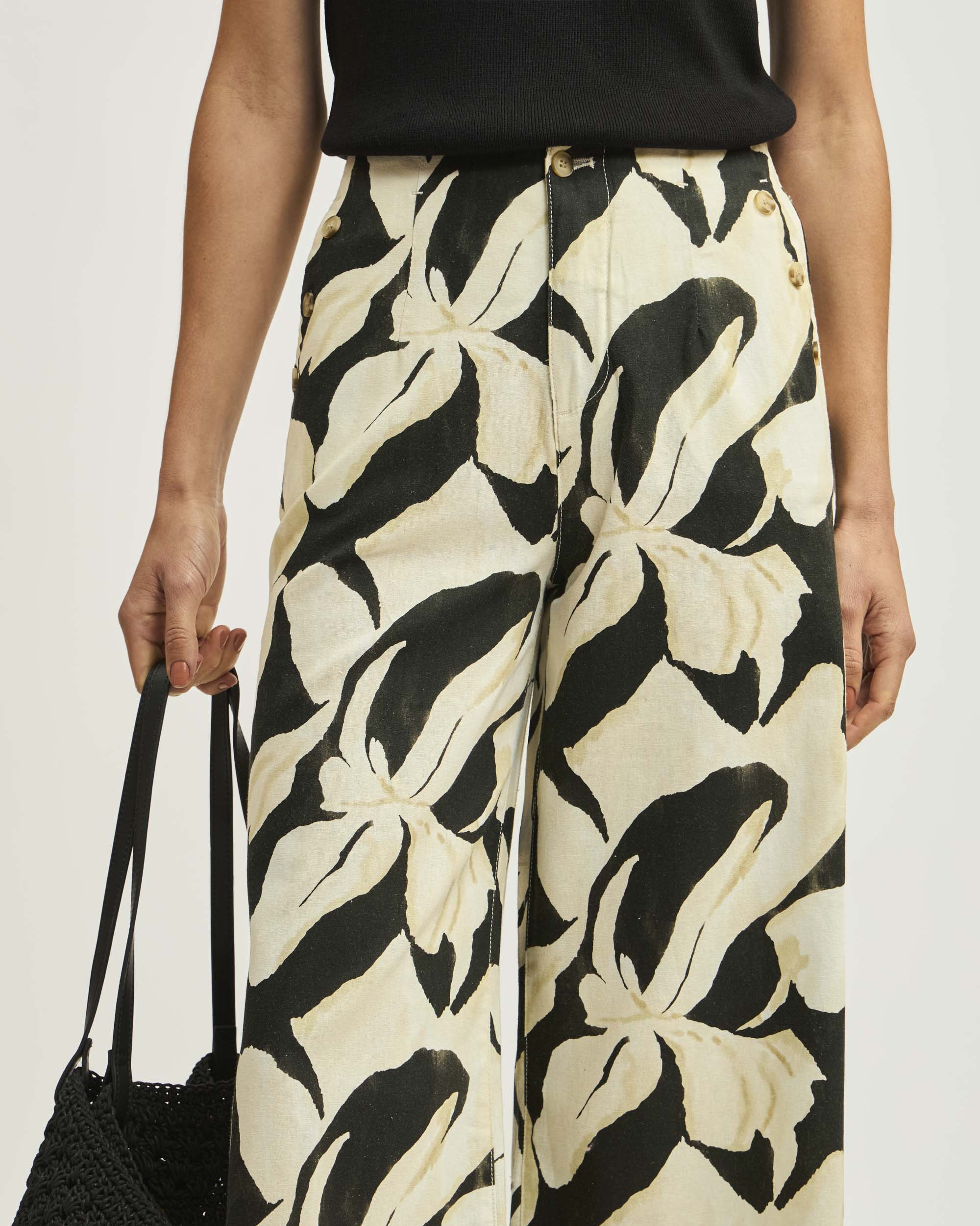 Pantalón Botones Lino Algodón Print Lum De Petal