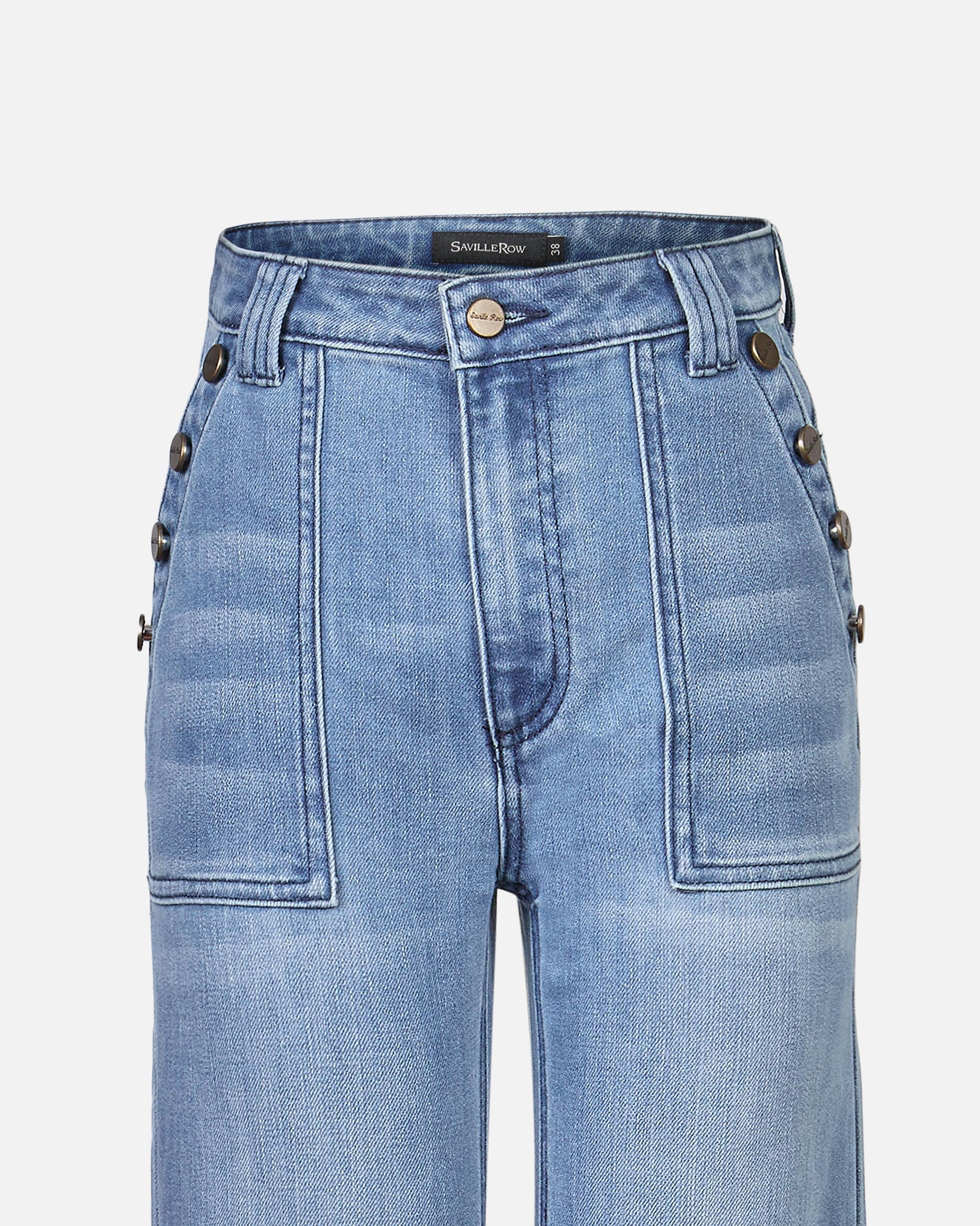 Jeans Tiro Alto Bota Ancha Botones