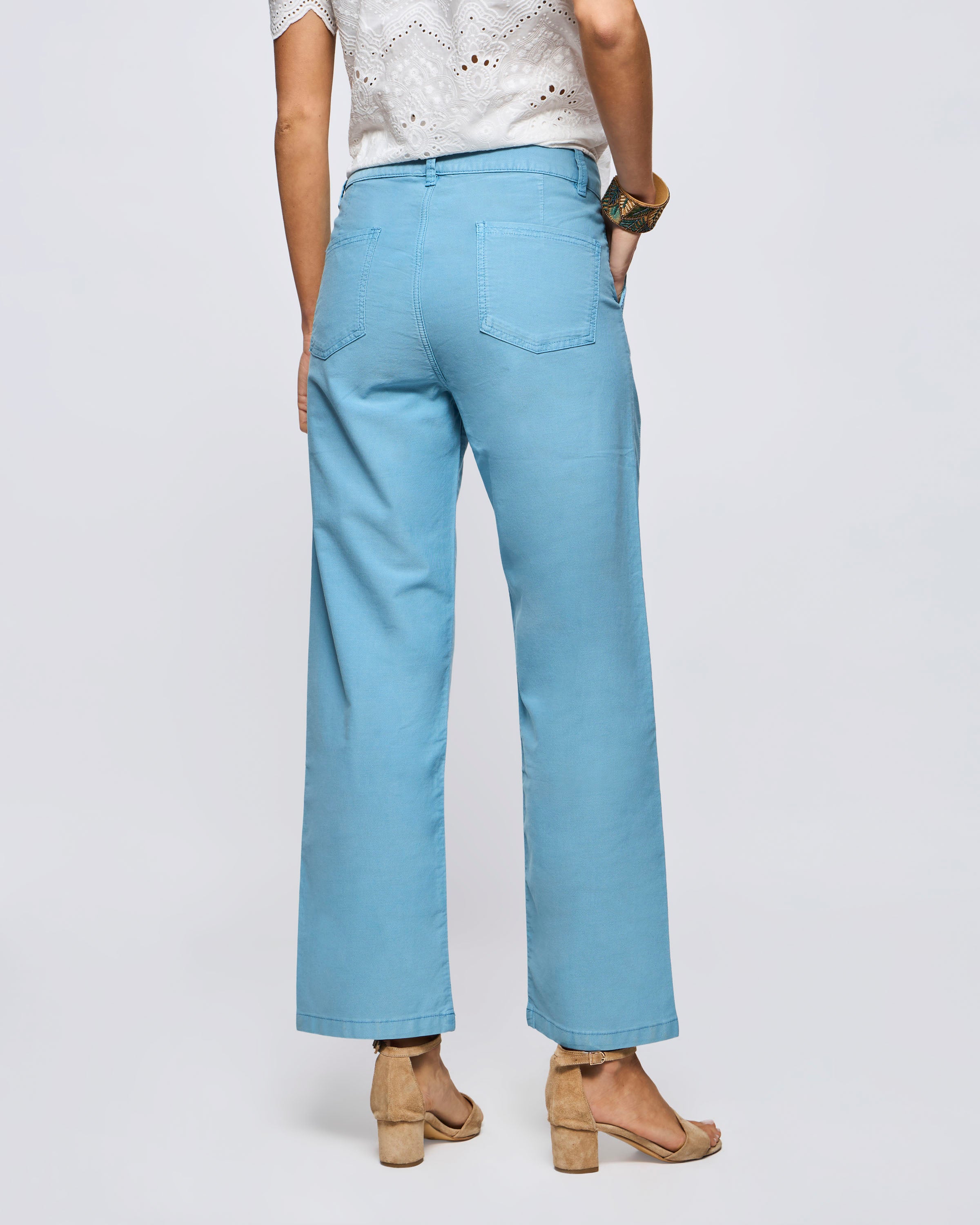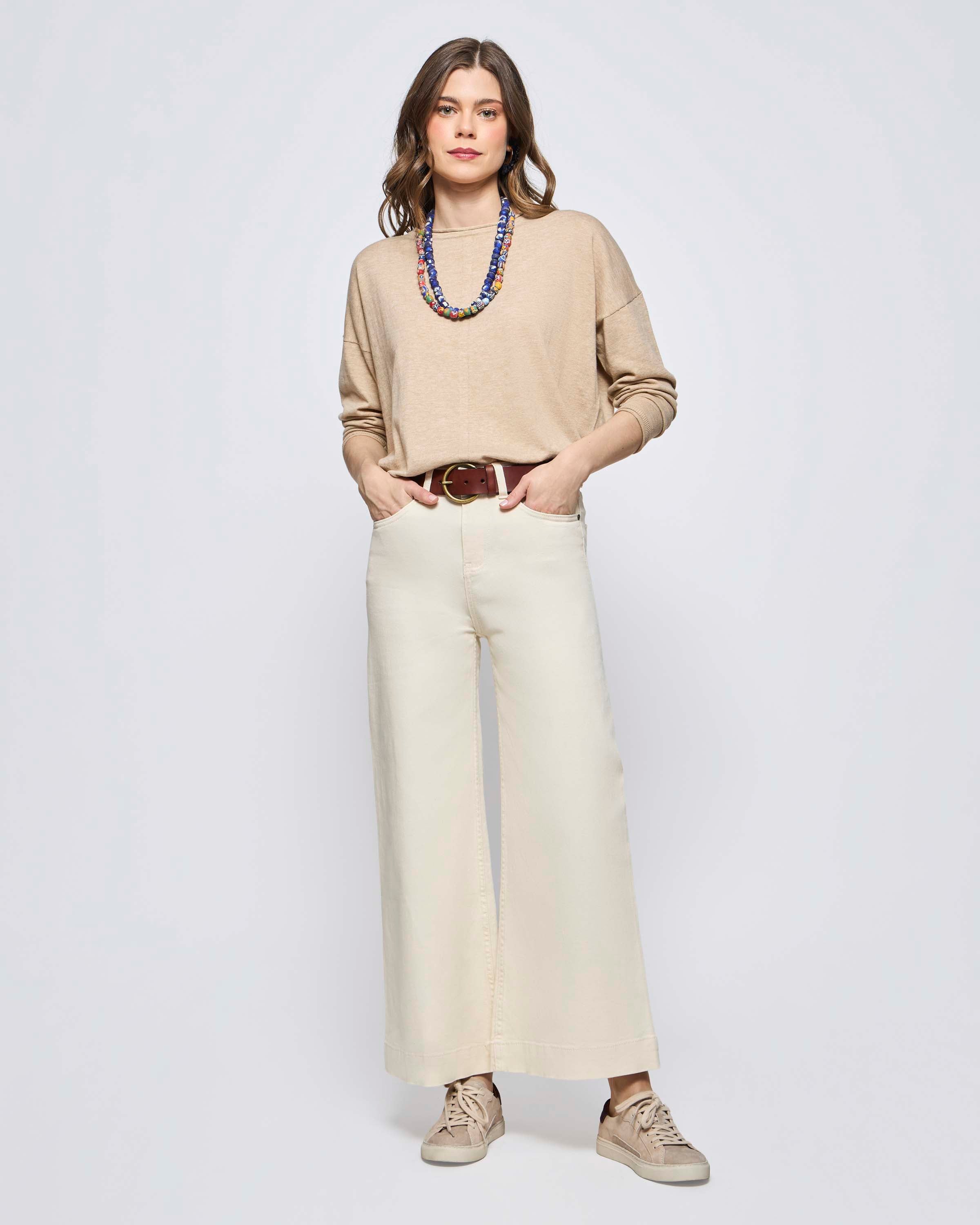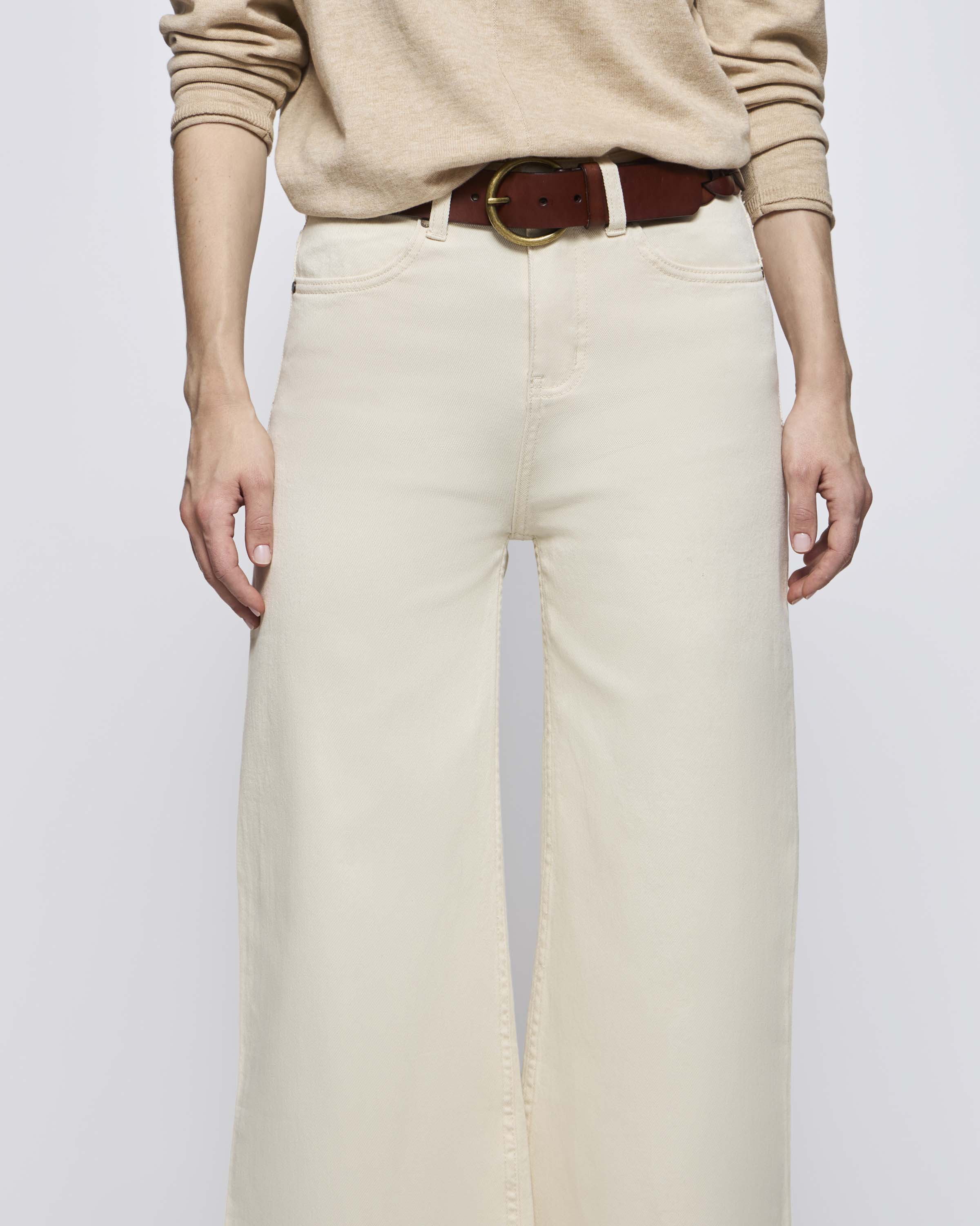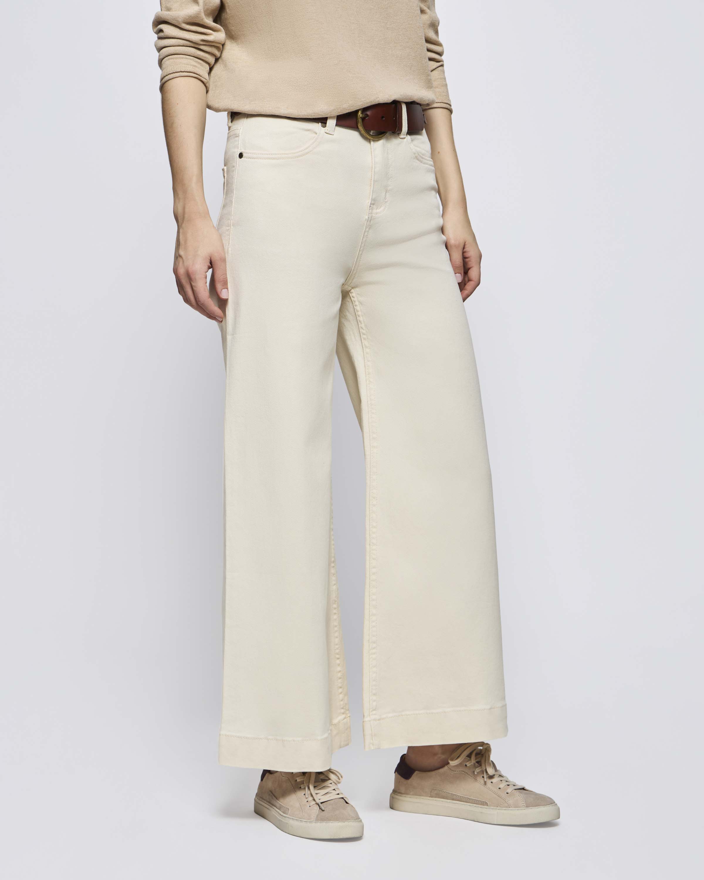 Jeans Tiro Alto Ancho Algodón Lino