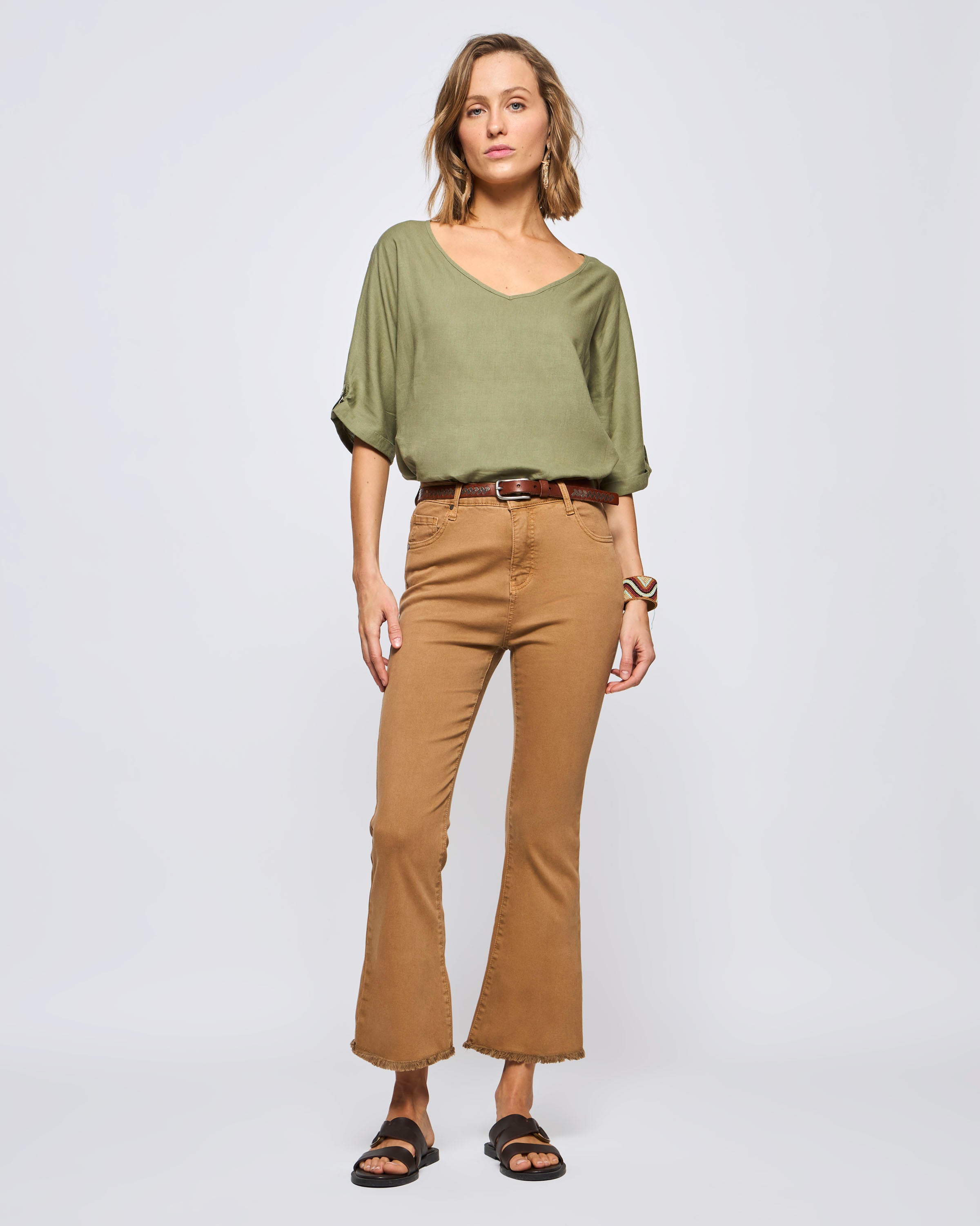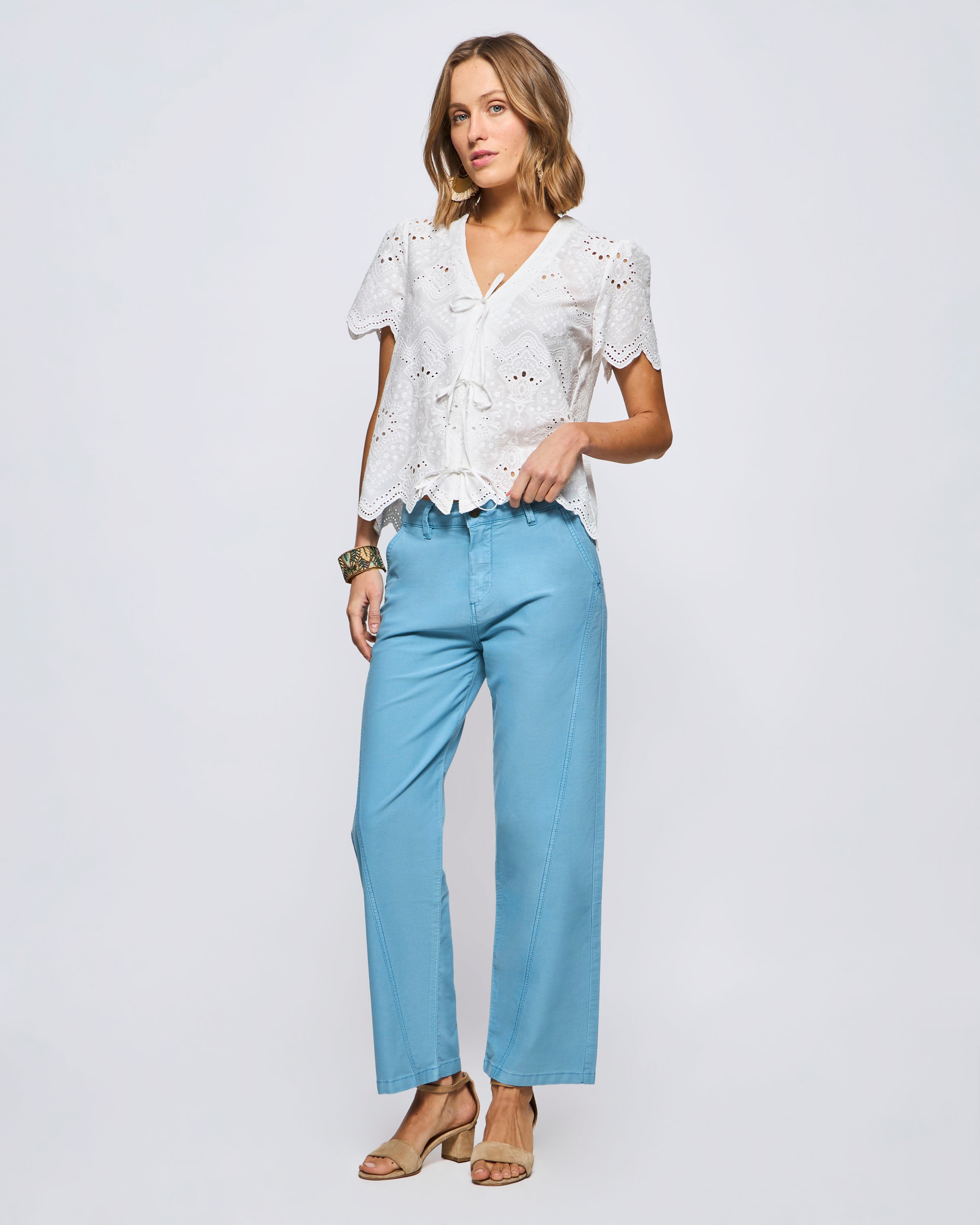 Pantalón Seychelles Tiro Alto Bota Ajustada Botones