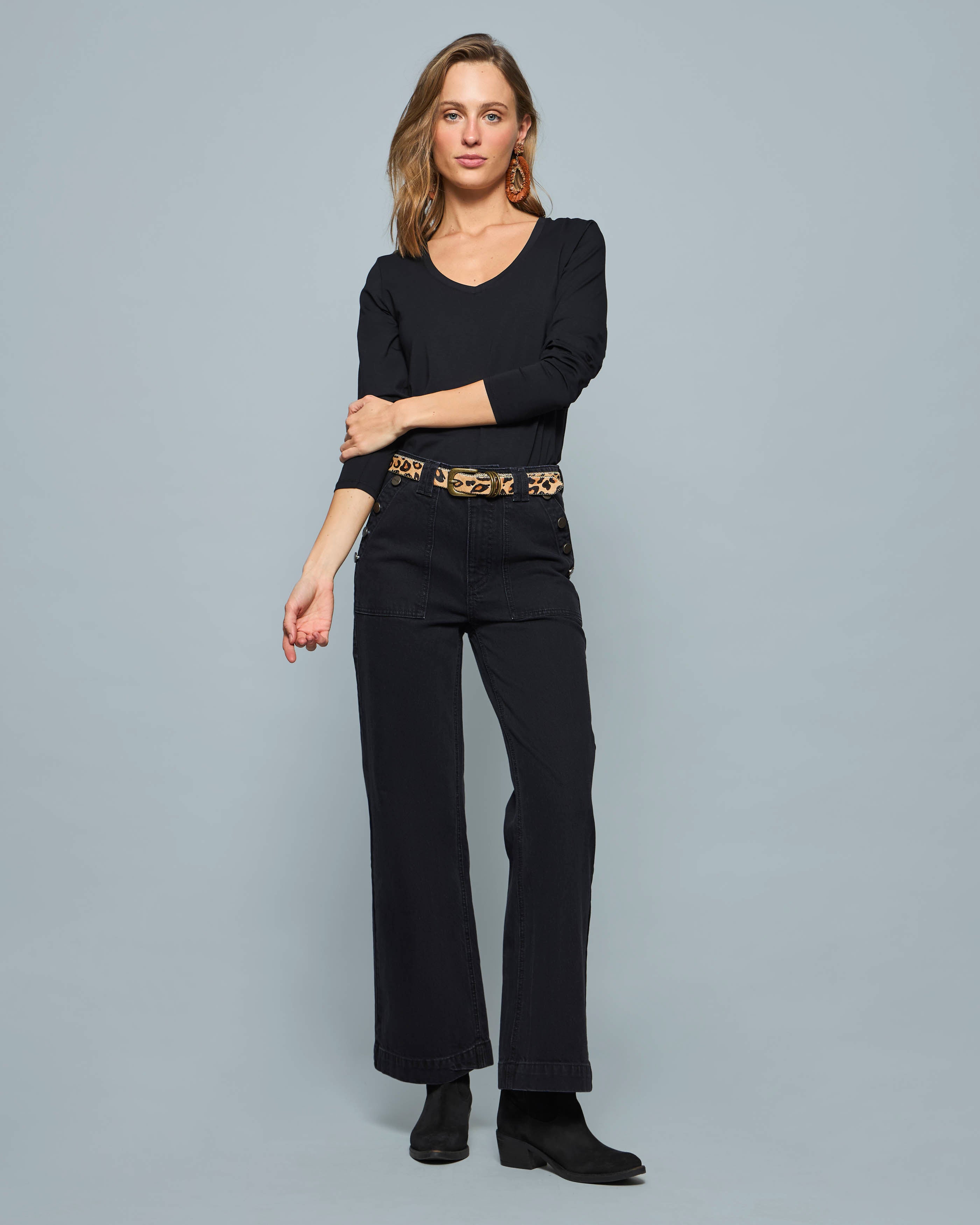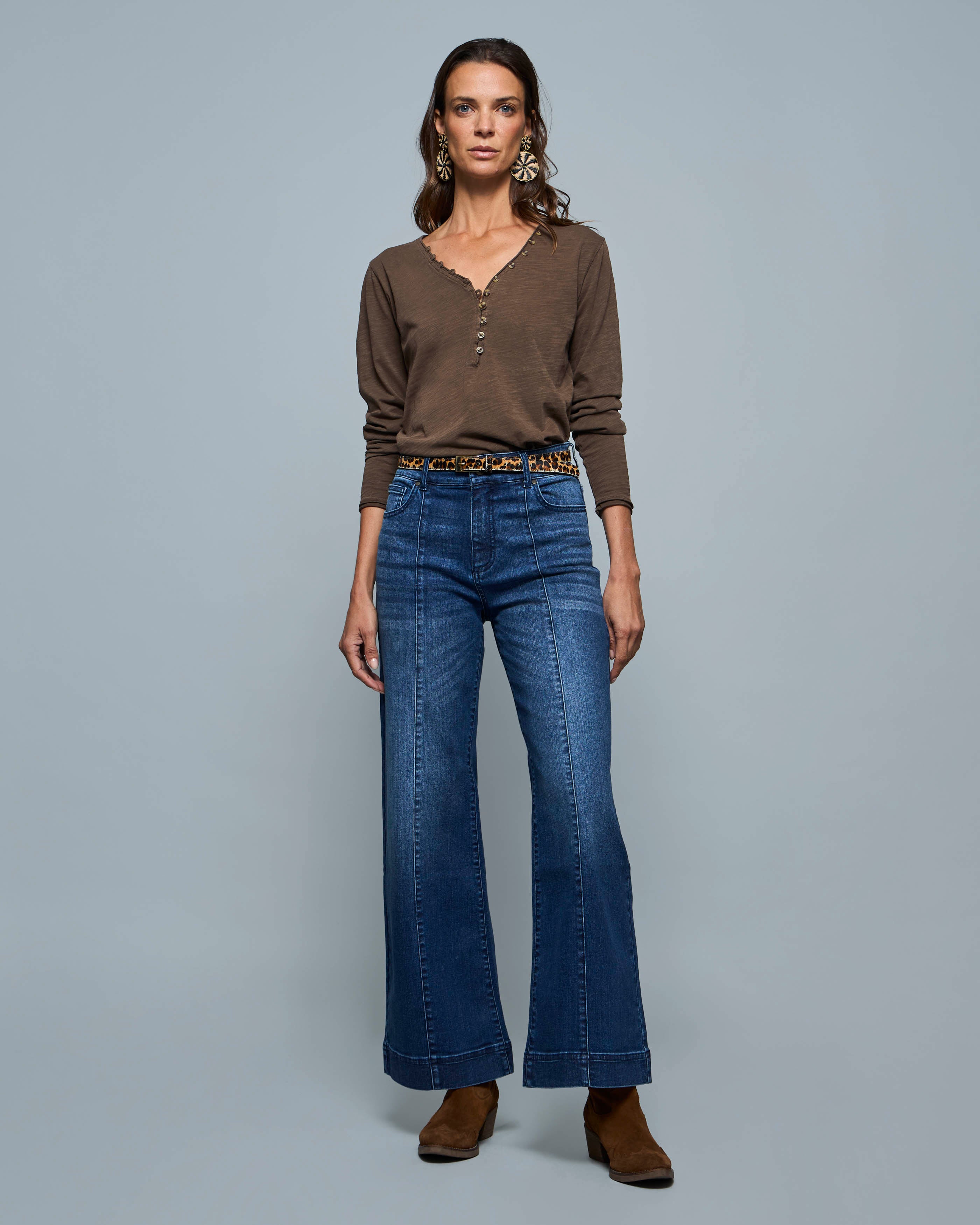 Pantalón Seychelles Tiro Alto Bota Ajustada Botones