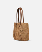 Cartera En Rafia Rectangular Con Mangos en Cuero