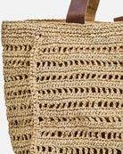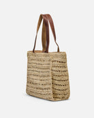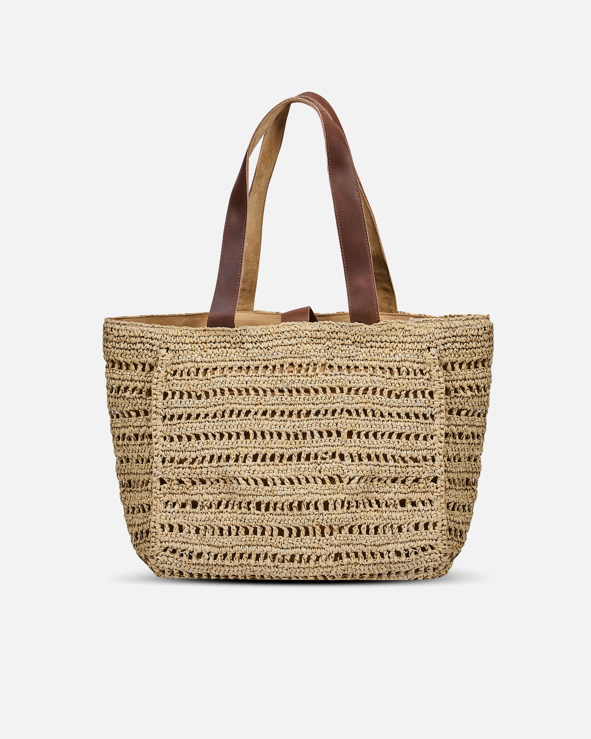 Cartera En Rafia Rectangular Con Mangos Planos en Cuero