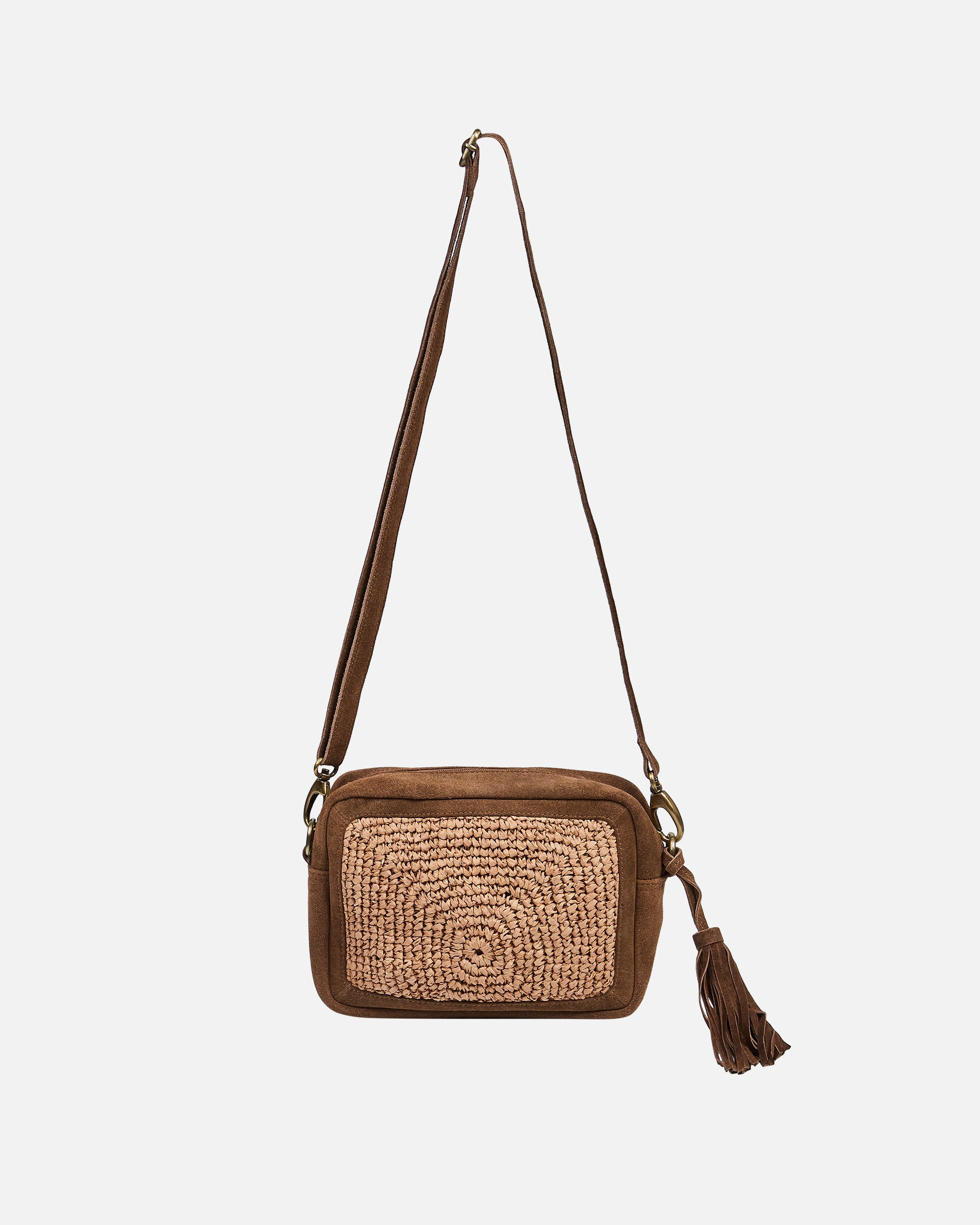 Cartera Rectangular En Rafia Contorno En Gamuza