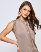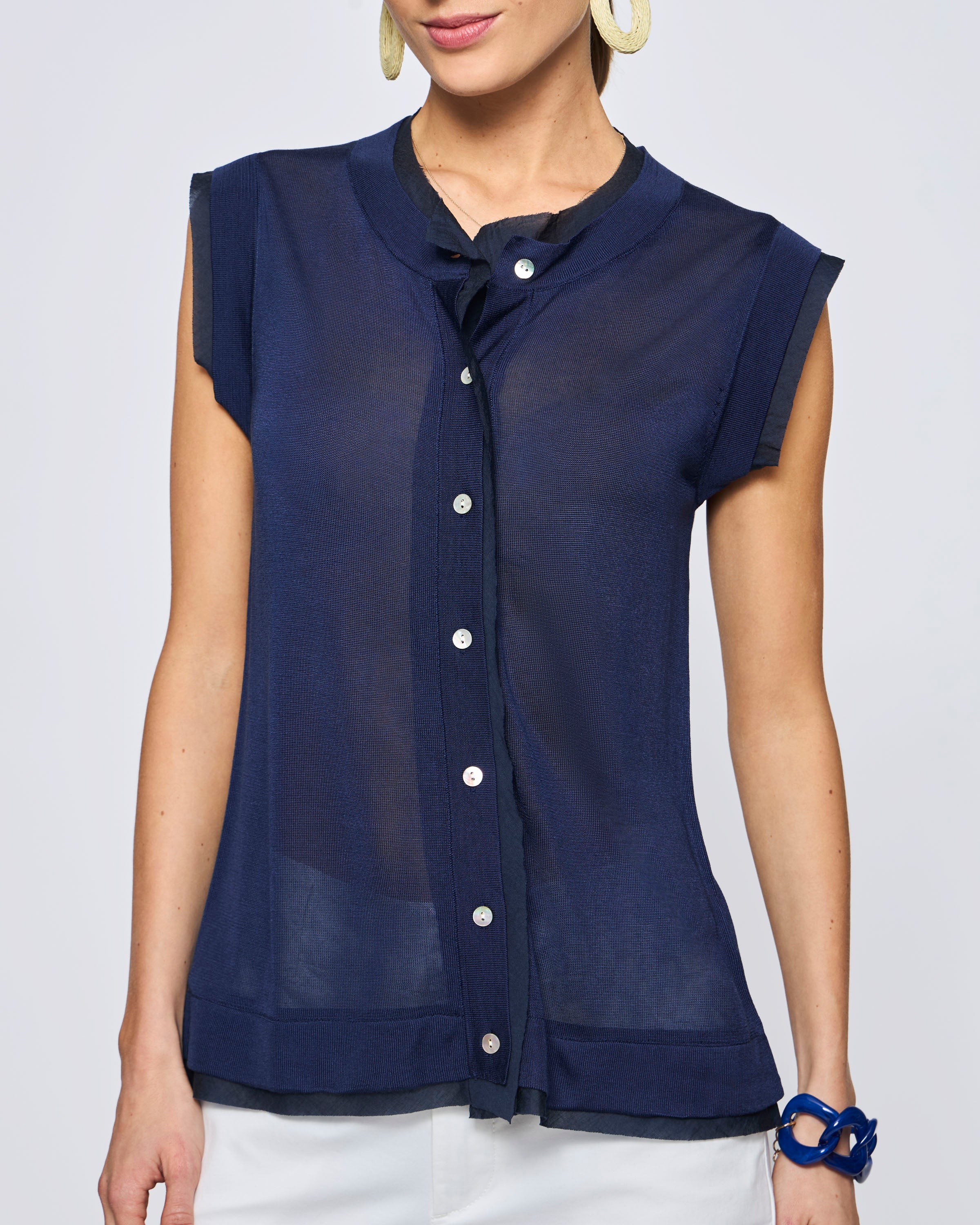 Polera Sin Manga Tejida Detalle Organza