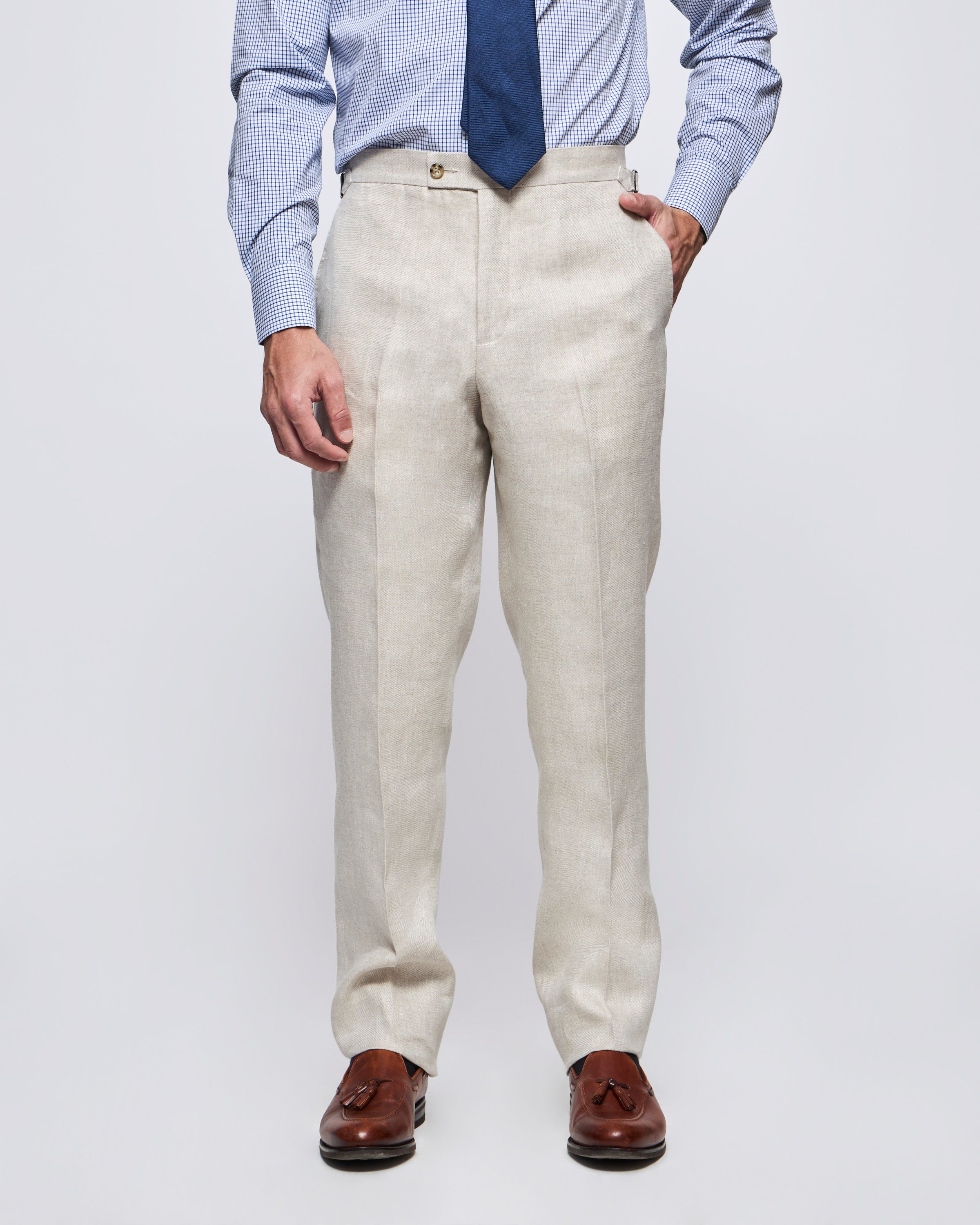 Es tiempo de Renovar los Calces y traer los Clásicos de vuelta. Nuestro clásico Pantalón de Lino en un Modelo Actualizado versión sin Pinzas, sin pasadores y con ajustadores a los costados que le dan un look mas limpio y formal. Tiene un fit recto un poco mas amplio en la Cadera y angosto en la rodilla y bota. Un Calce actual Inspirado en Modelos Clásicos.