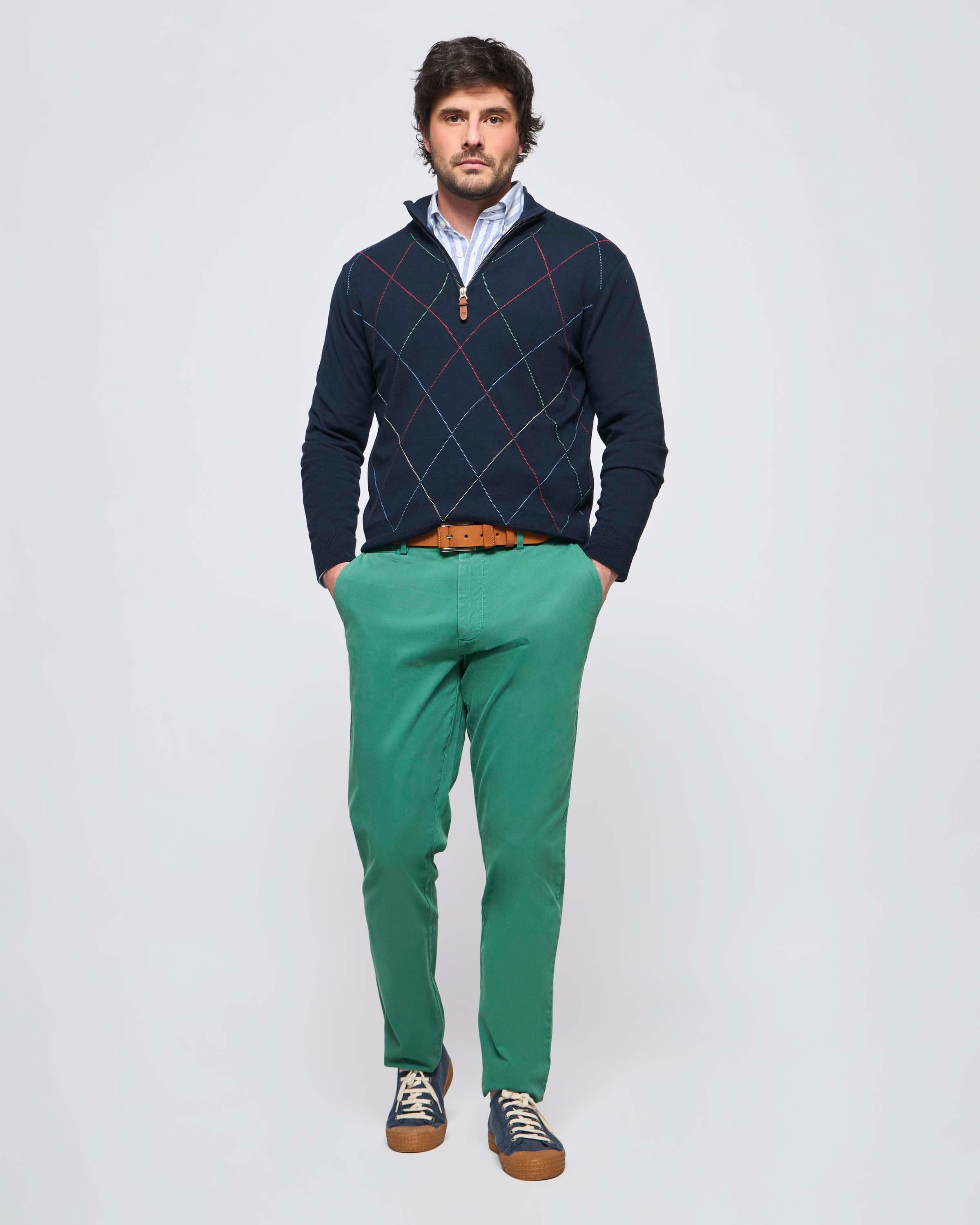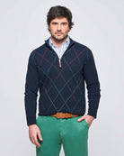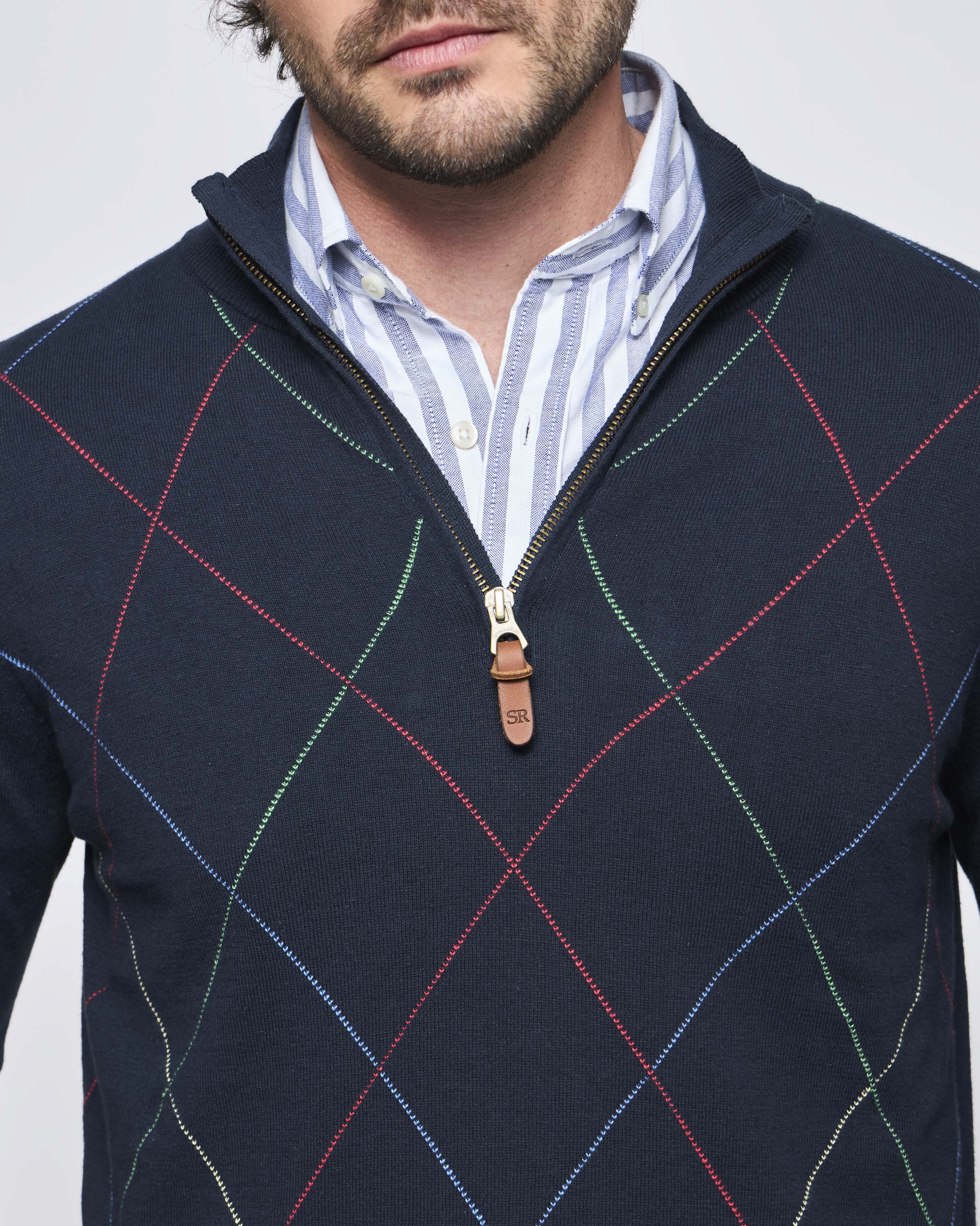 Sweater Half Zipper Algodón a Rombos Multicolor