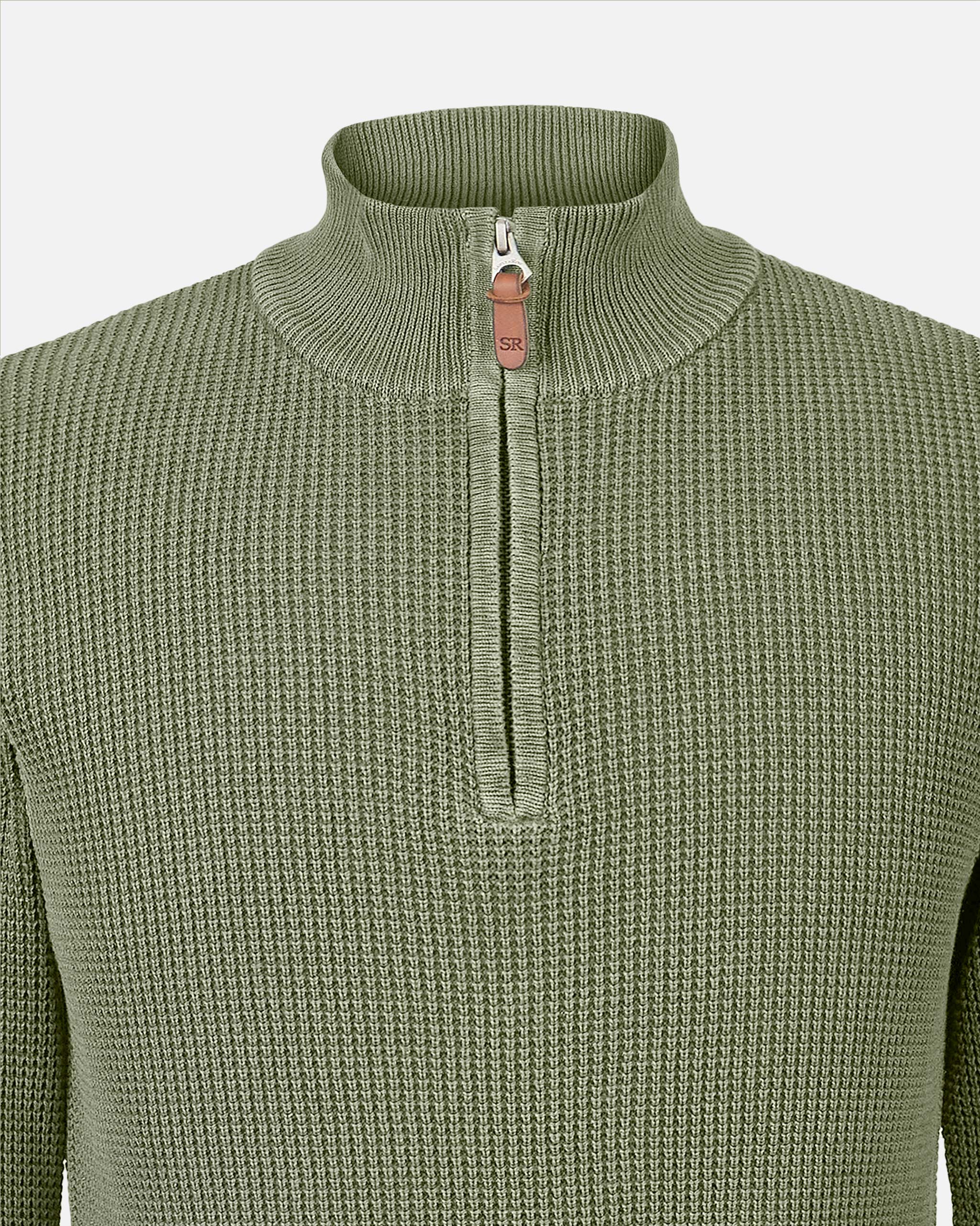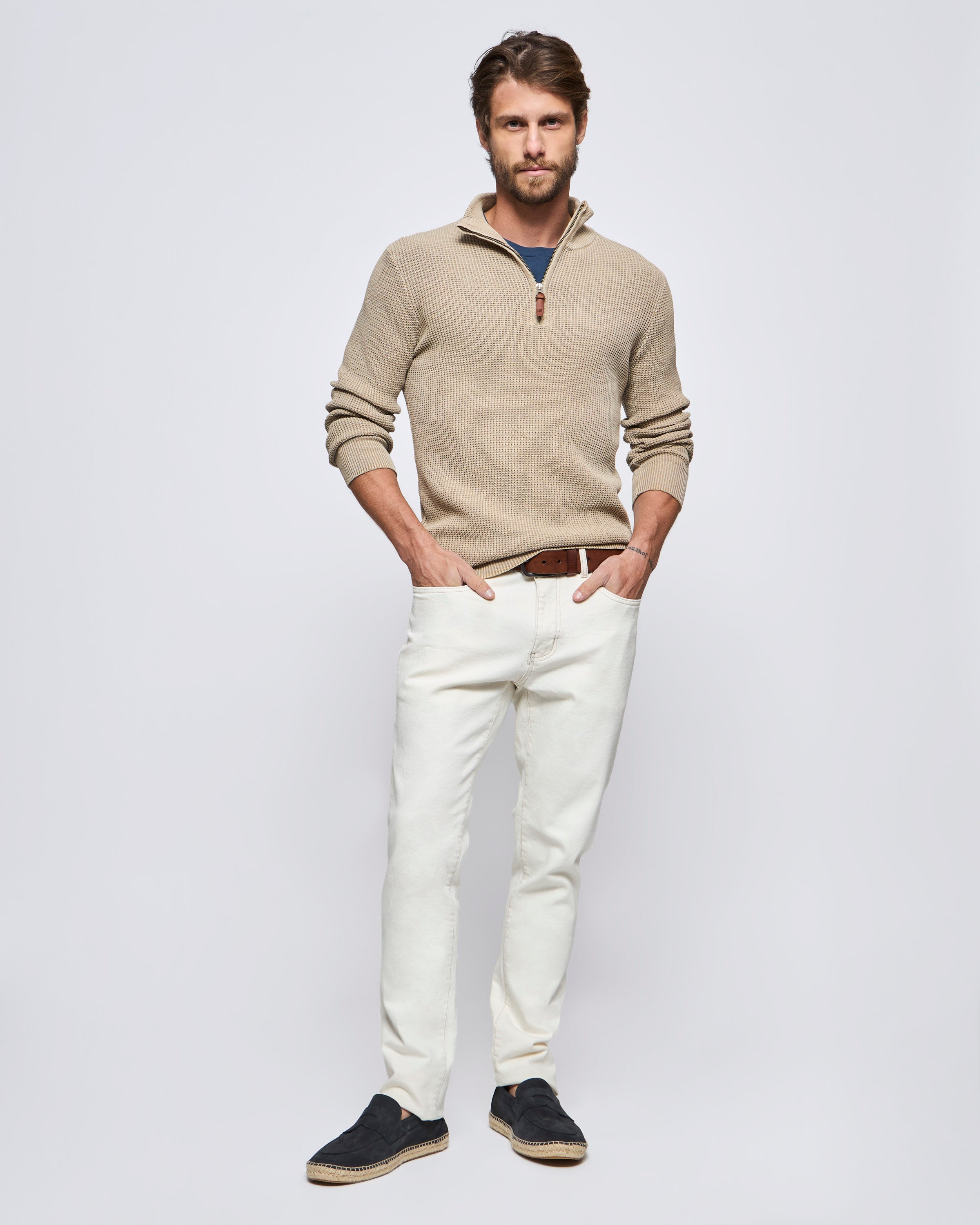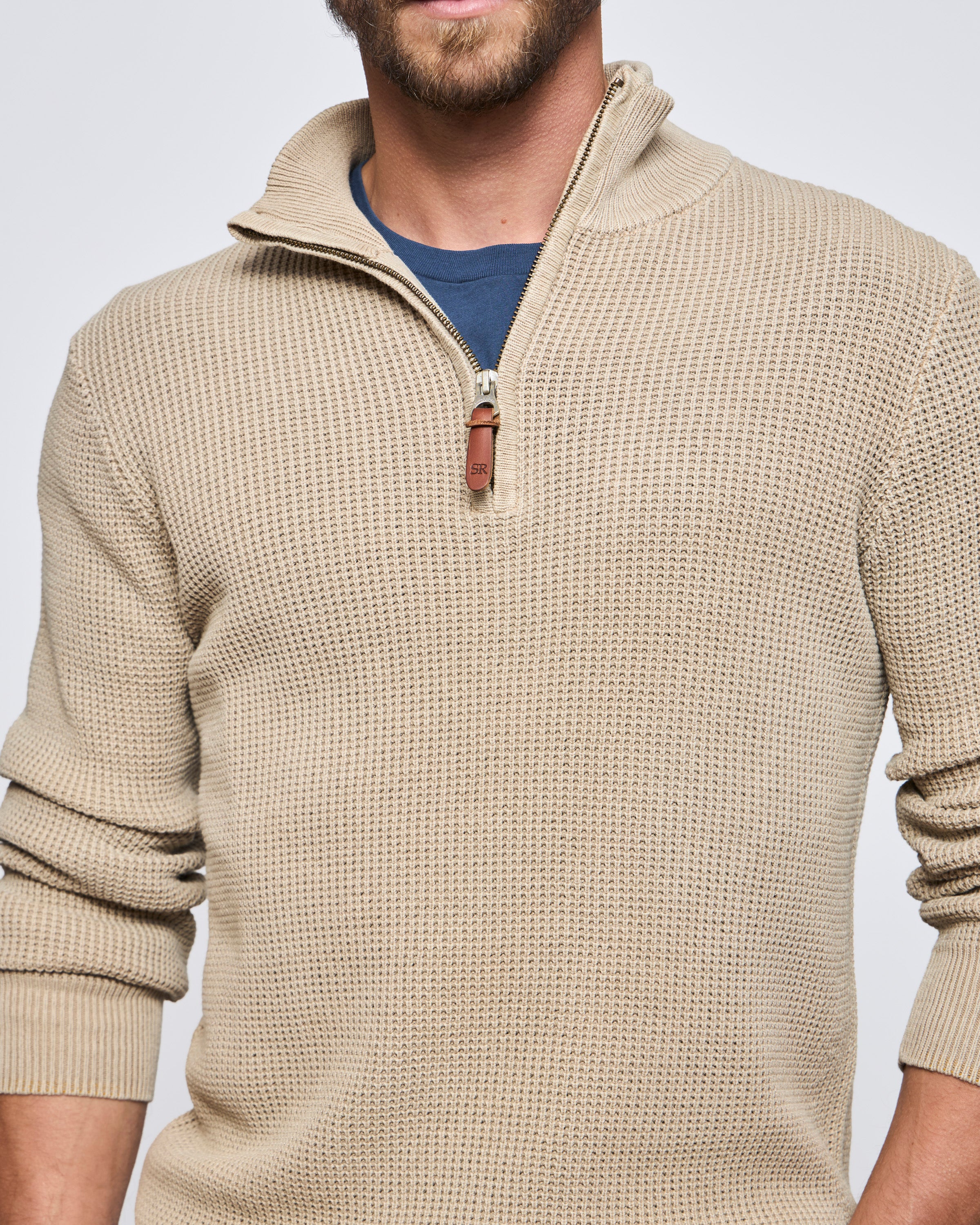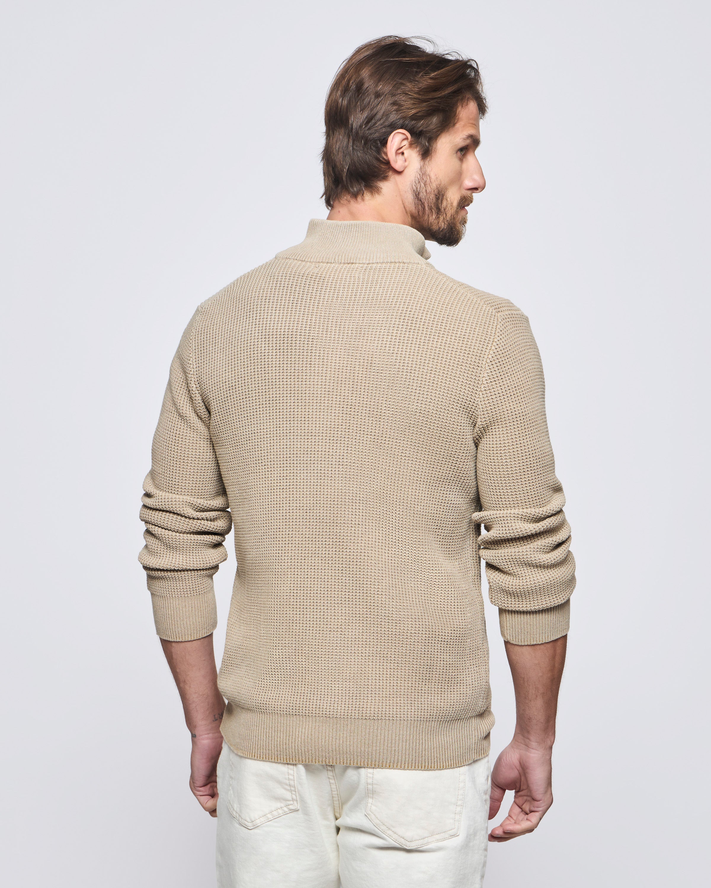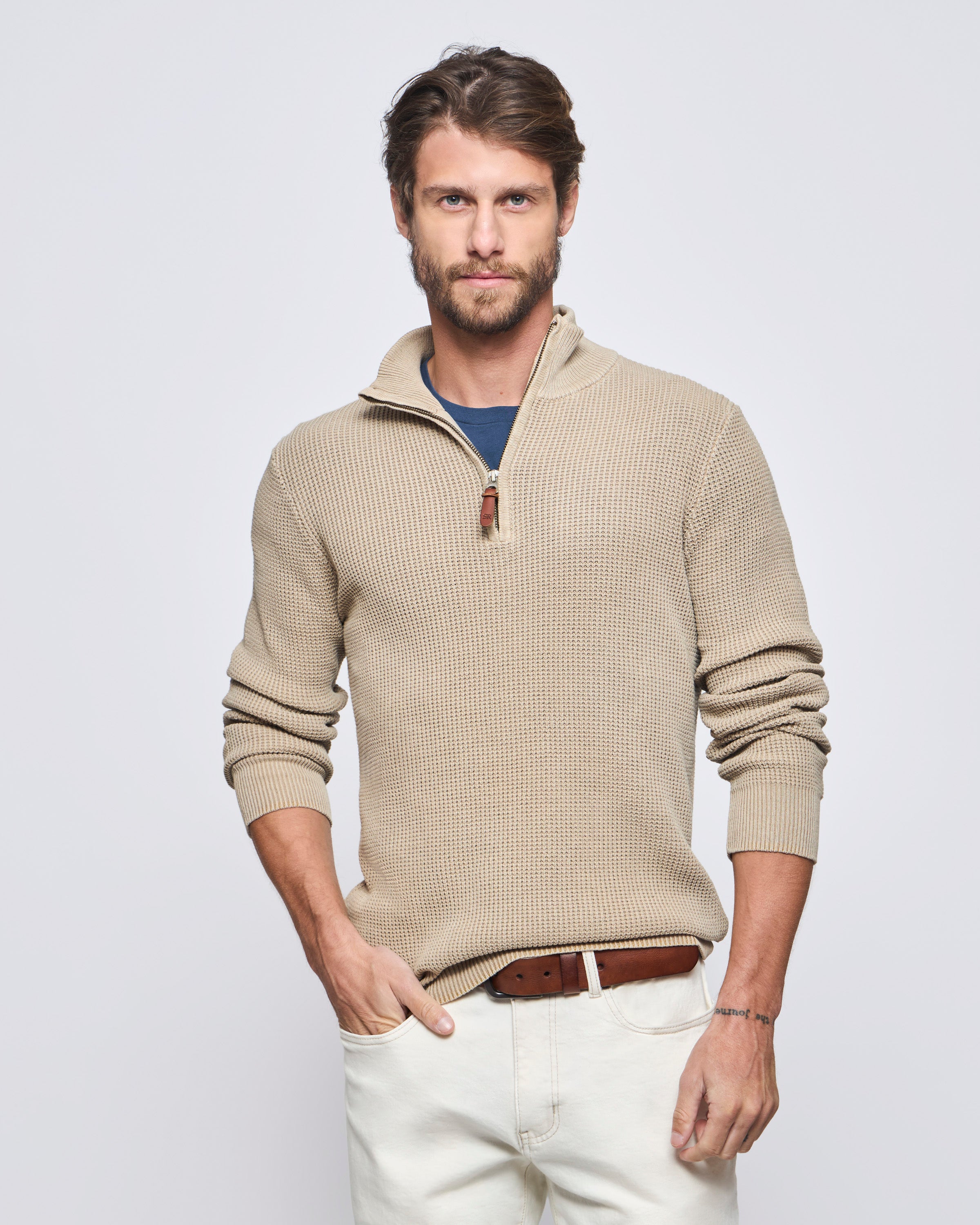 Sweater Half Zipper Manga Larga Punto Waffle Vintage