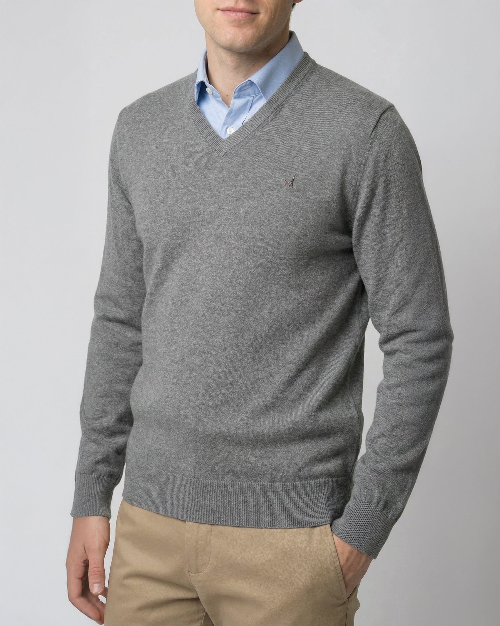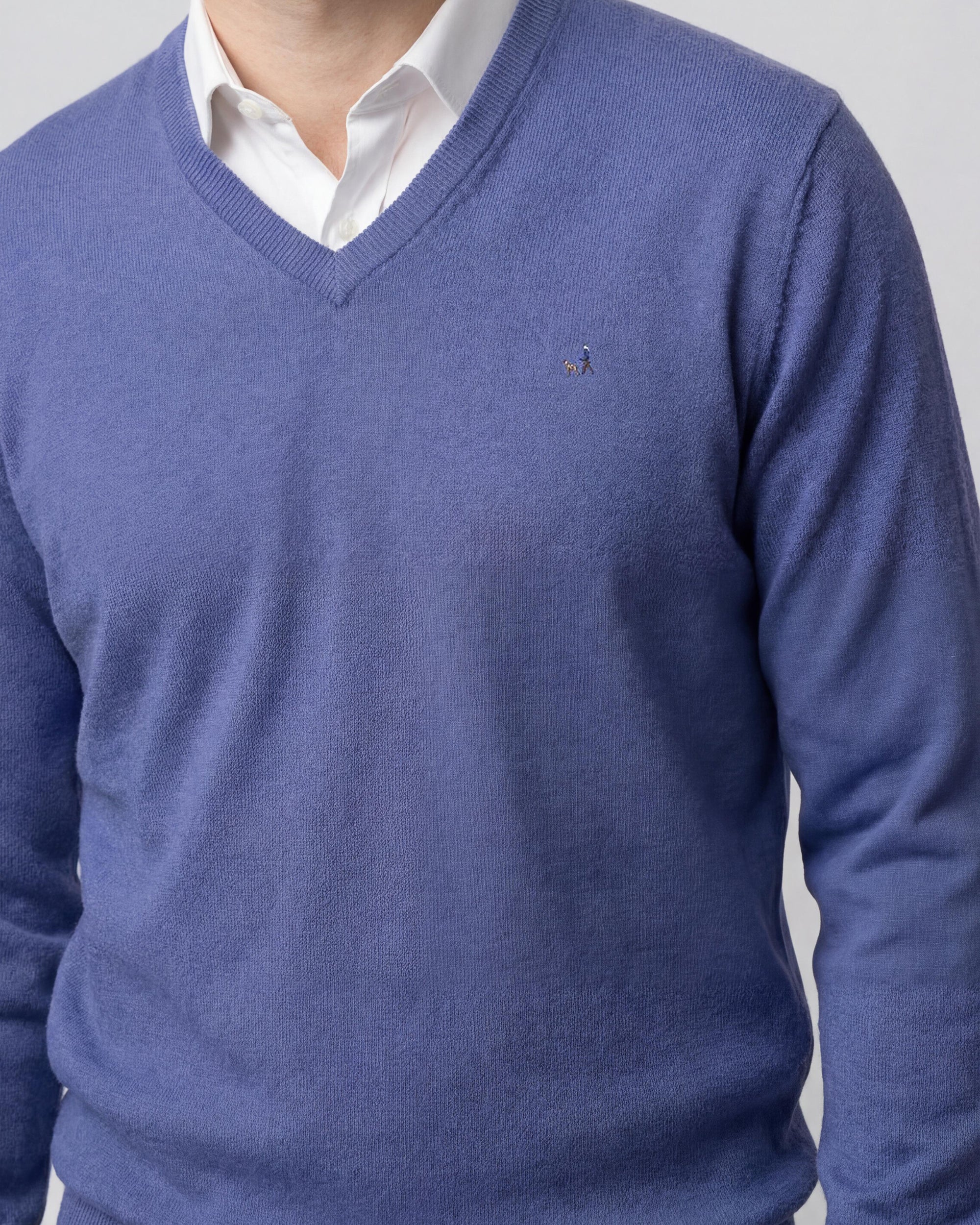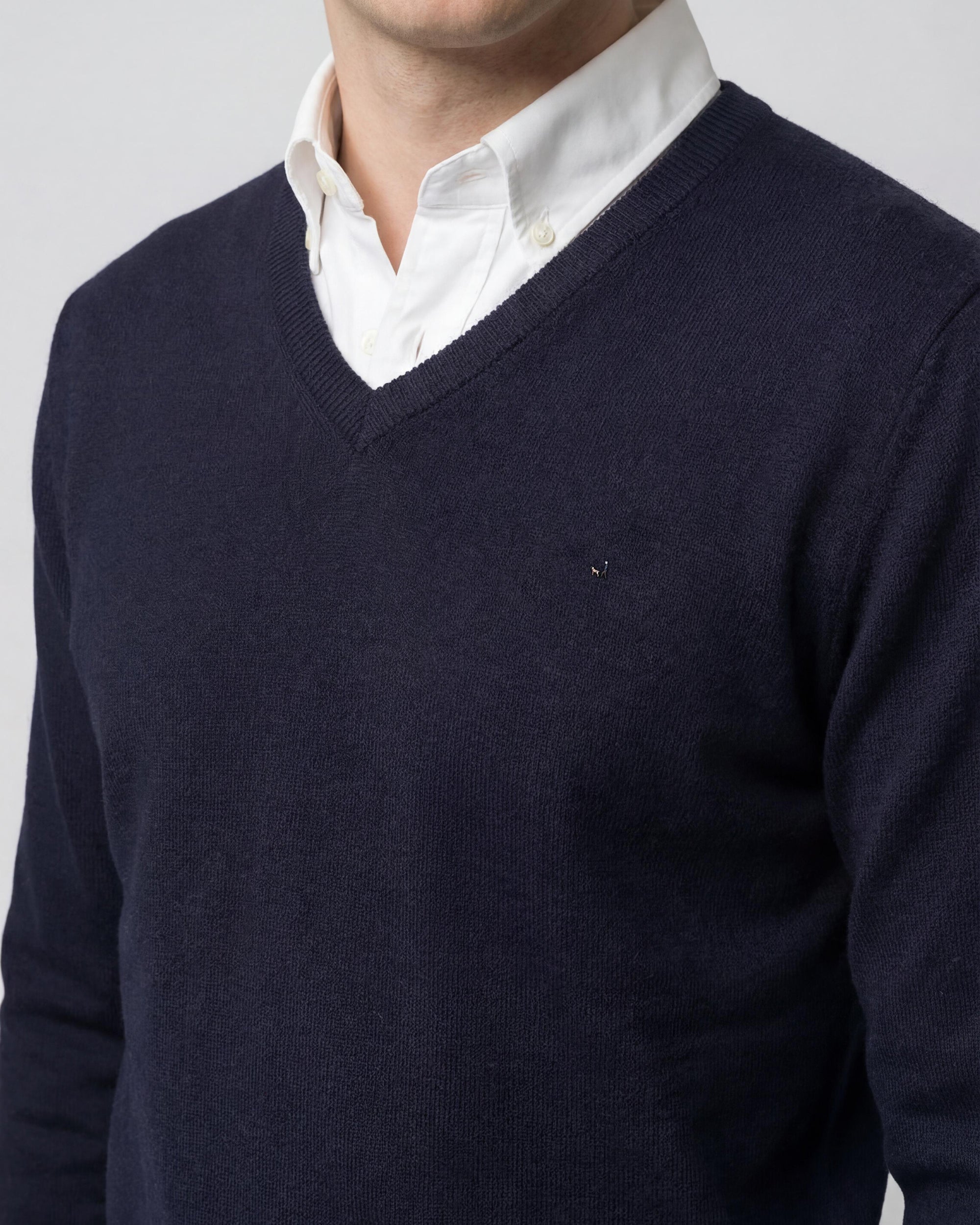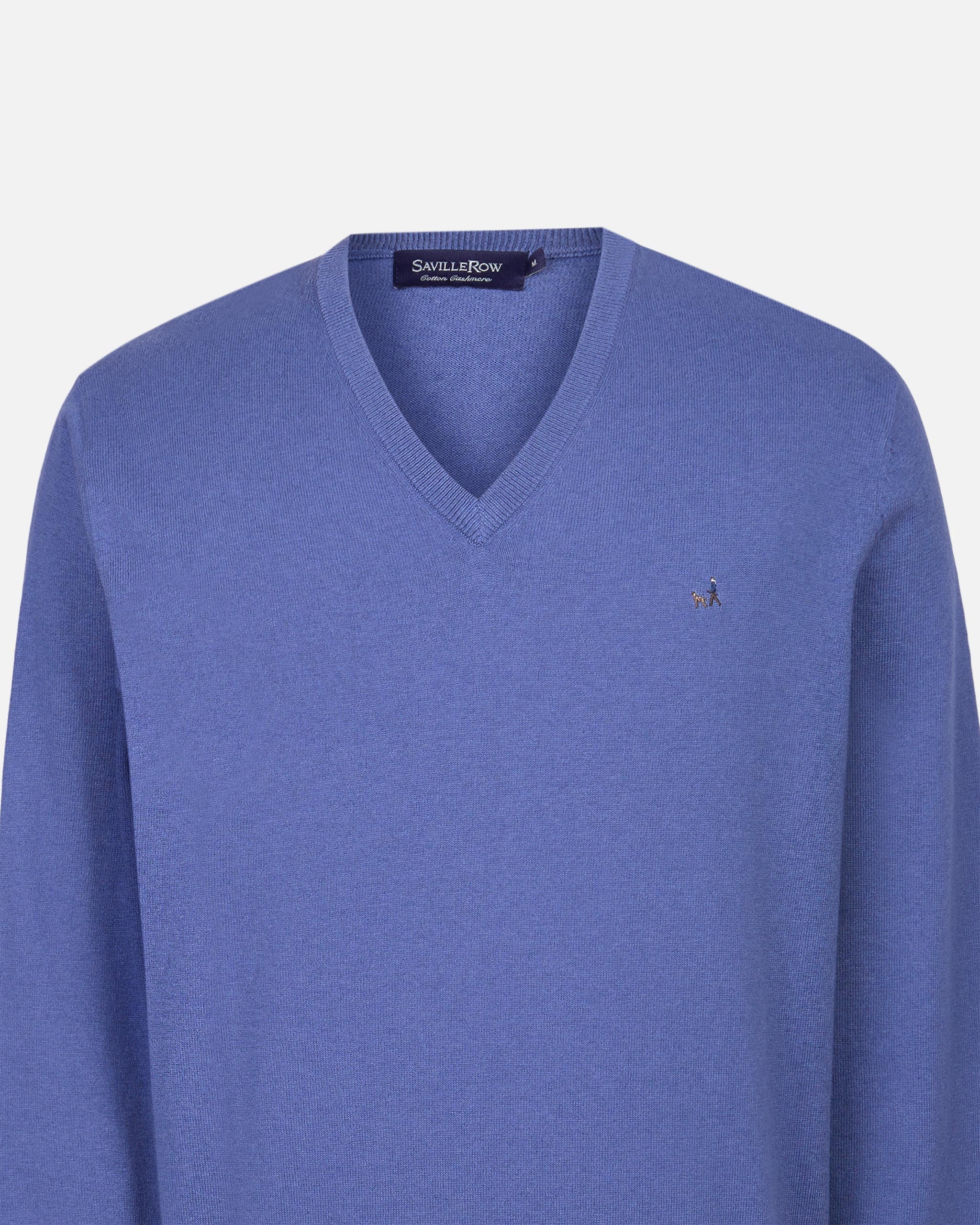 Sweater Liso Cuello V Algodón-Cashmere