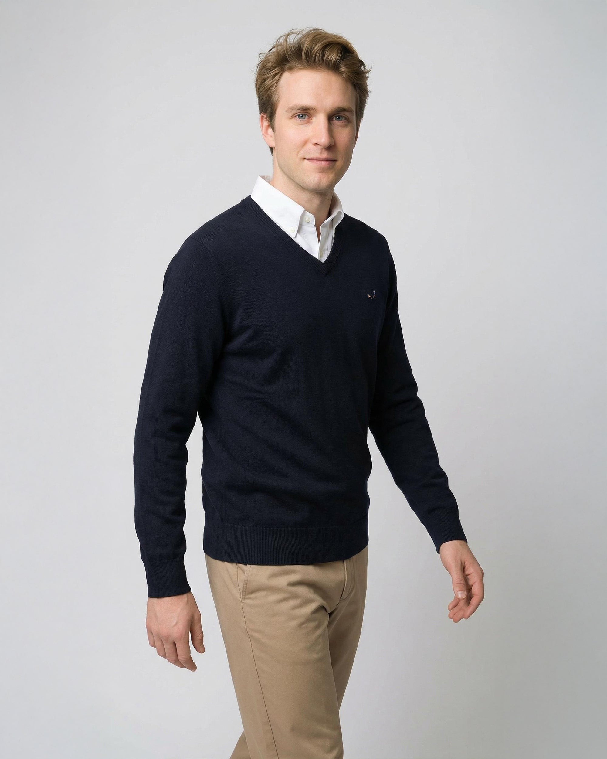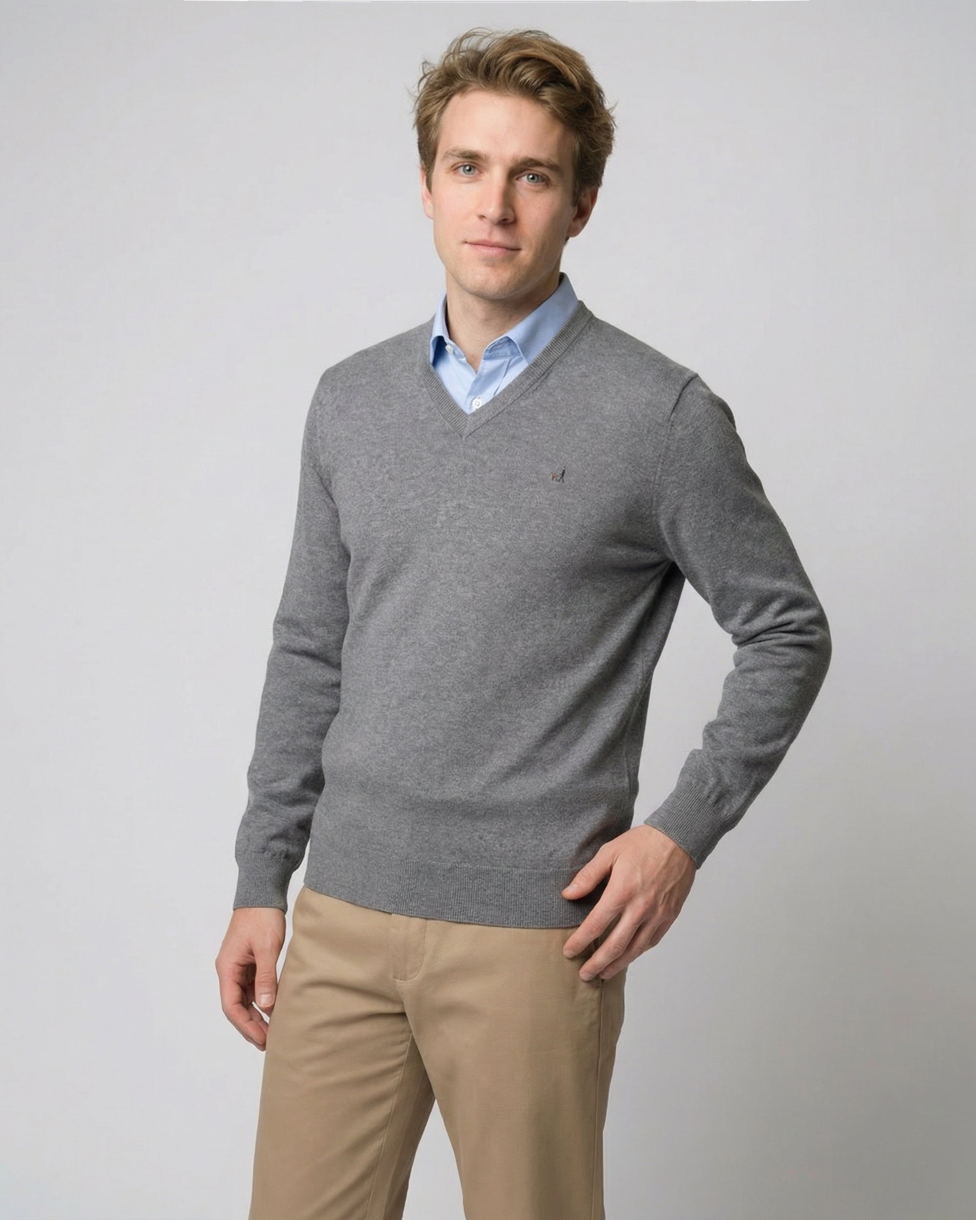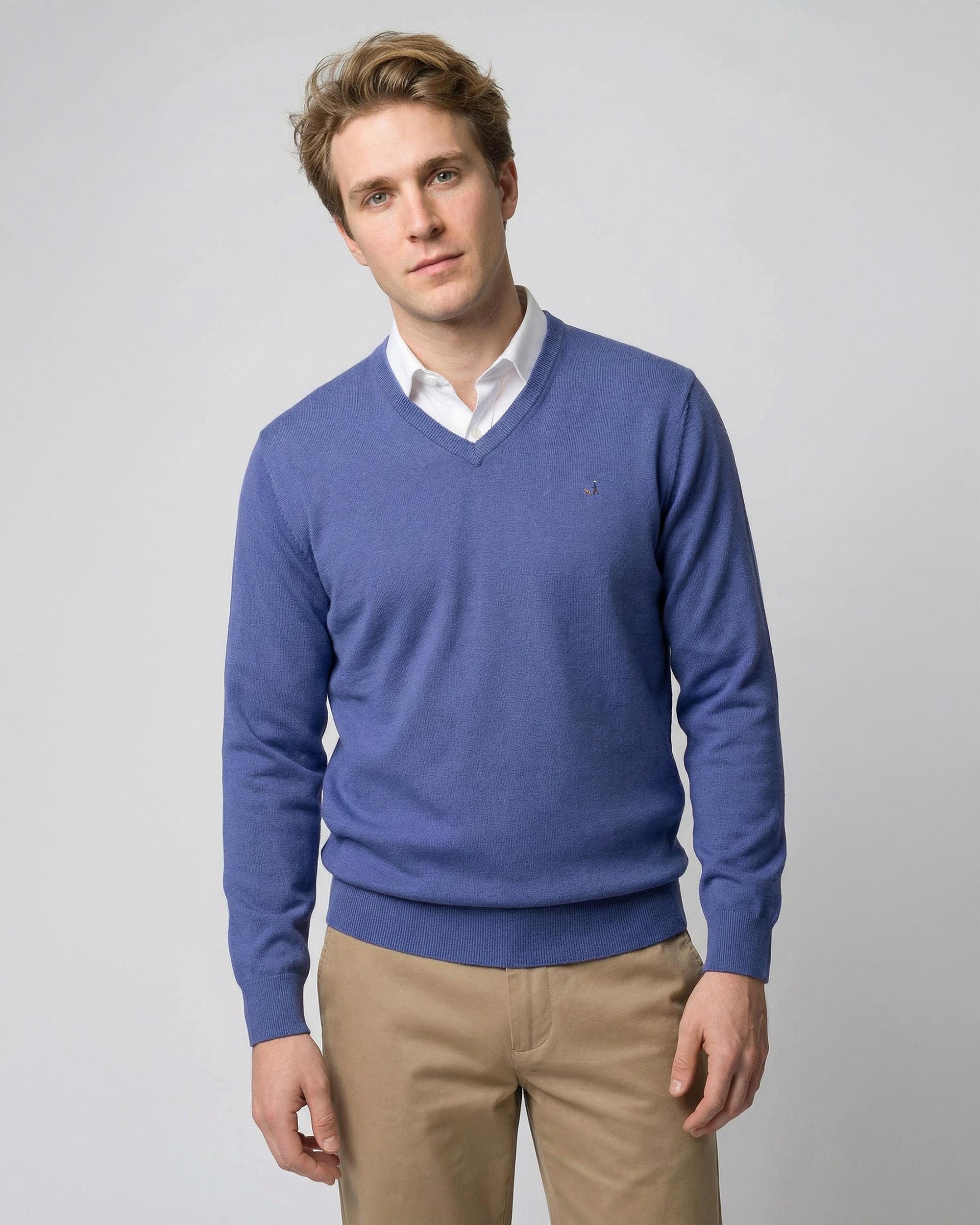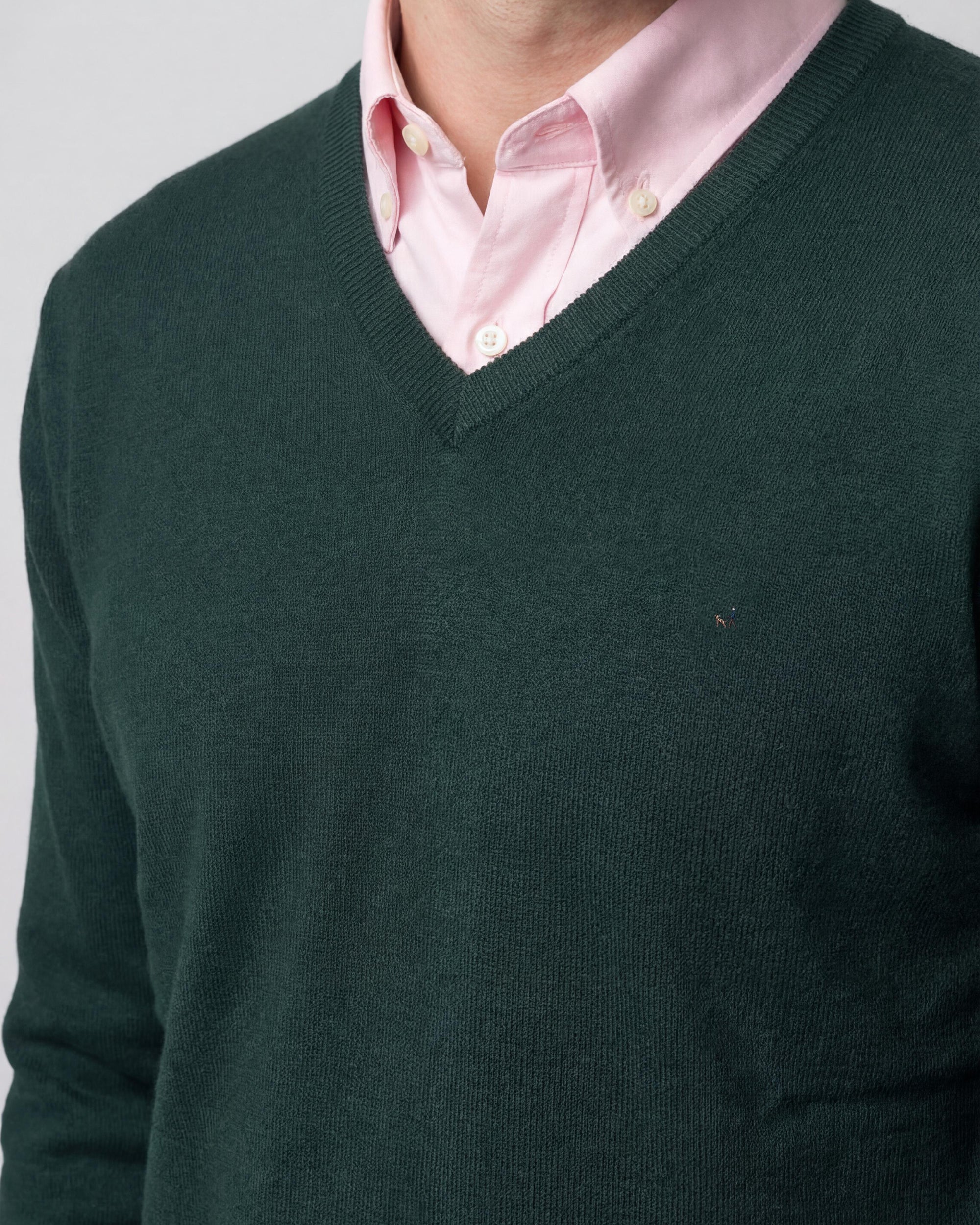 Sweater Liso Cuello V Algodón-Cashmere