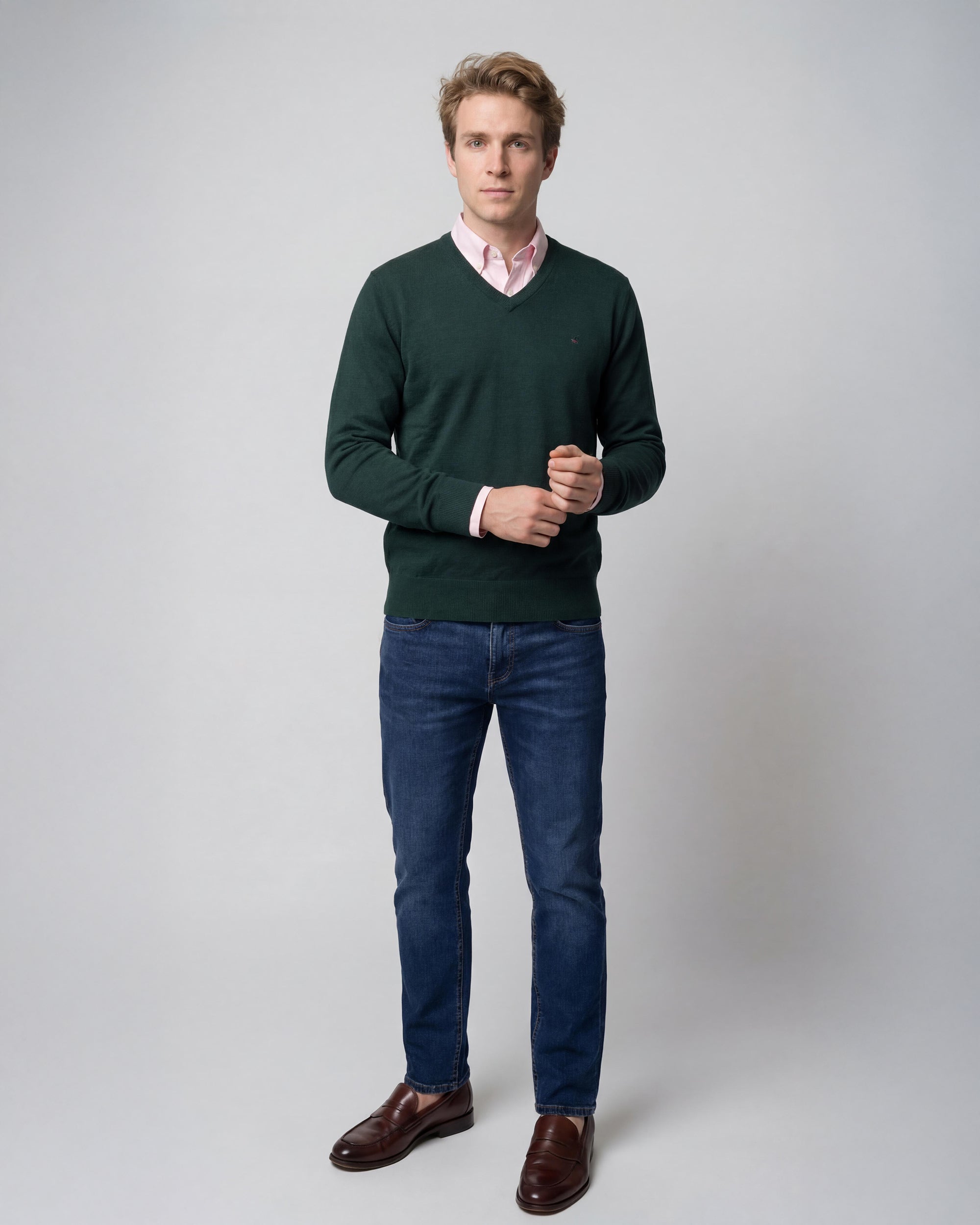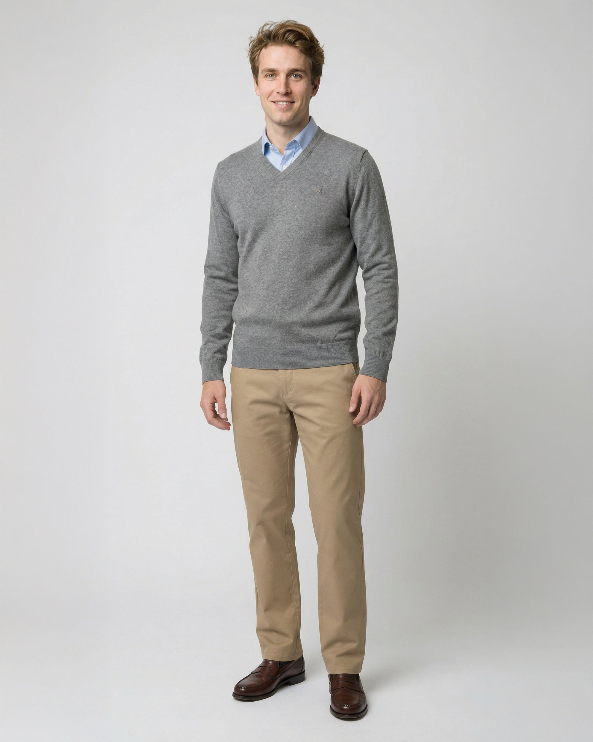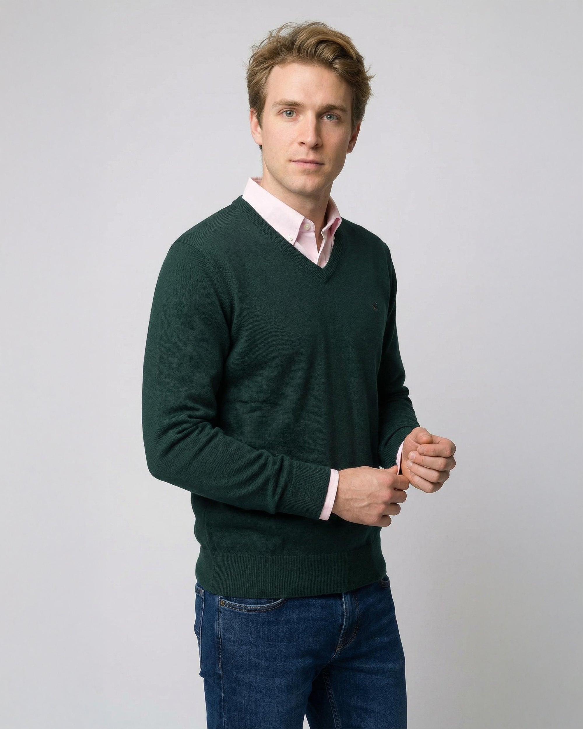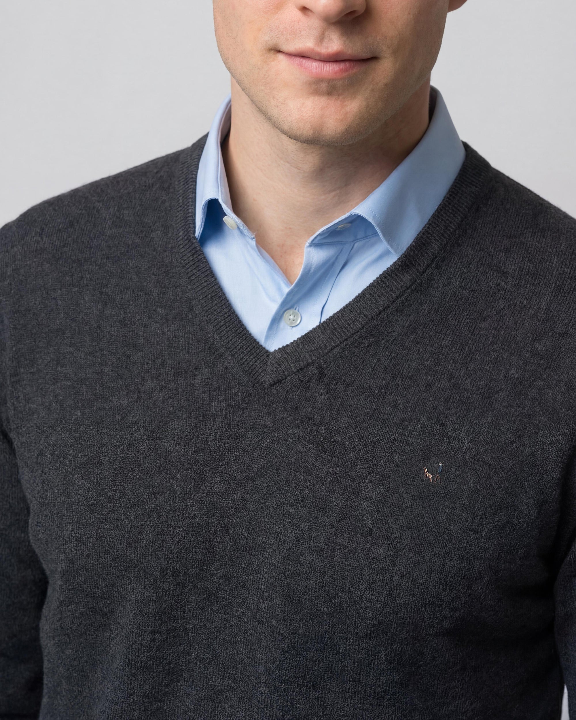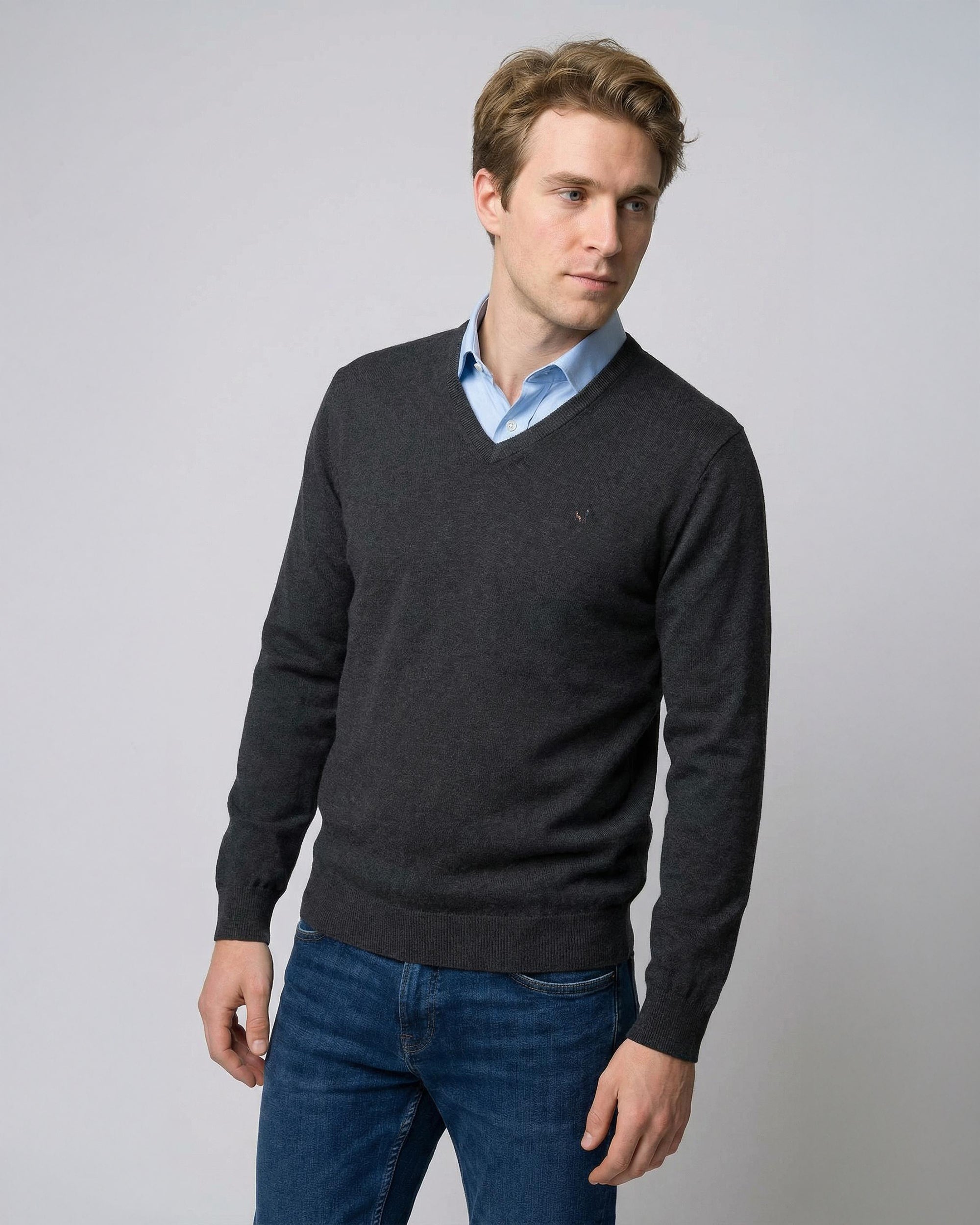 Sweater Liso Cuello V Algodón-Cashmere