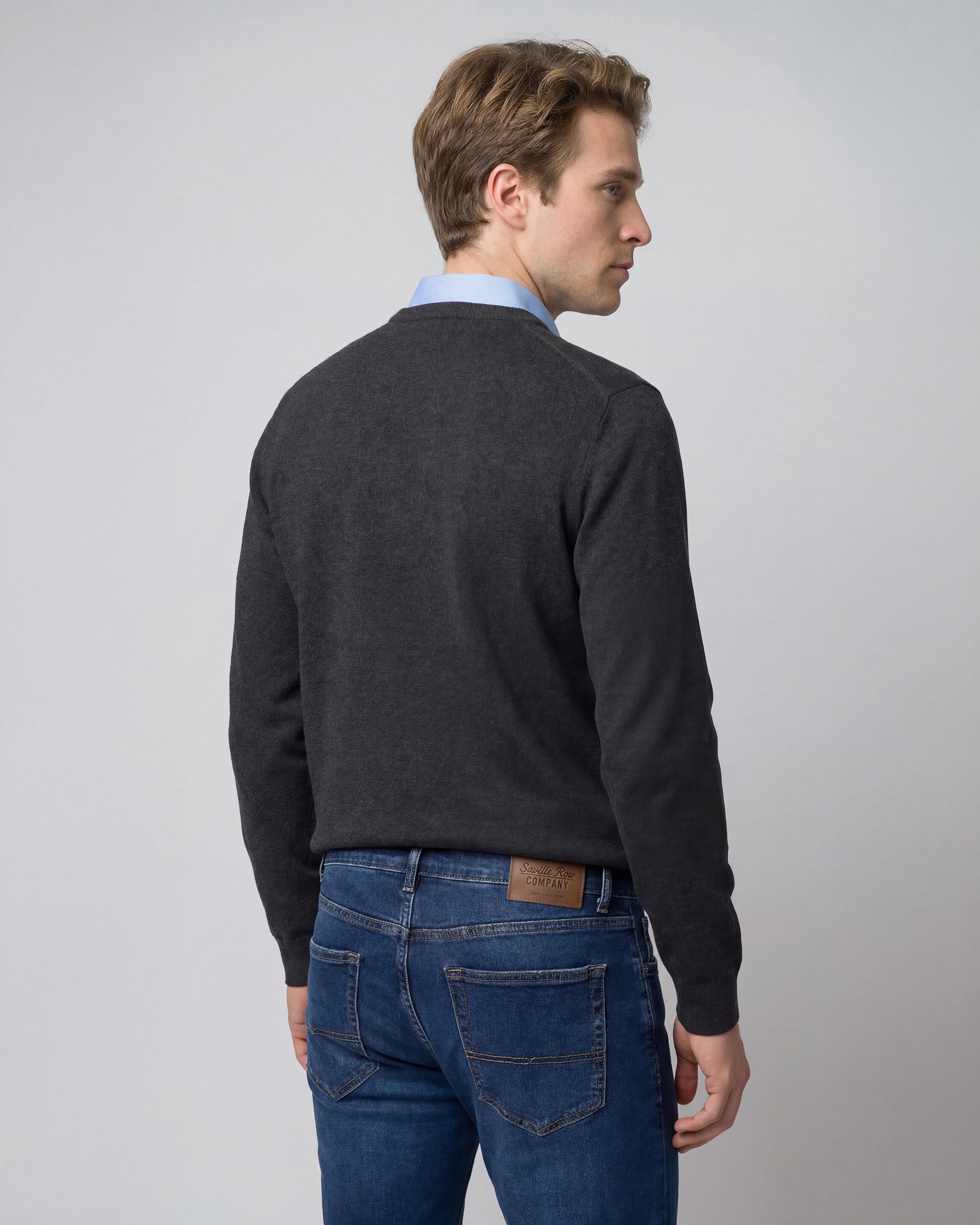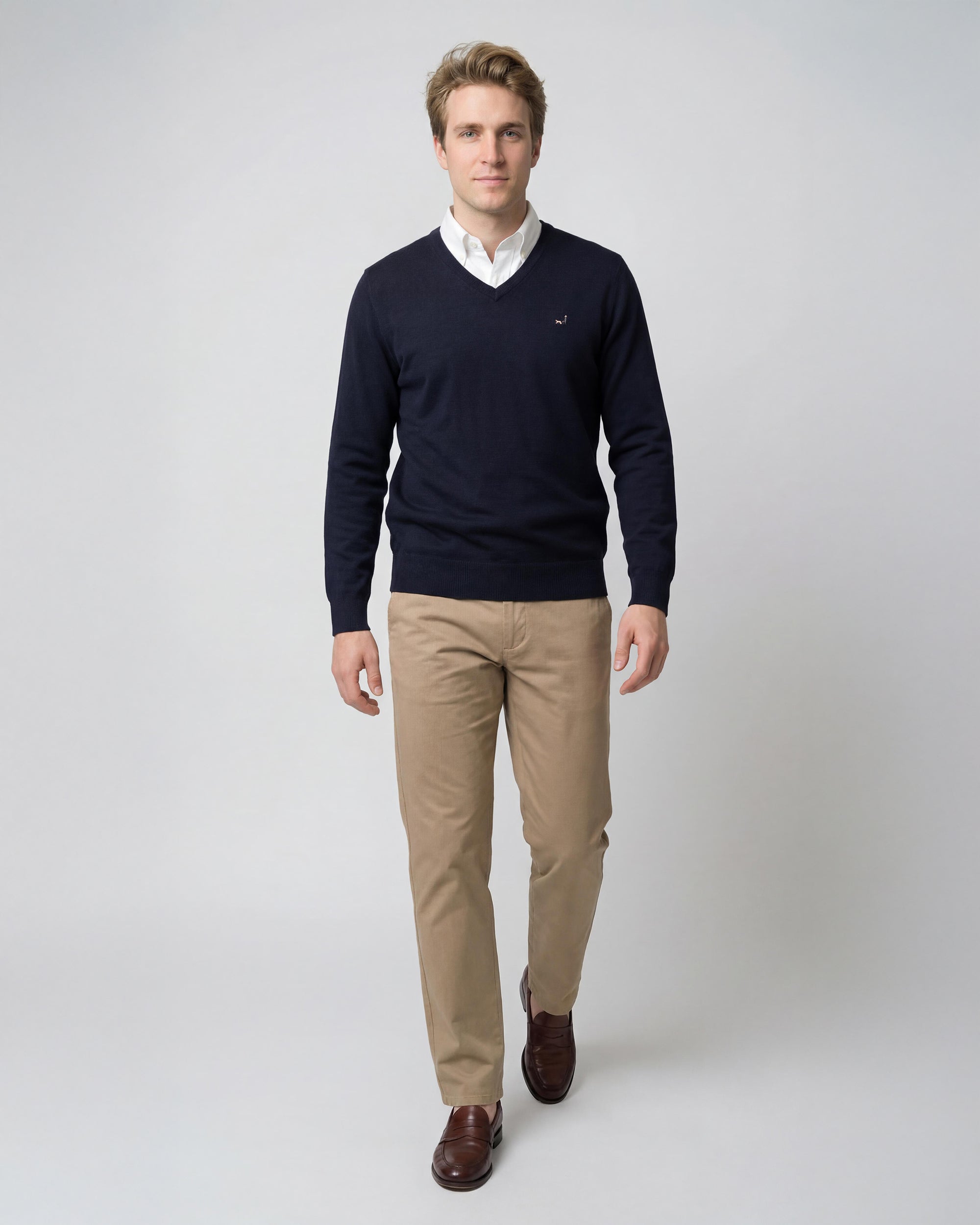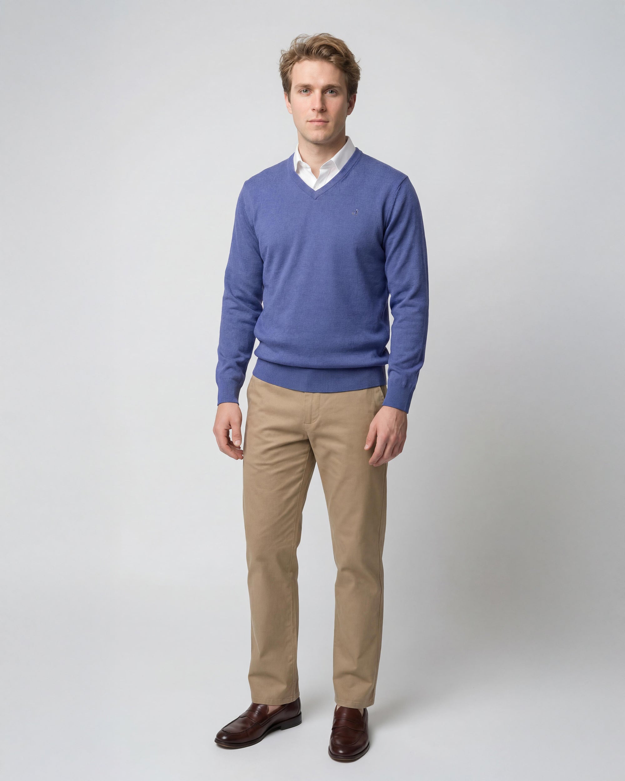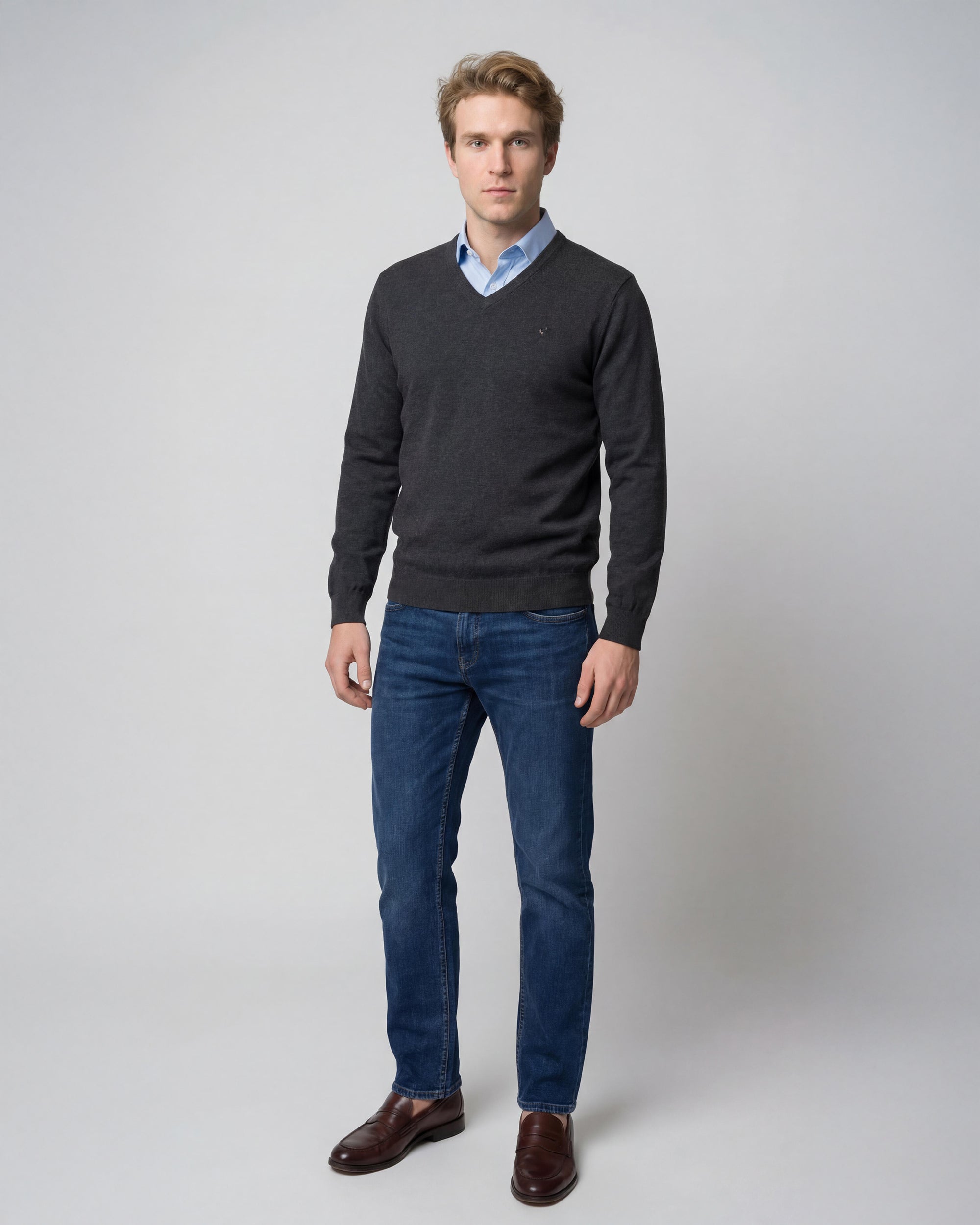 Sweater Liso Cuello V Algodón-Cashmere