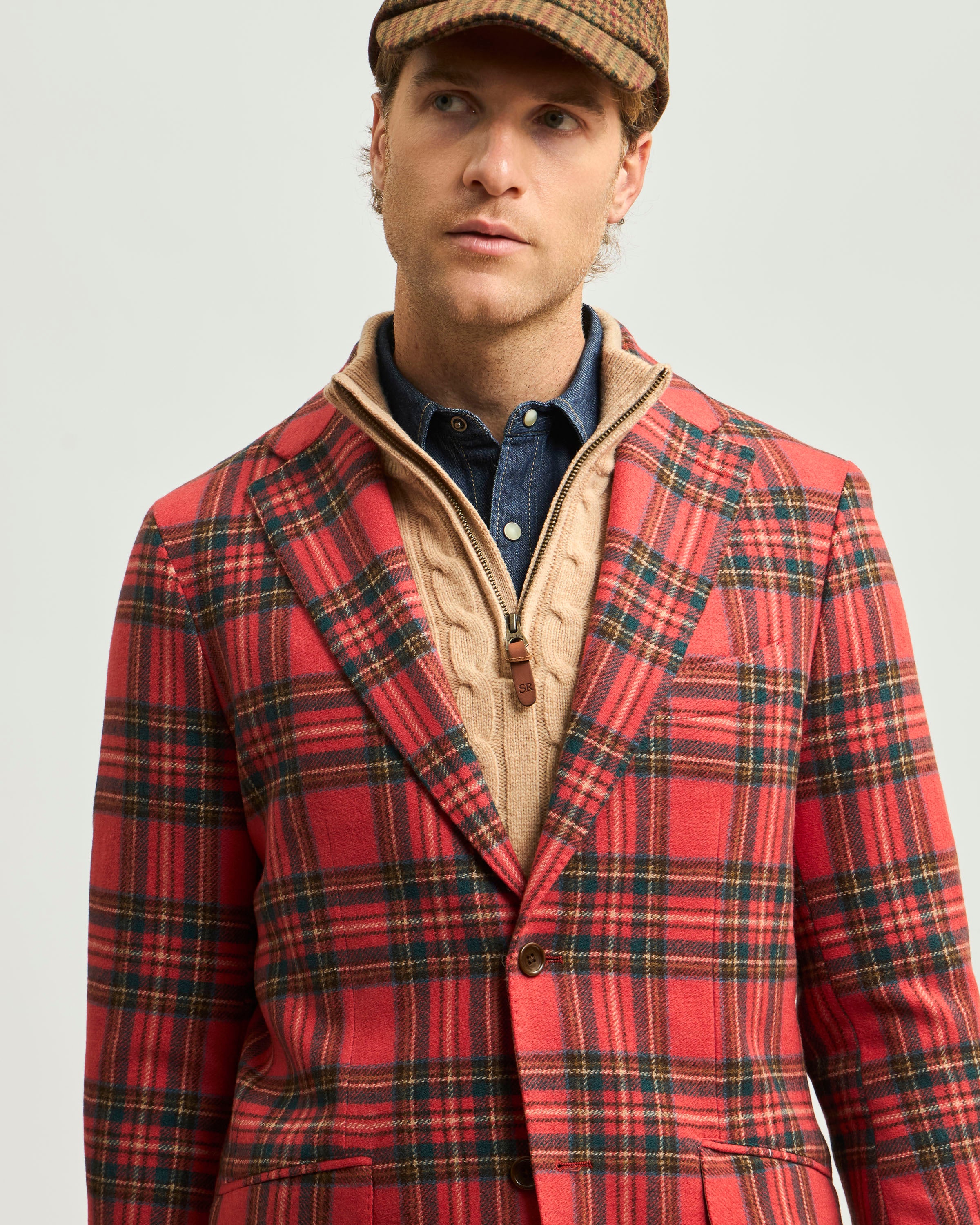 Chaqueta Fantasía Tweed Tartan Lana Sutton Clásico Dos Botones Dos Colas