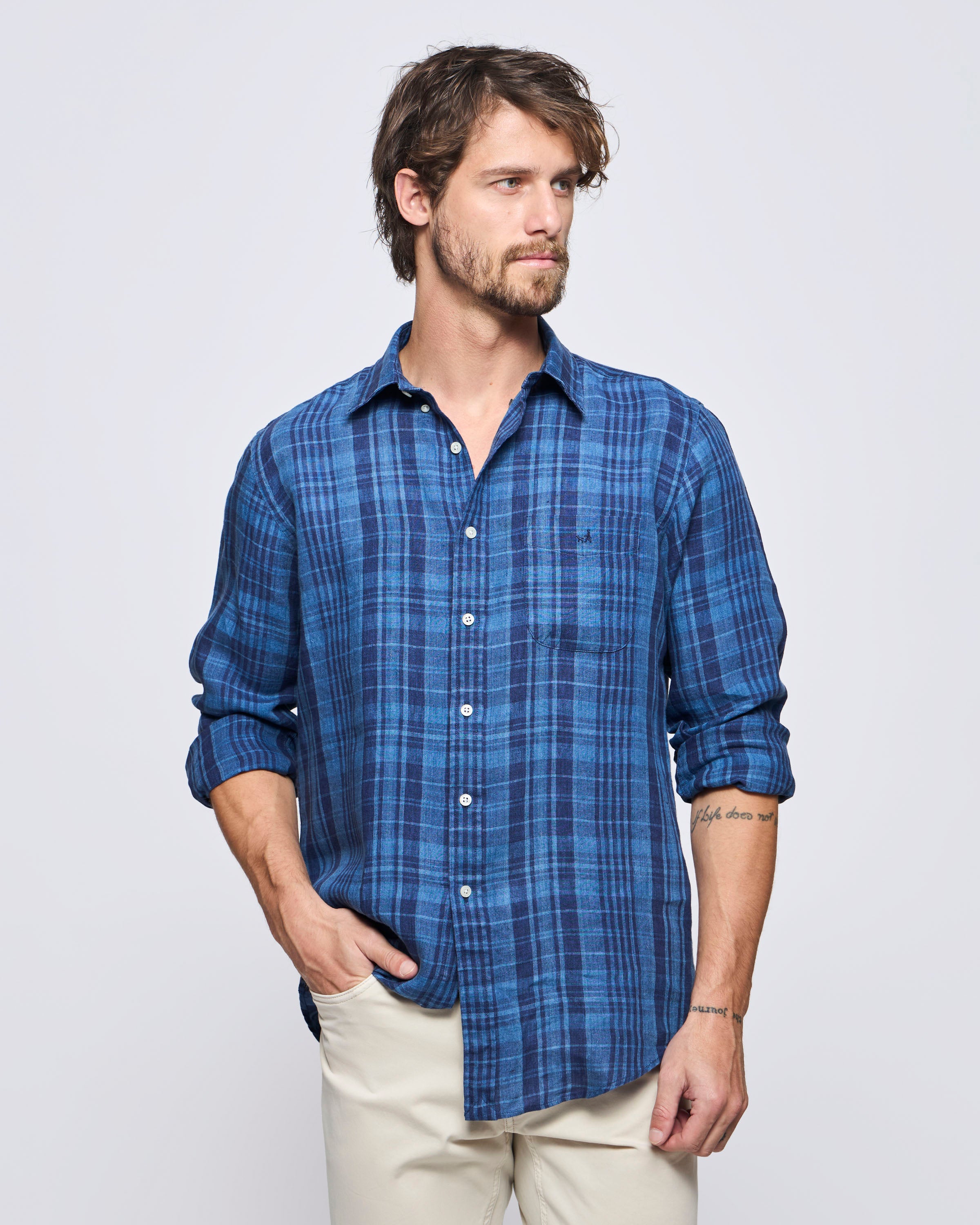 Camisa Sport Button Down Weekend Indigo Check