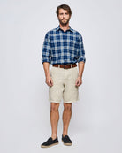 Inspirada en las "Workshirt" o camisa de trabajo, tiene sus raíces en la ropa usada por trabajadores en diversas industrias, especialmente a finales del siglo XIX y principios del XX. Su origen se puede rastrear en la necesidad de prendas duraderas y funcionales para trabajos que requirieran movimientos y resistencia. Esta versión en tela índigo a cuadros y un peso perfecto para el verano, es perfecta para usar con short o jeans y zapatillas.