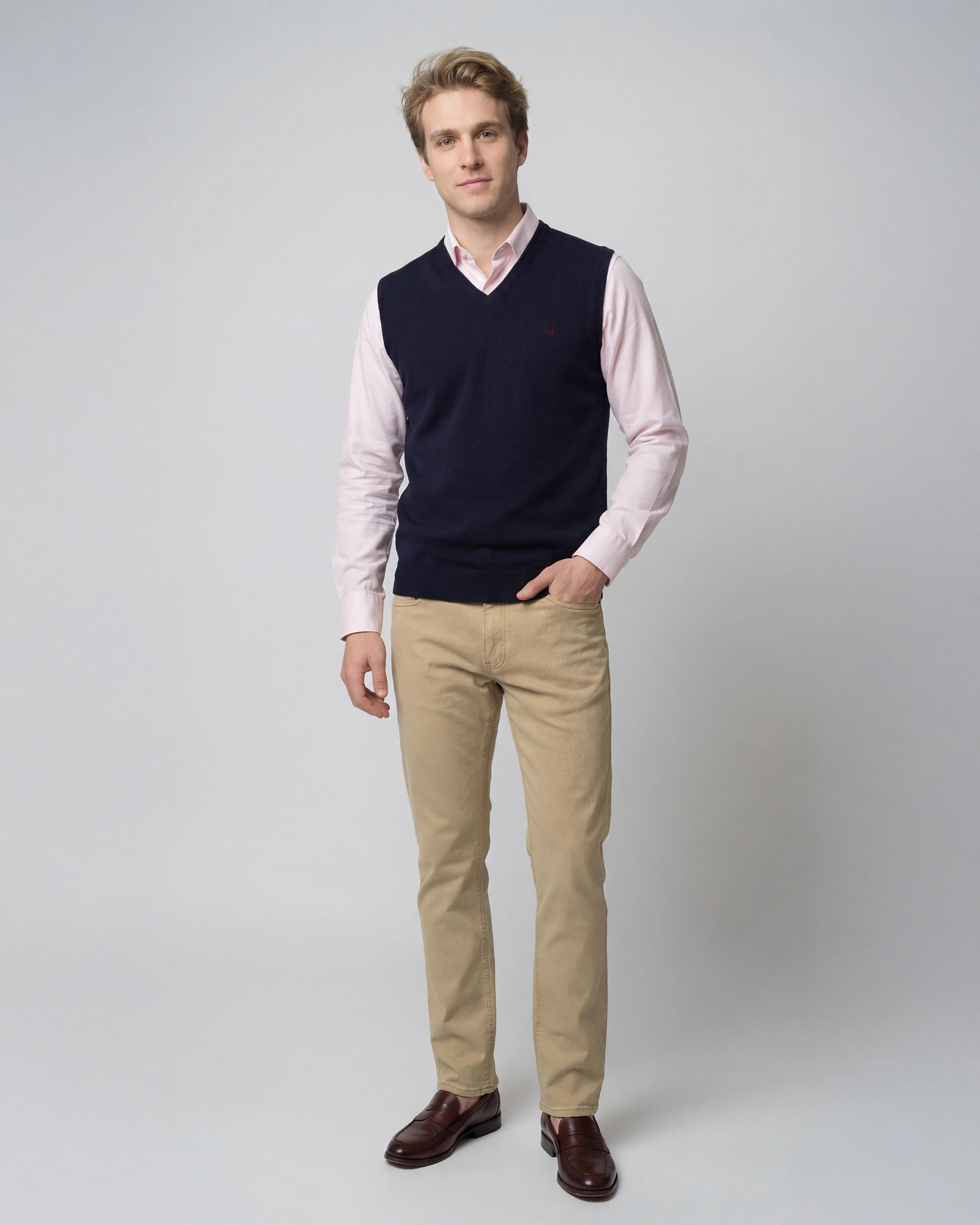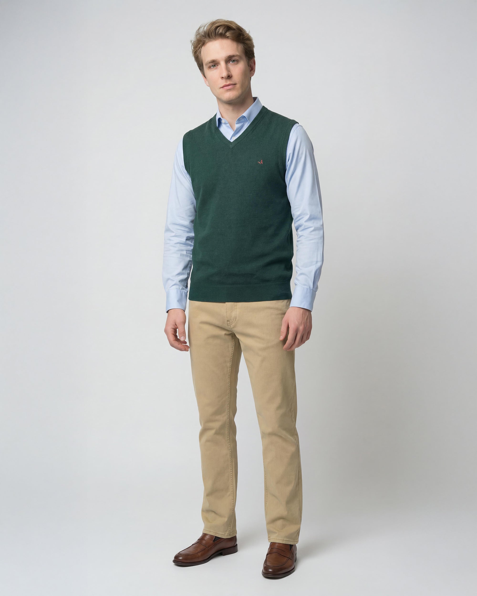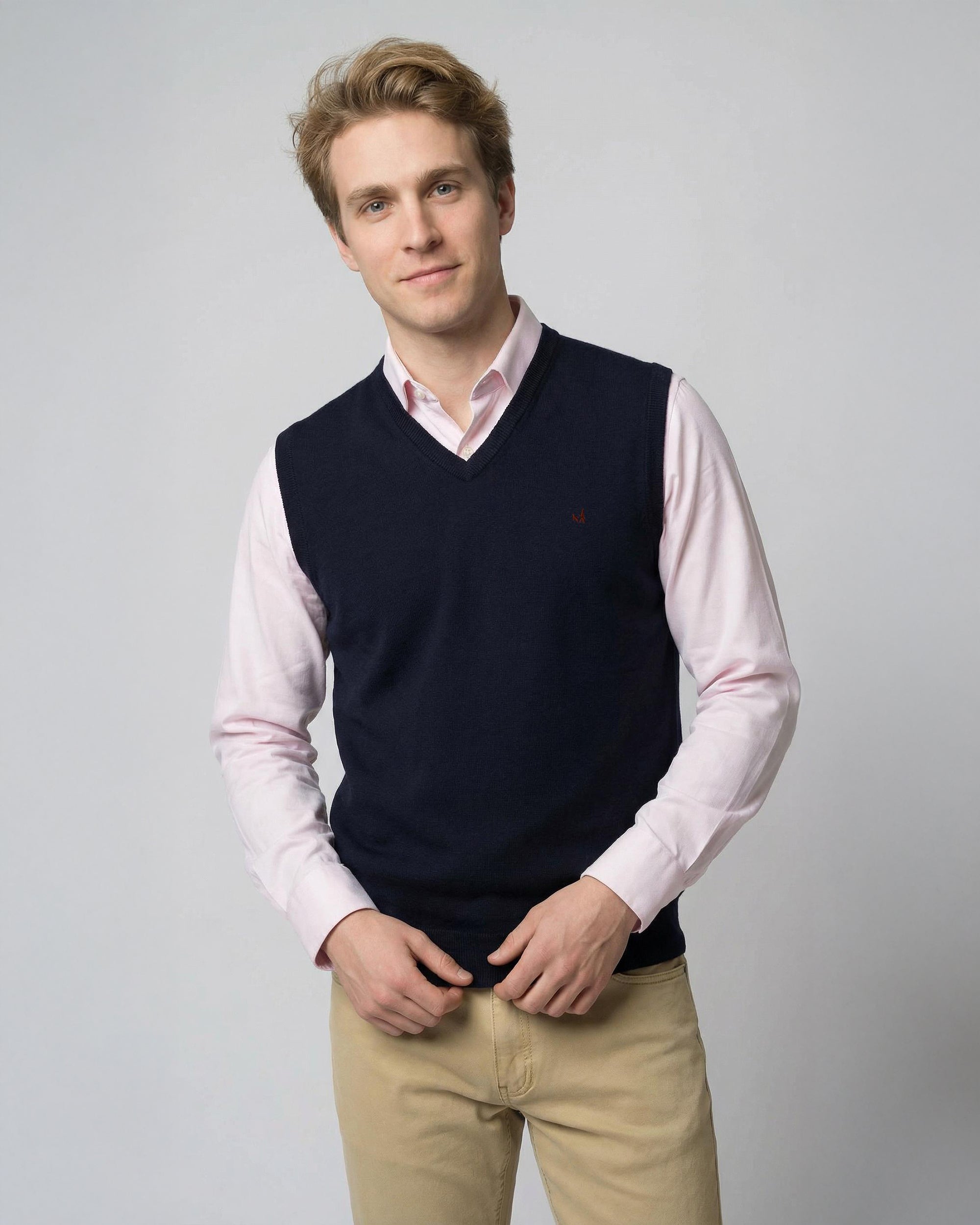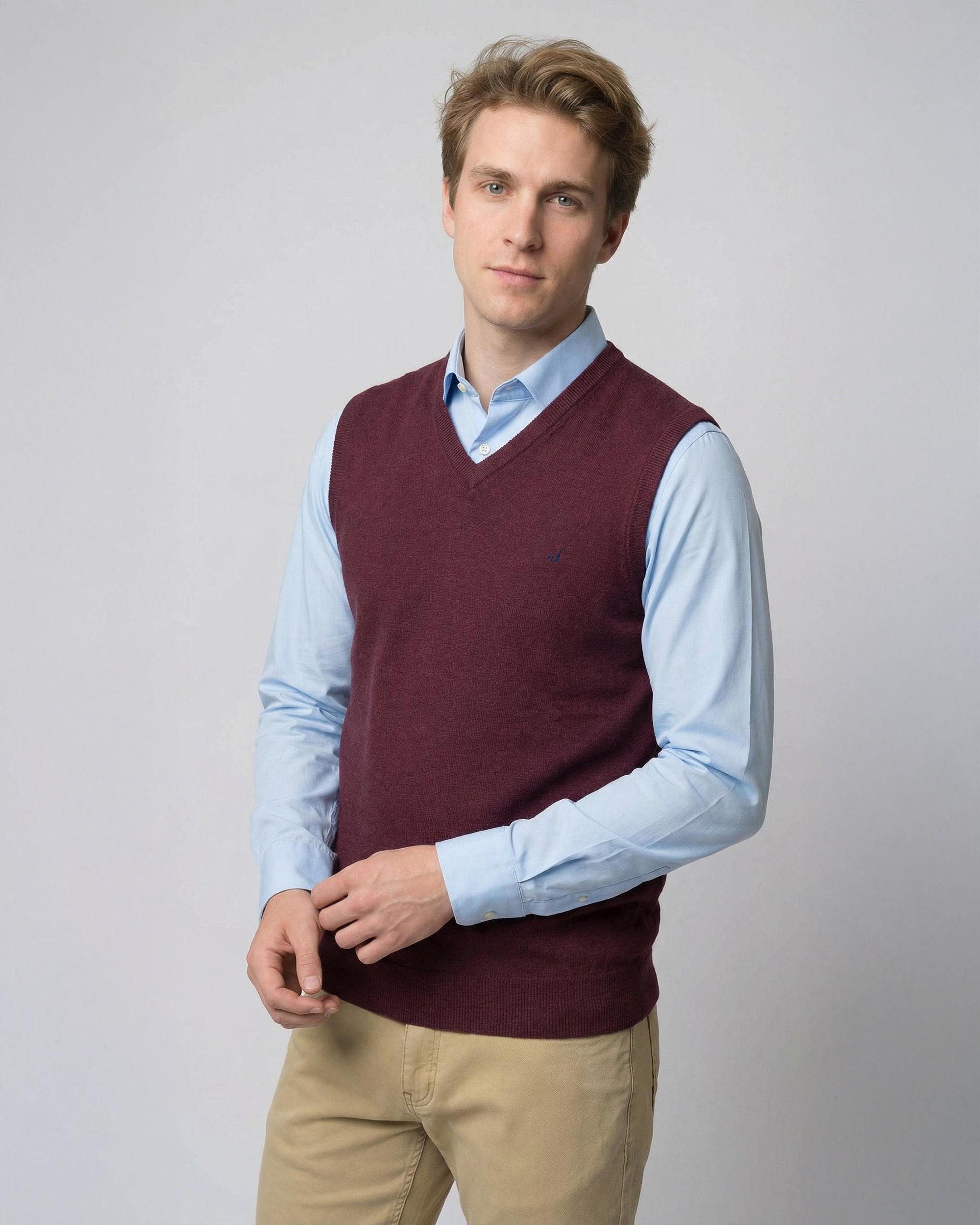Sweater Liso Merino Cuello V Sin Mangas