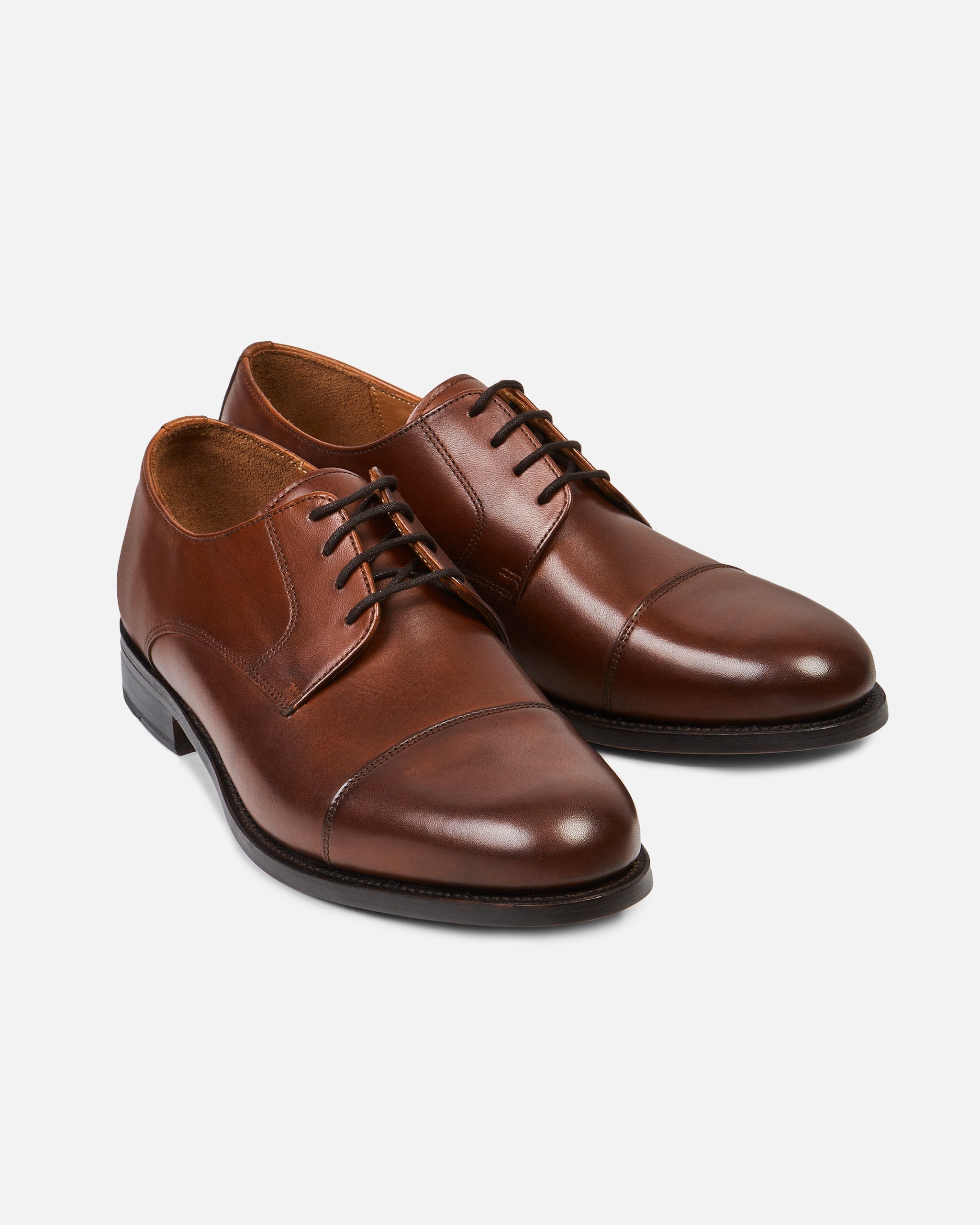 Los Derbys son un Tipo de Zapatos Oxfords con Cordones. Se dice que Nacieron en Escocia, en Balmoral en el Siglo 19 y por esto eran llamados Inicialmente como Balmorals. Luego en la Universidad de Oxford los Adoptaron y desde ahí son conocidos como Oxfords. Esta Versión son los famosos Toe Cap, que llevan una Costura en la Punta. En esta Ocasión en un Cuero Español de Altísima Calidad, Suela Italiana de Goma Liviana y Duradera, que los hace unos Zapatos de Altísima Calidad, pero a su vez Cómodos. Modelo: 7009857. Zapato de Cuero de Procedencia Española con Cordones. Forro en Cuero. Suela de Eva Italiana Ultra Liviana. Construcción Tradicional Blake. Arriba Cuero - Forro Cuero - Suela Goma Evitar el Agua y Limpiar solo en Zapateros Especializados.