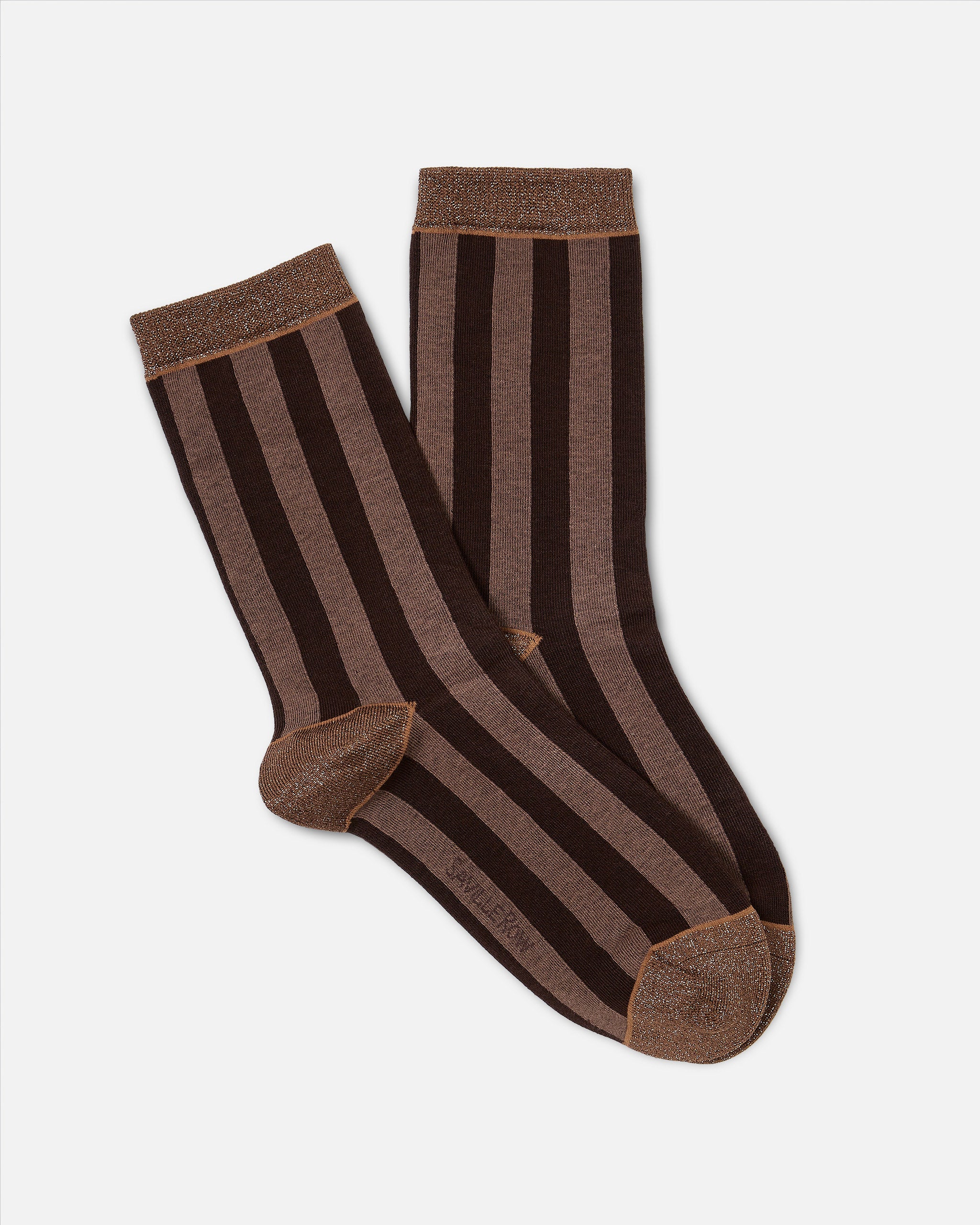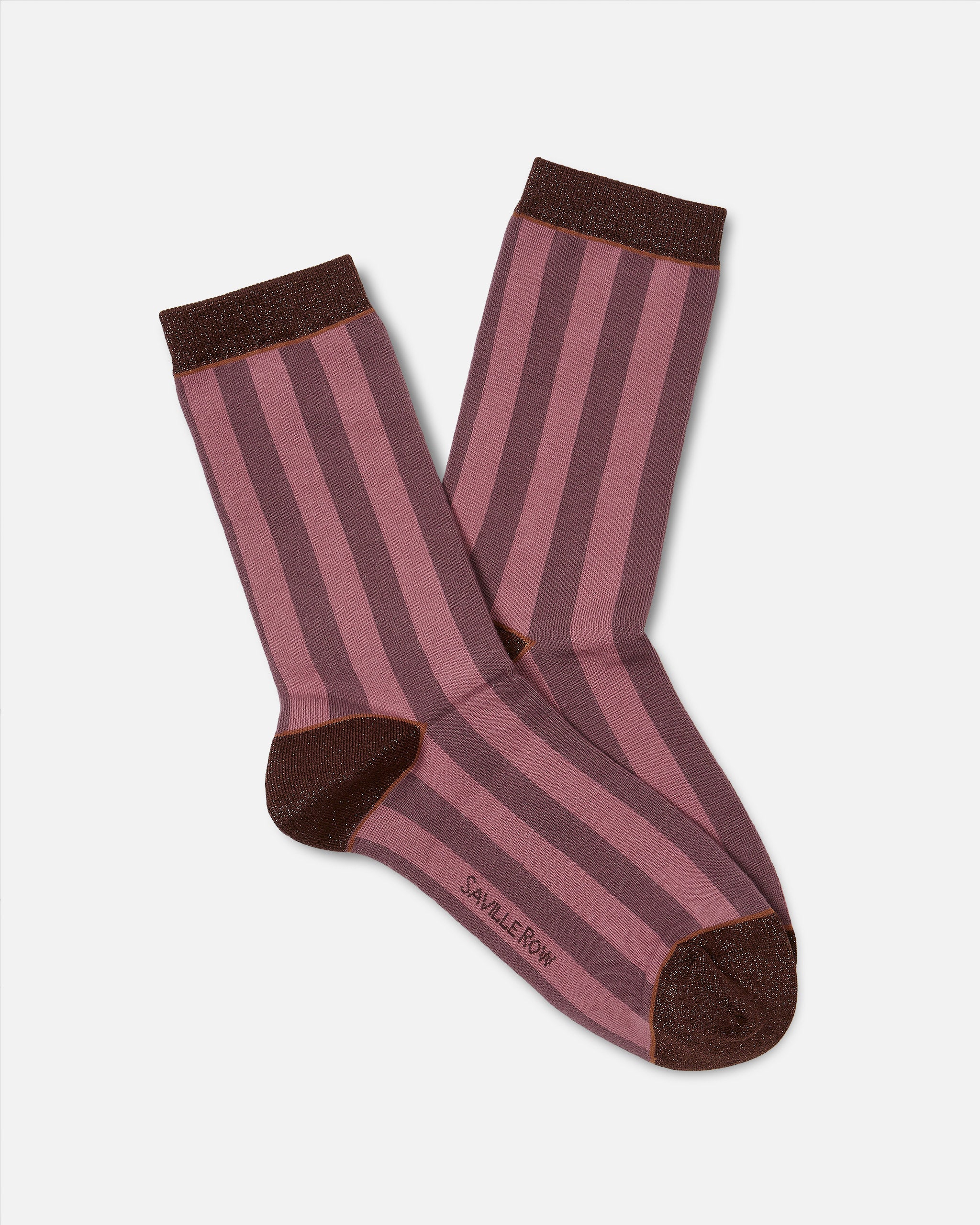 Calcetín tricolor con rayas verticales y detalles con lurex