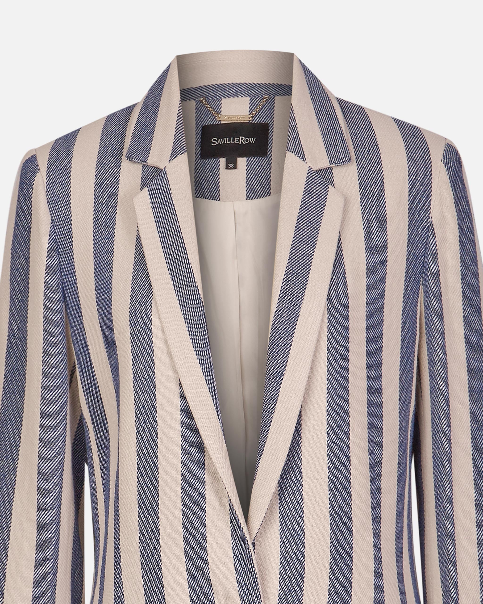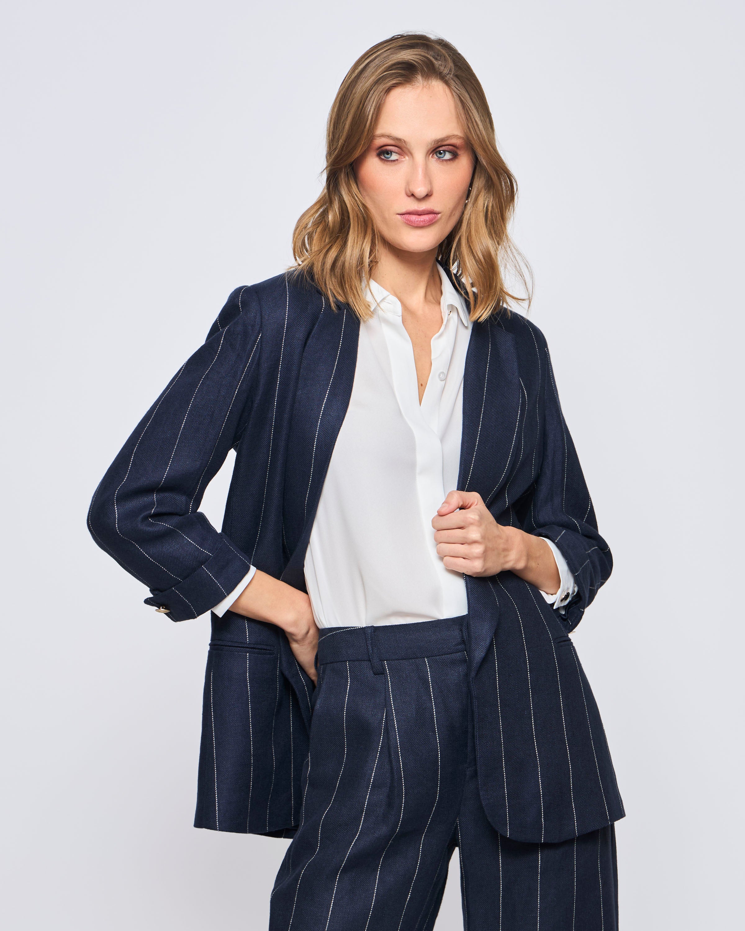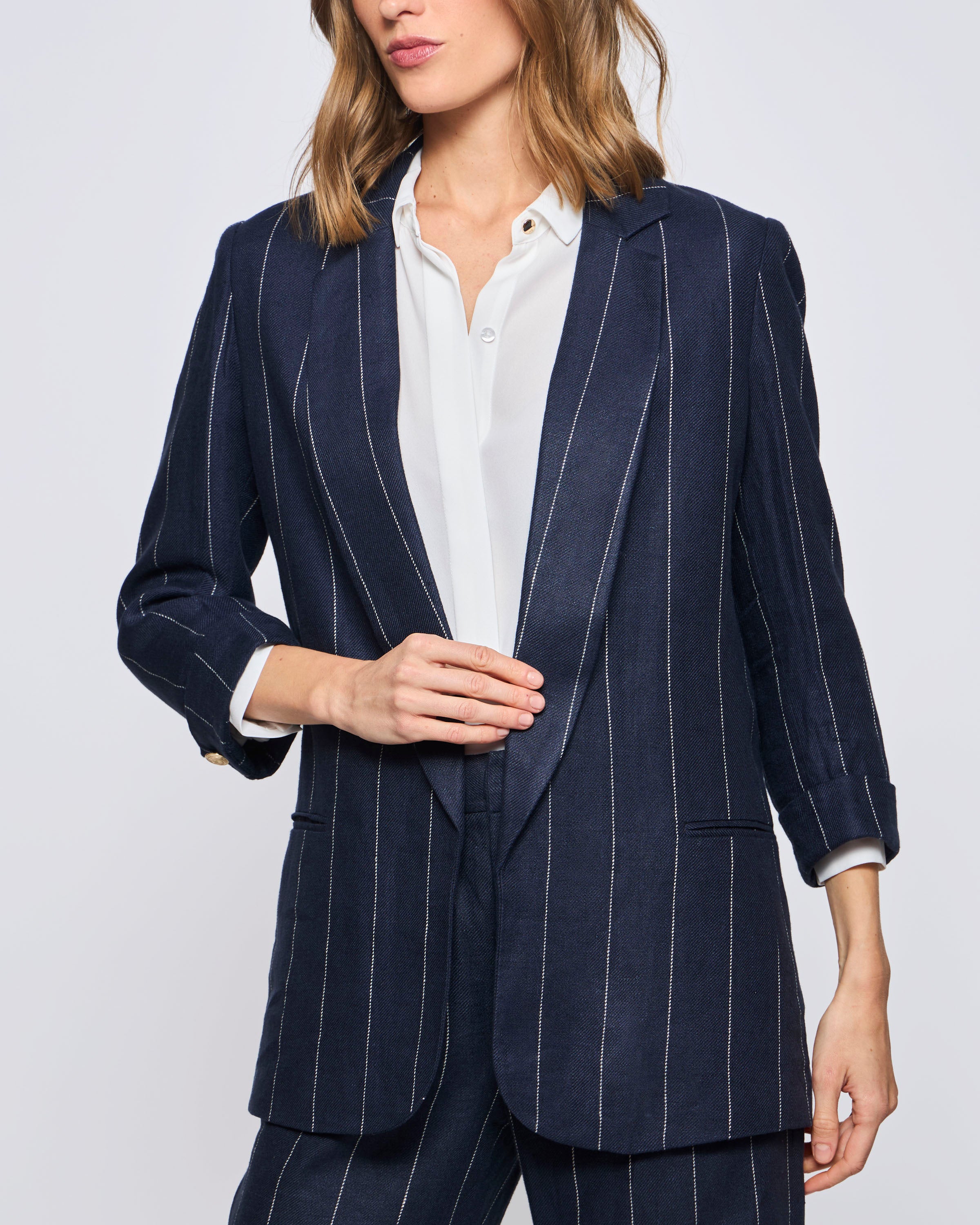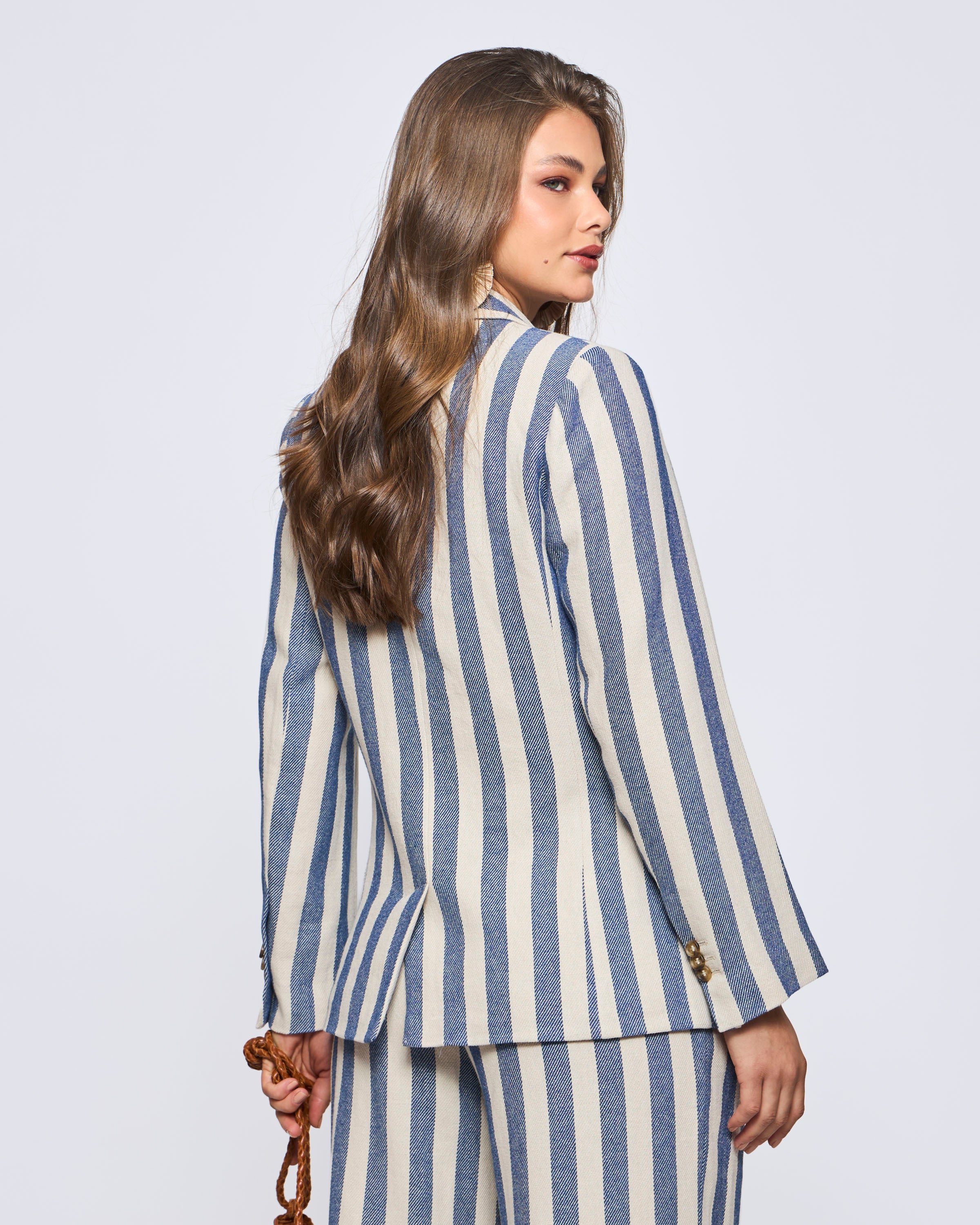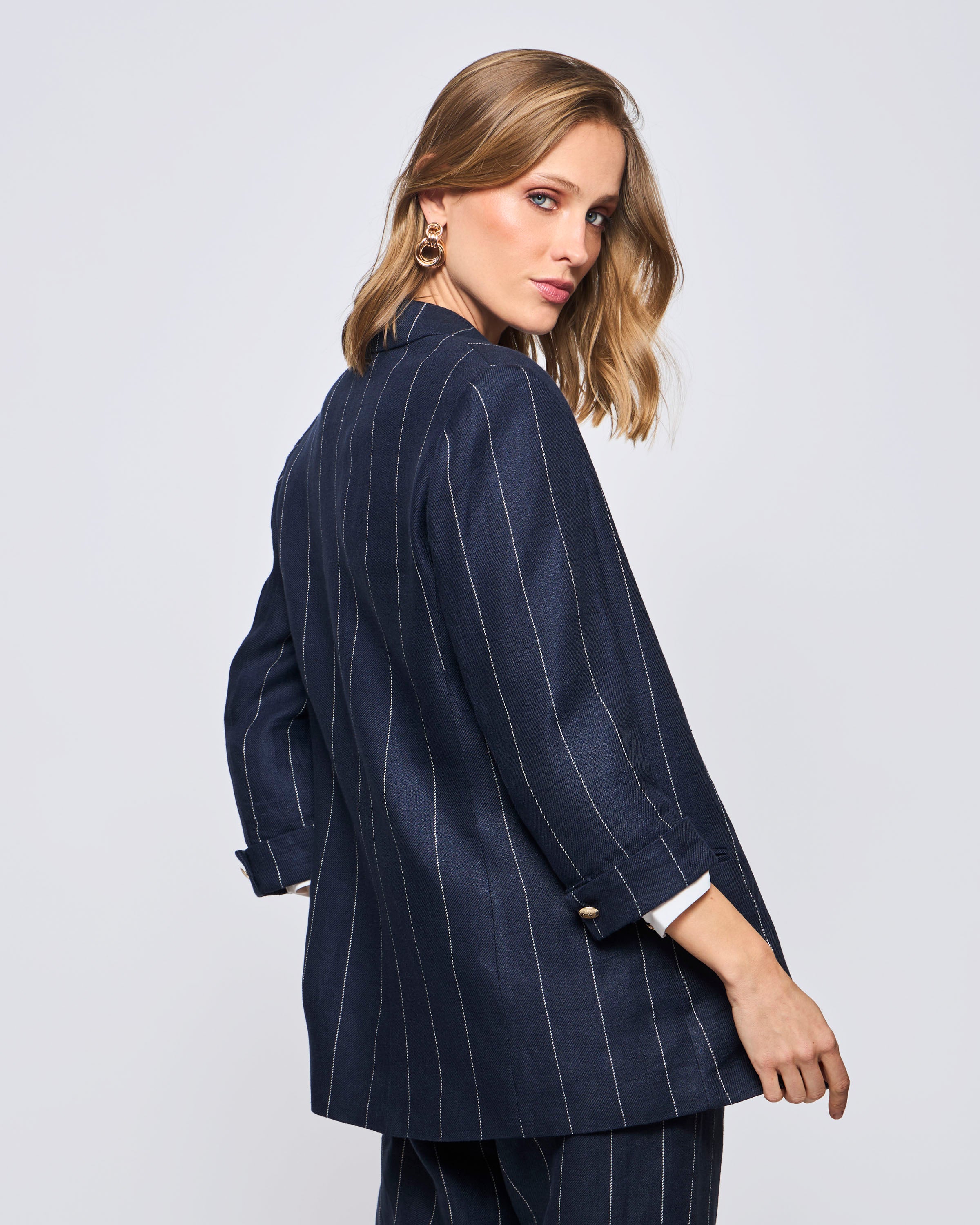 Blazer Lino Manga 3/4 Raya delgada Azul Blanco