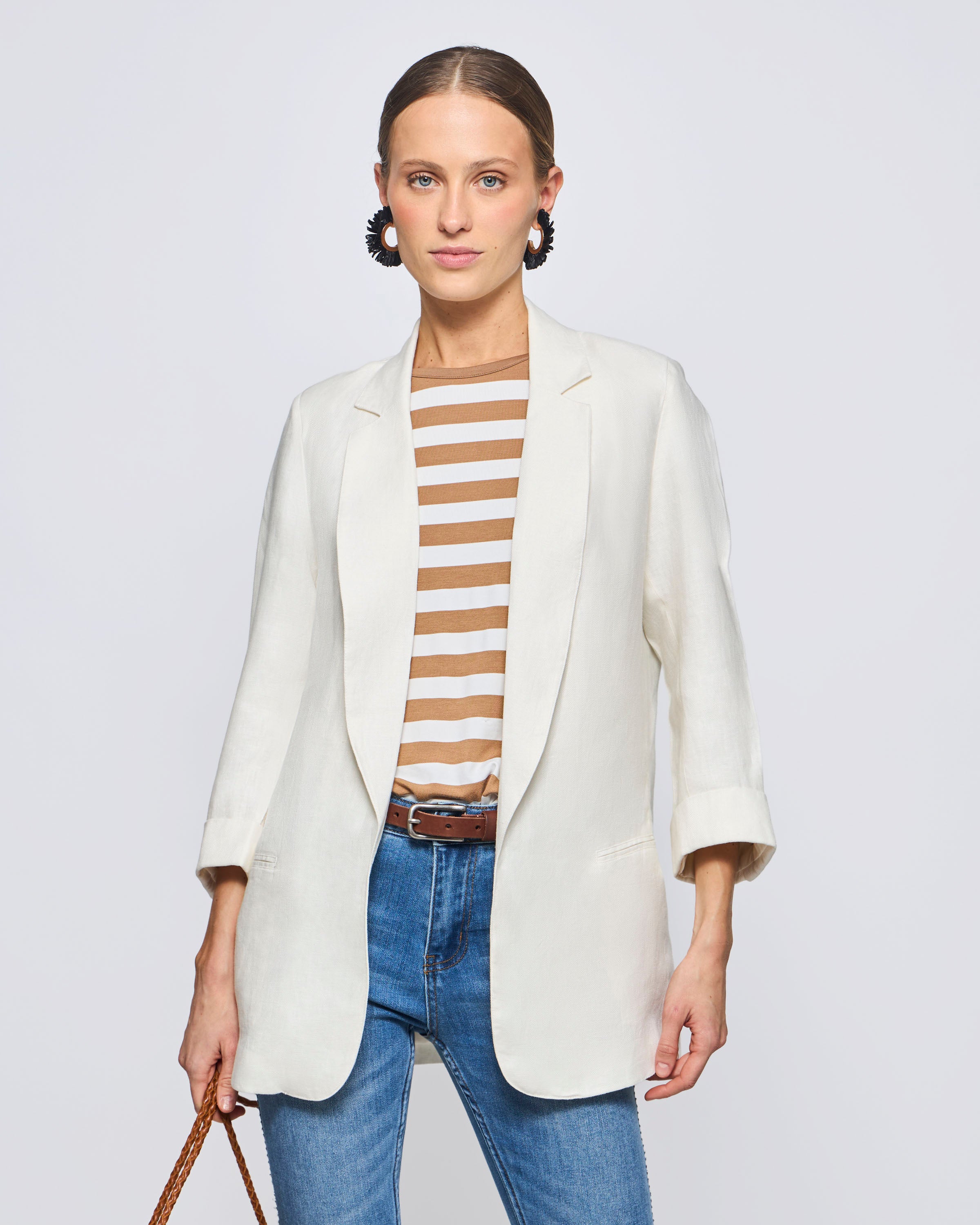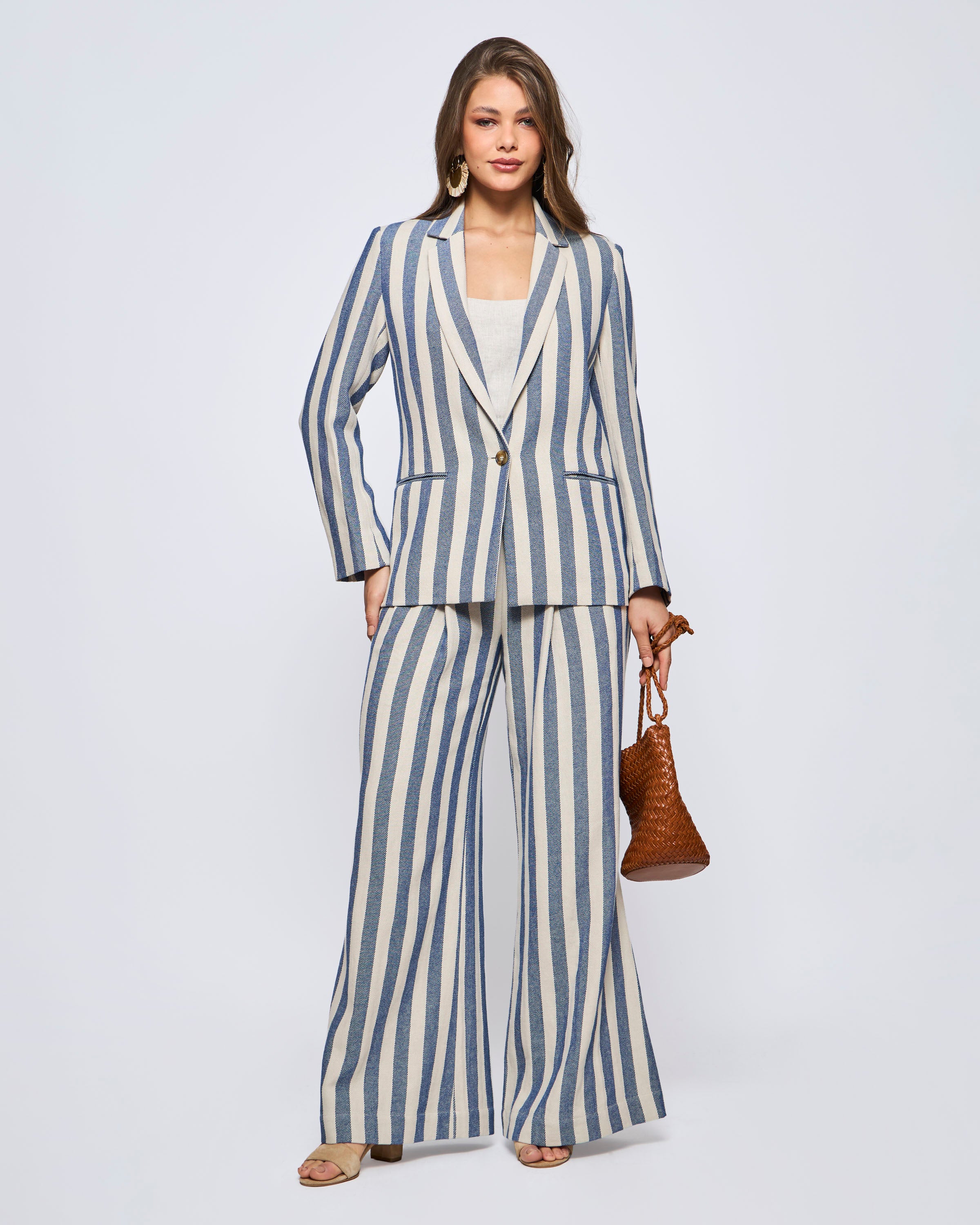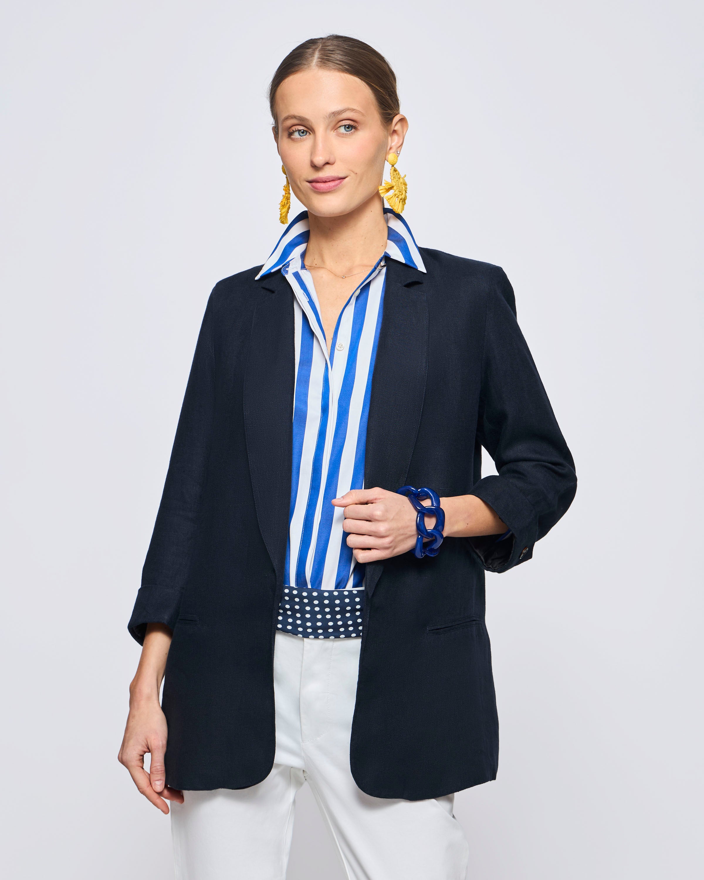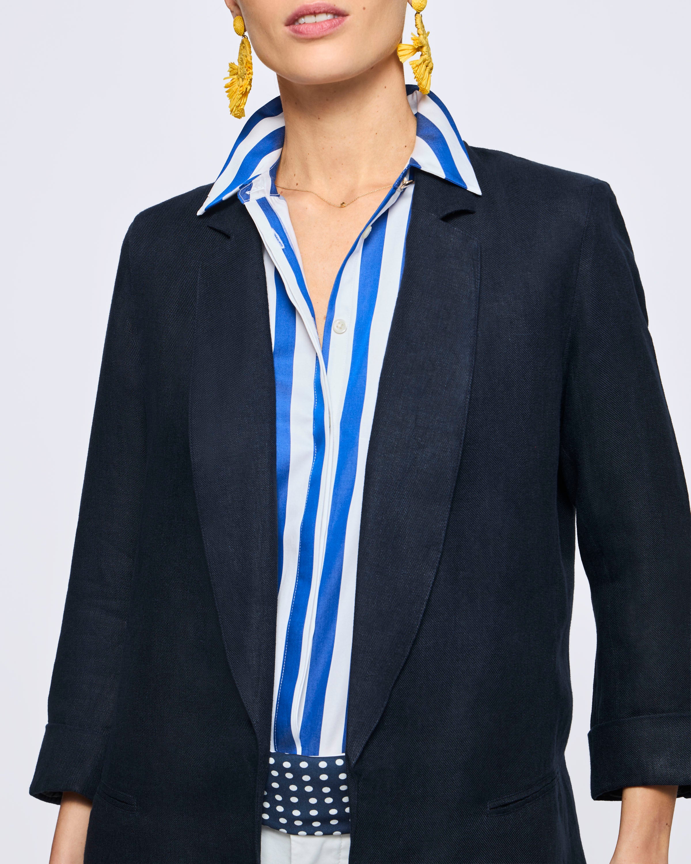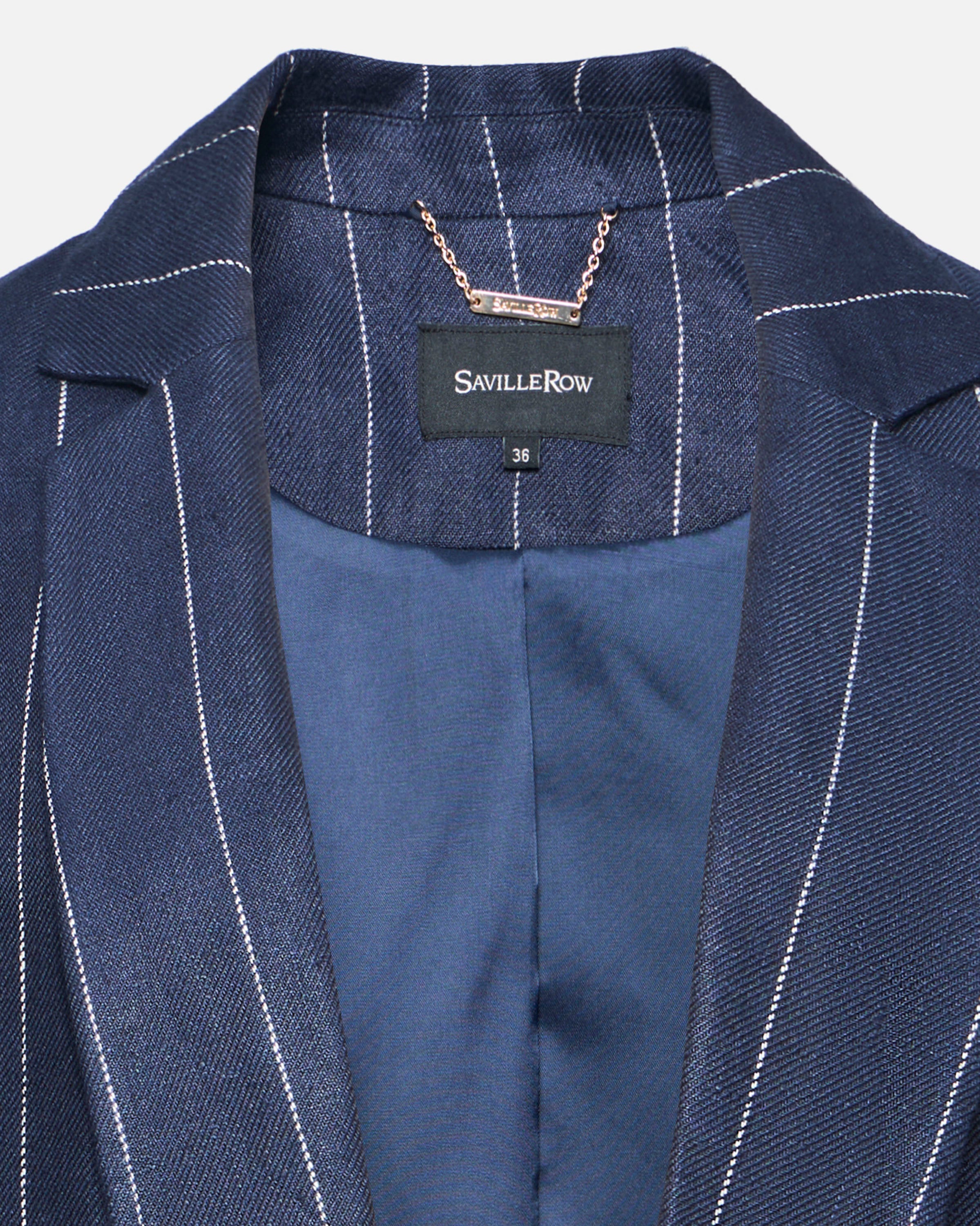 Blazer Lino Manga 3/4 Raya delgada Azul Blanco