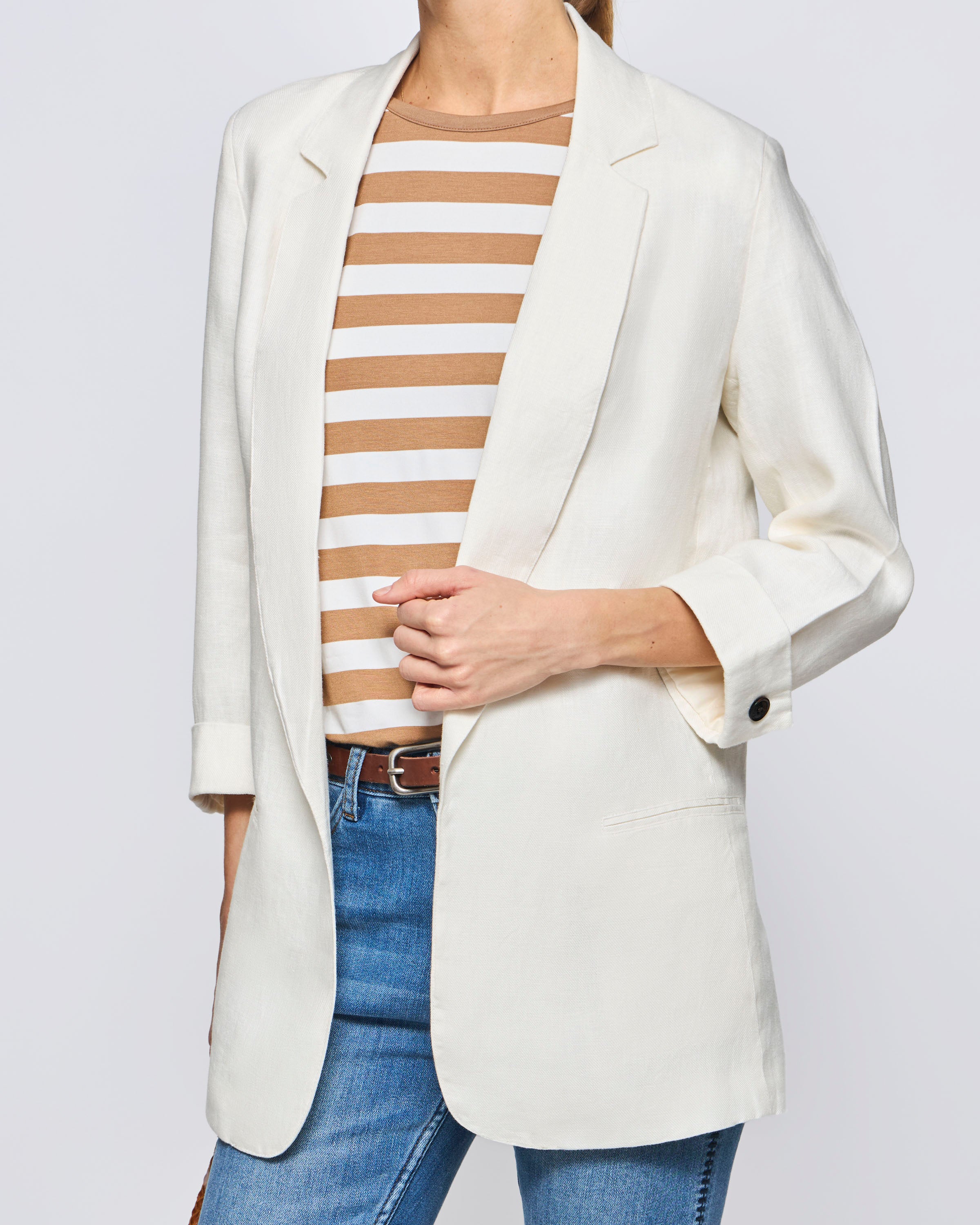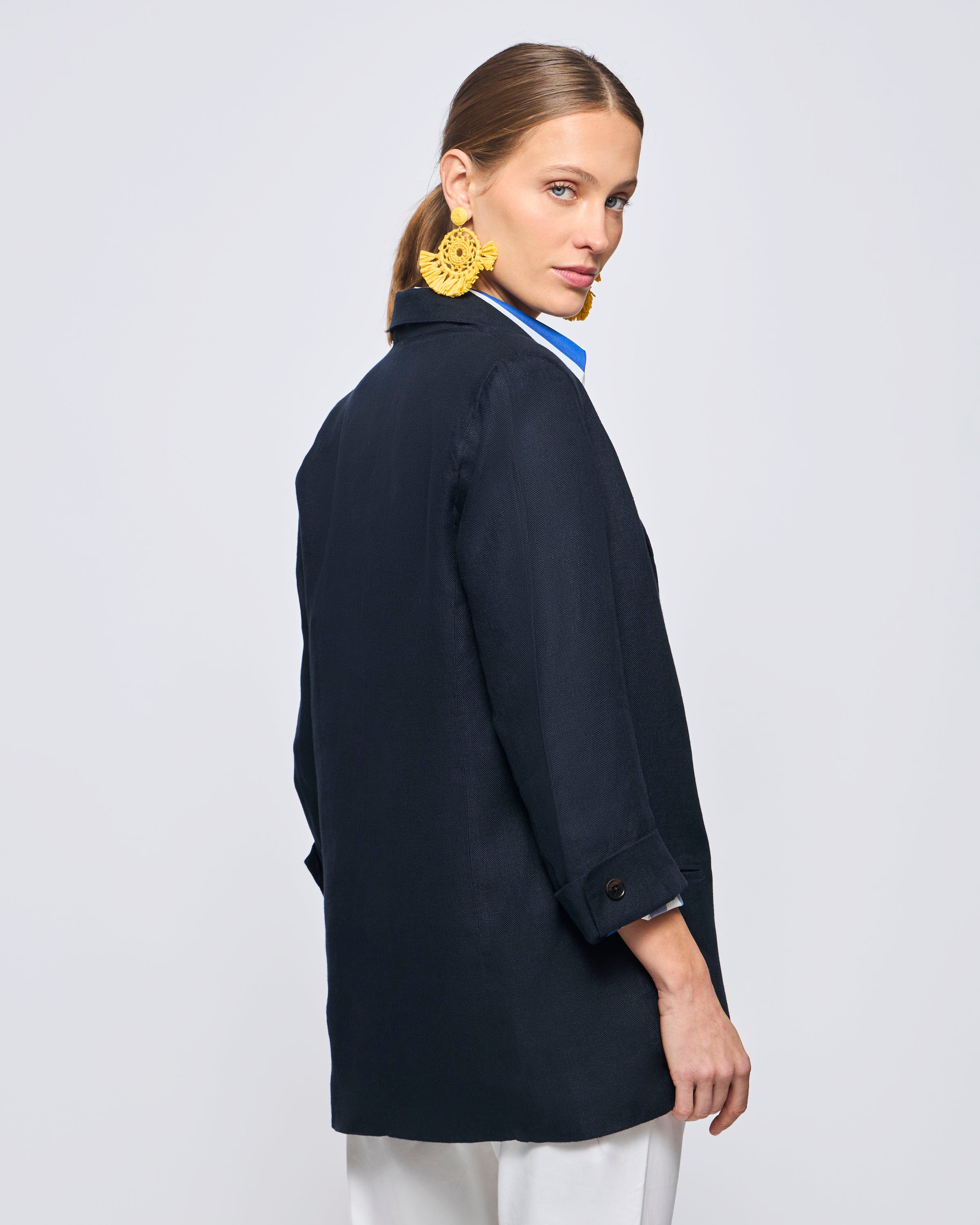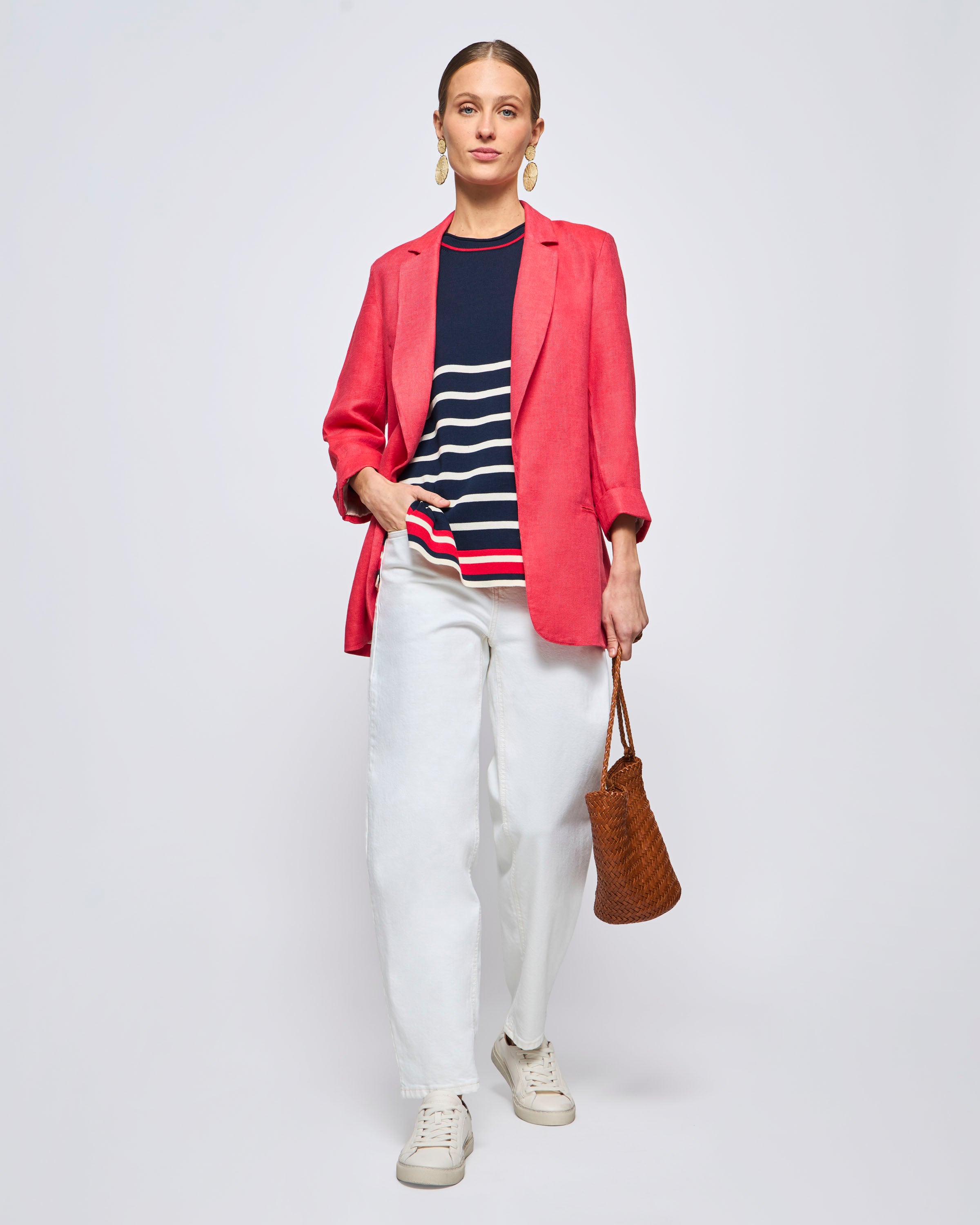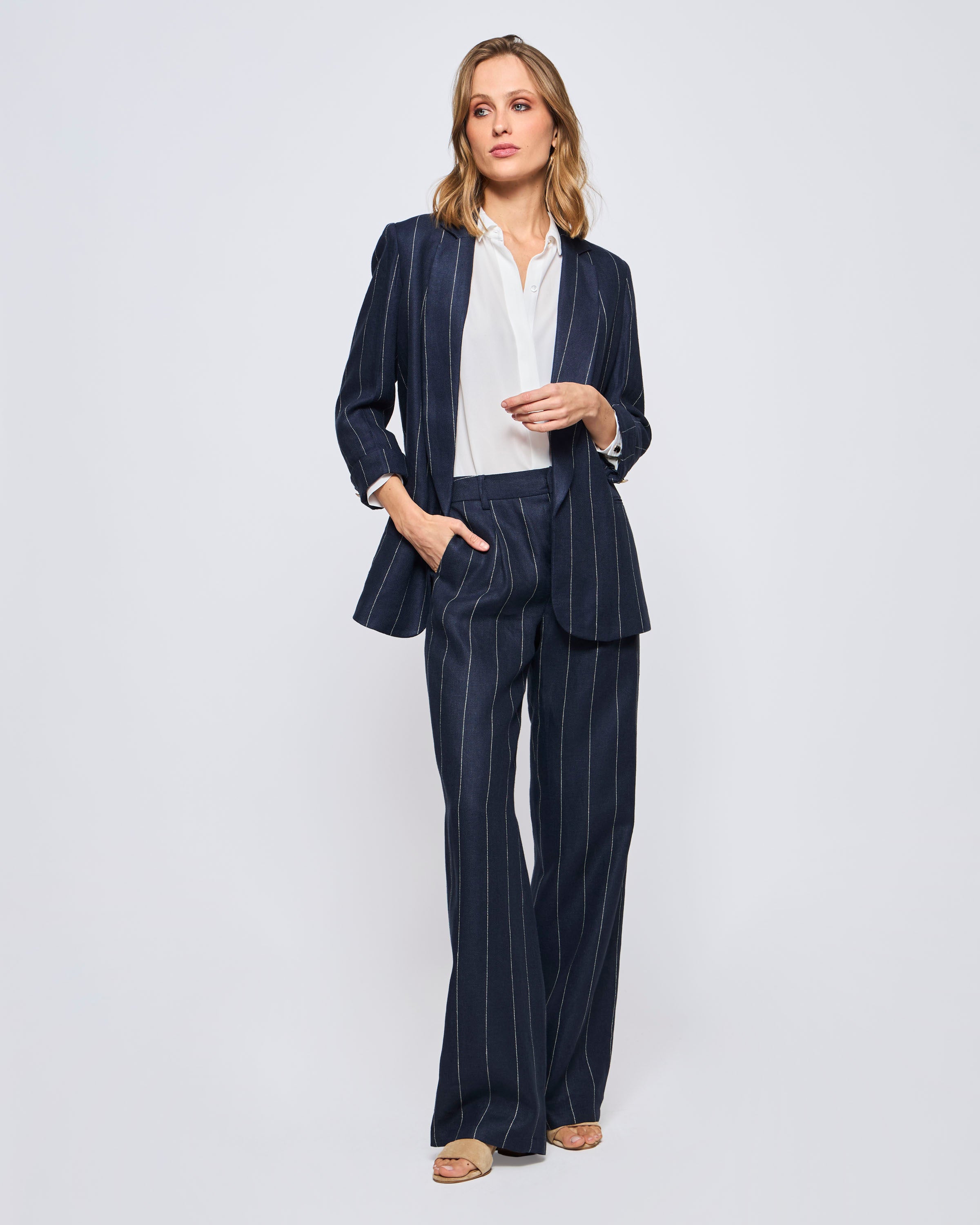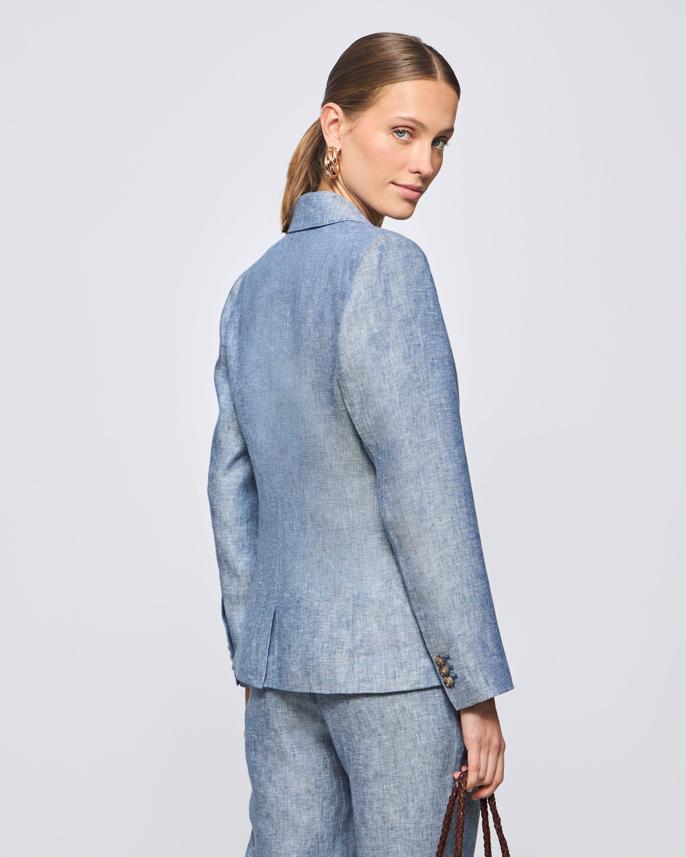 Blazer Lino Manga 3/4 Raya delgada Azul Blanco