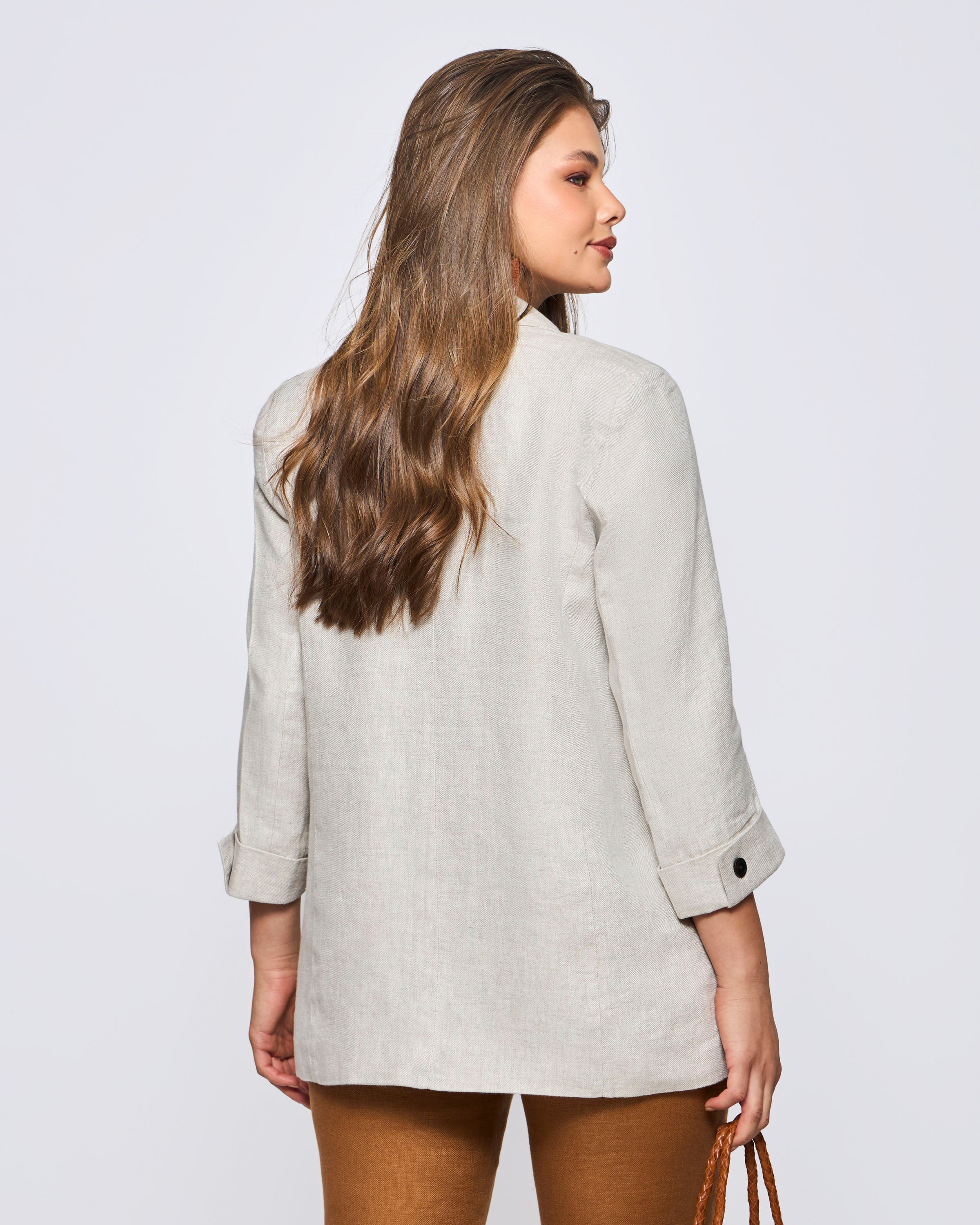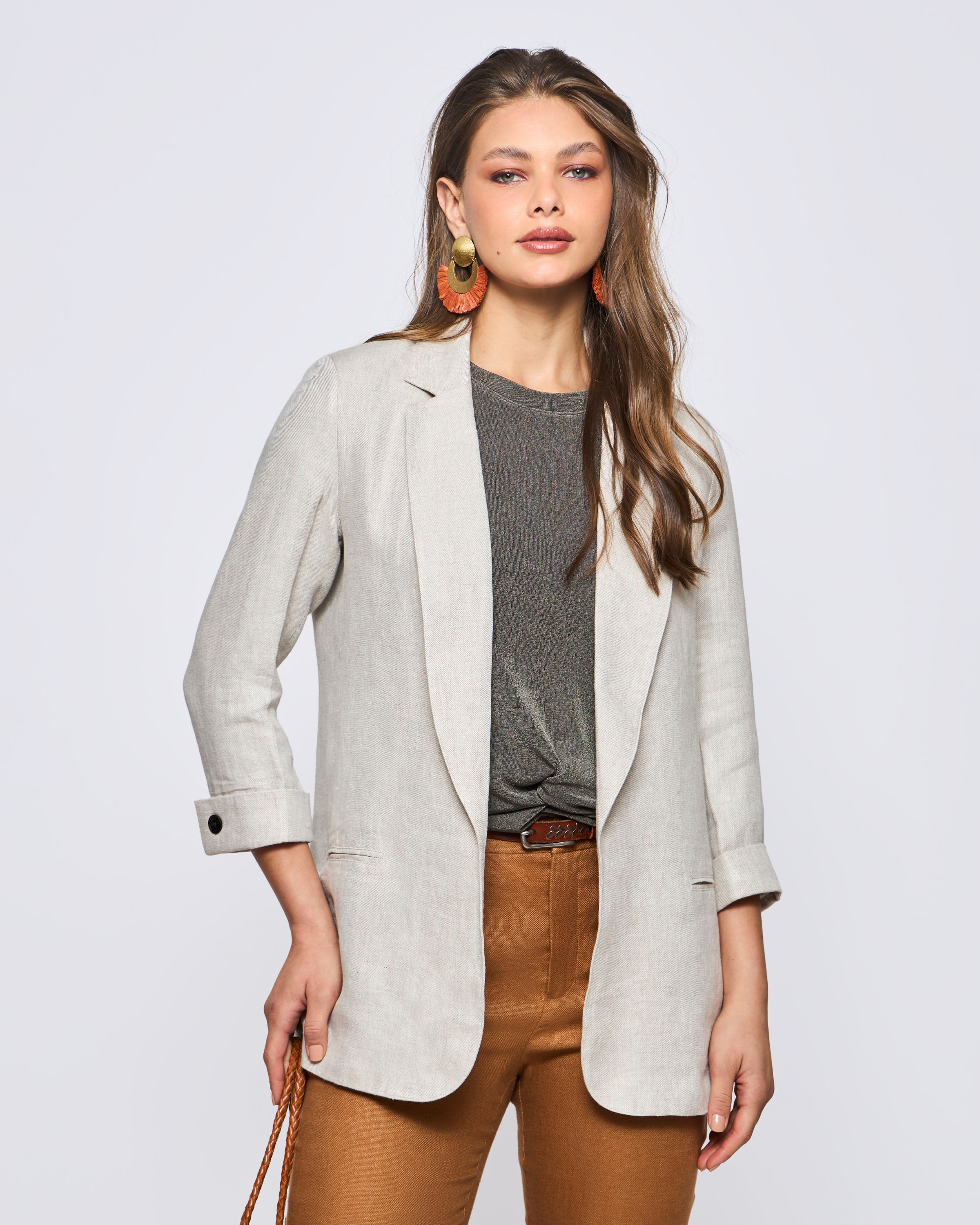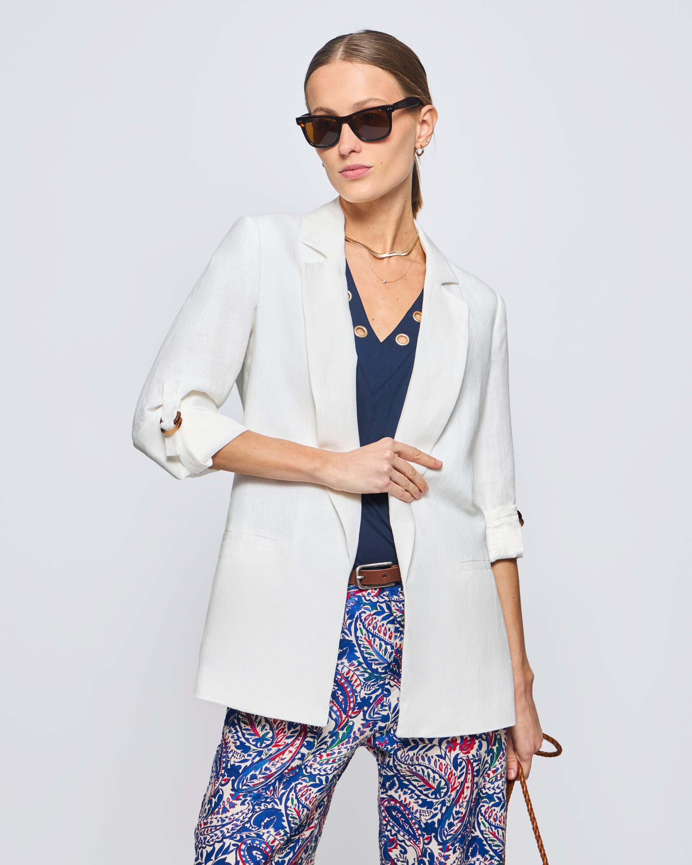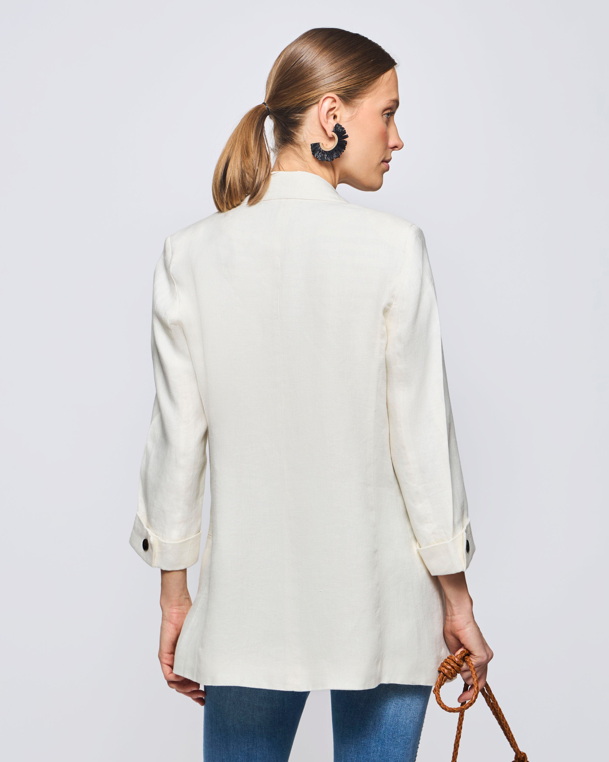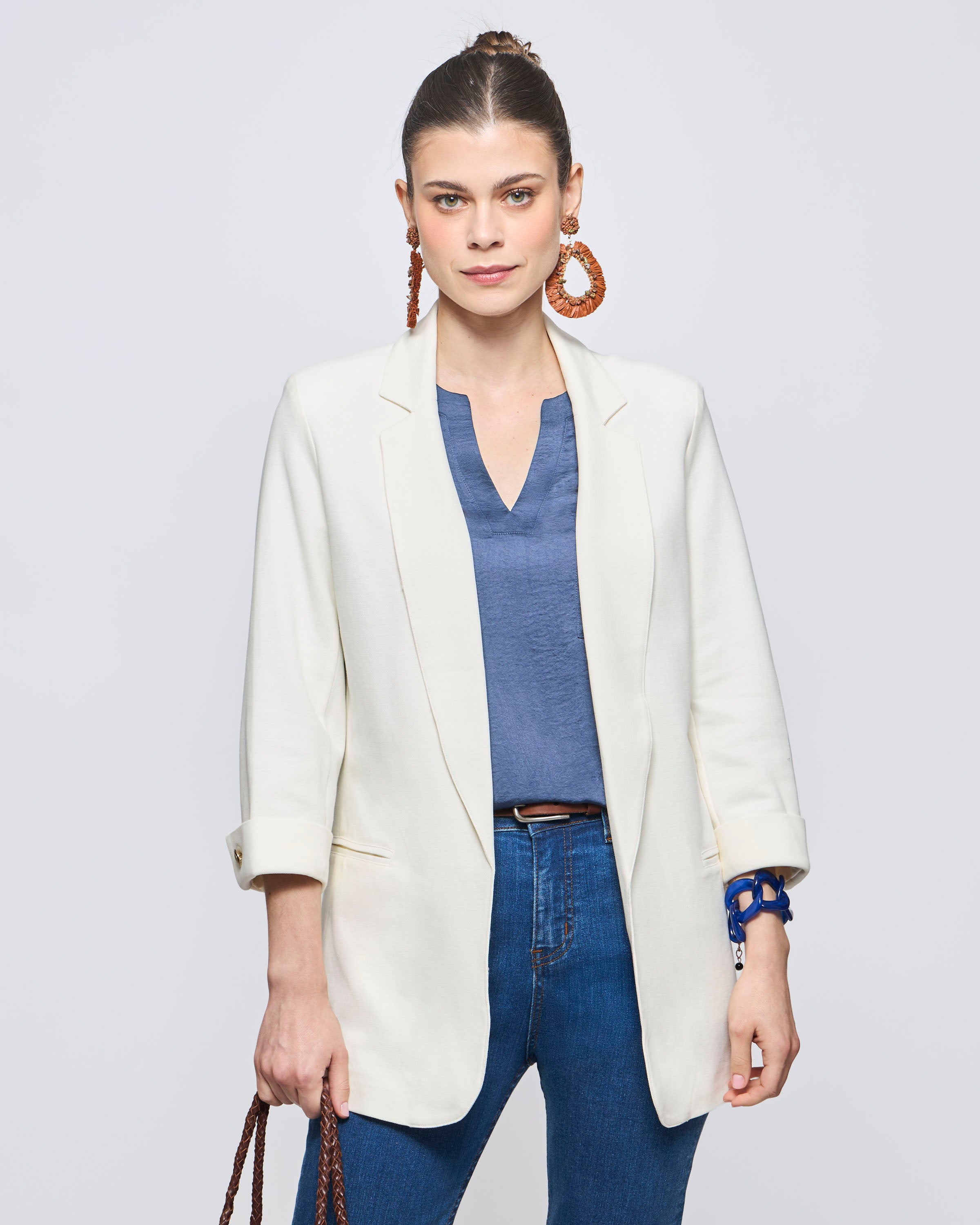 Blazer Lino Manga 3/4 Raya delgada Azul Blanco
