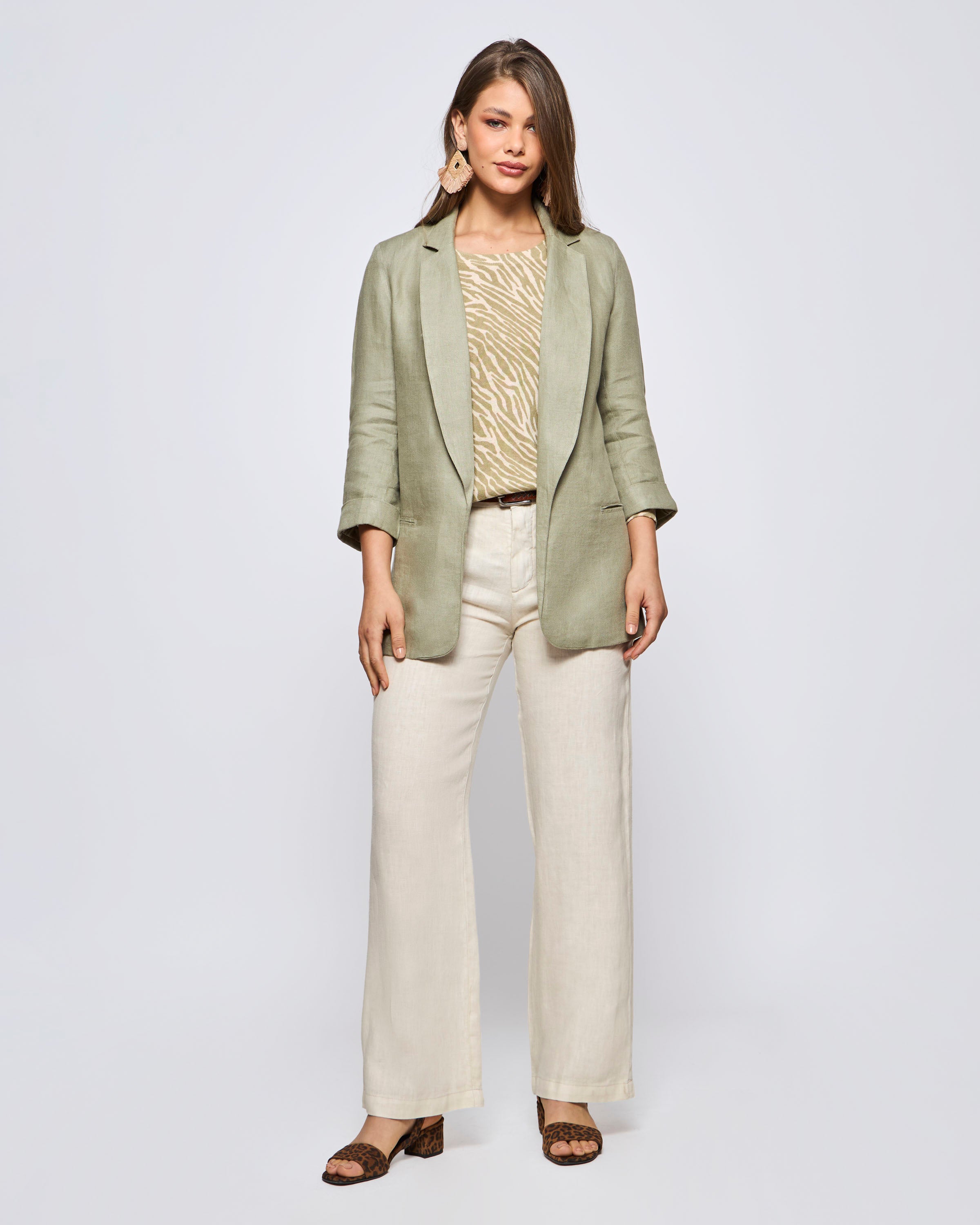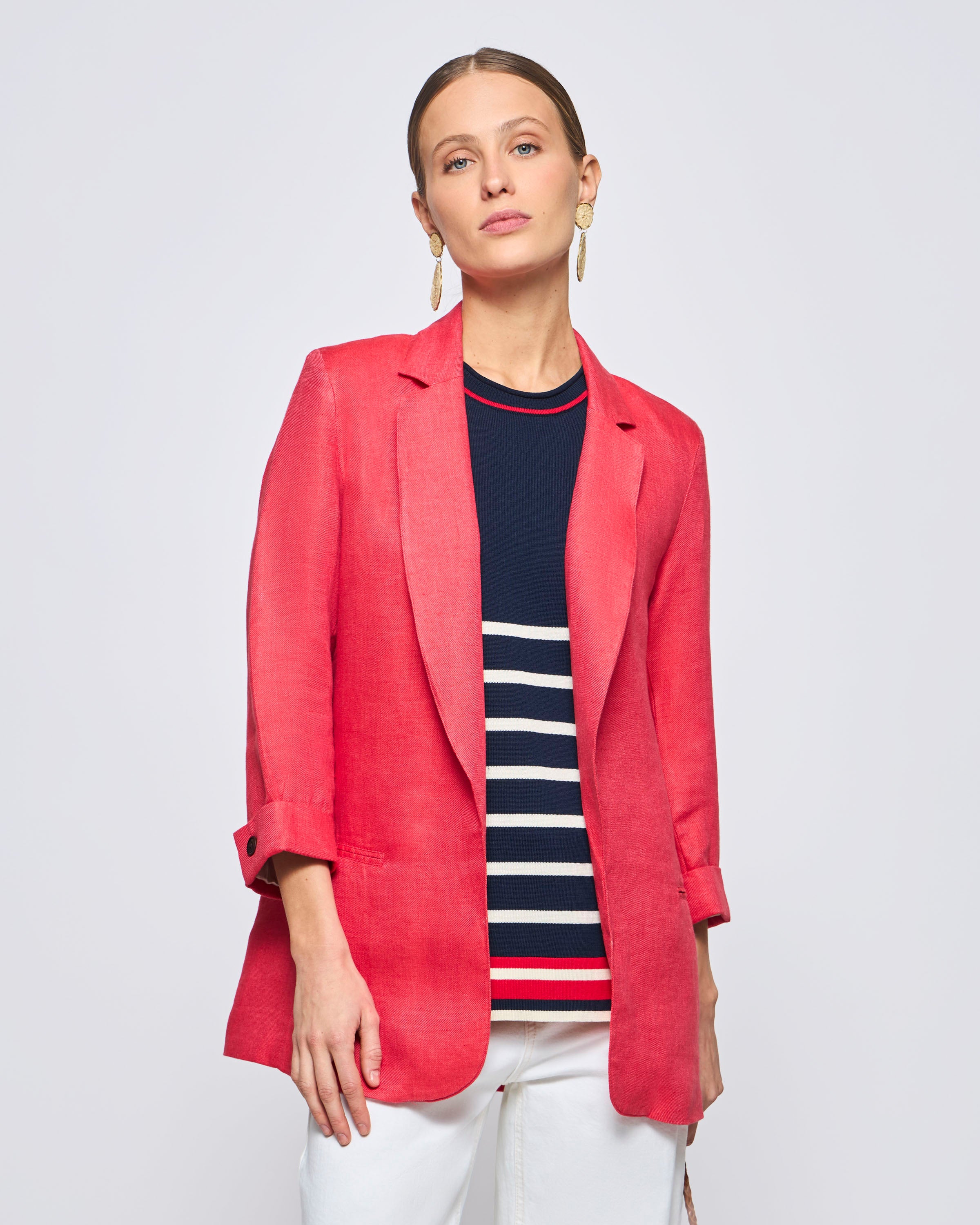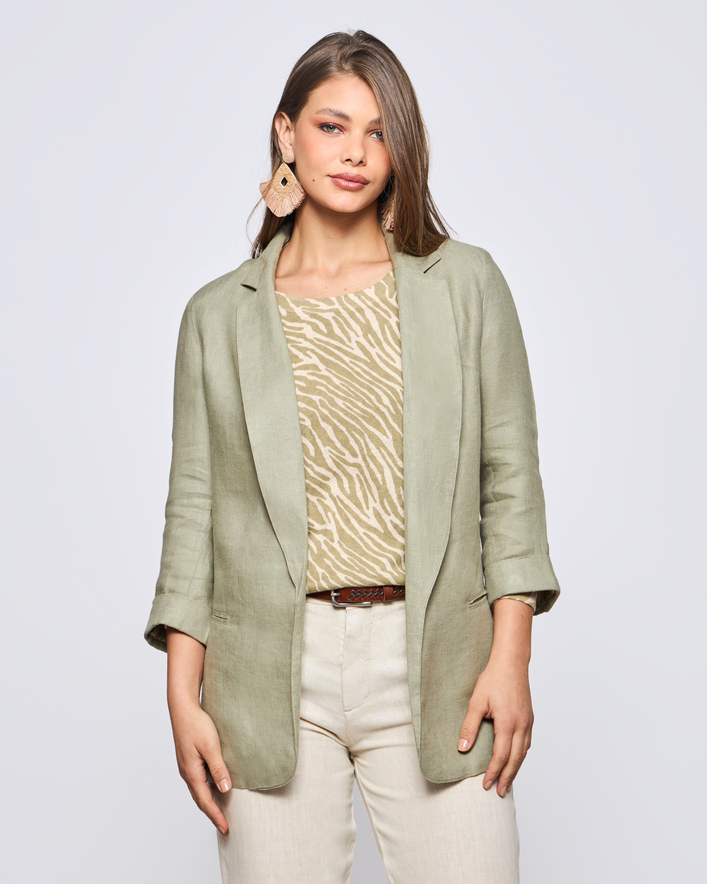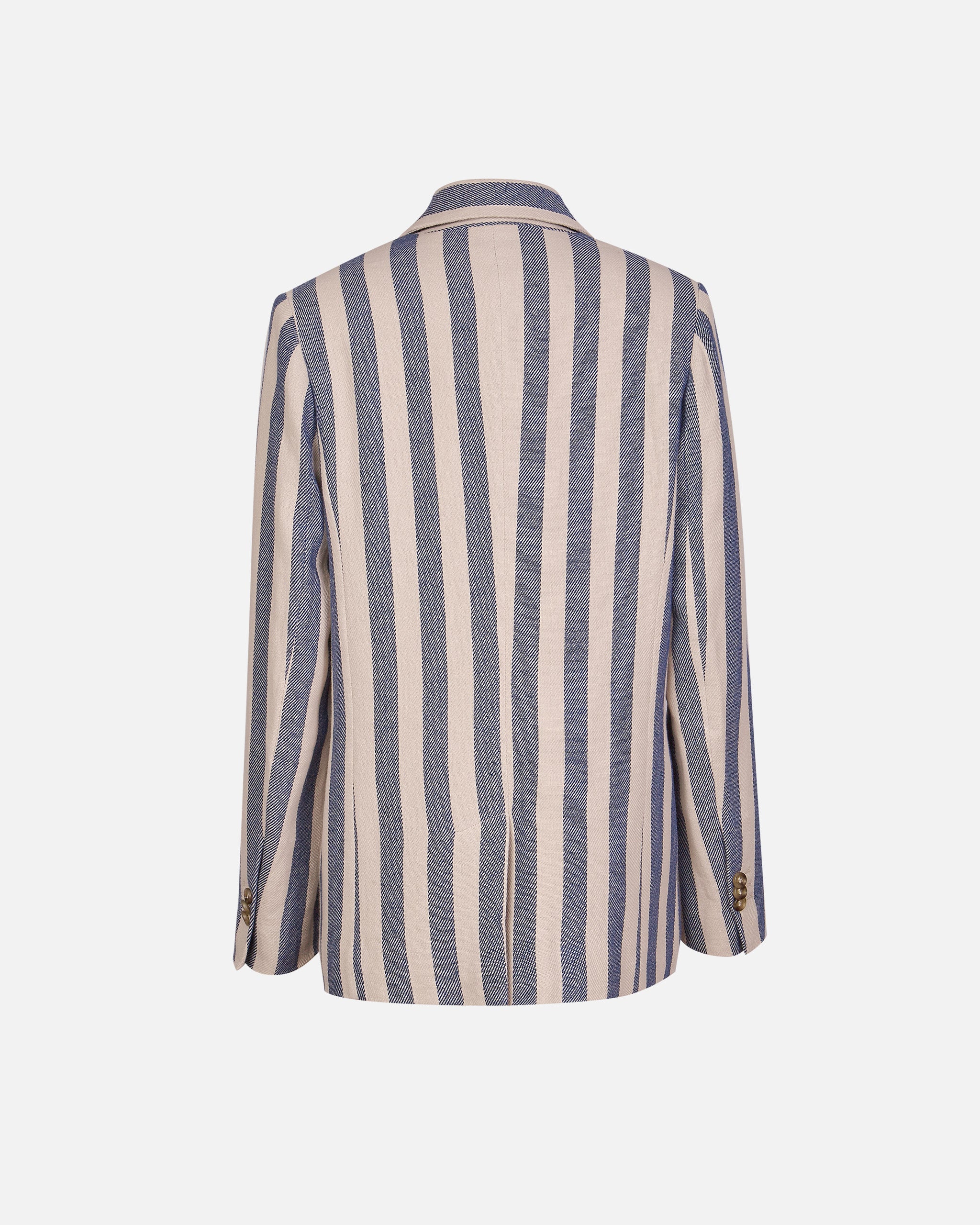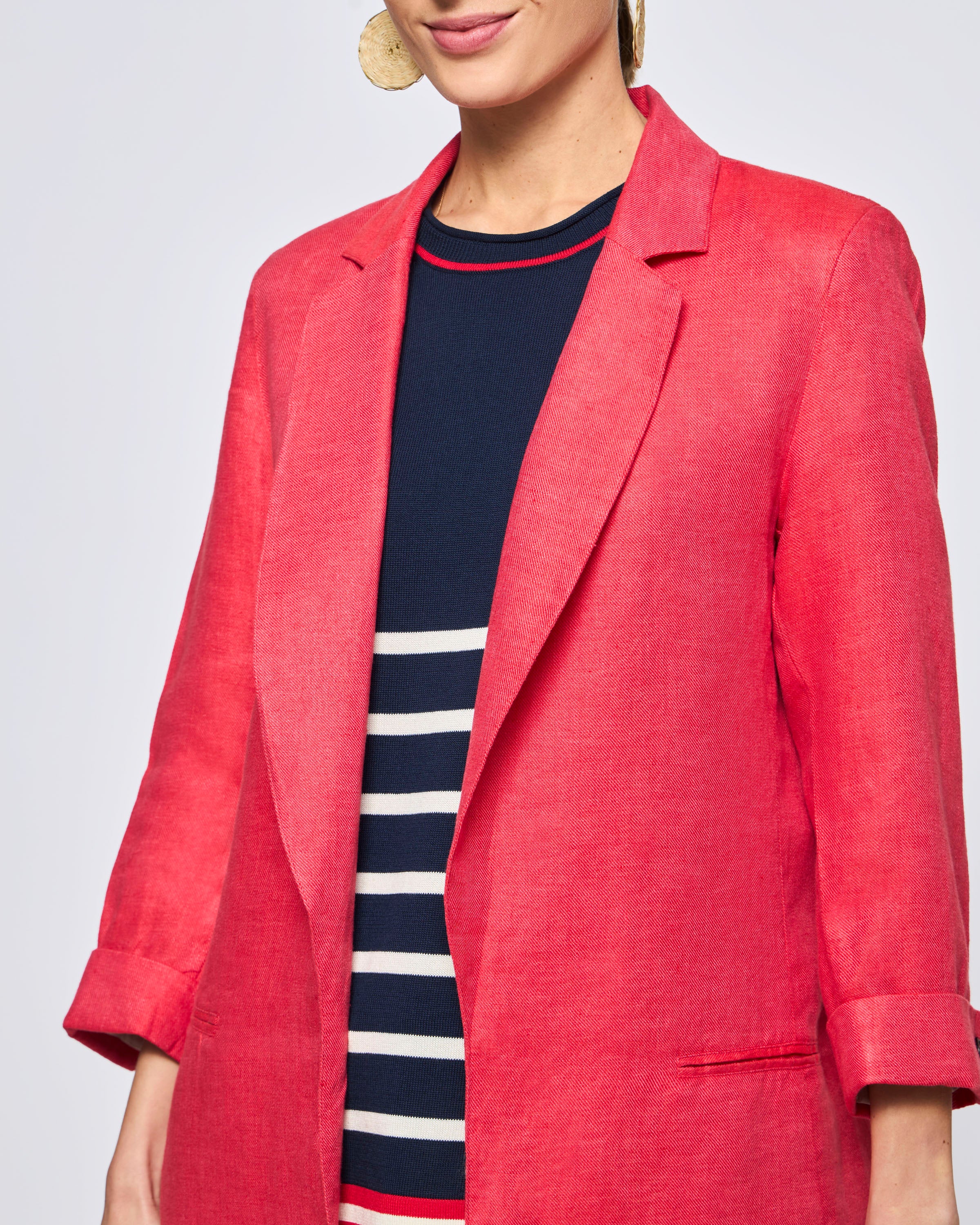 Blazer Lino Manga 3/4 Raya delgada Azul Blanco