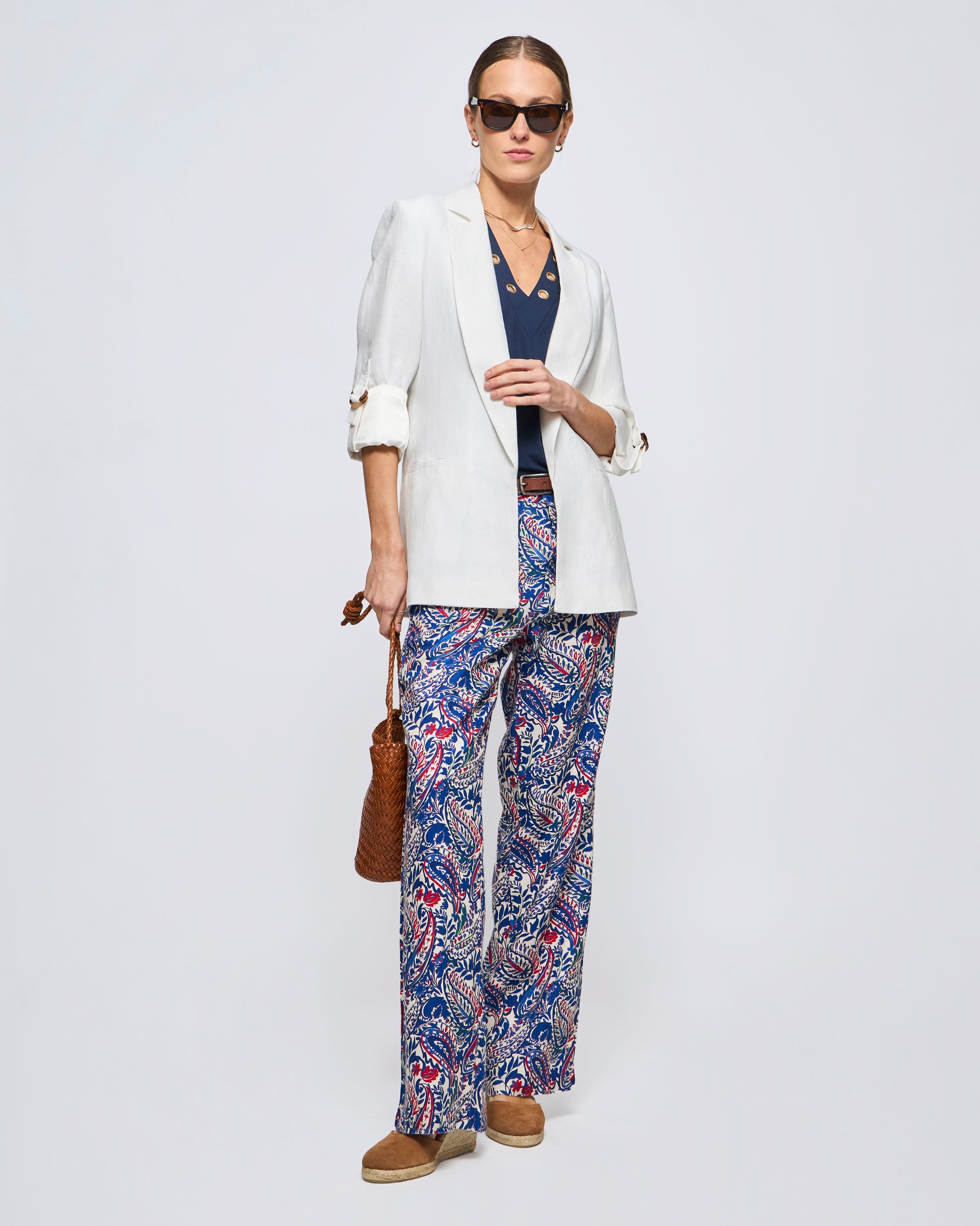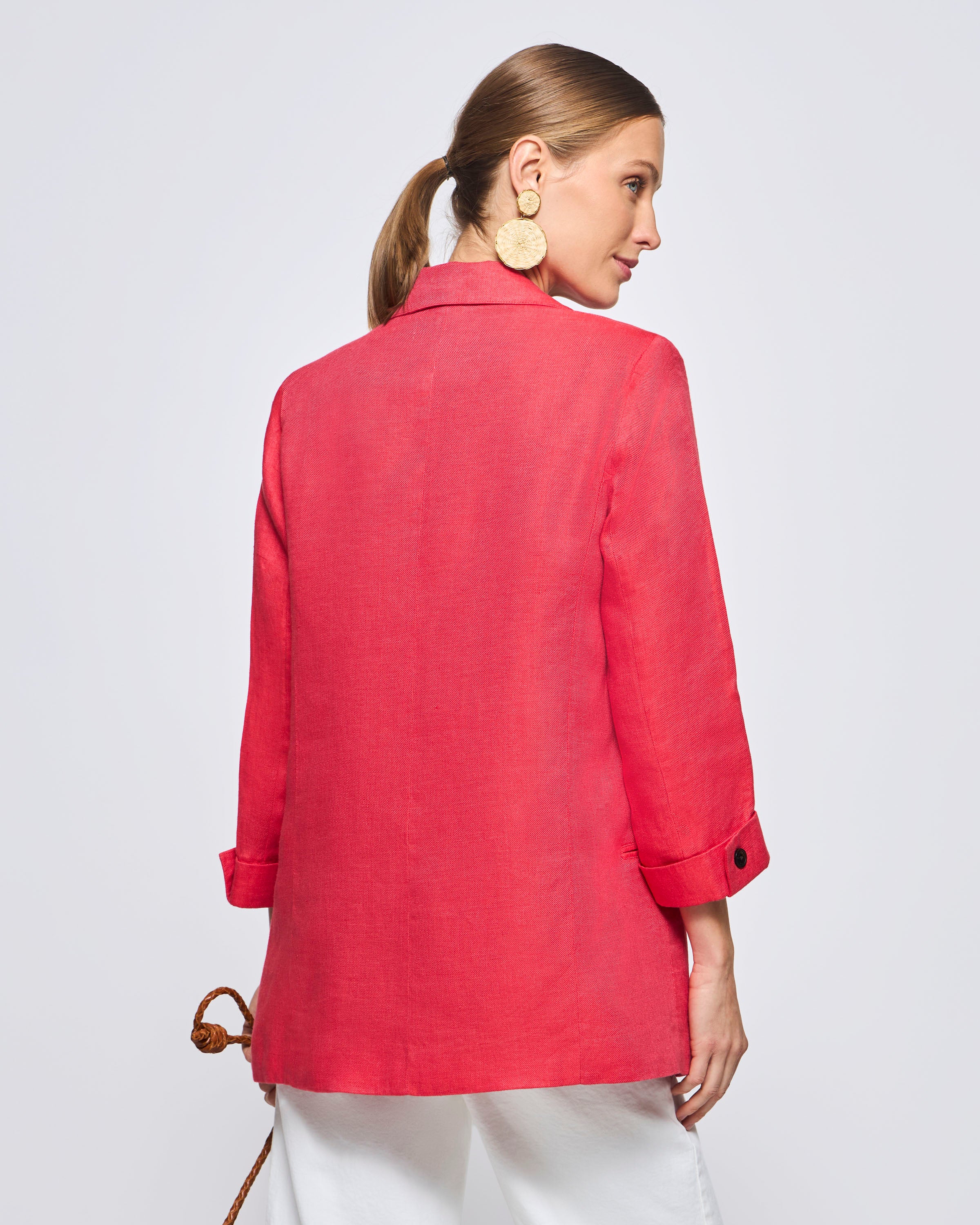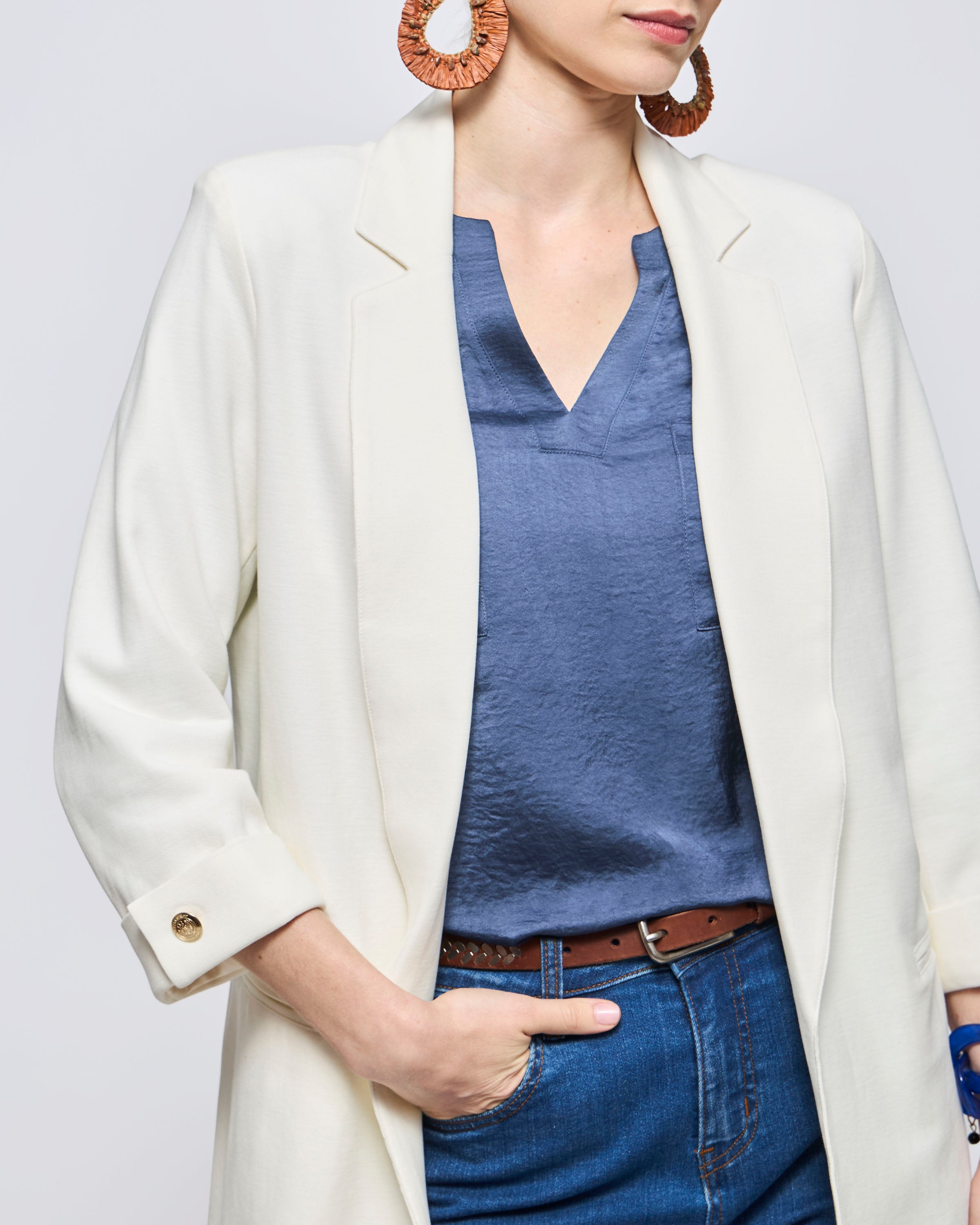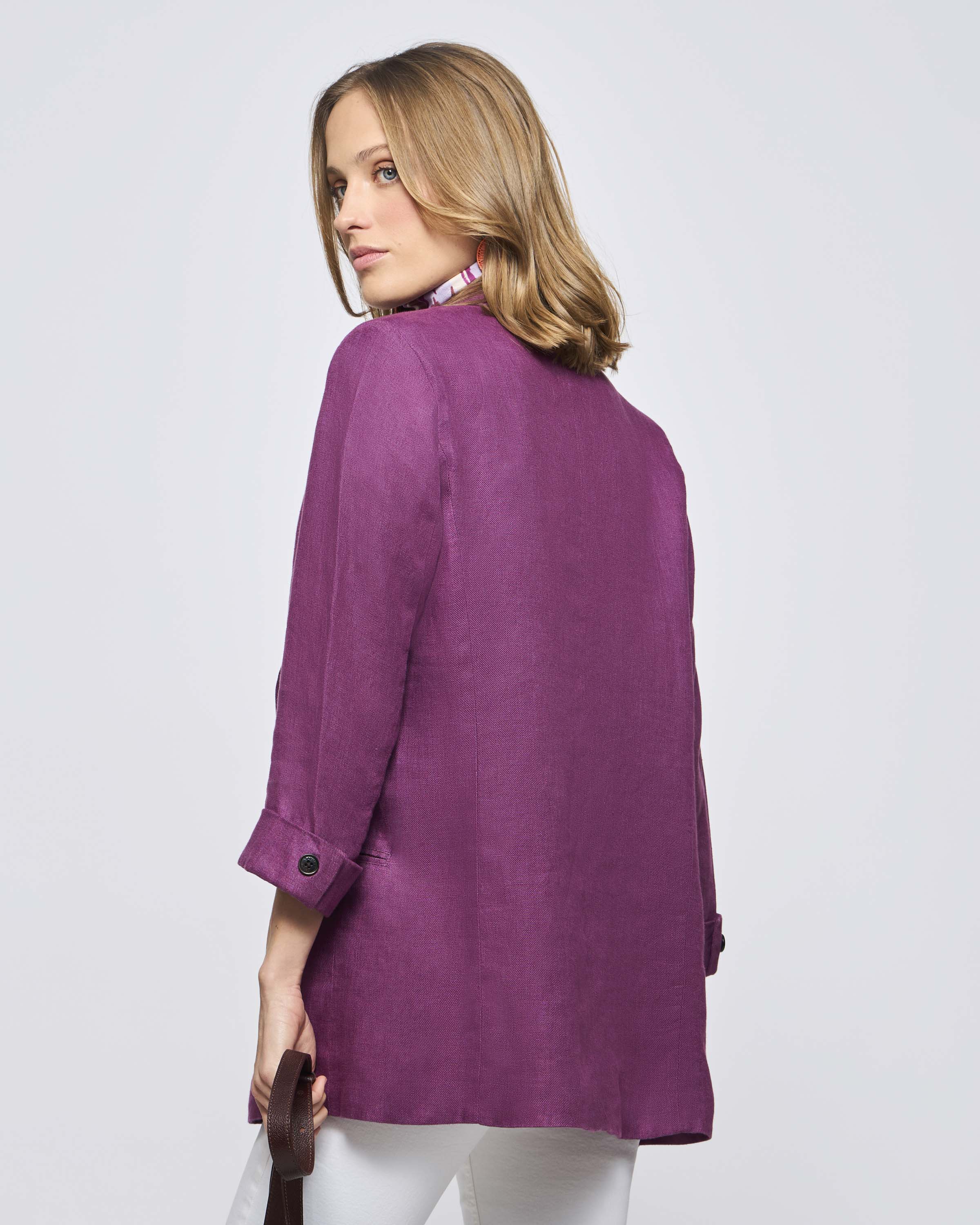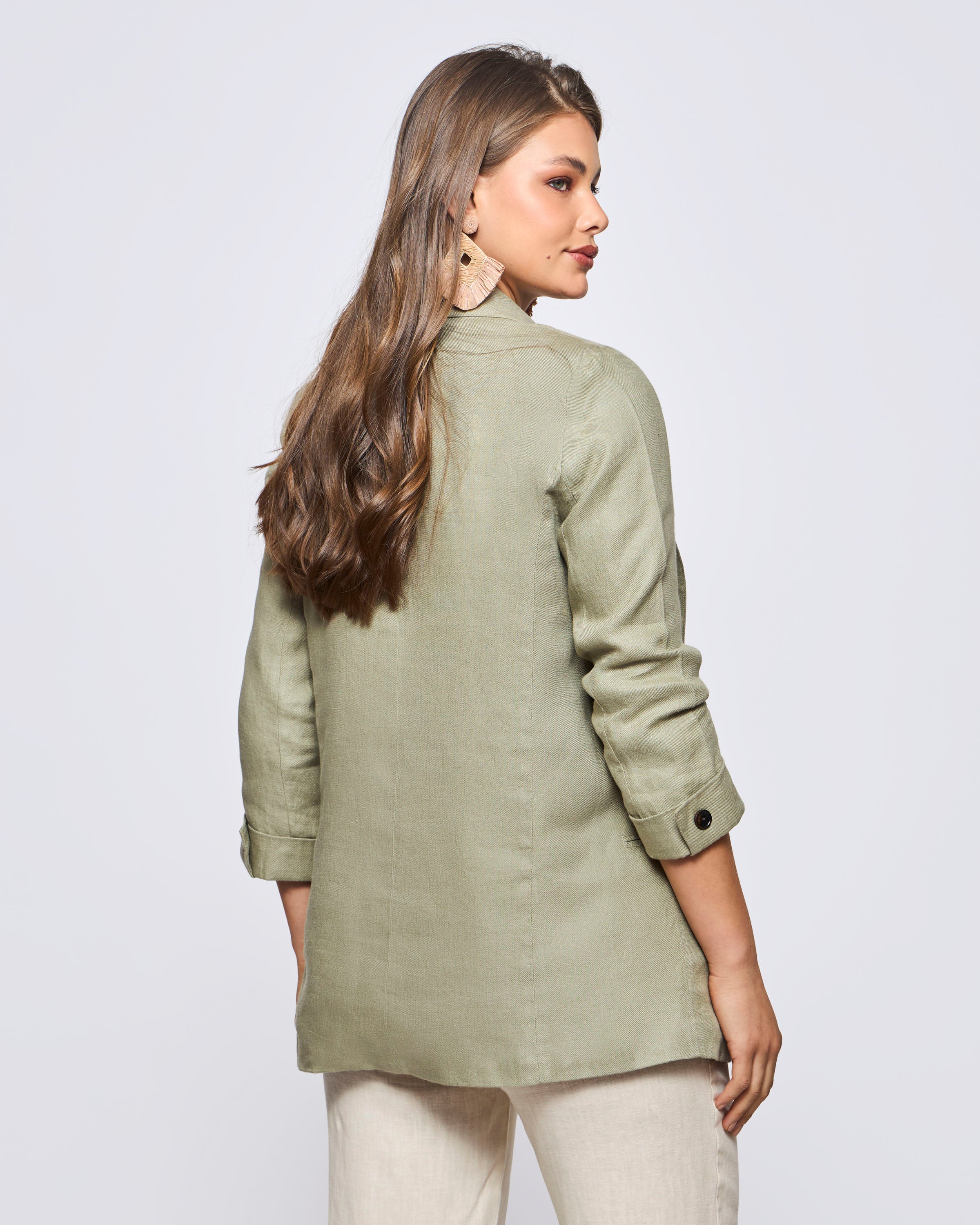 Blazer Lino Manga 3/4 Raya delgada Azul Blanco