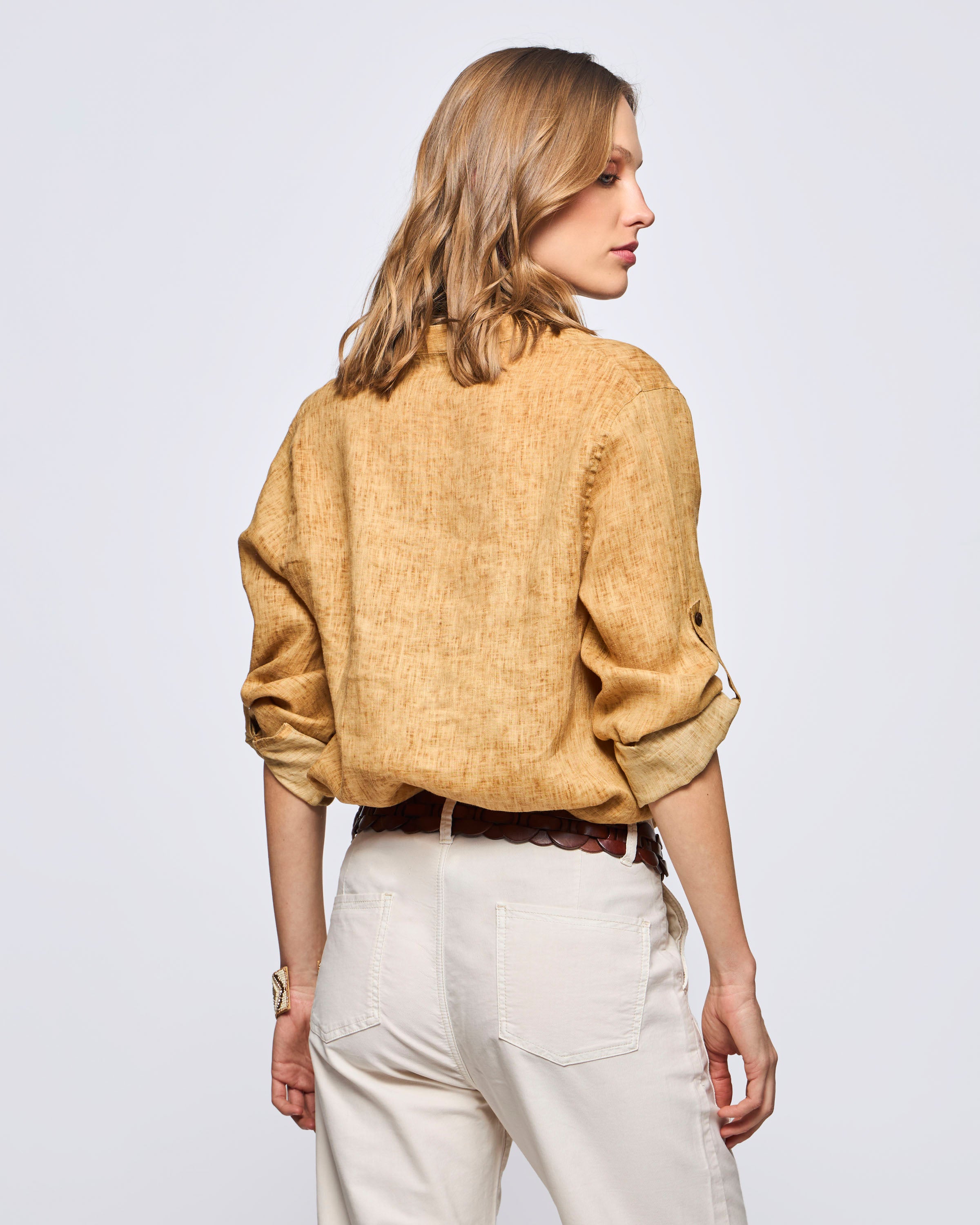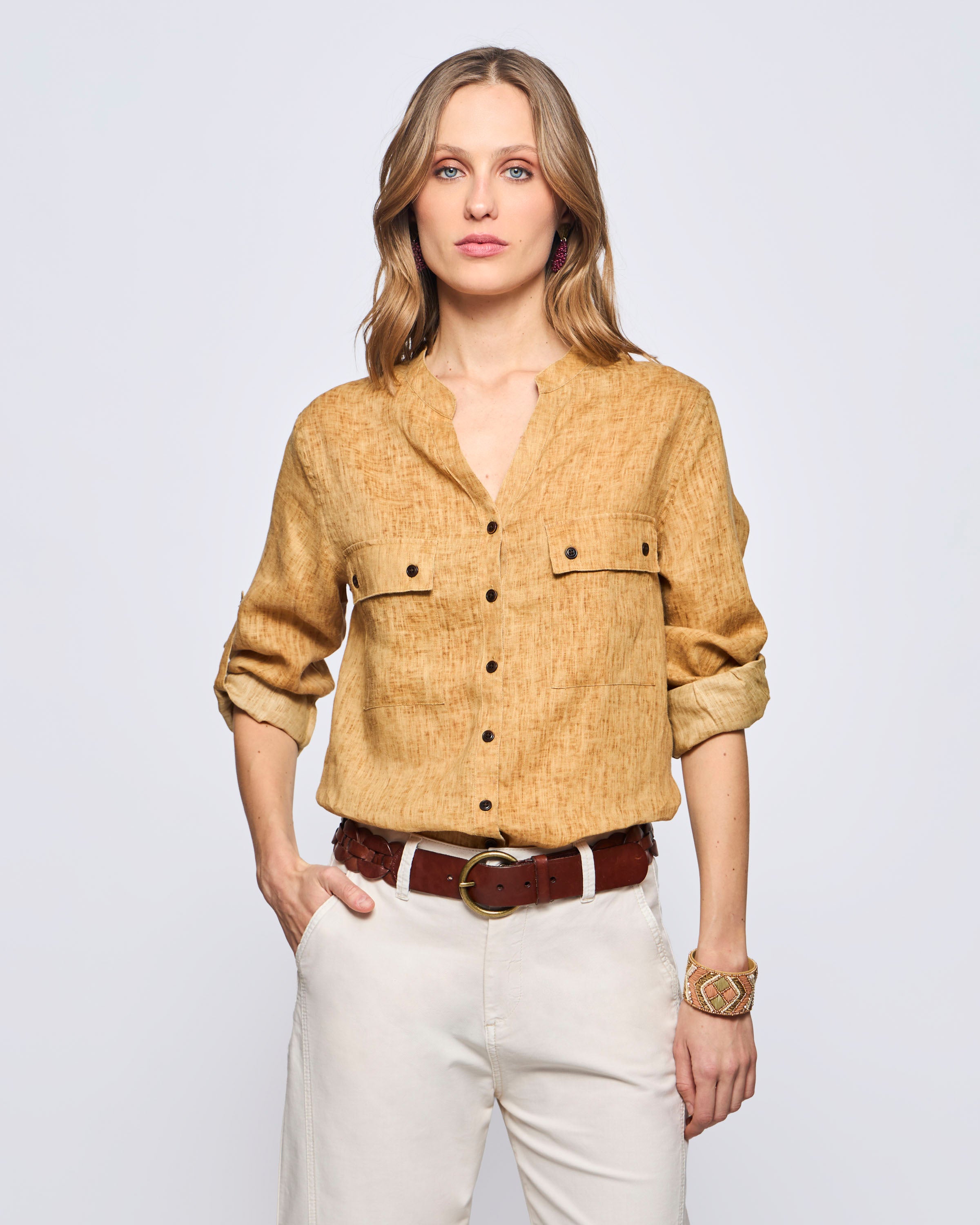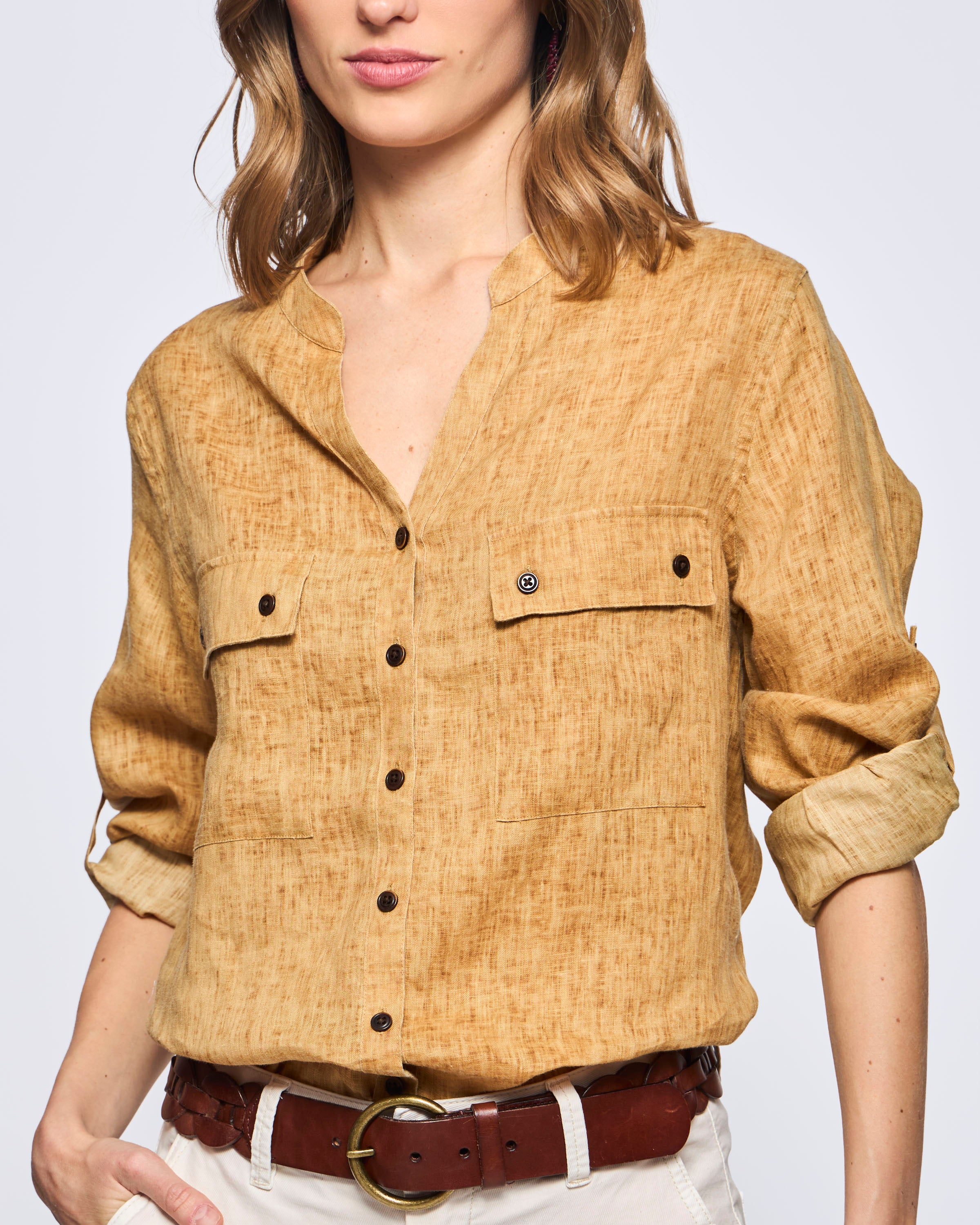 Camisa Lisa Sahariana Un Bolsillo Vintage Lino