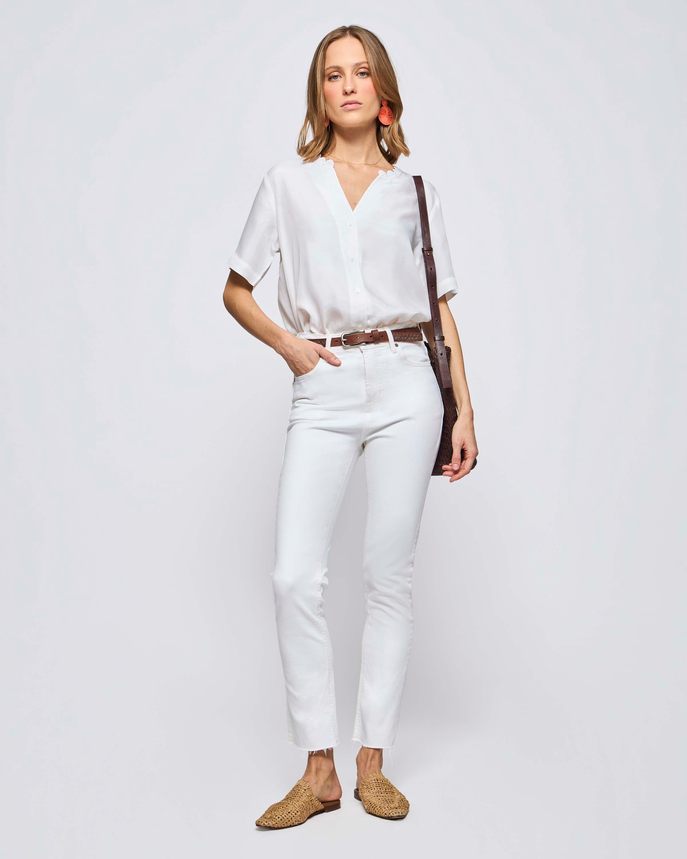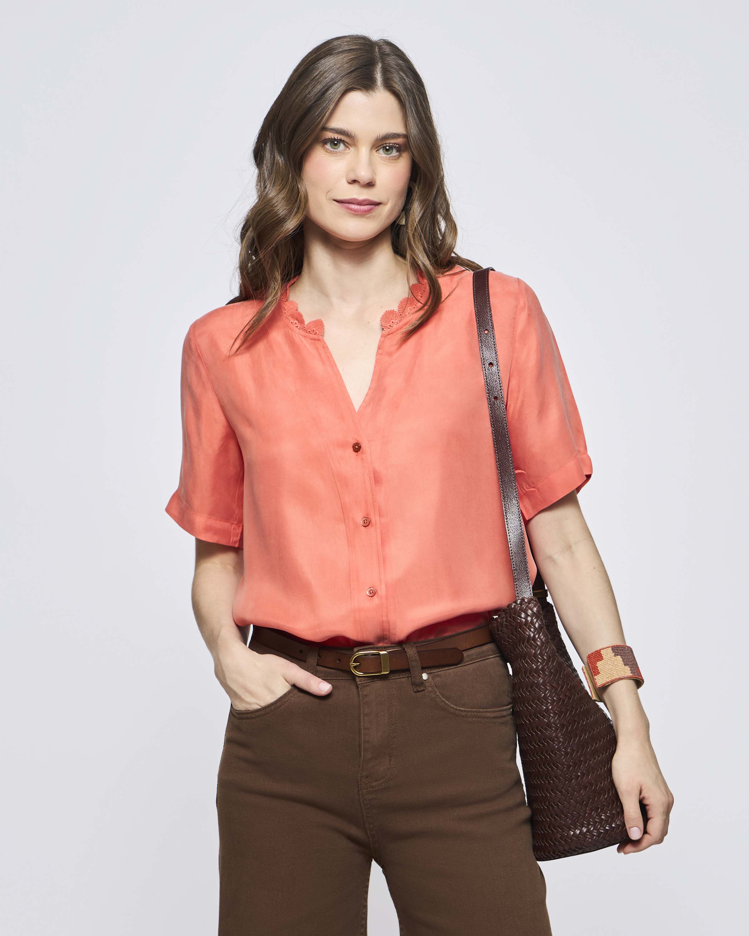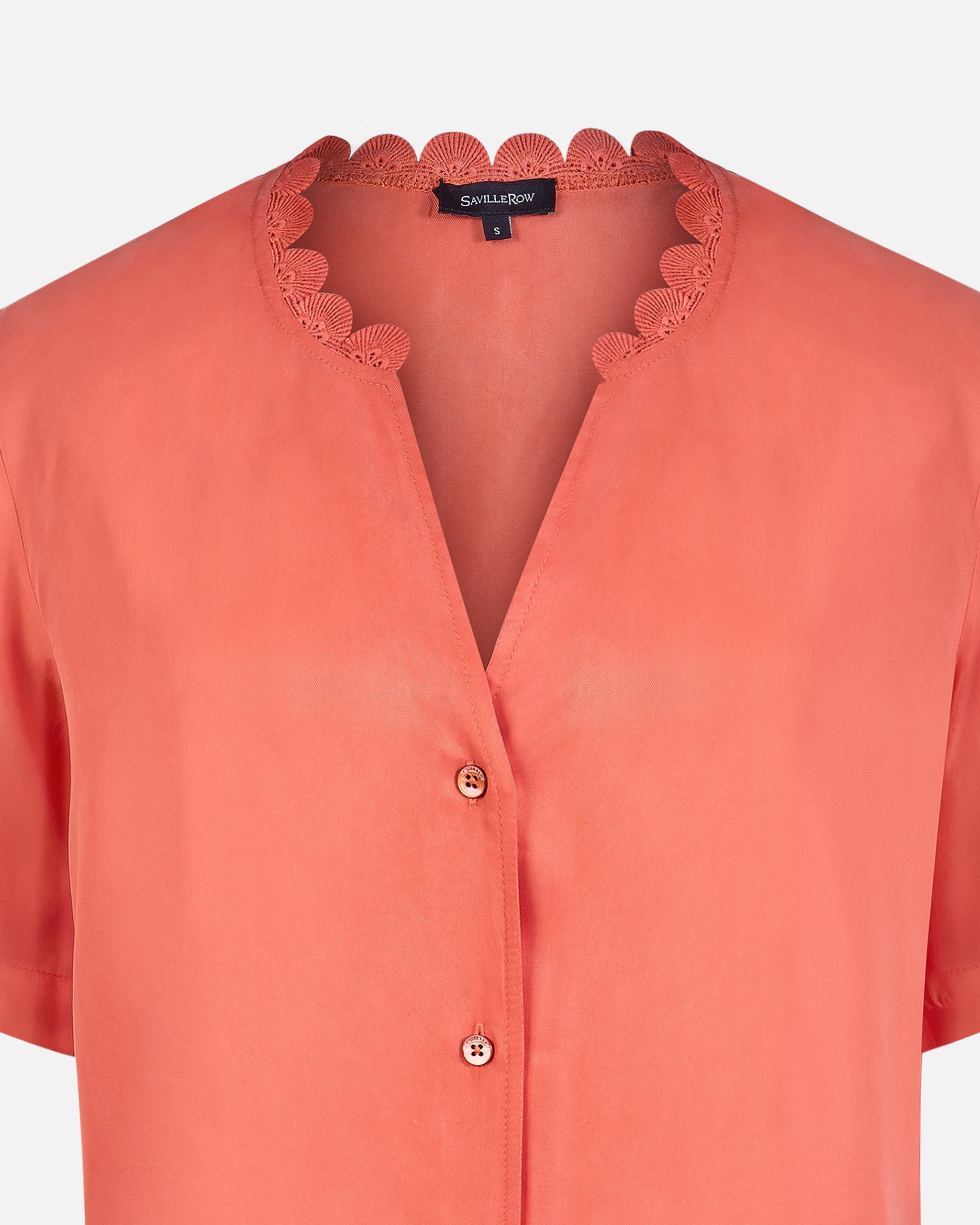 Blusa M/C Cupro Terminación Broderie En Escote