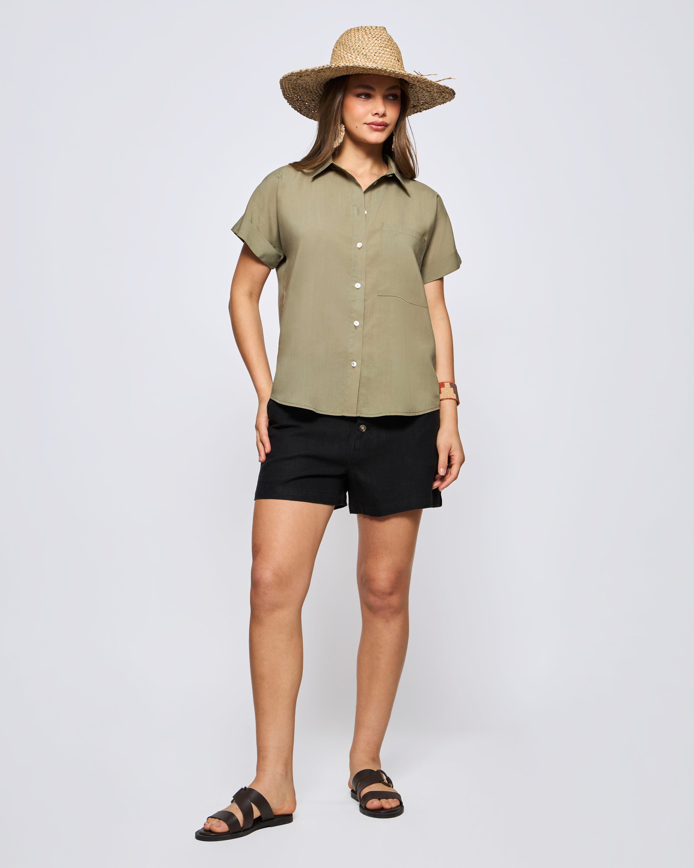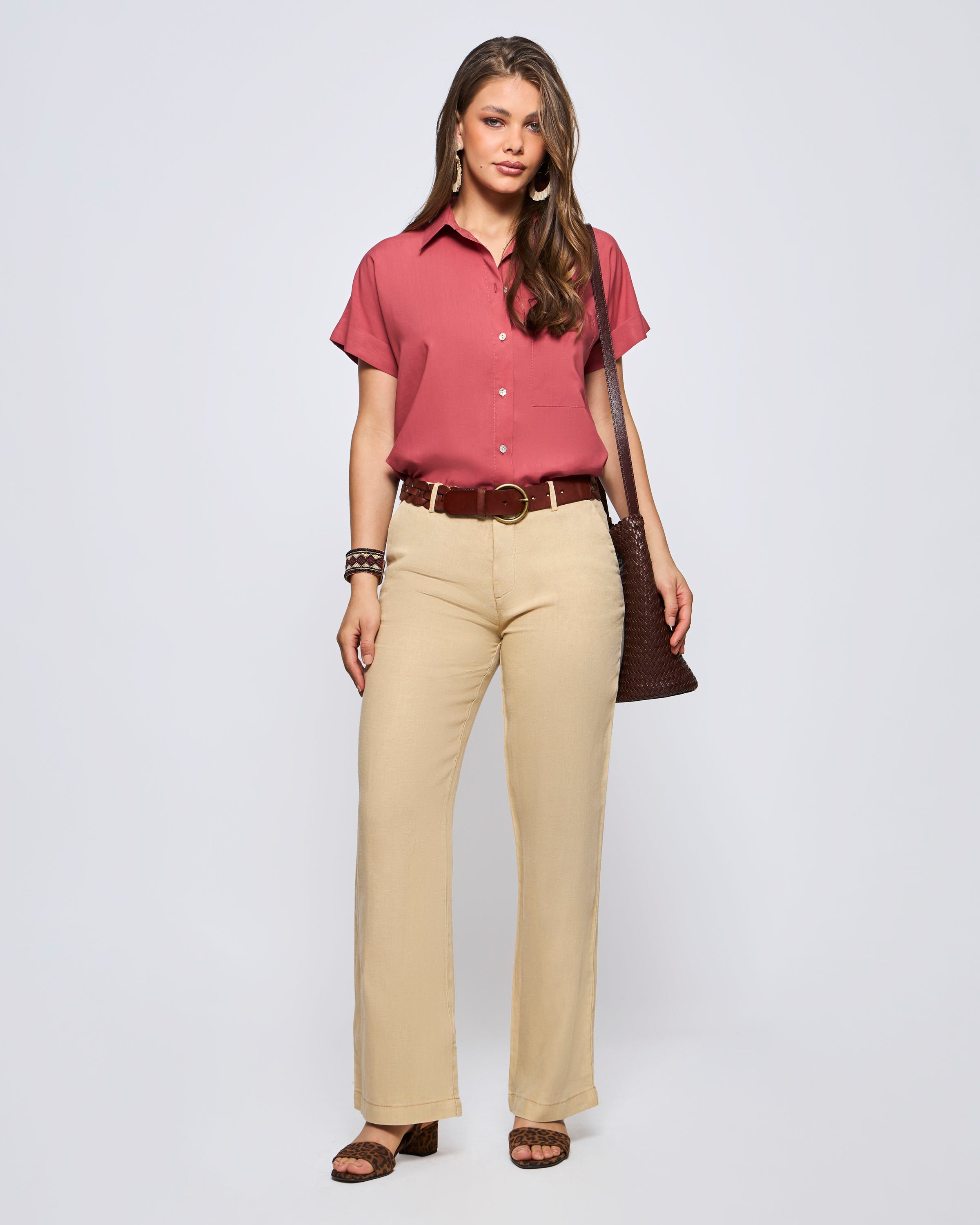 Blusa Manga Corta Vuelos Lino Viscosa