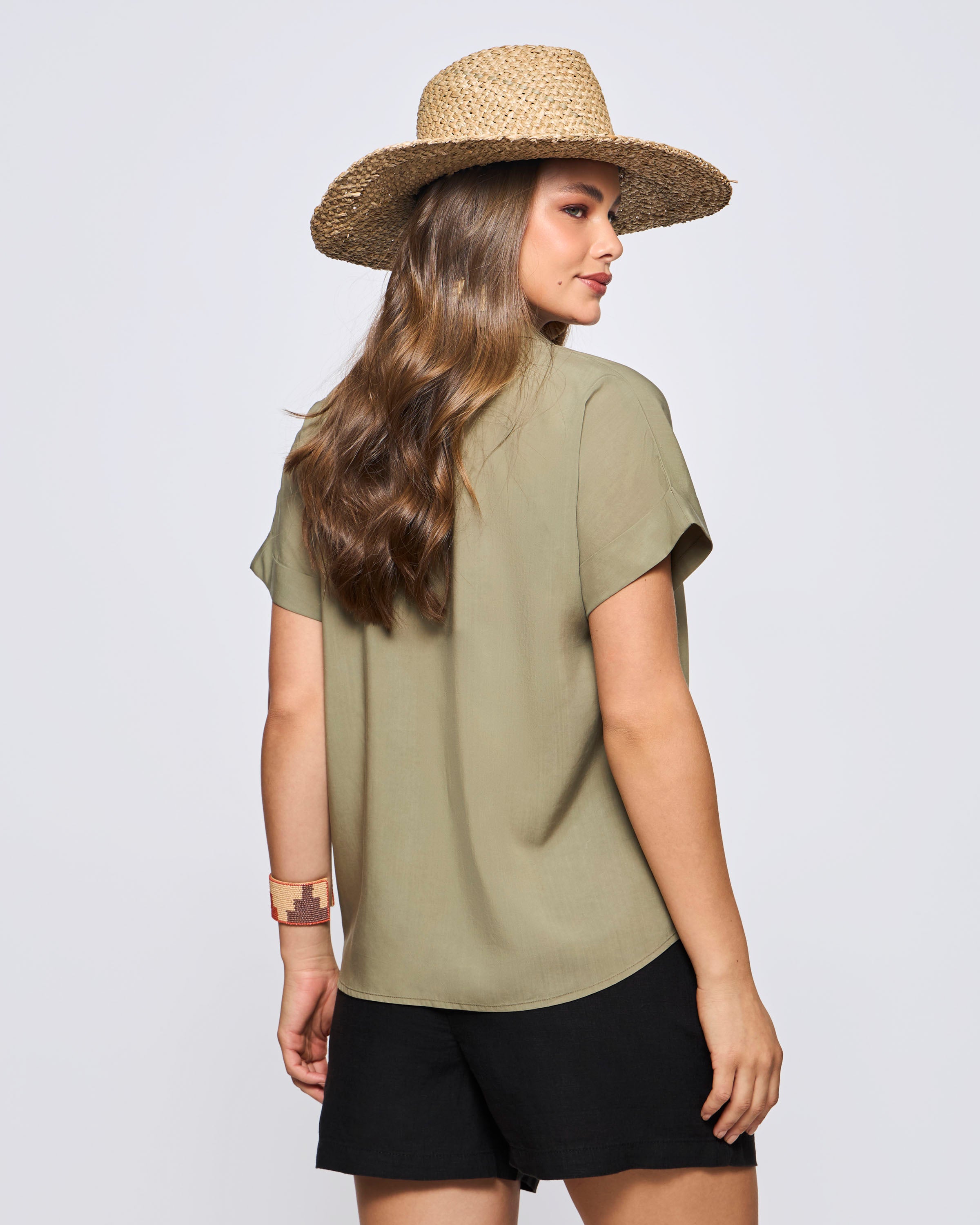Blusa Manga Corta Cuello V Fluída