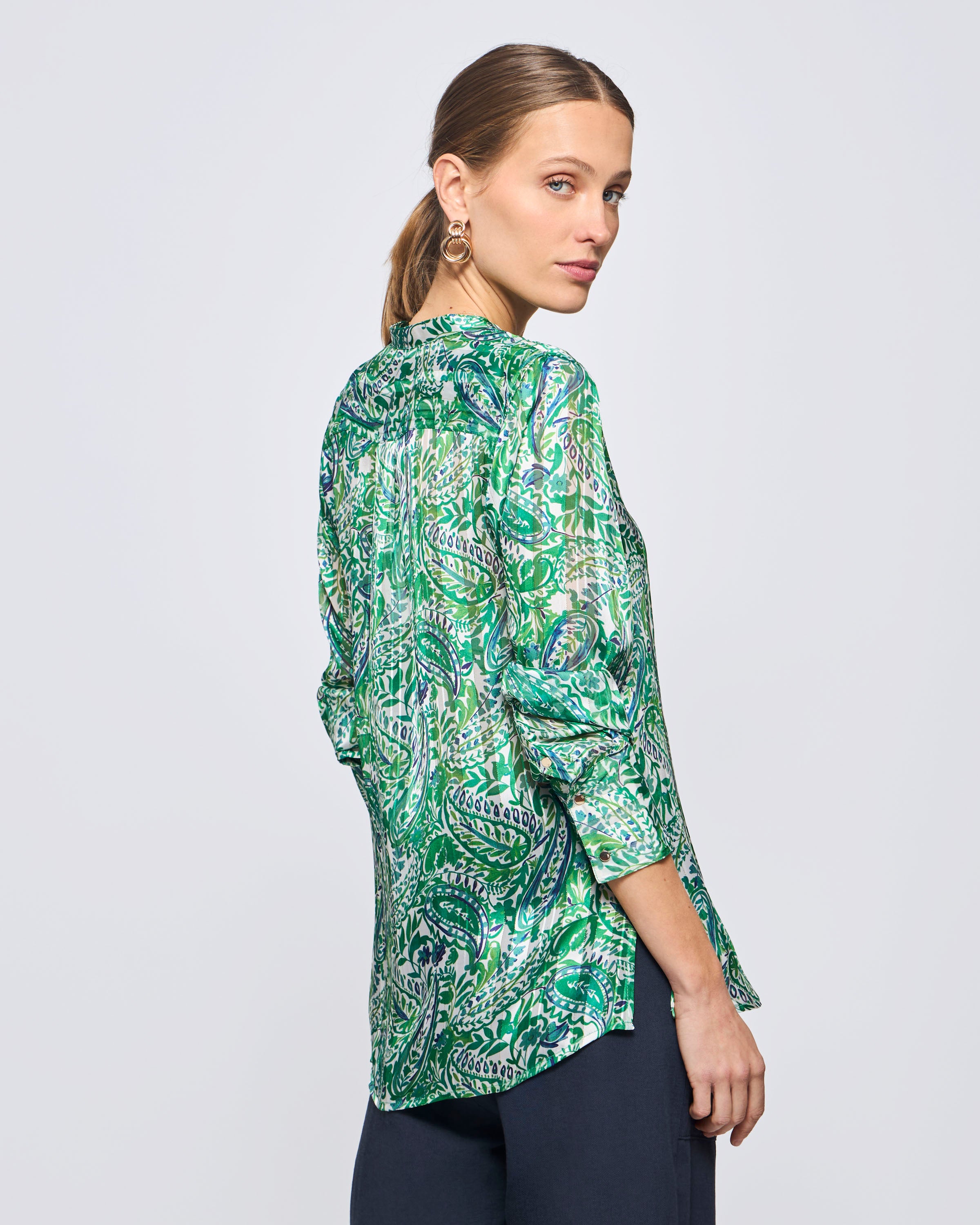 Blusa Manga Larga Lurex Estampada