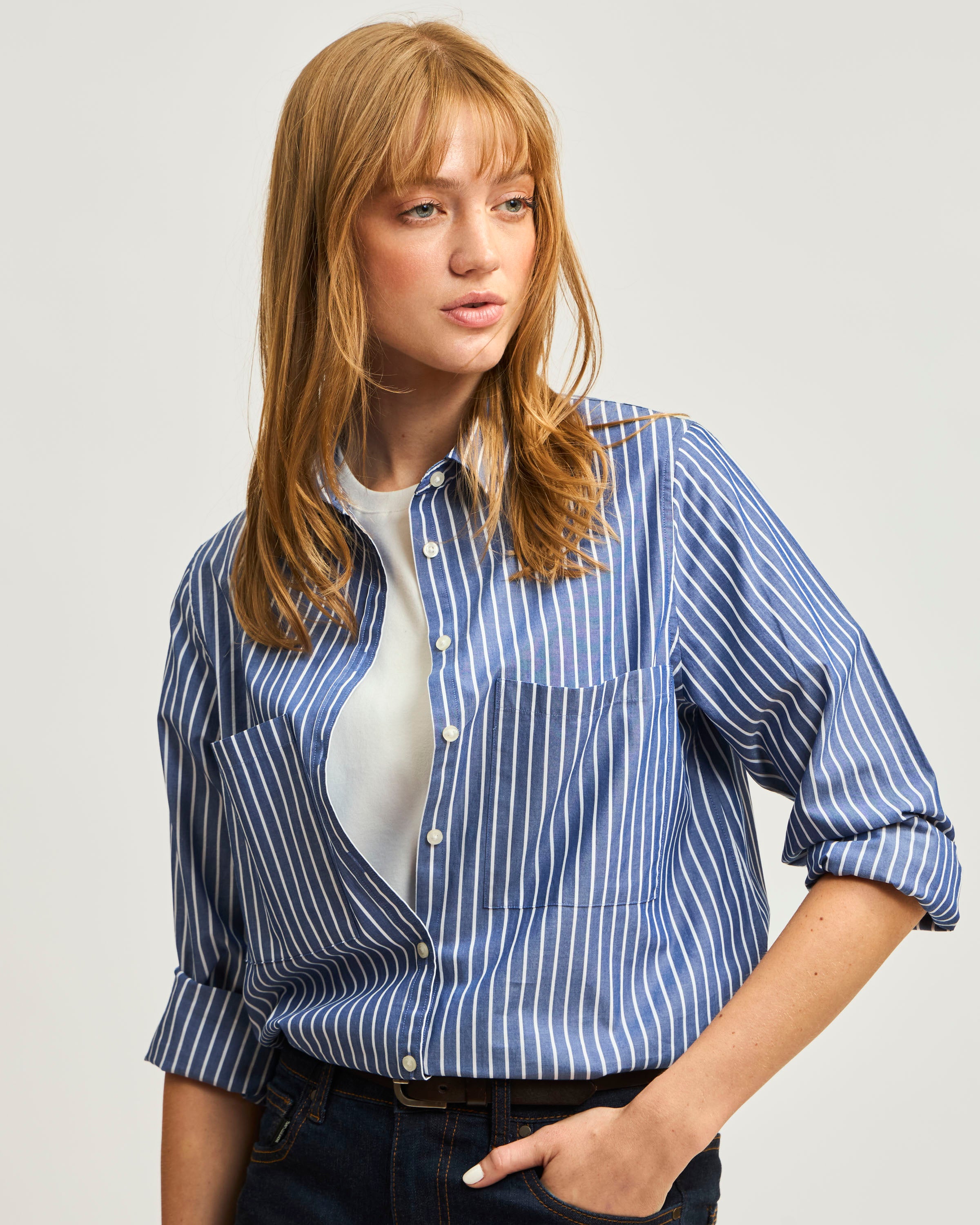 Camisa Manga Larga Rayada Algodón Tencel