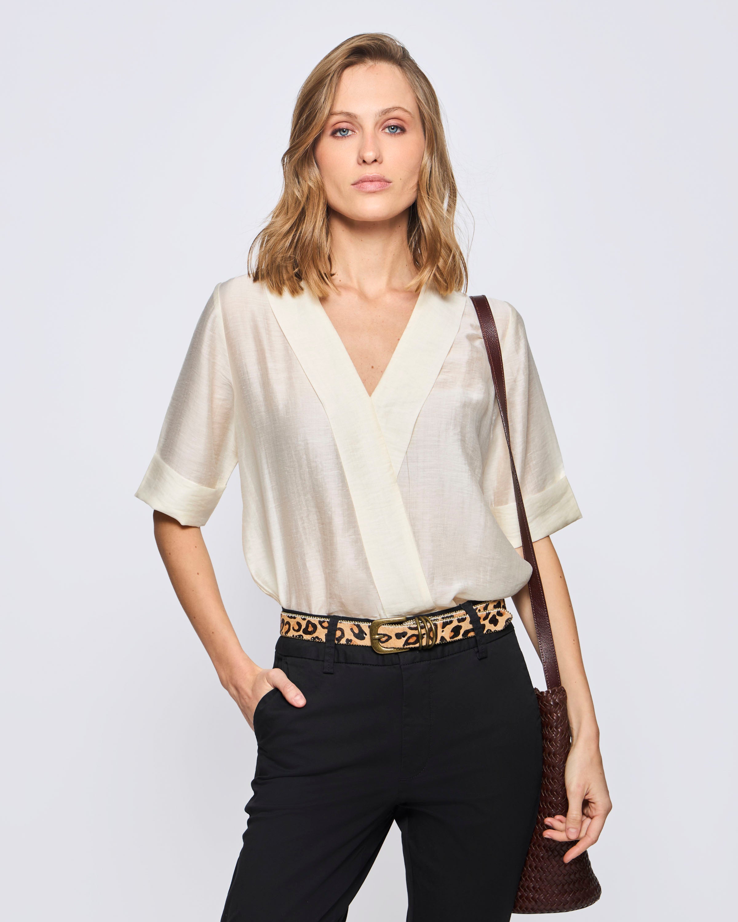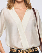 Blusa Manga Corta Pen V Con Pliegues En Centro