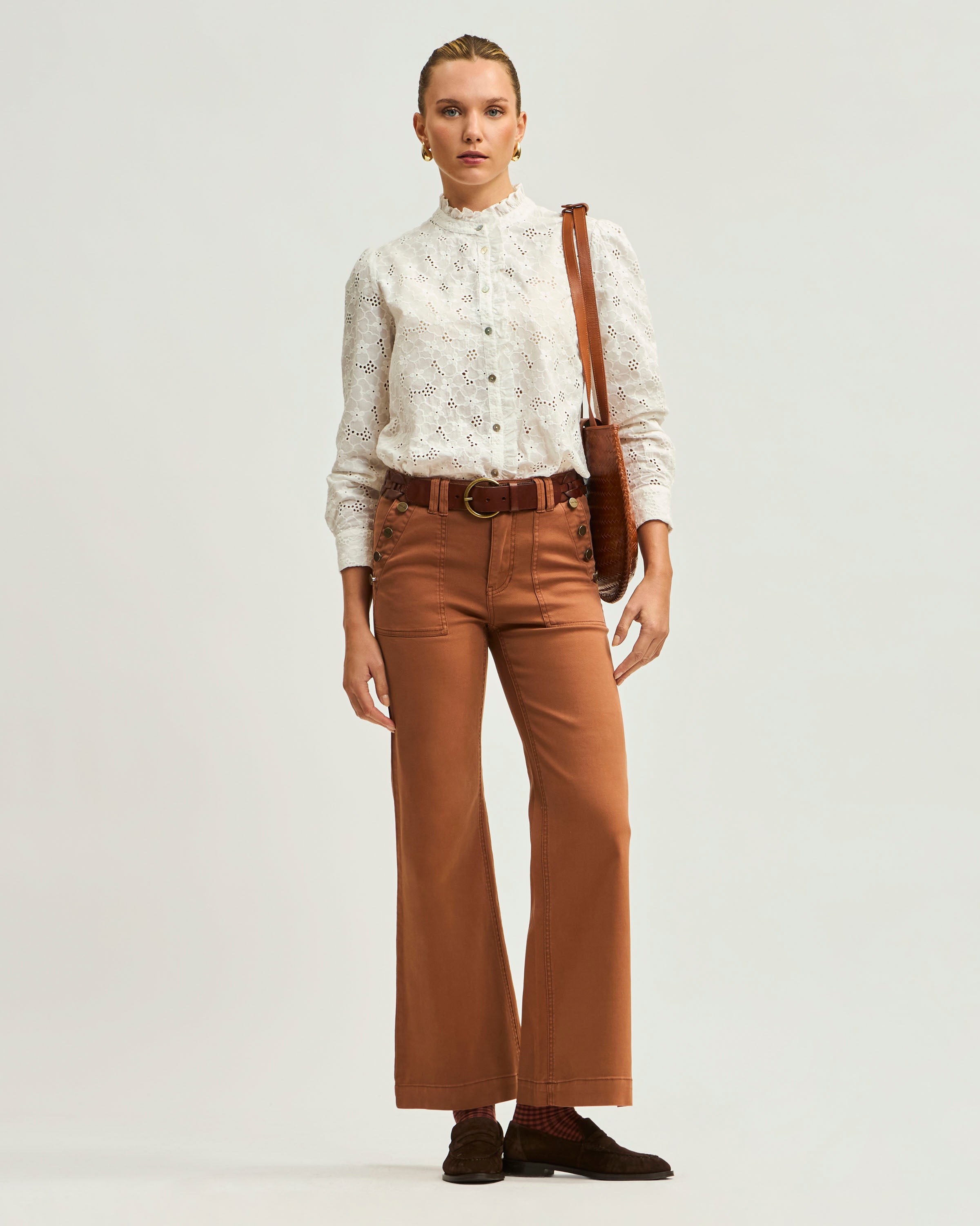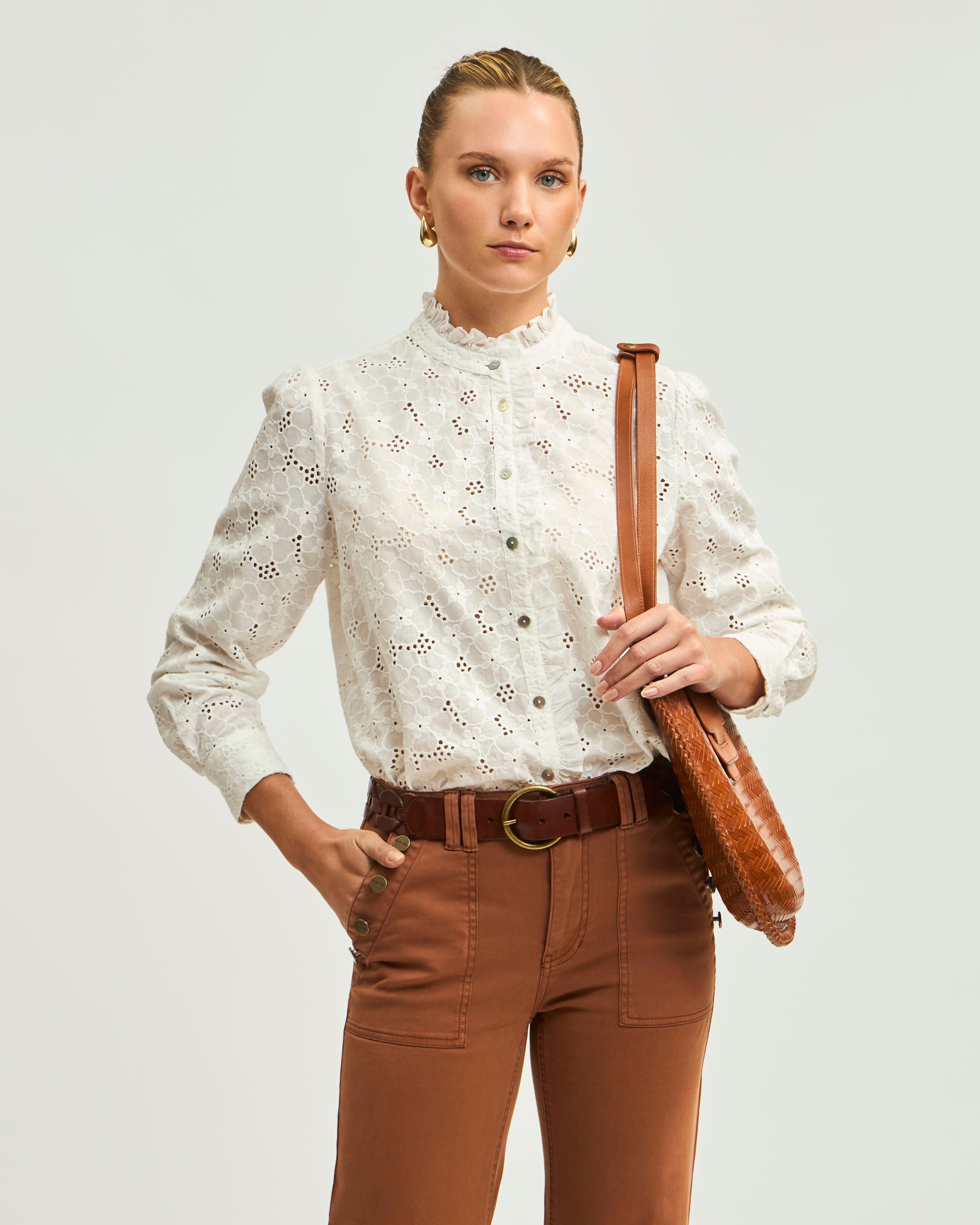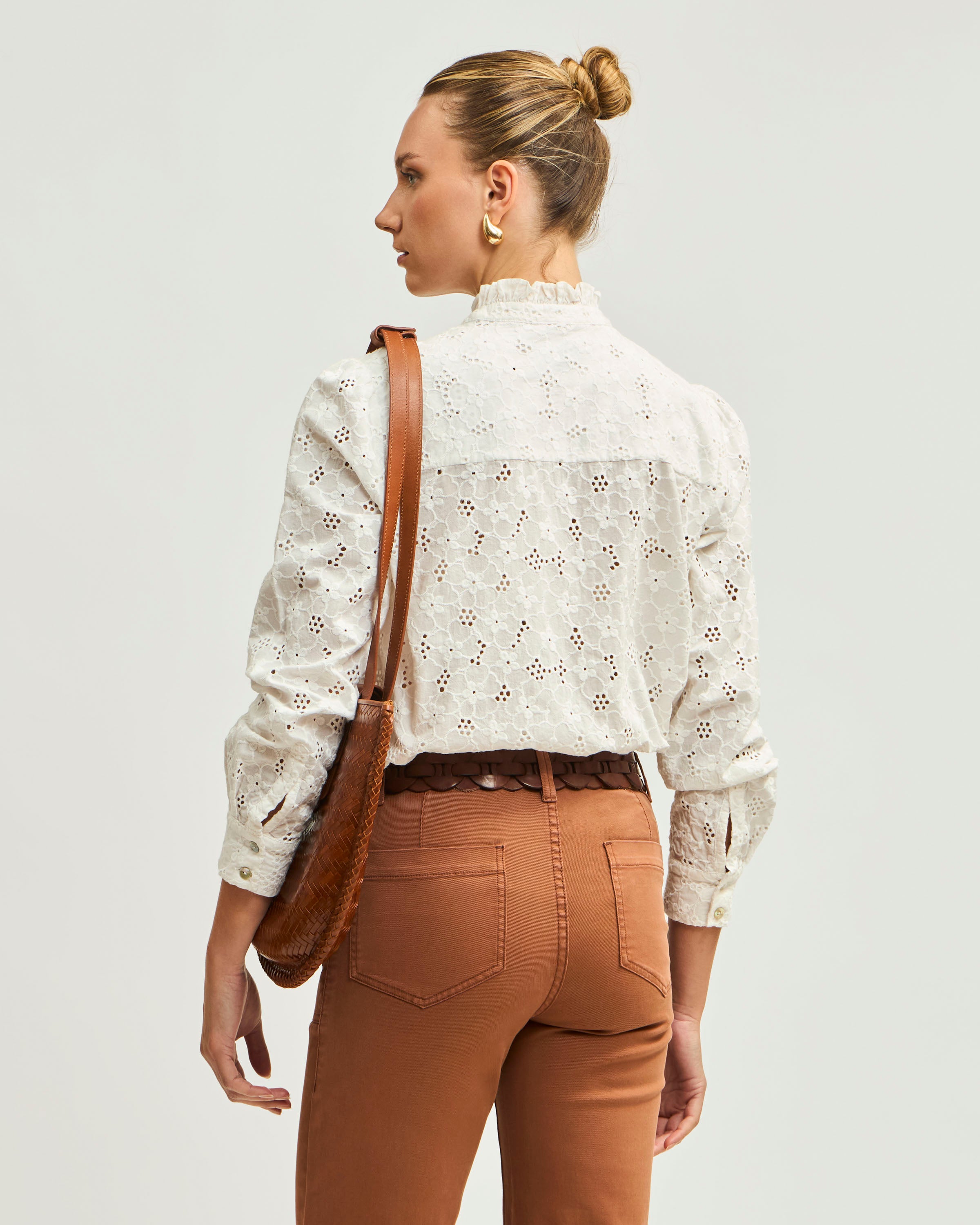 Blusa Manga Larga Mao Tela Broderie