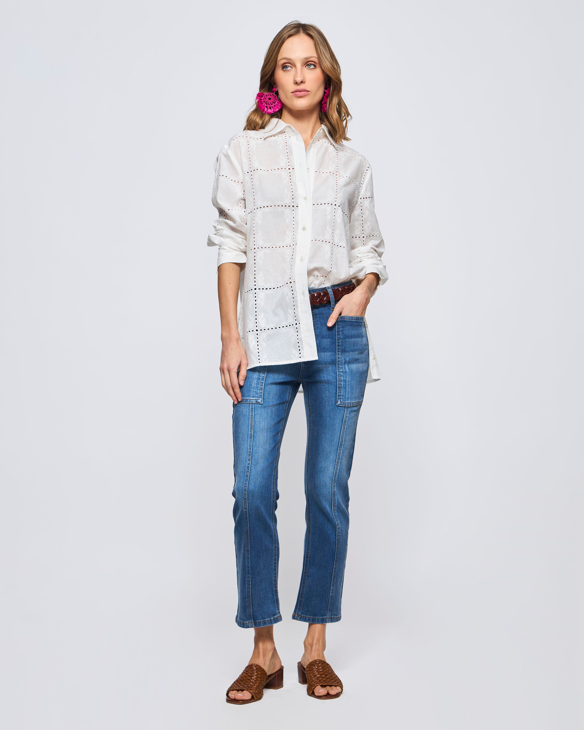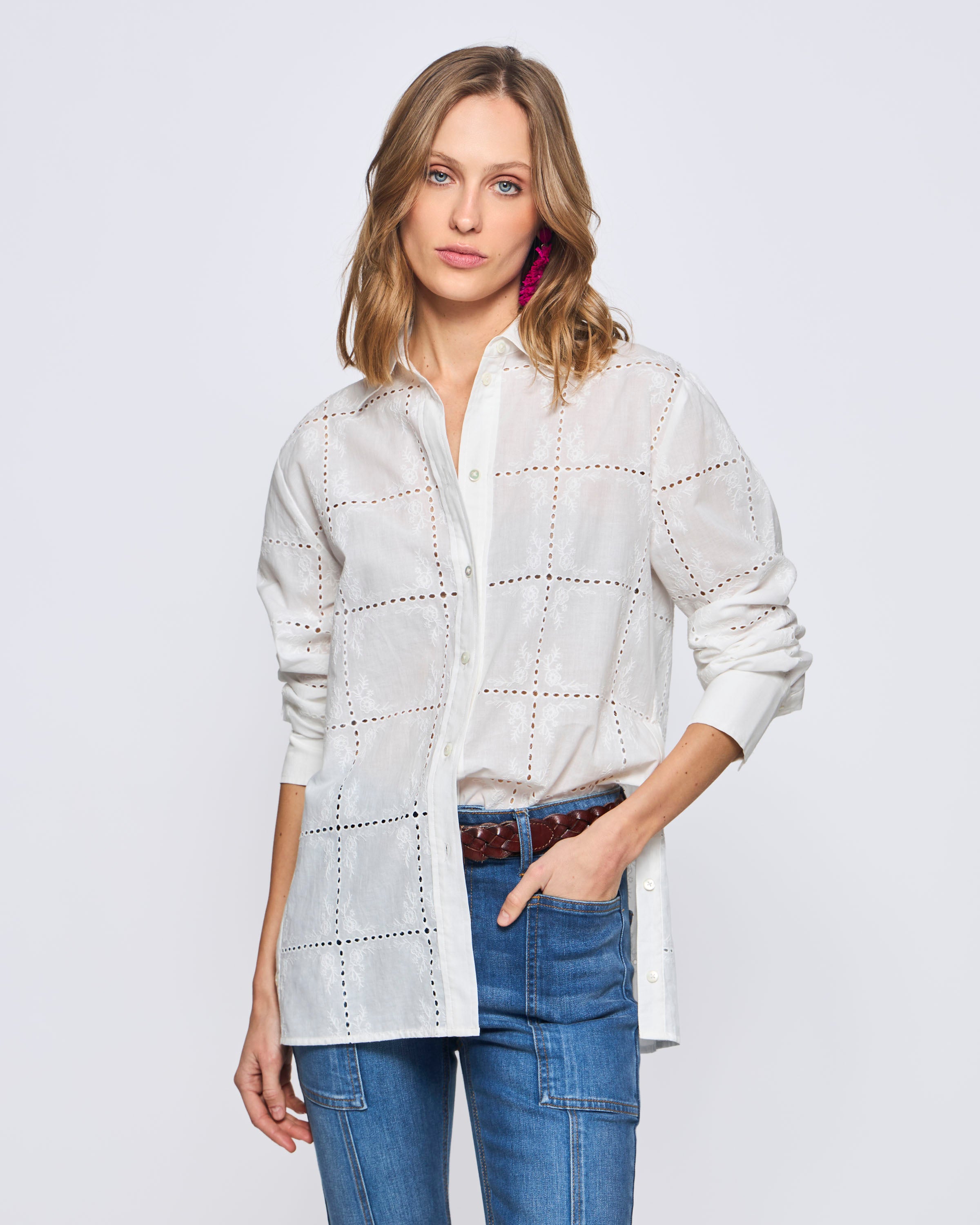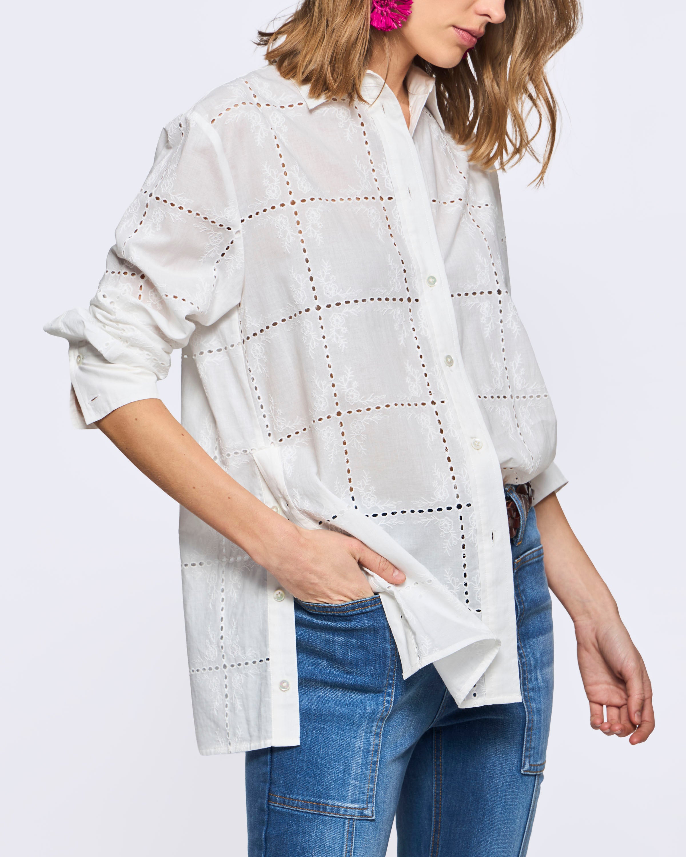 Camisa Manga Larga Broderie Patchwork Look