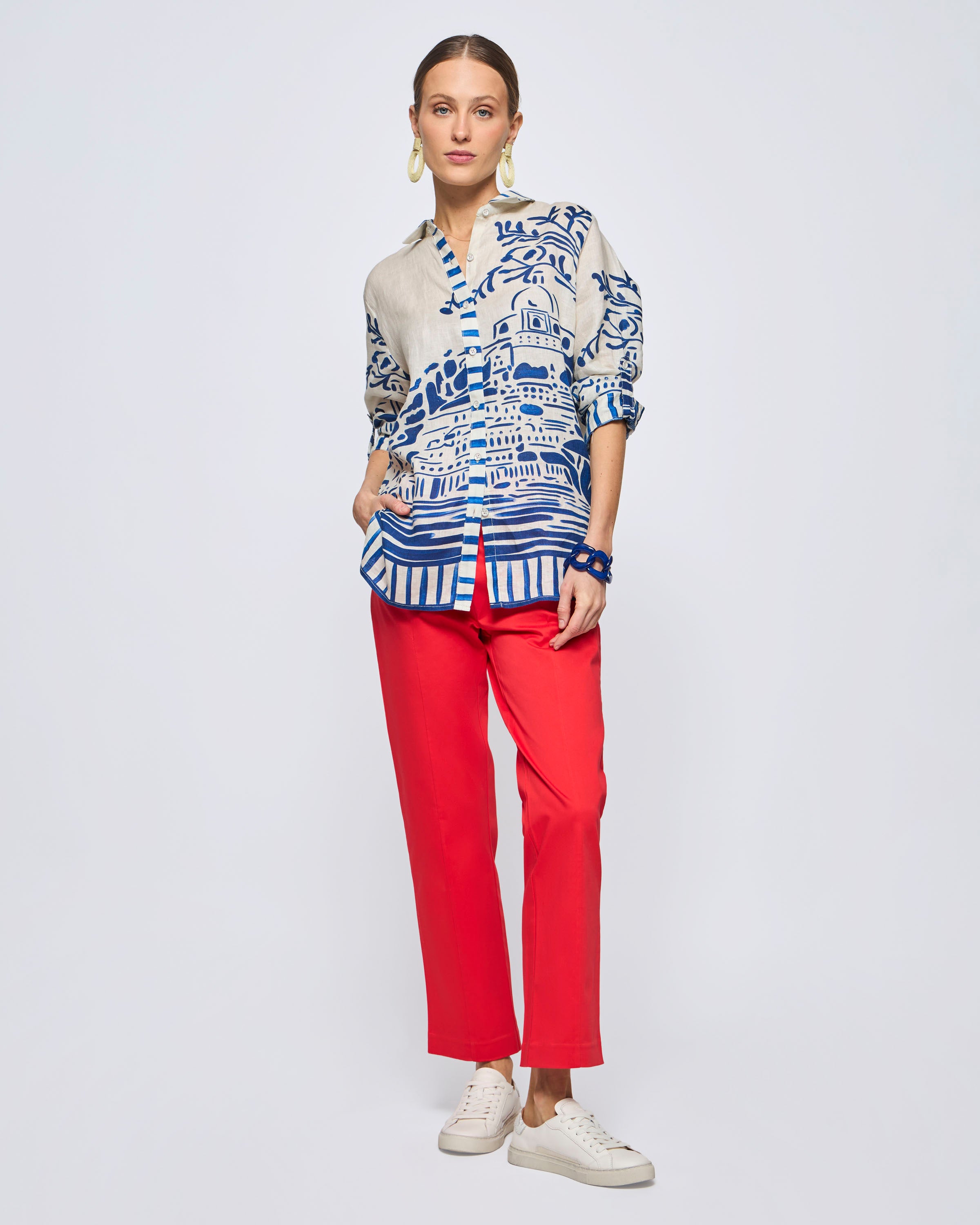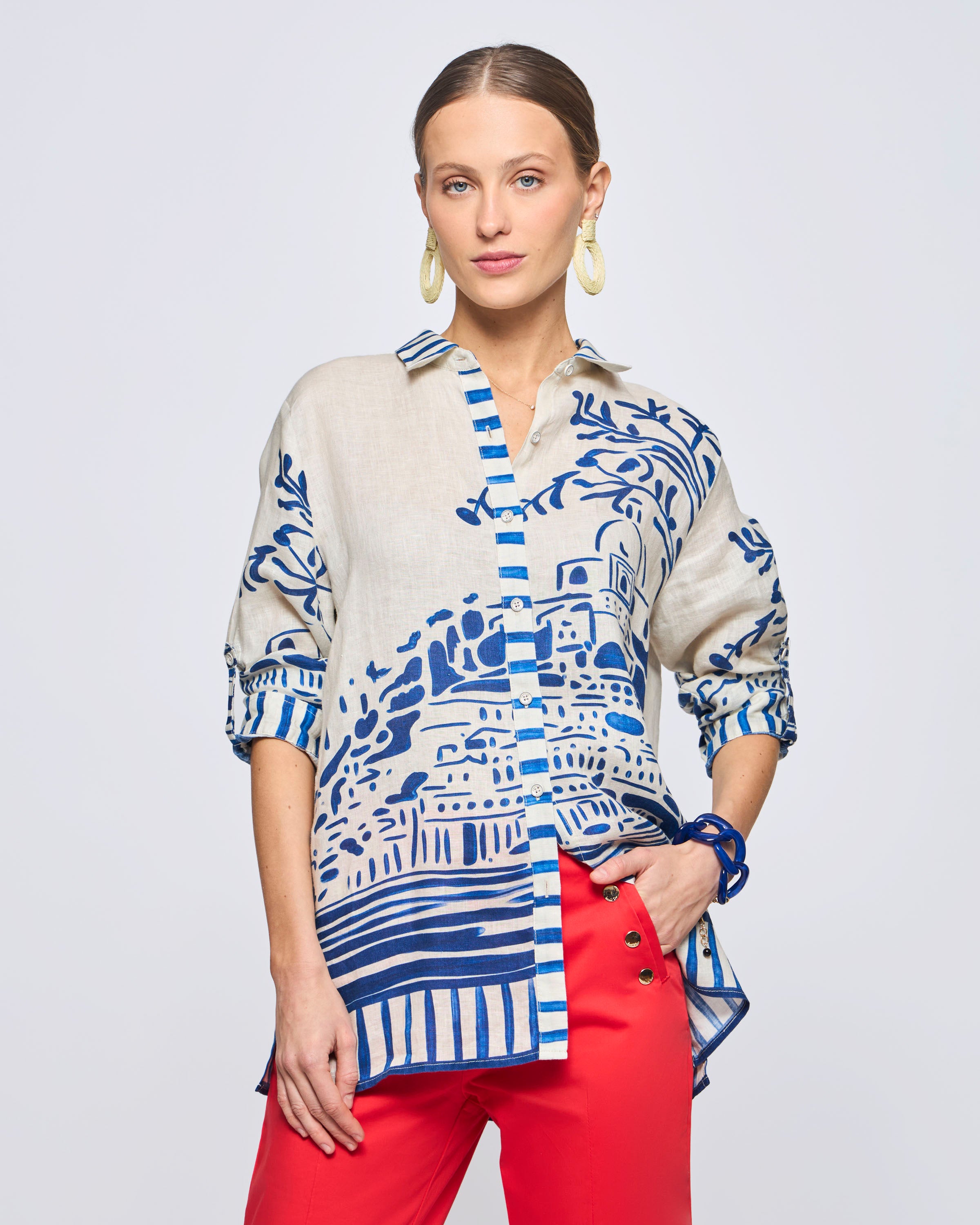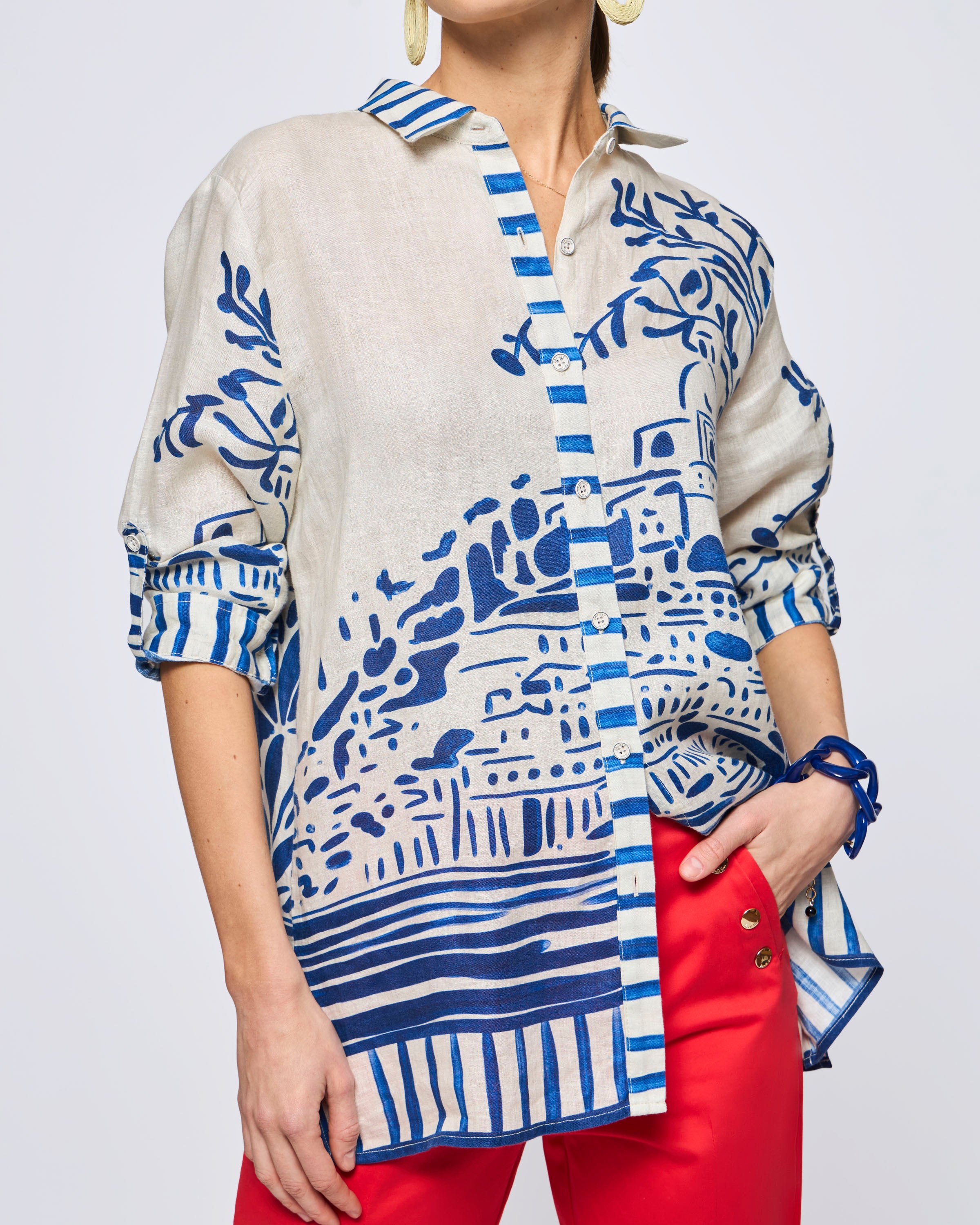 Camisa Sahariana Print un Bolsillo Vintage Lino