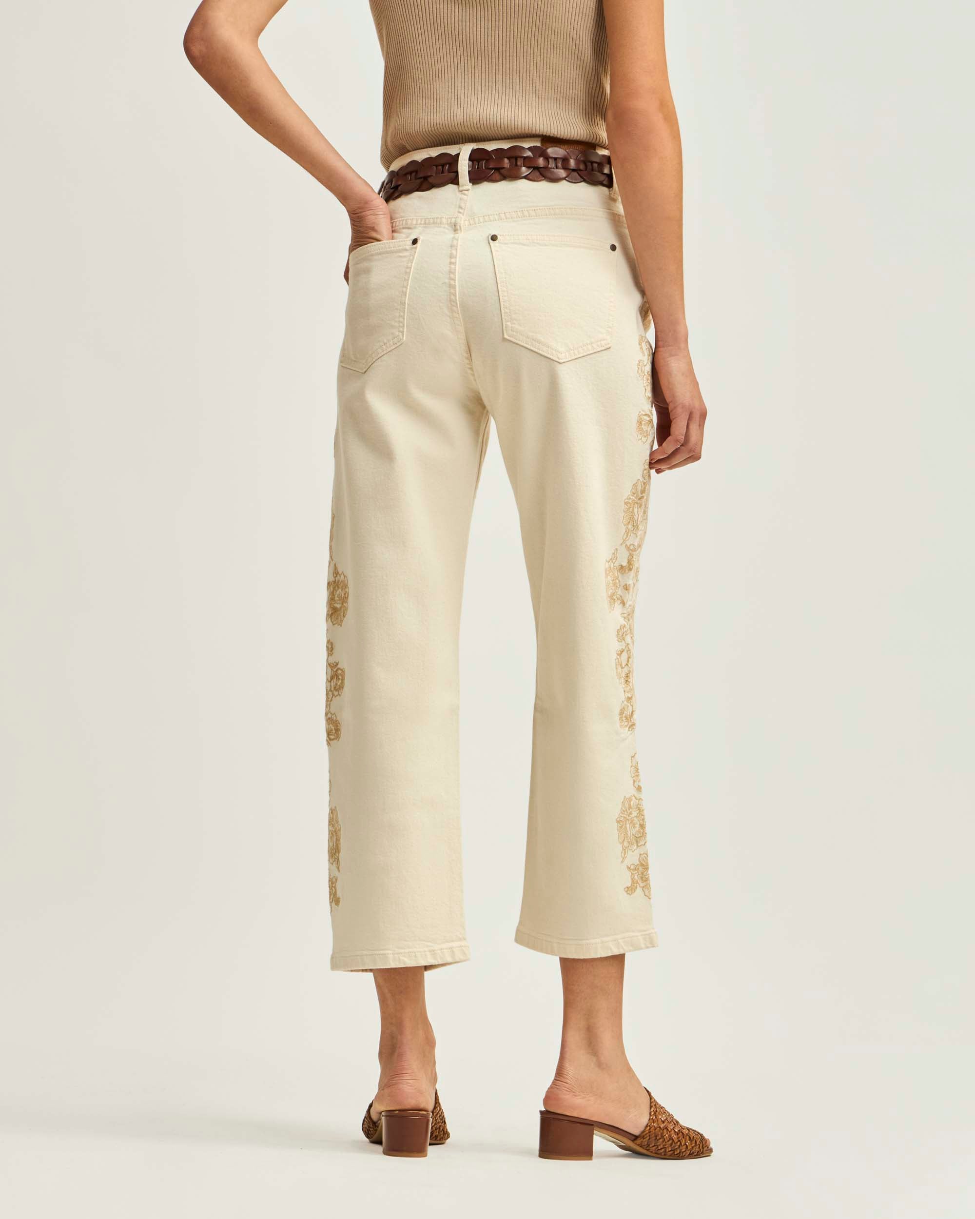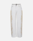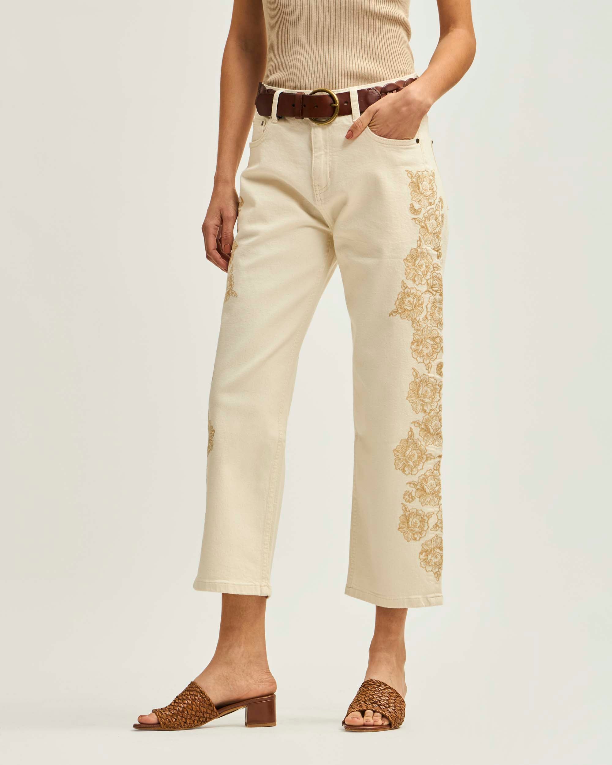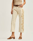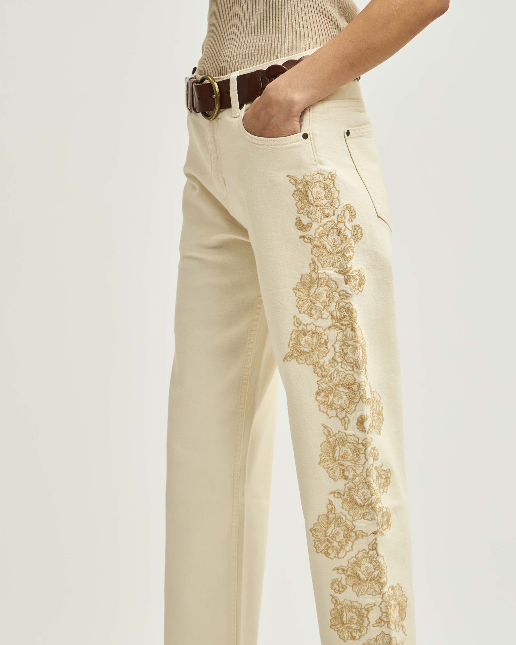 Jeans Recto Tiro Medio Bordado A Lo Largo