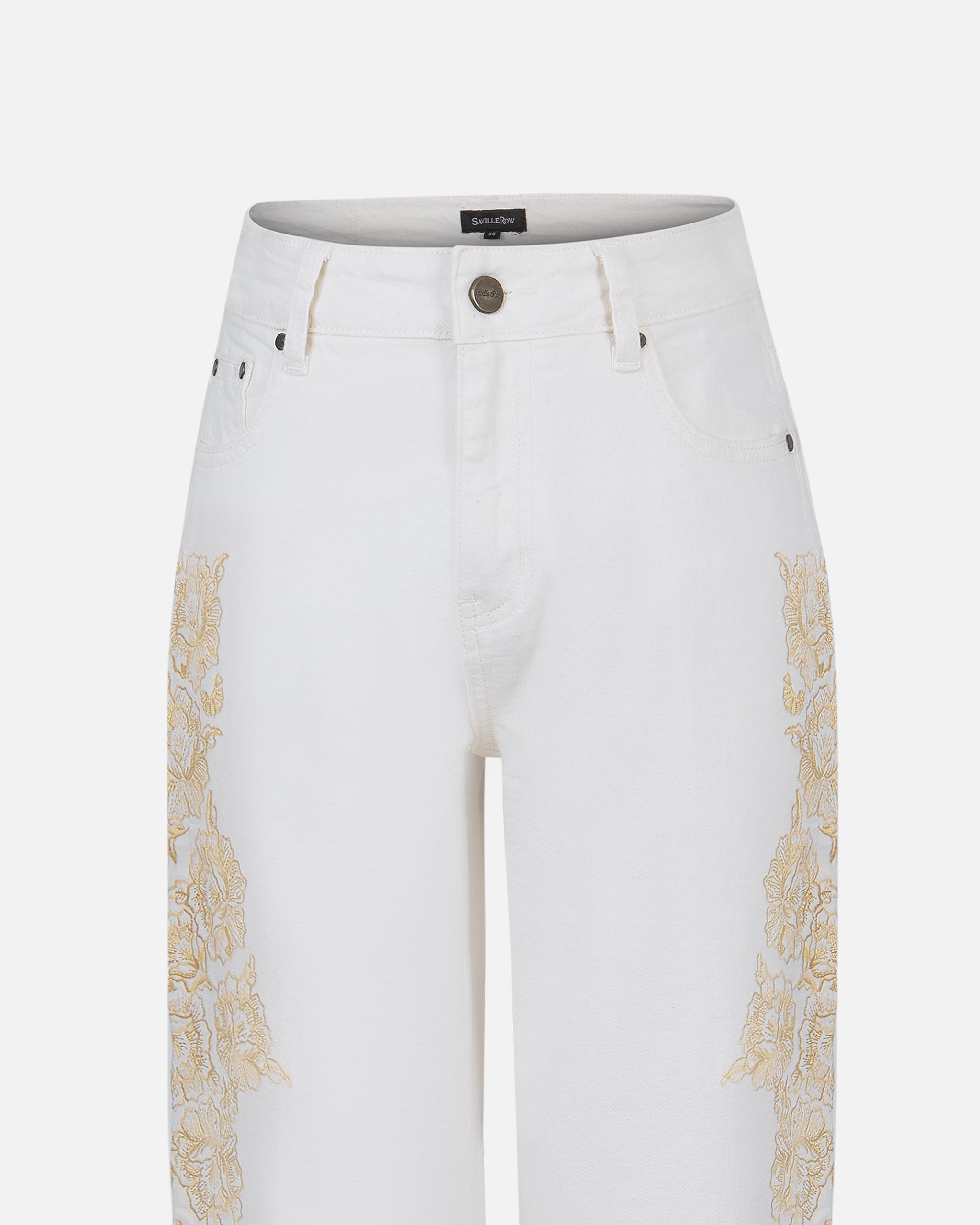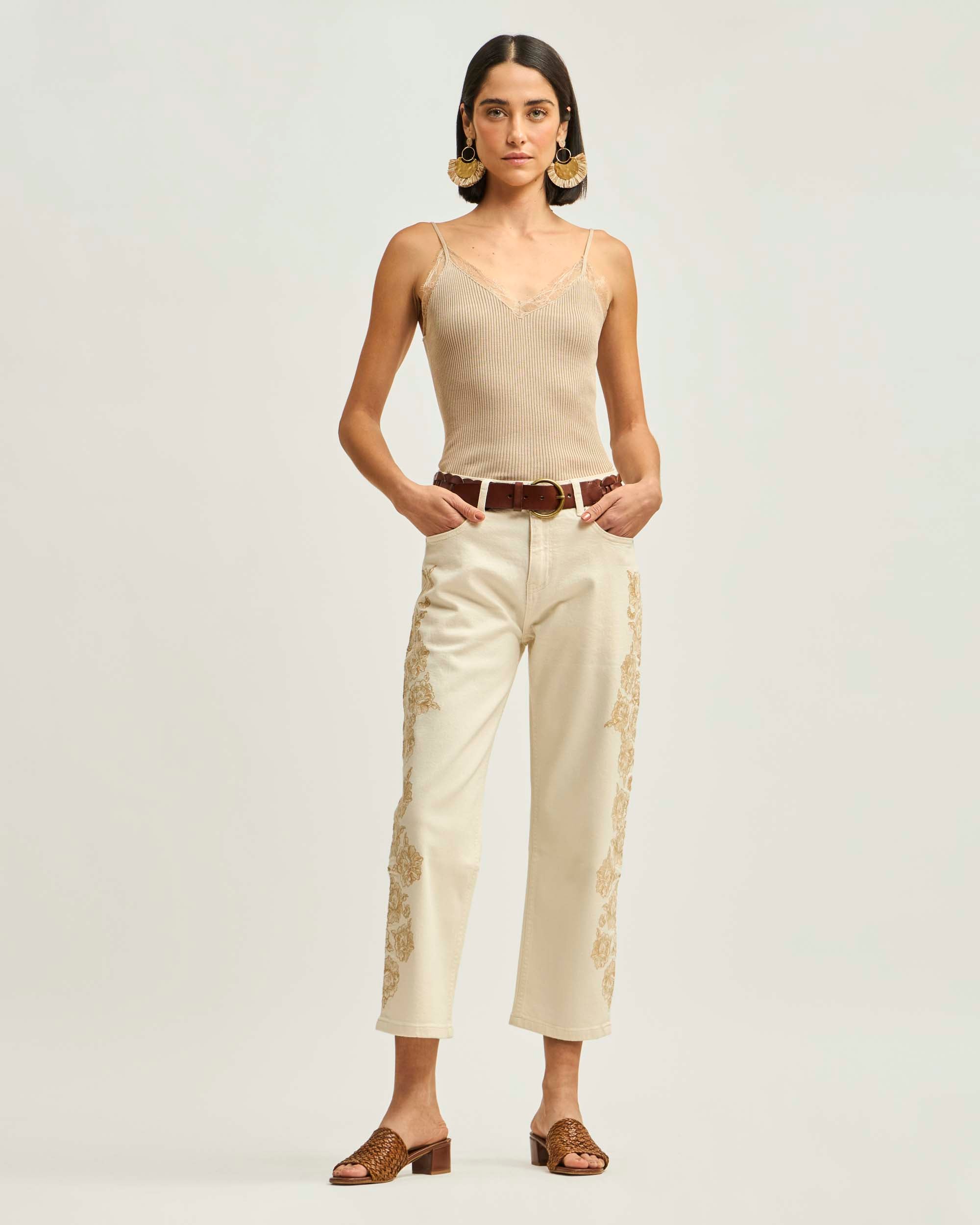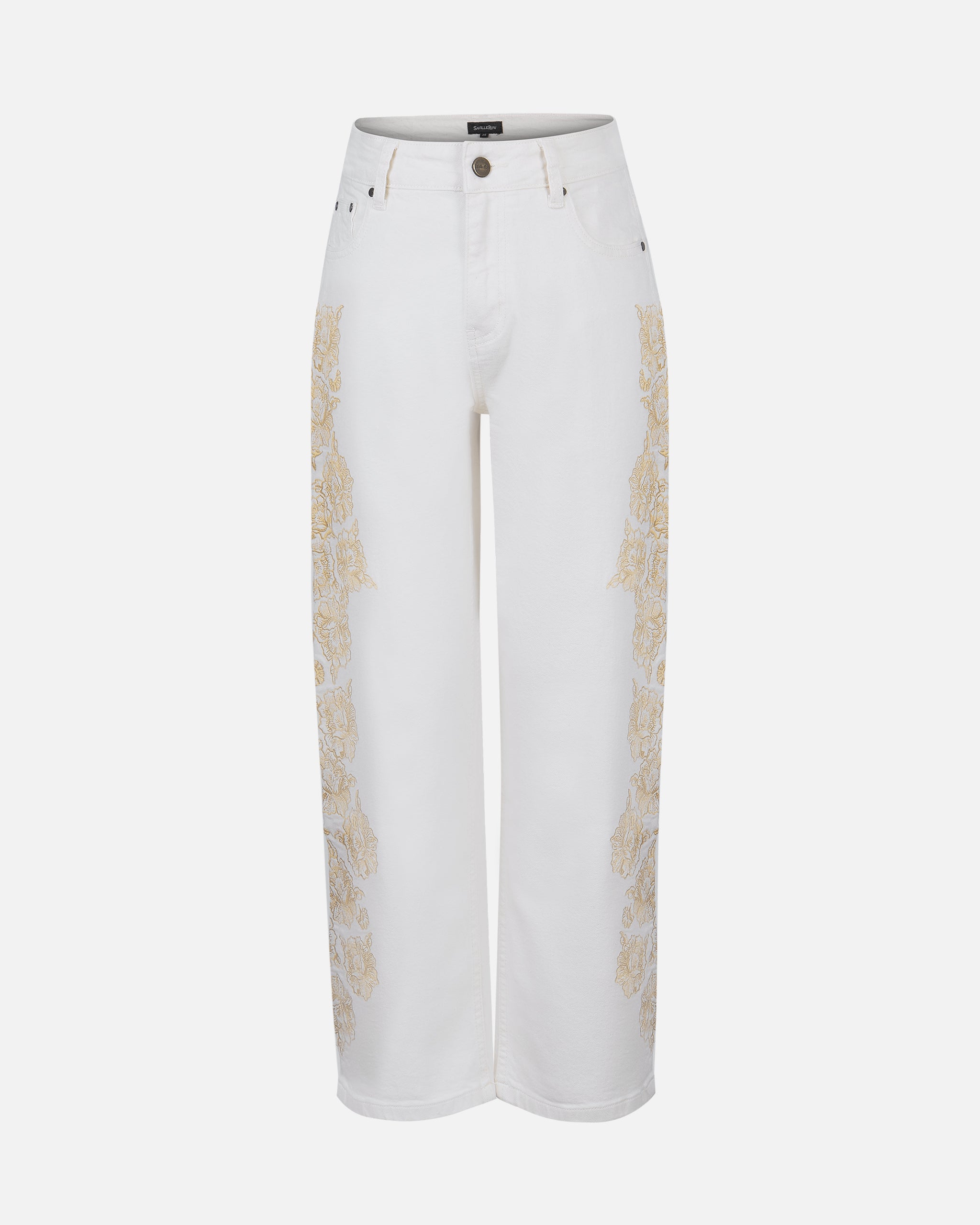 Jeans Recto Tiro Medio Bordado A Lo Largo