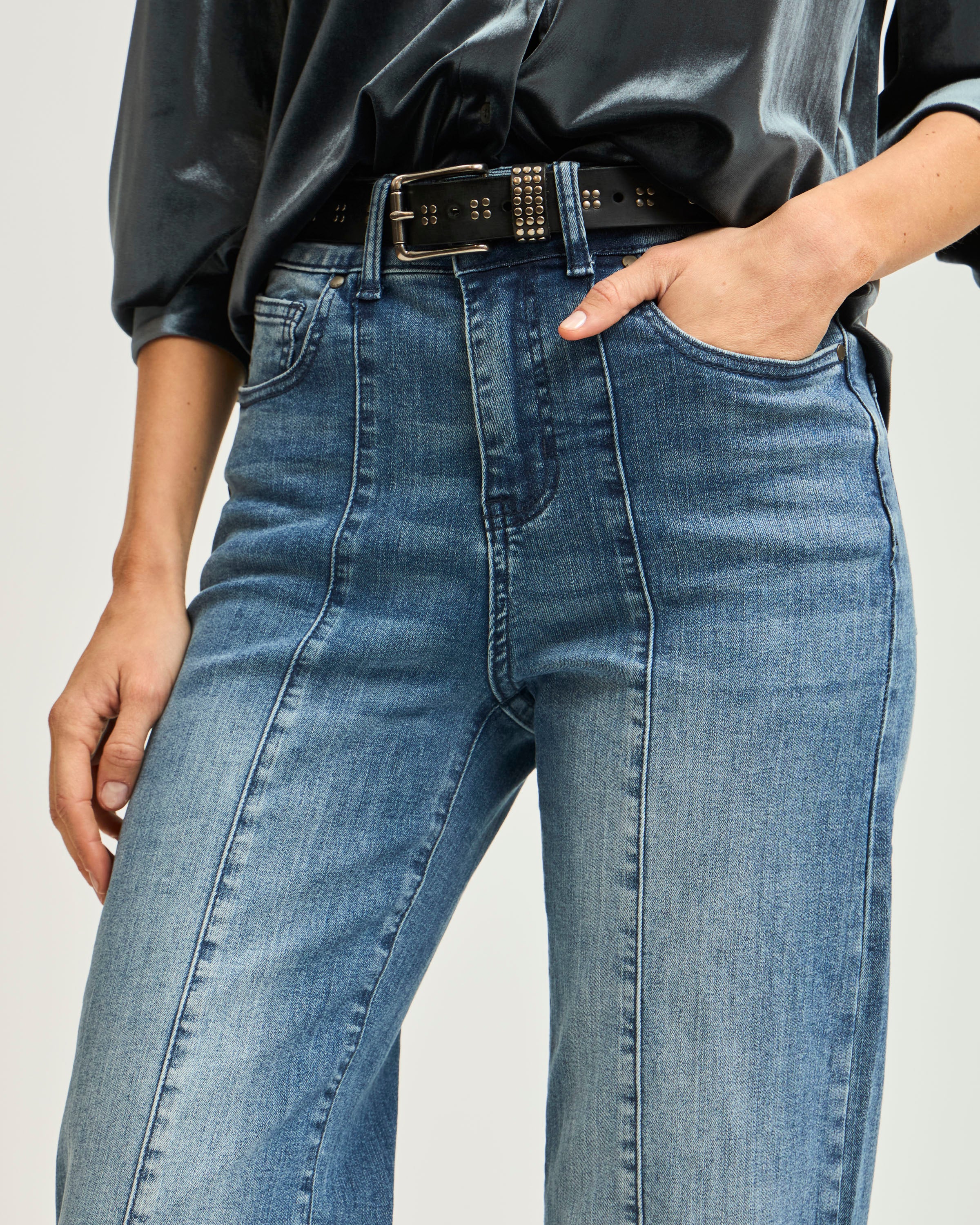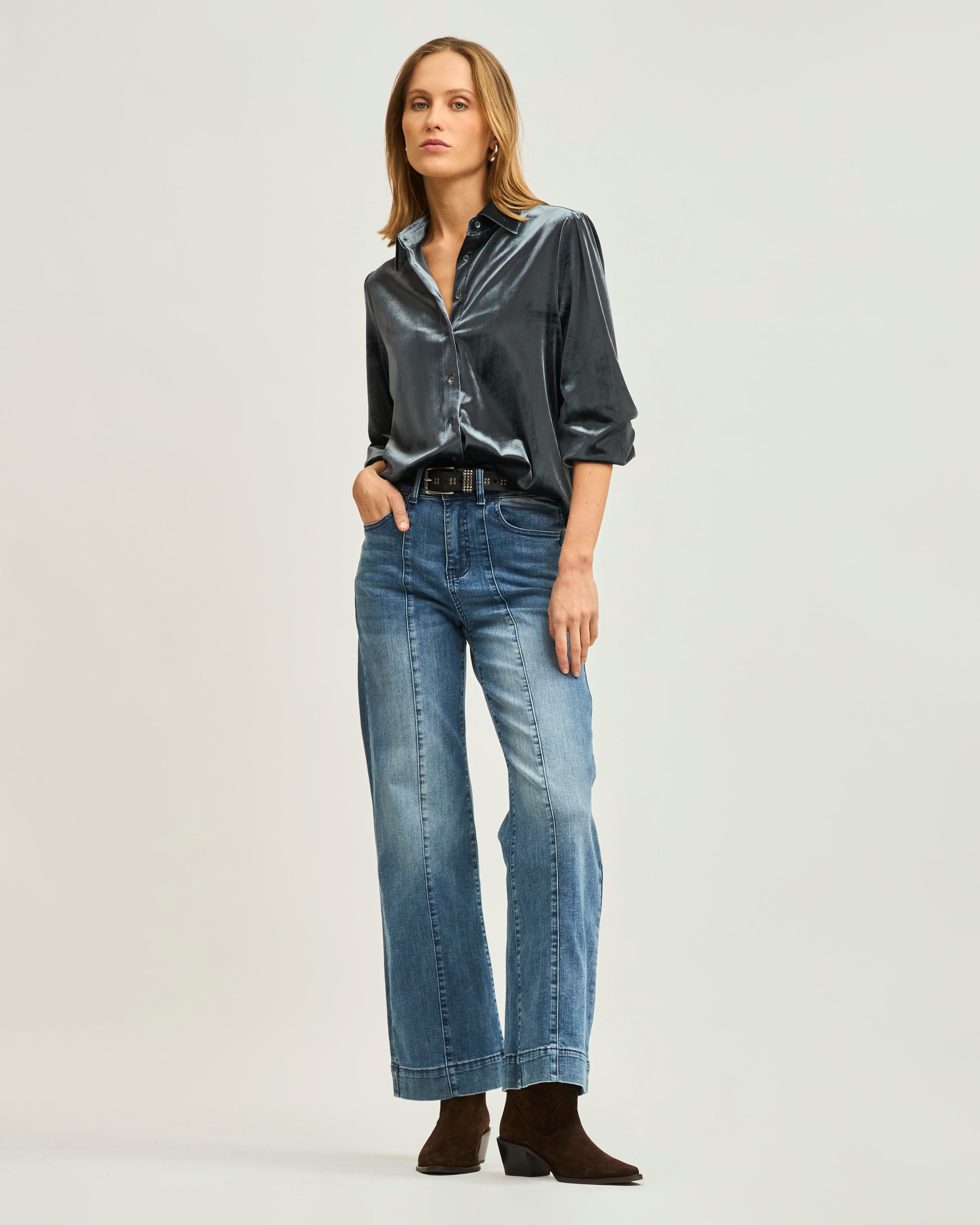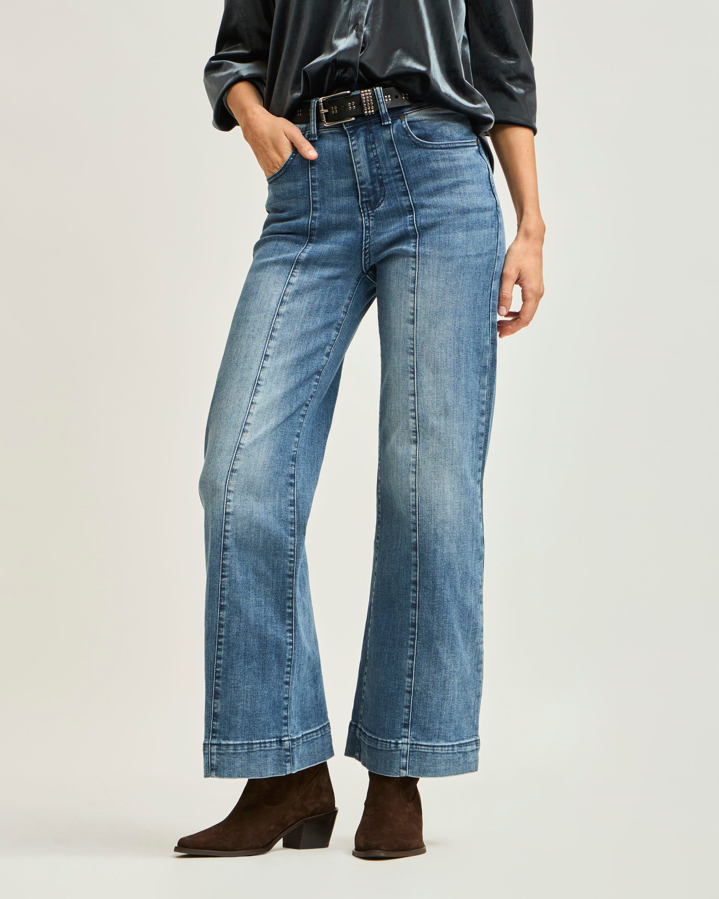 Jeans Wide Leg Costura Al Medio