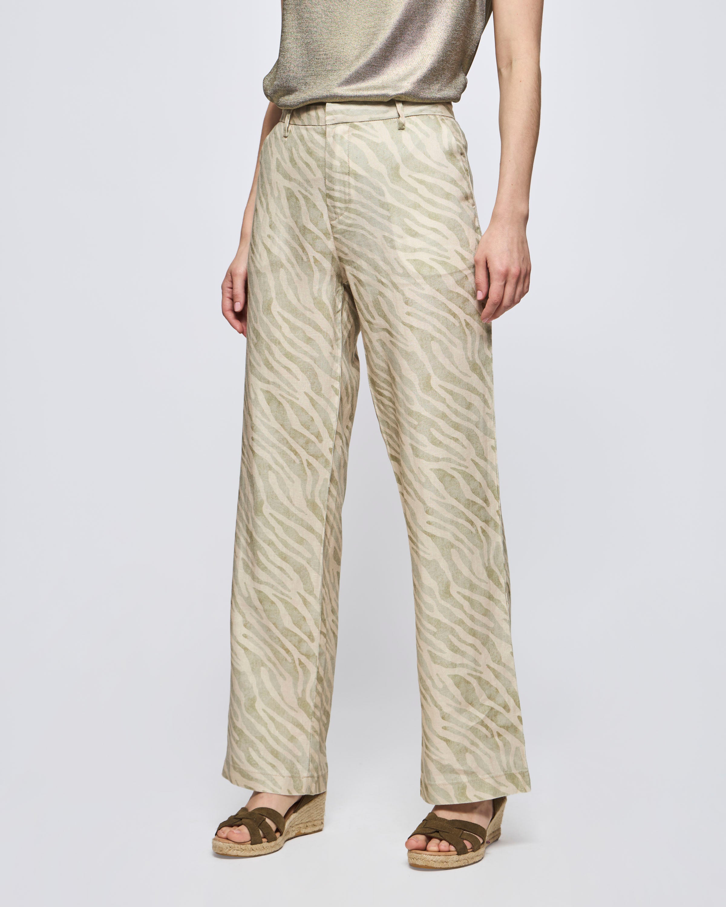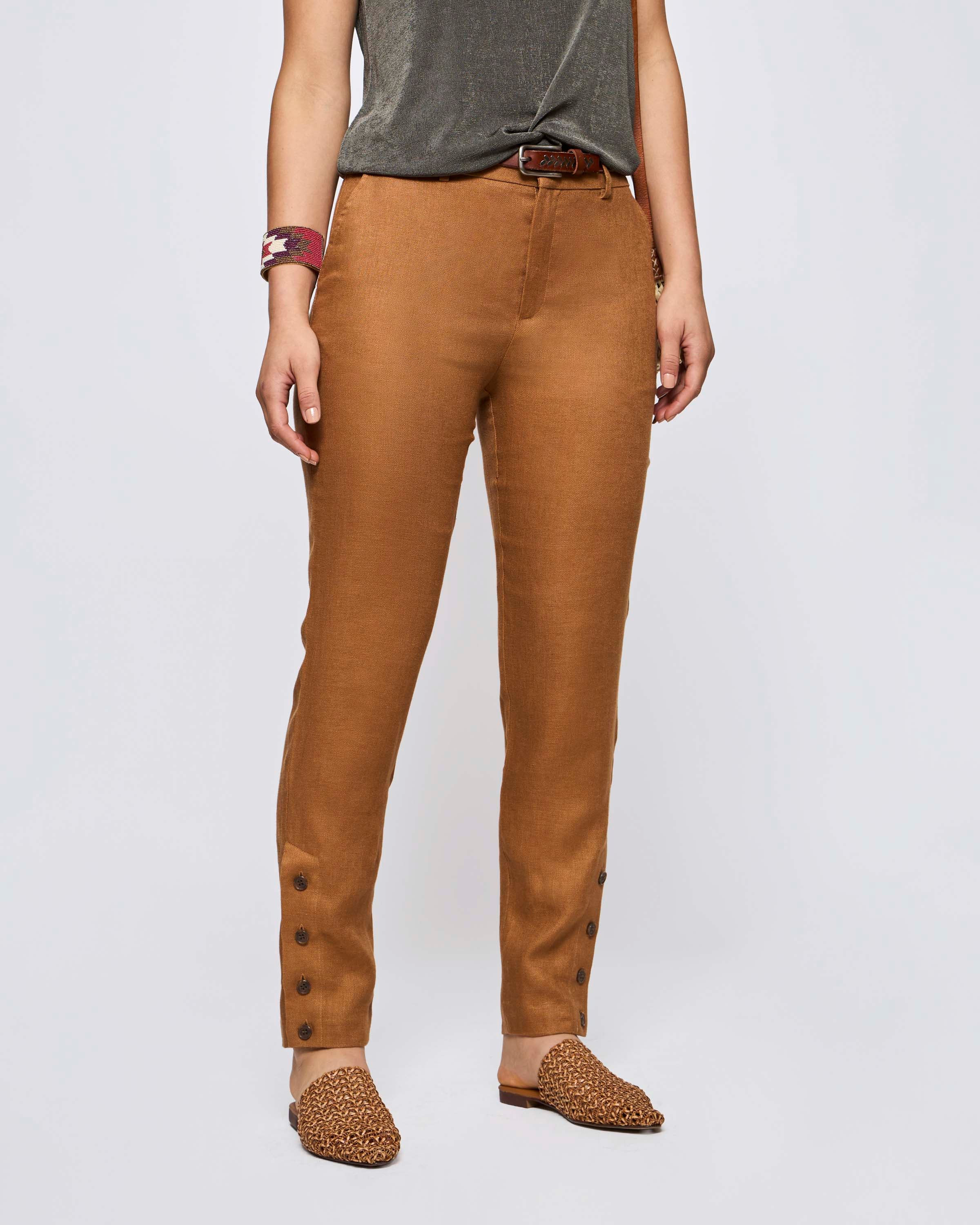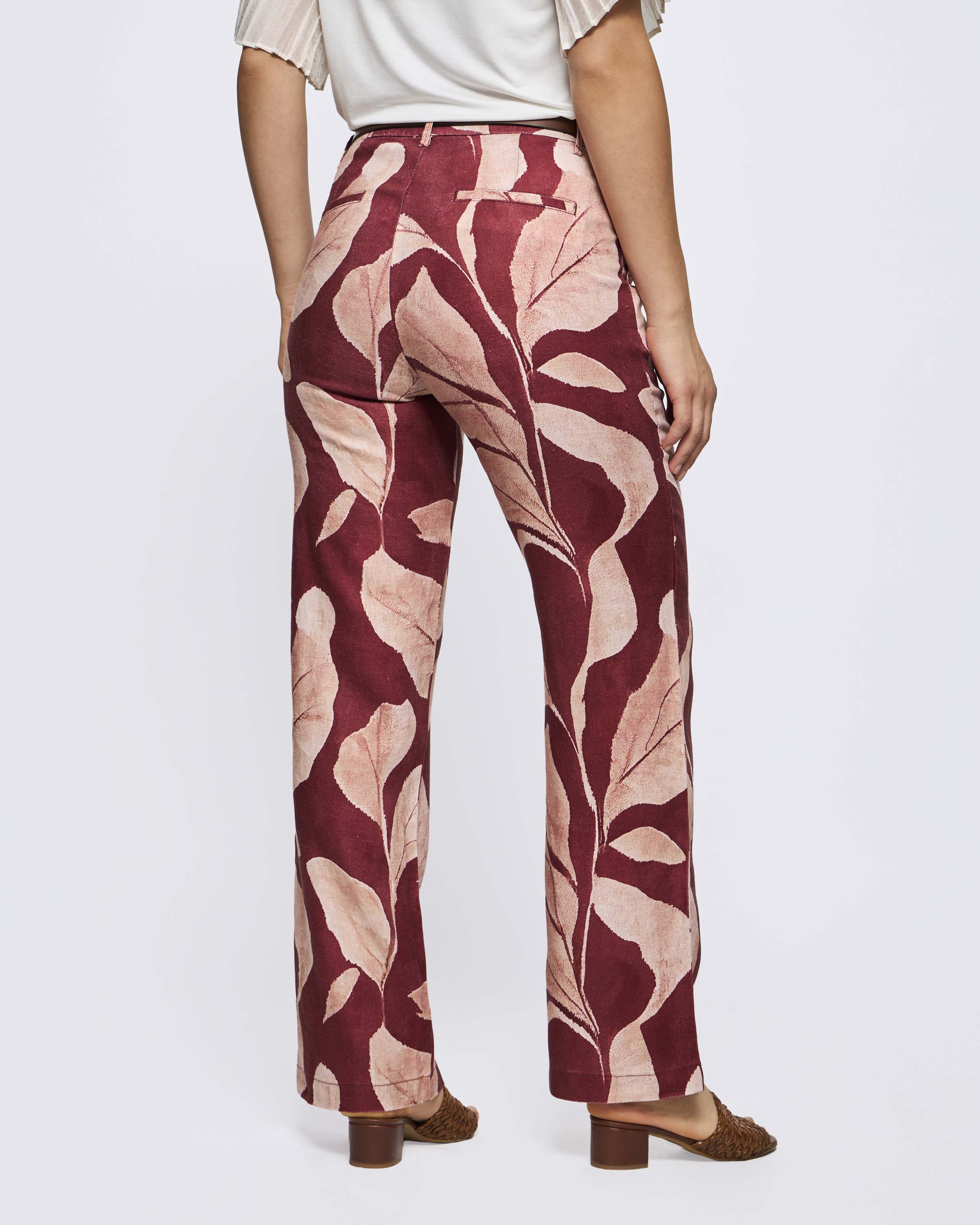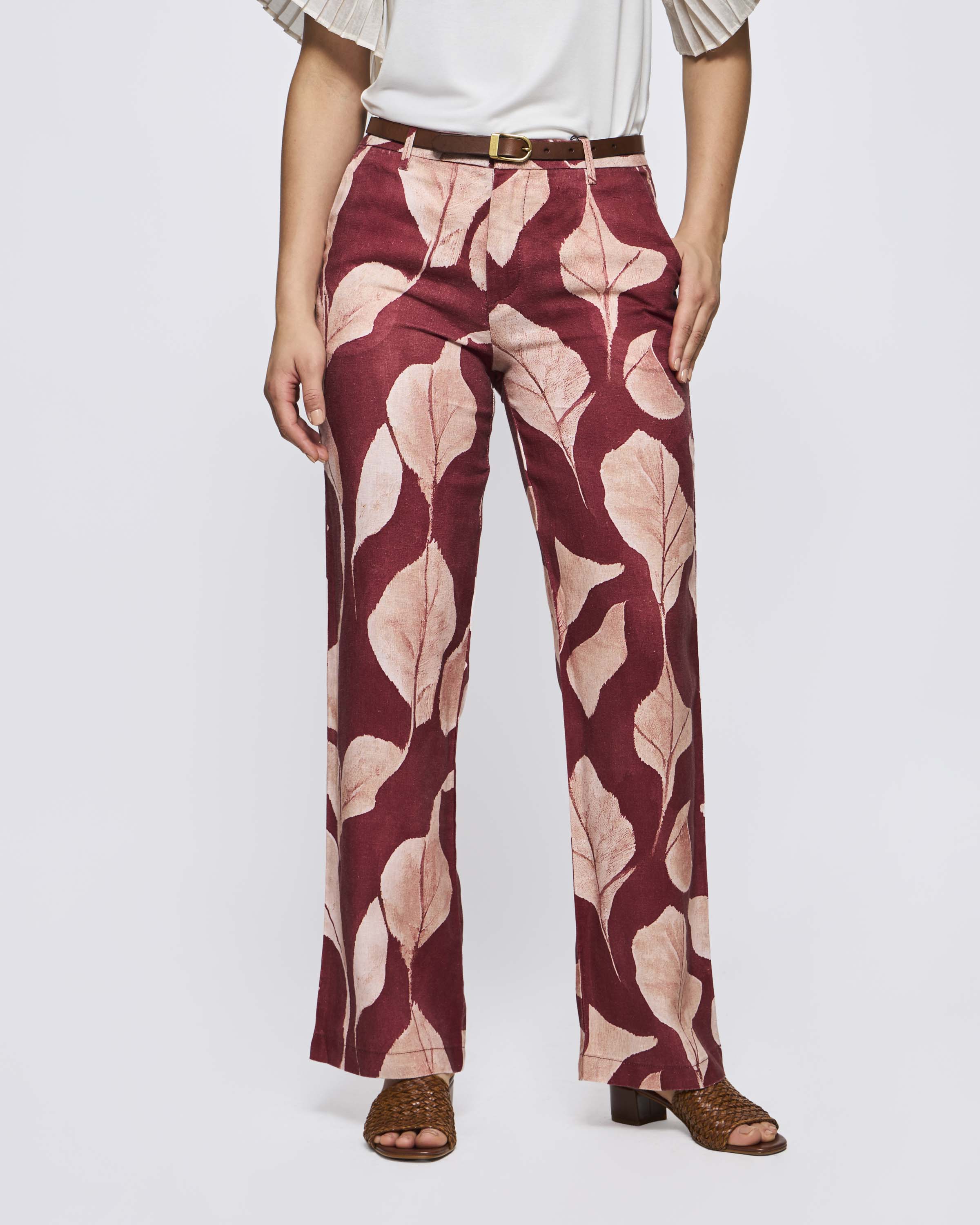 Pantalón Botones Lino Algodón Print Lum De Petal