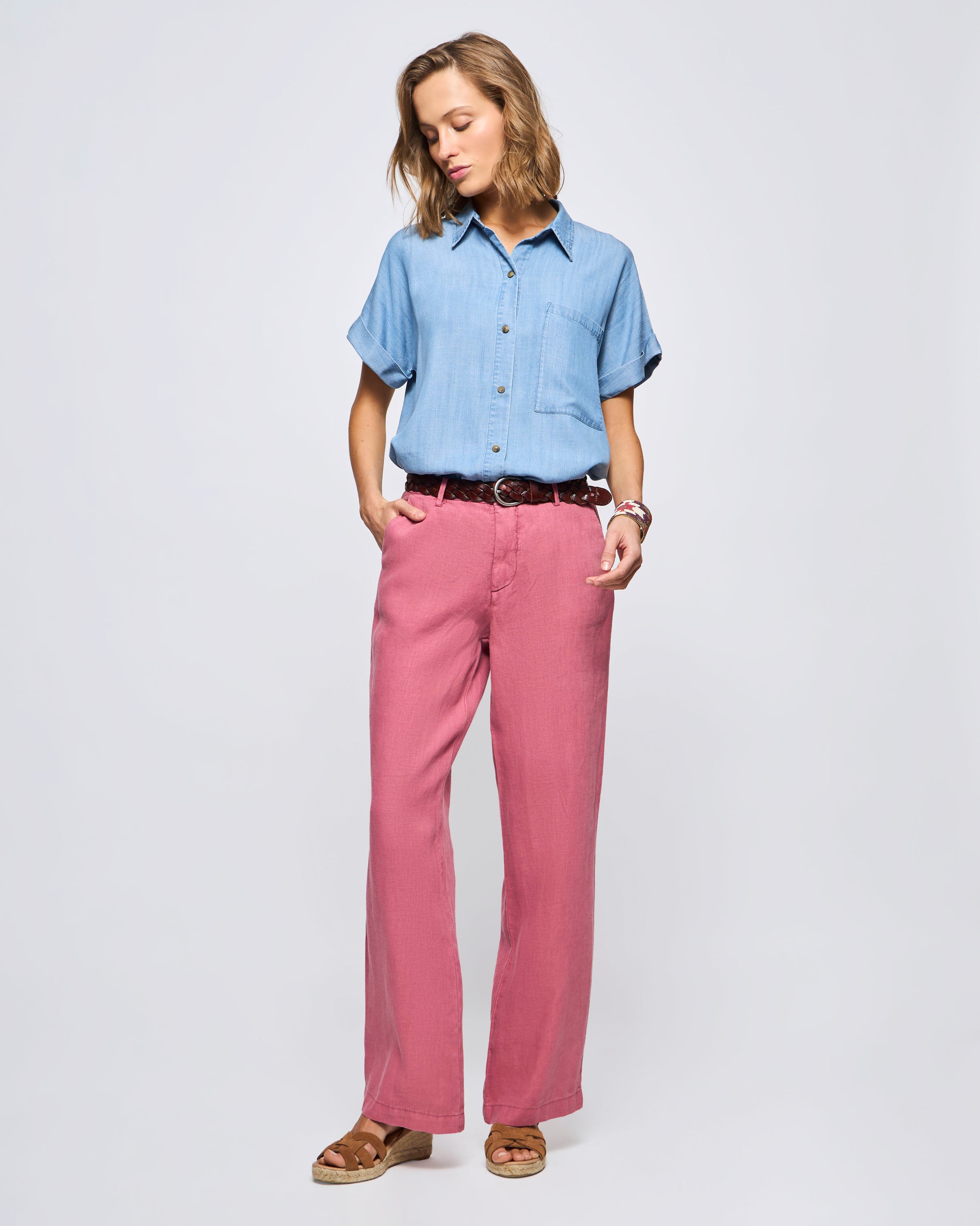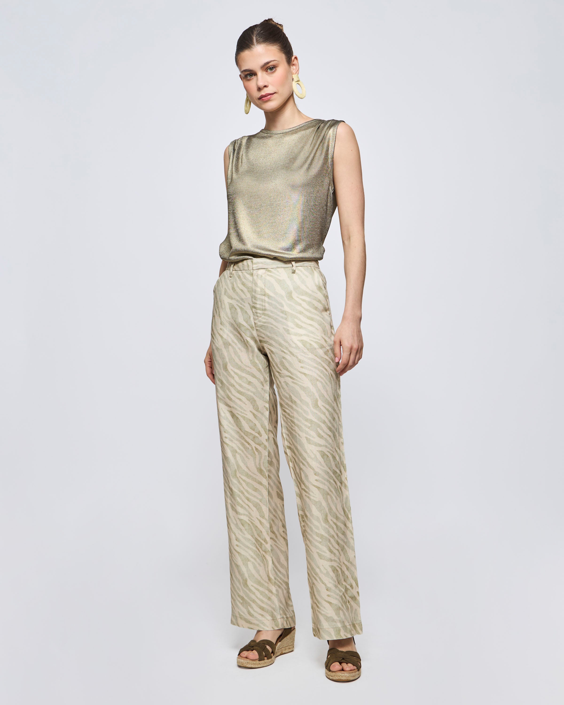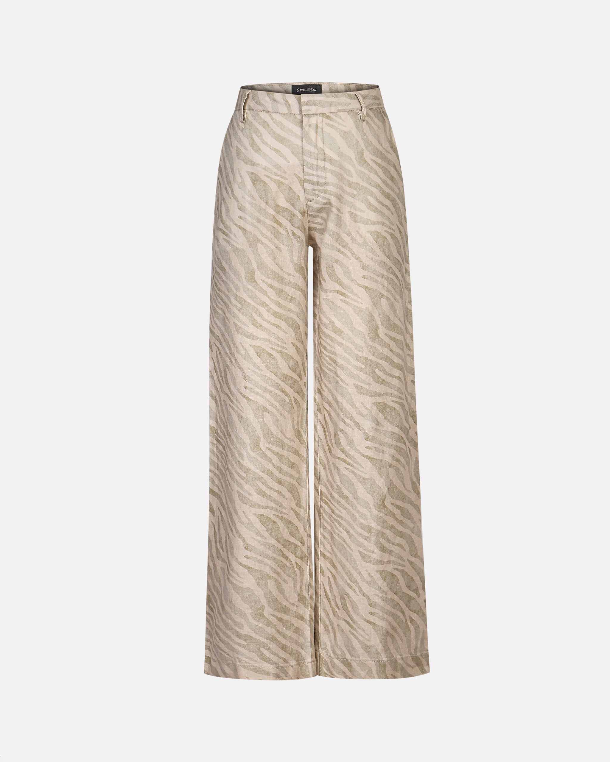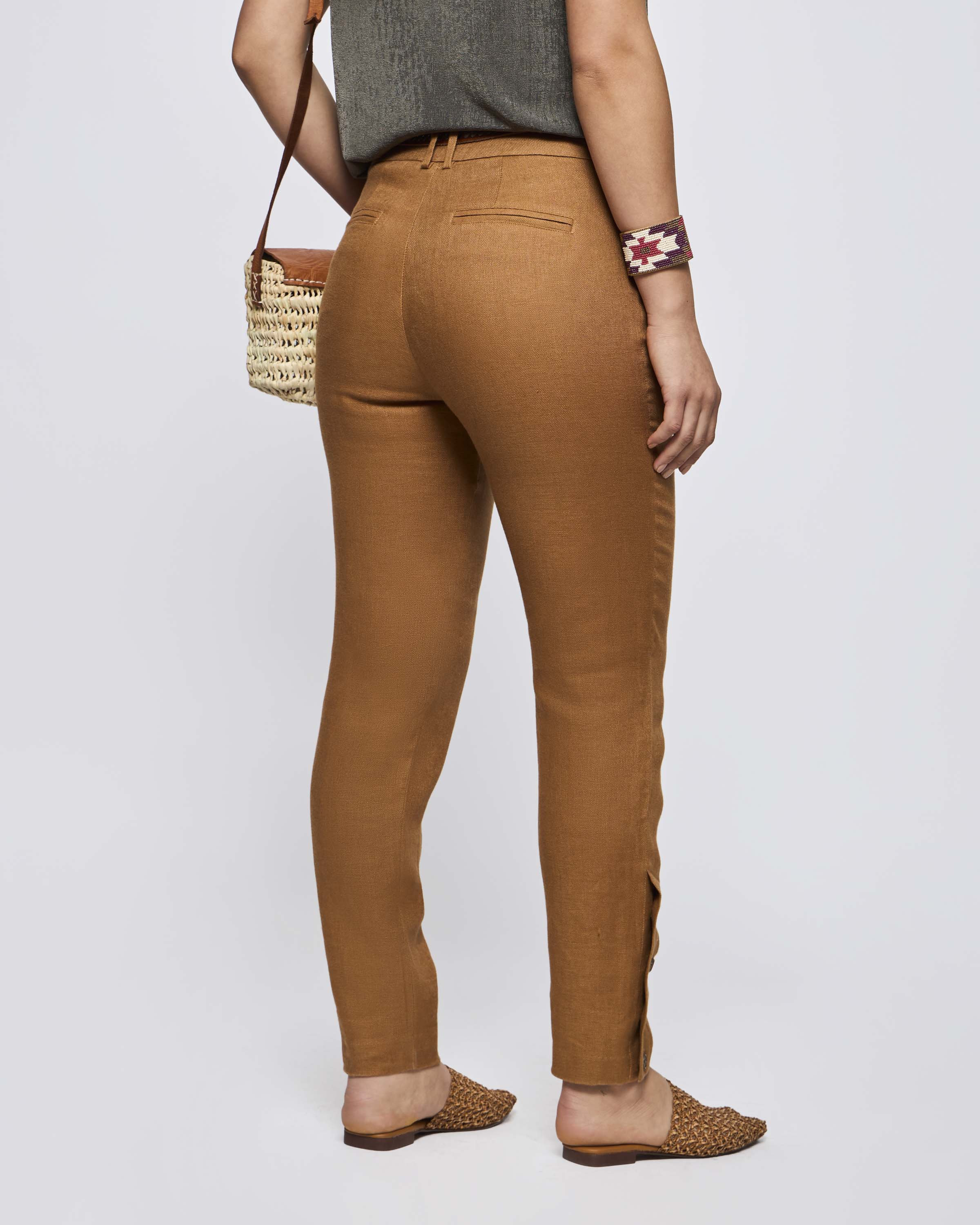 Pantalón Botones Lino Algodón Print Lum De Petal