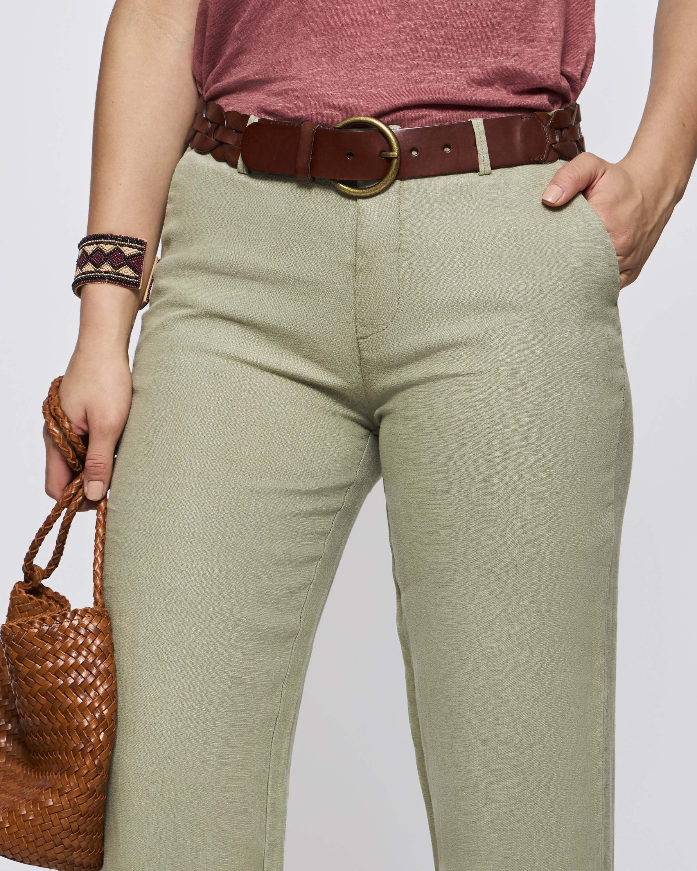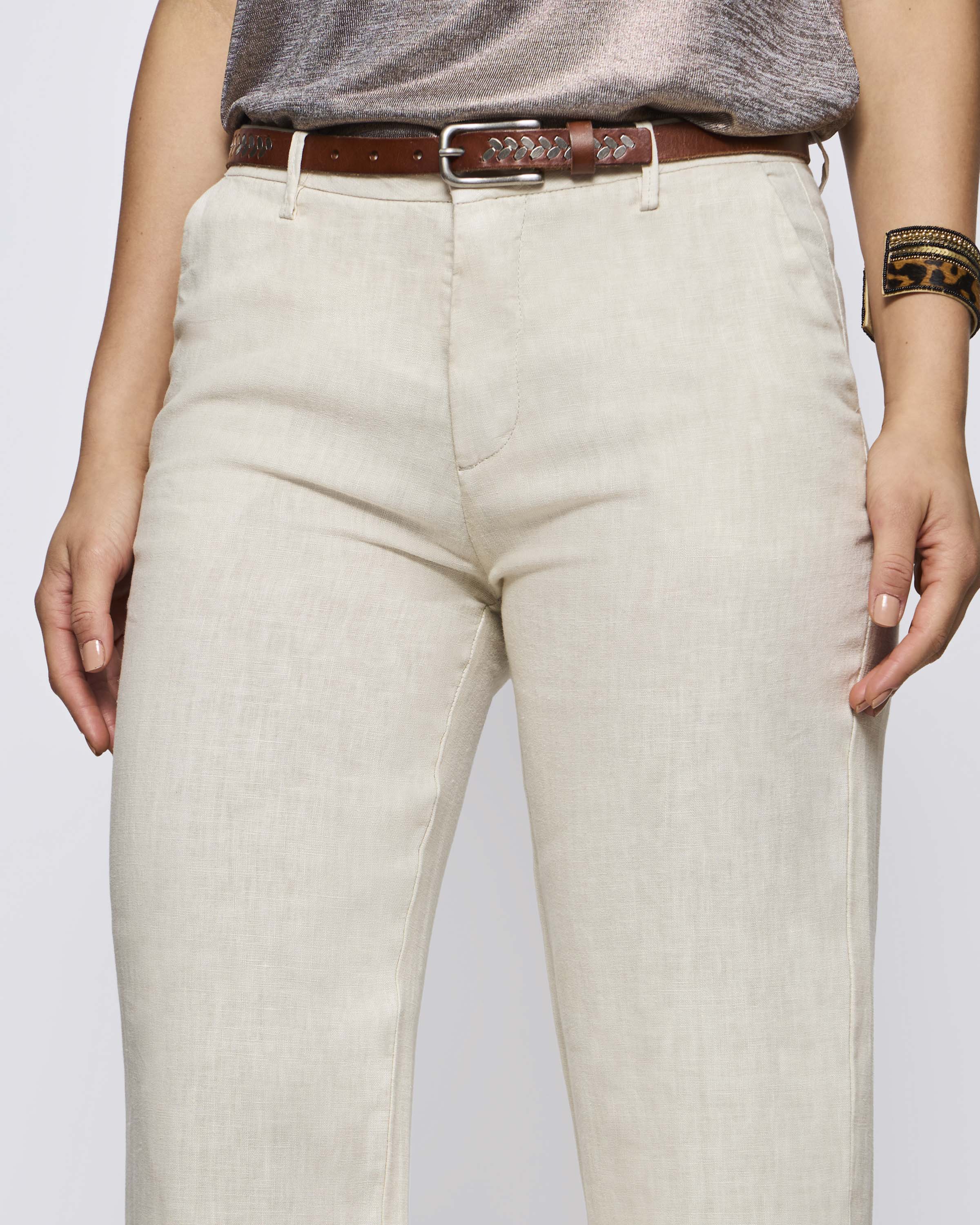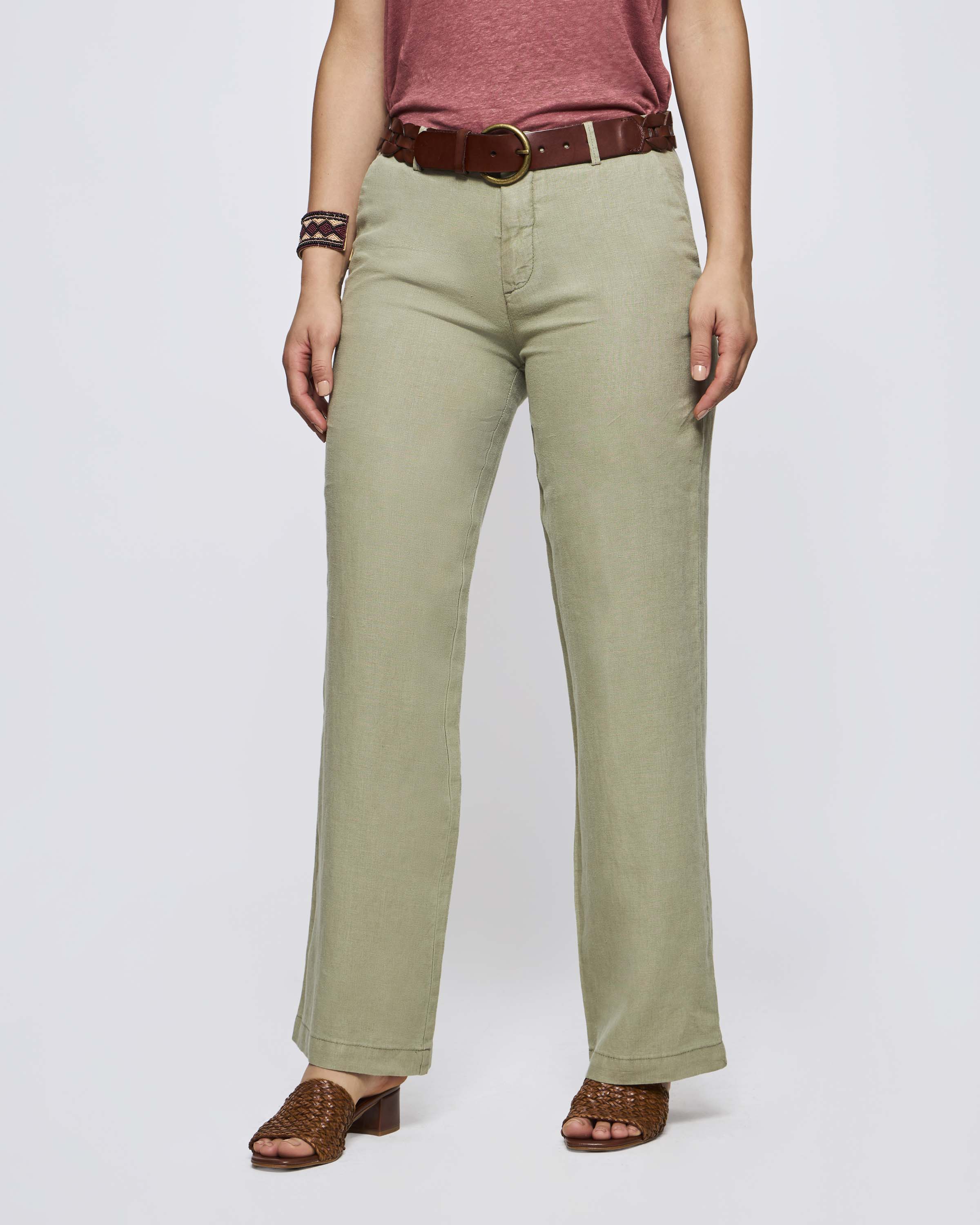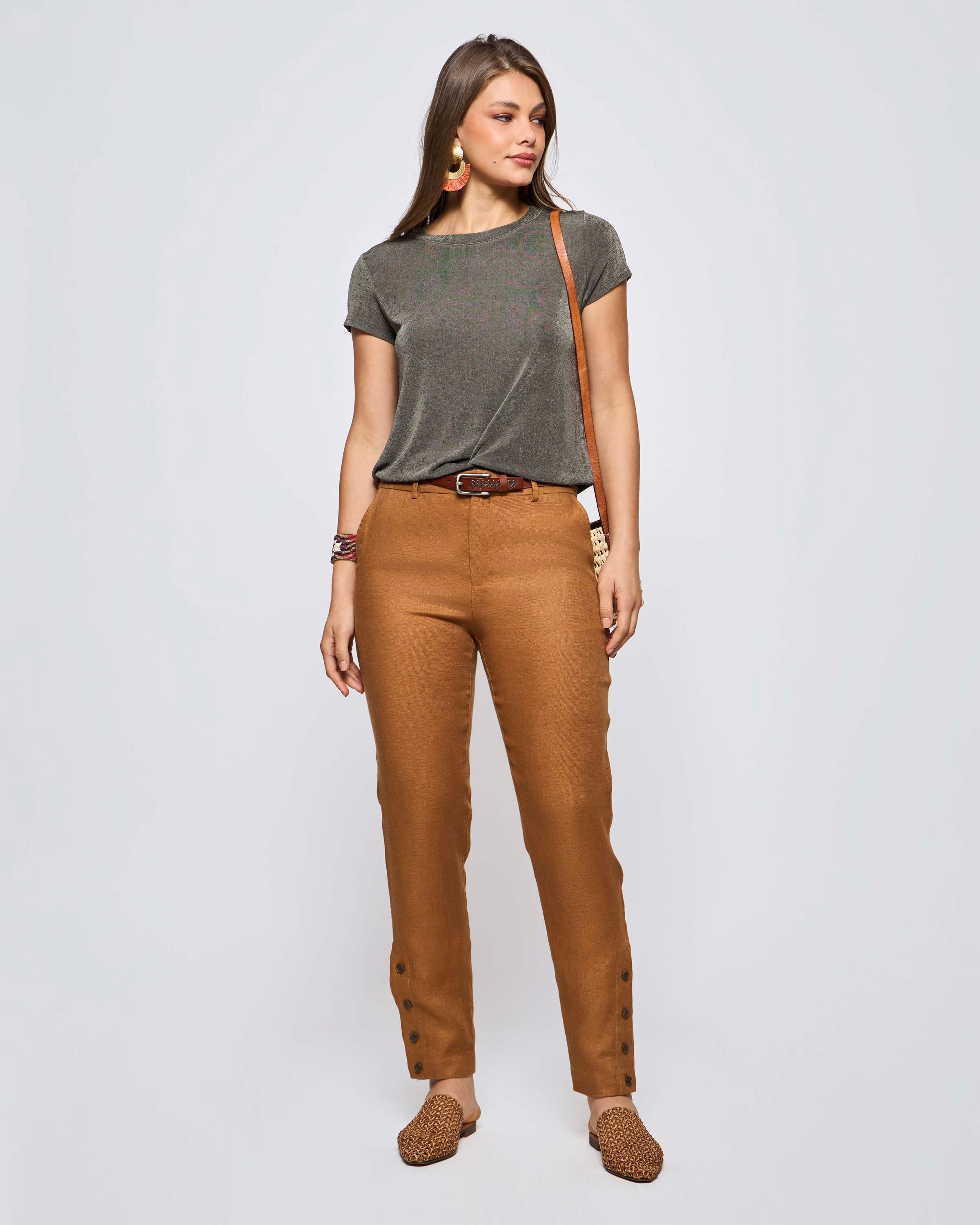 Pantalón Botones Lino Algodón Print Lum De Petal