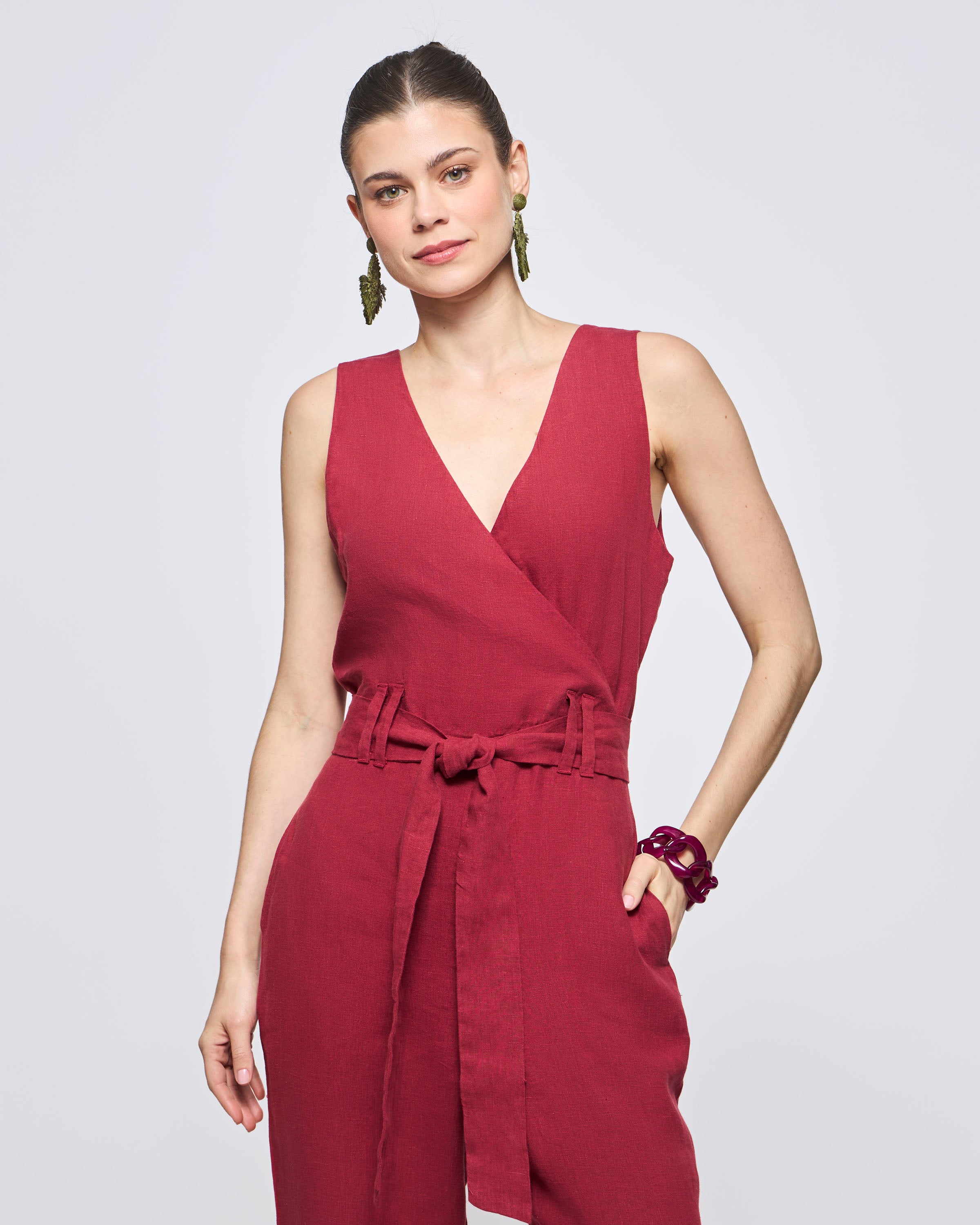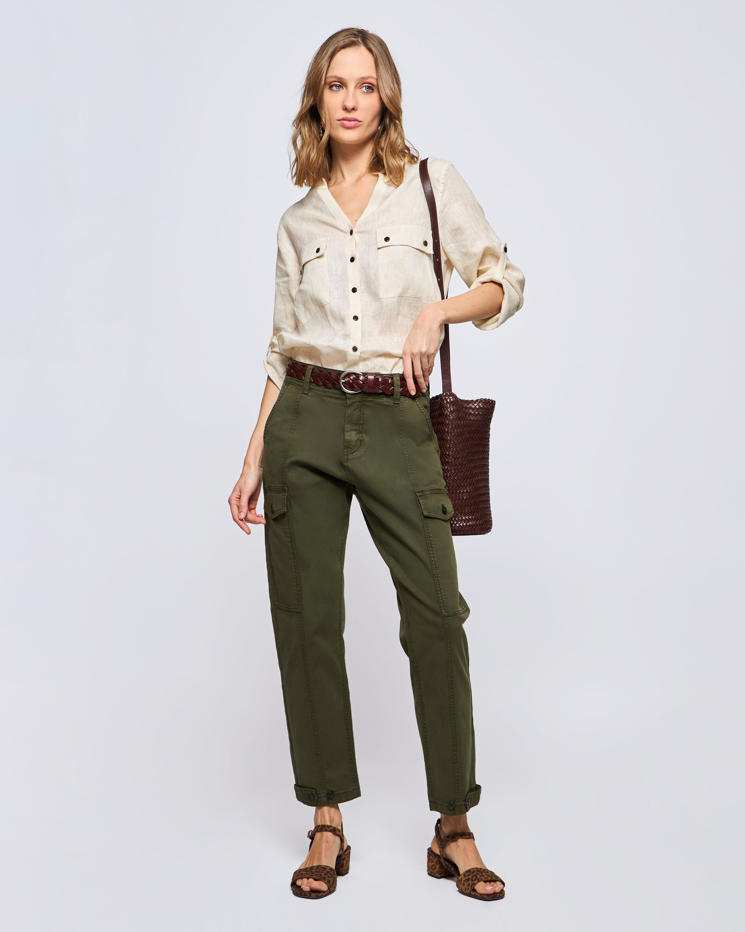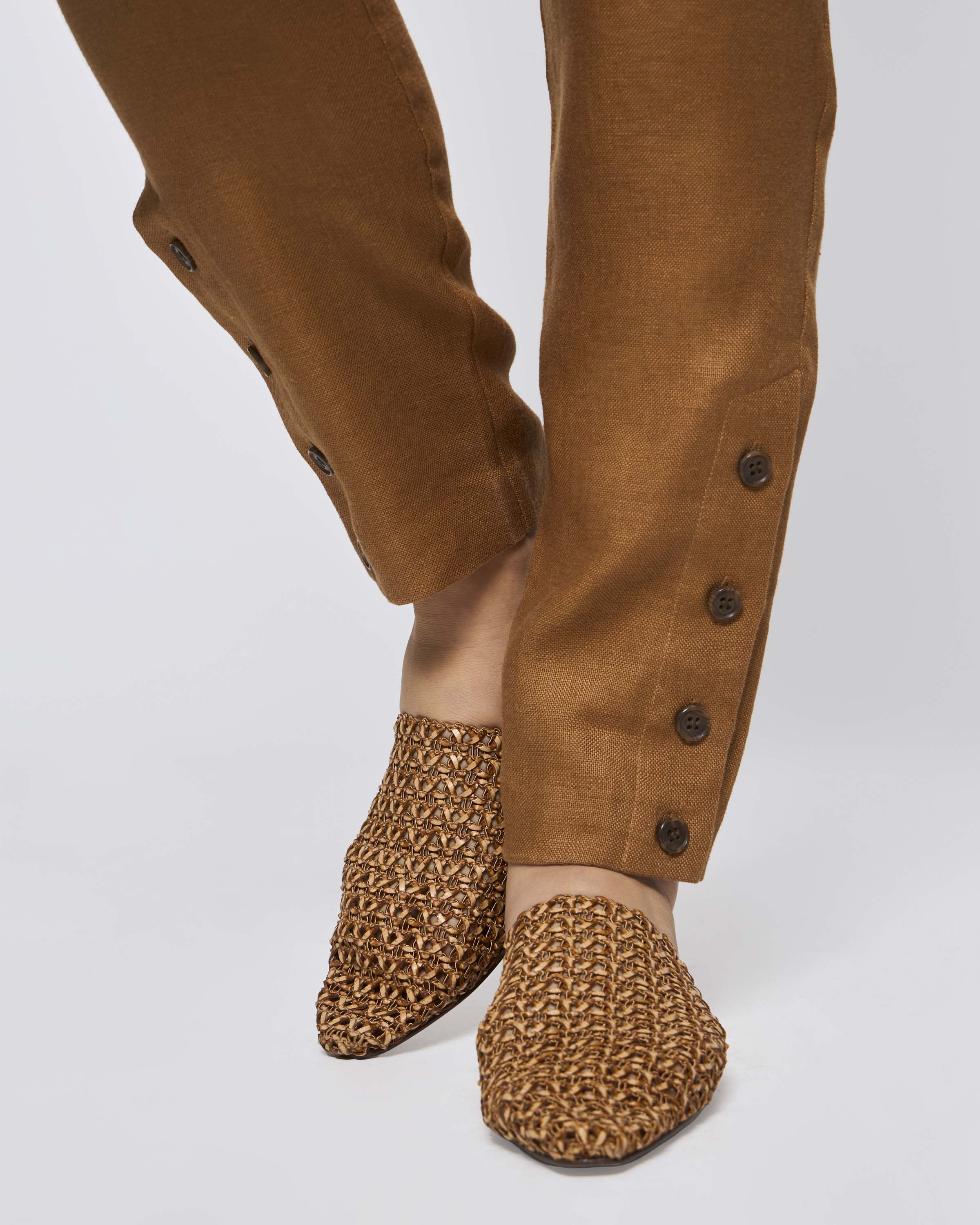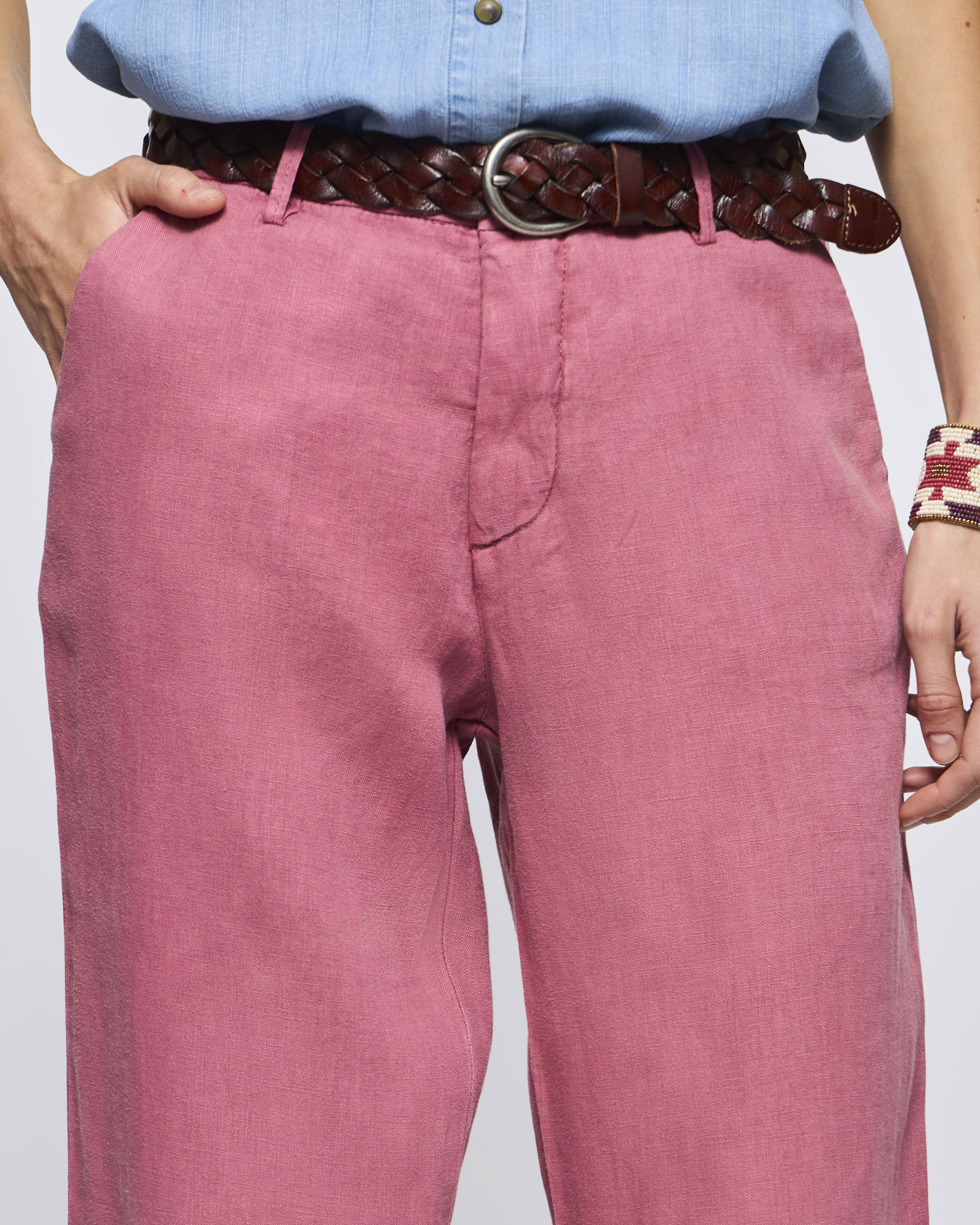 Pantalón Botones Lino Algodón Print Lum De Petal