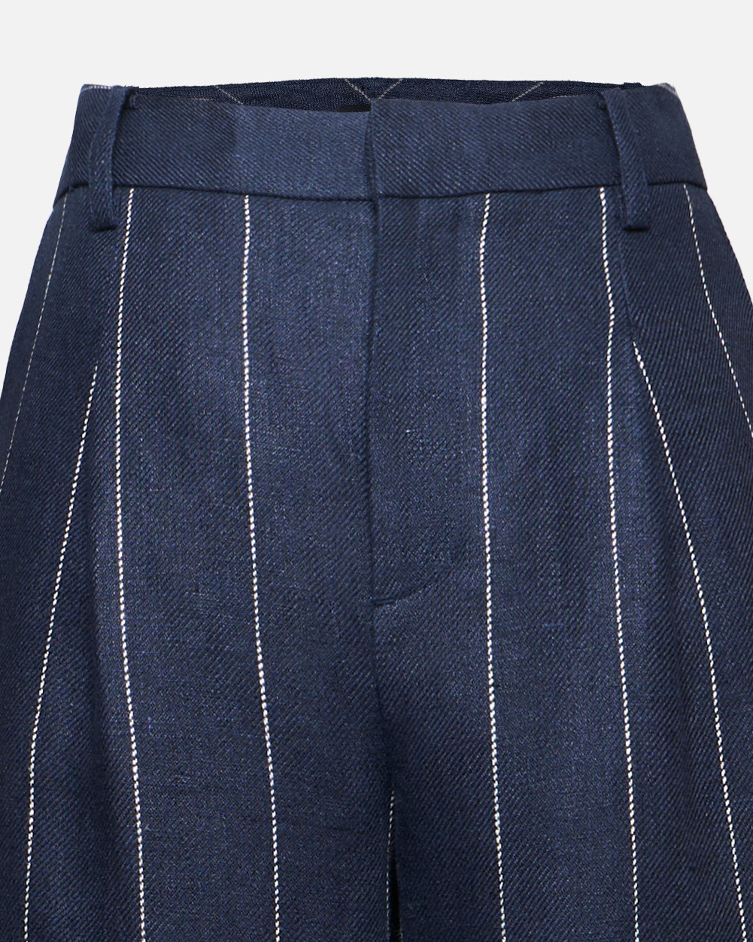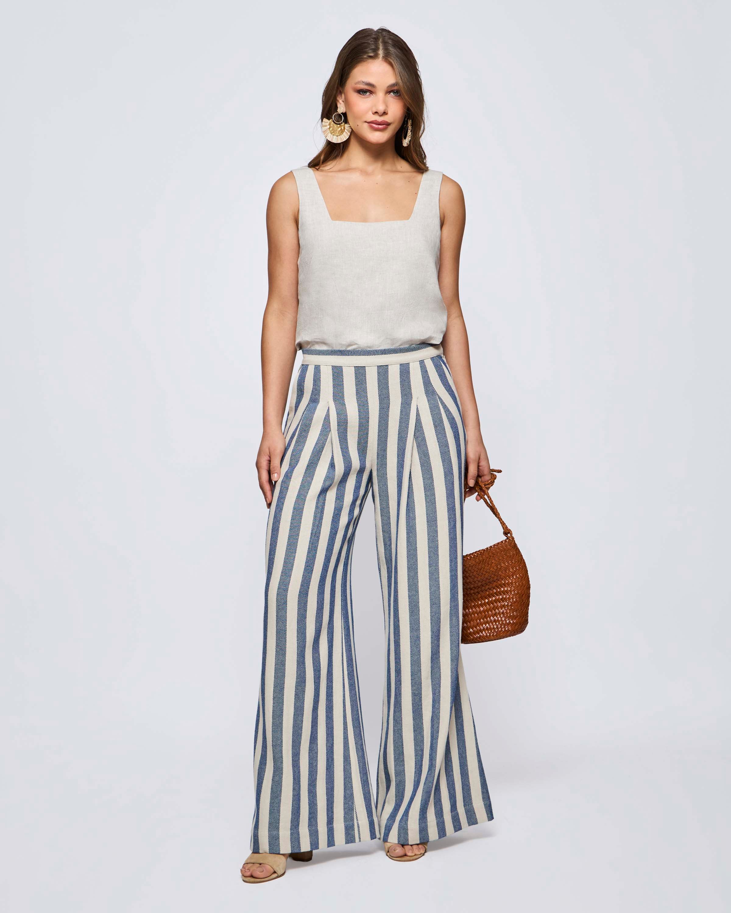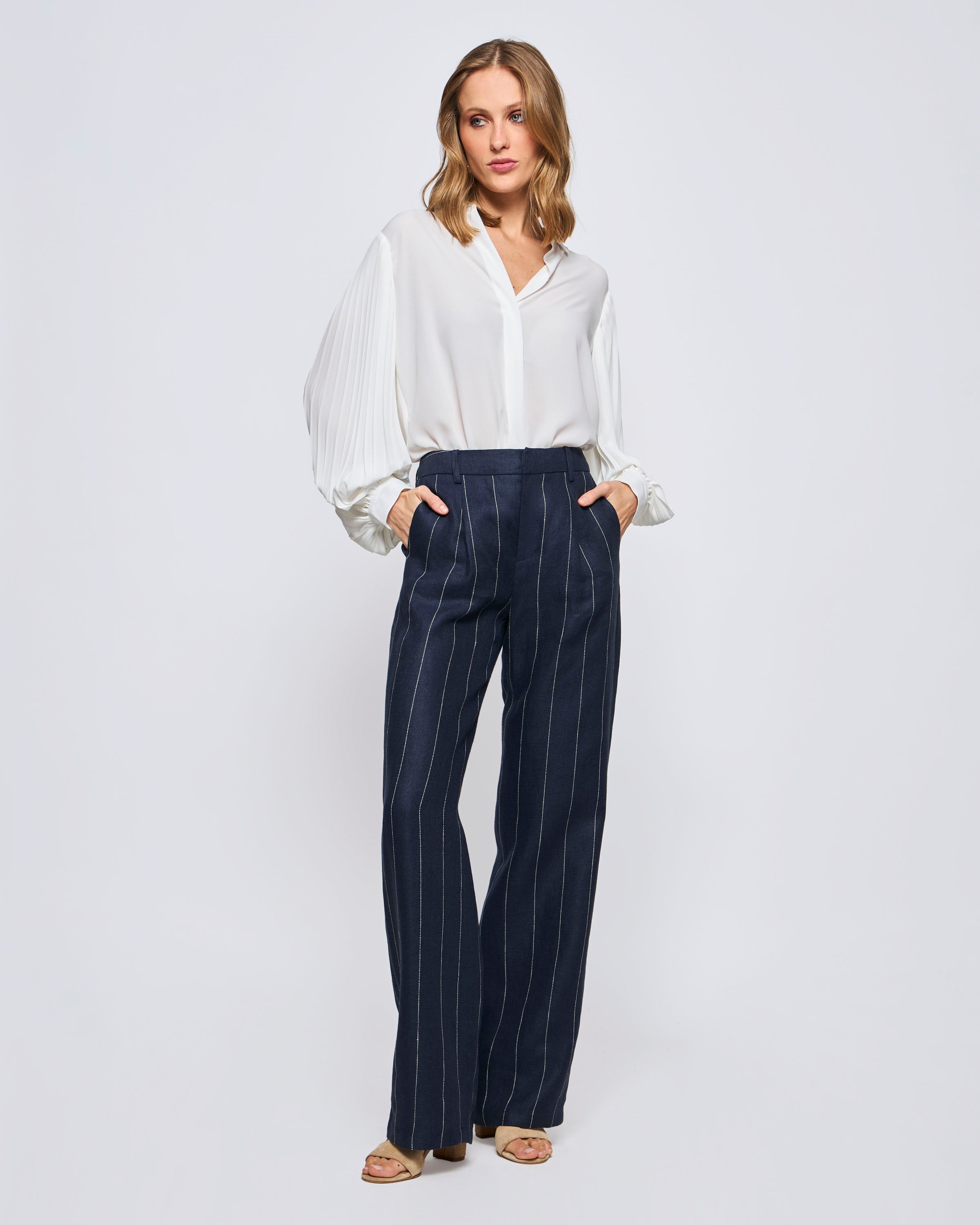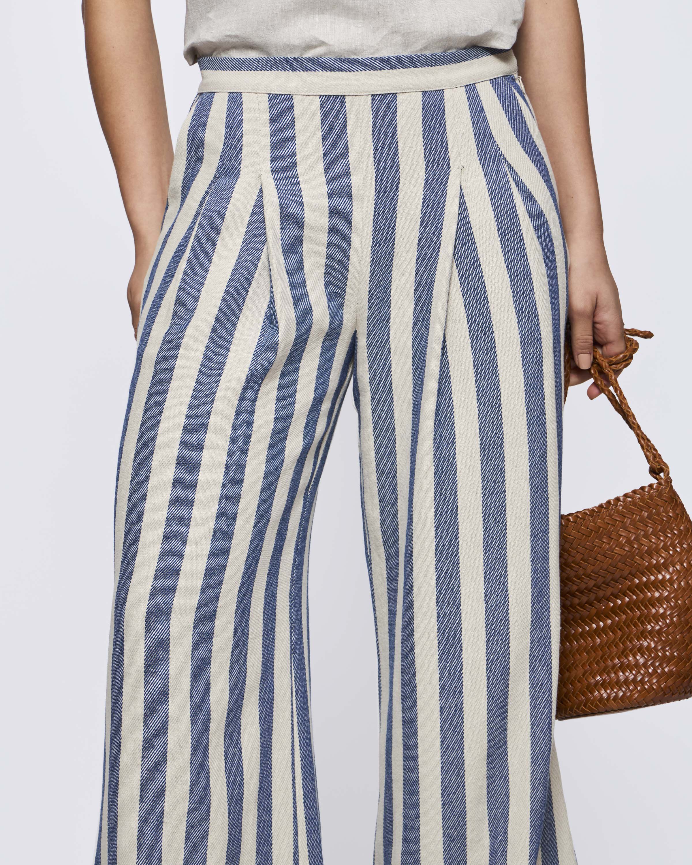 Pantalón Ancho Pinzas Rayas Ancha Azul