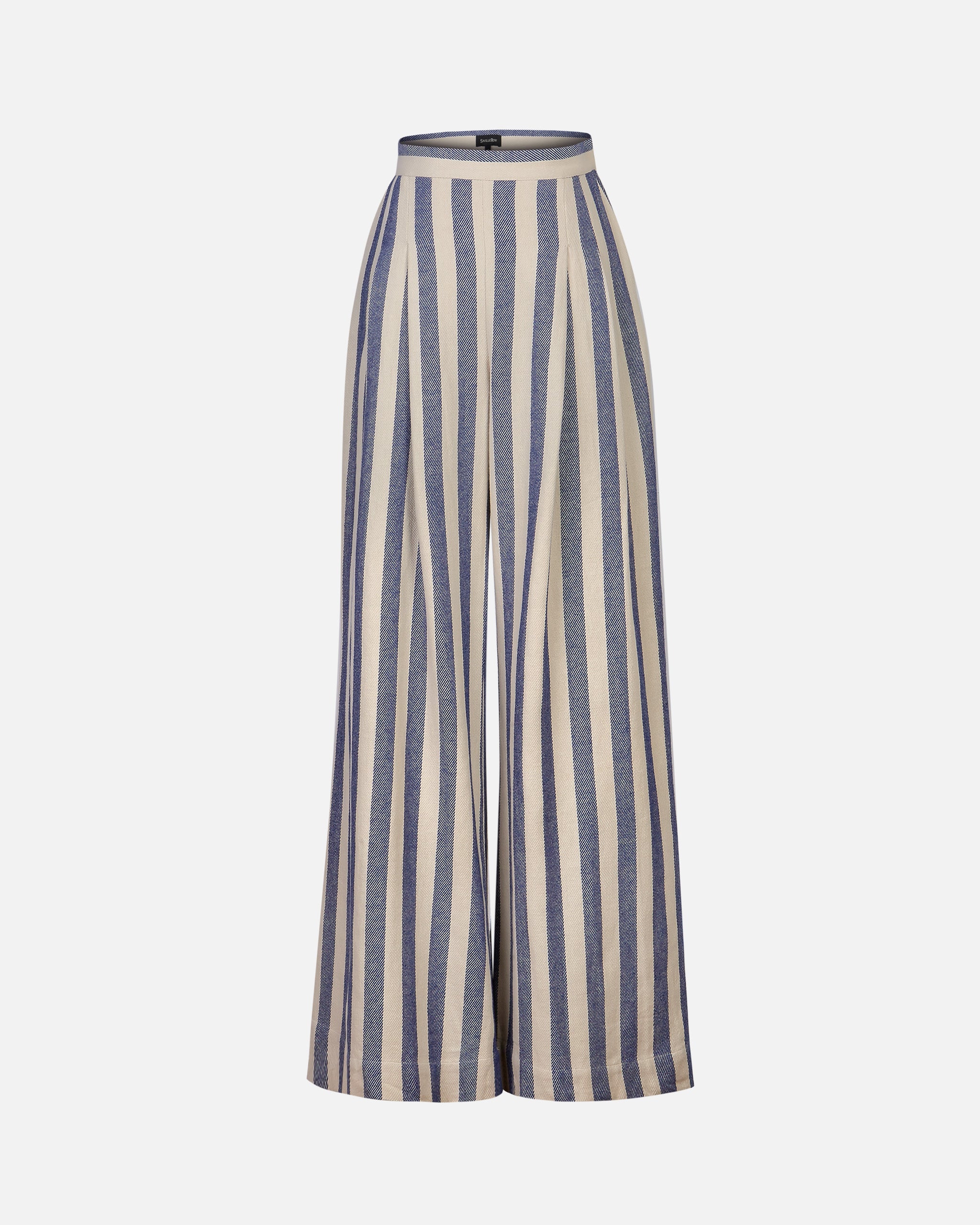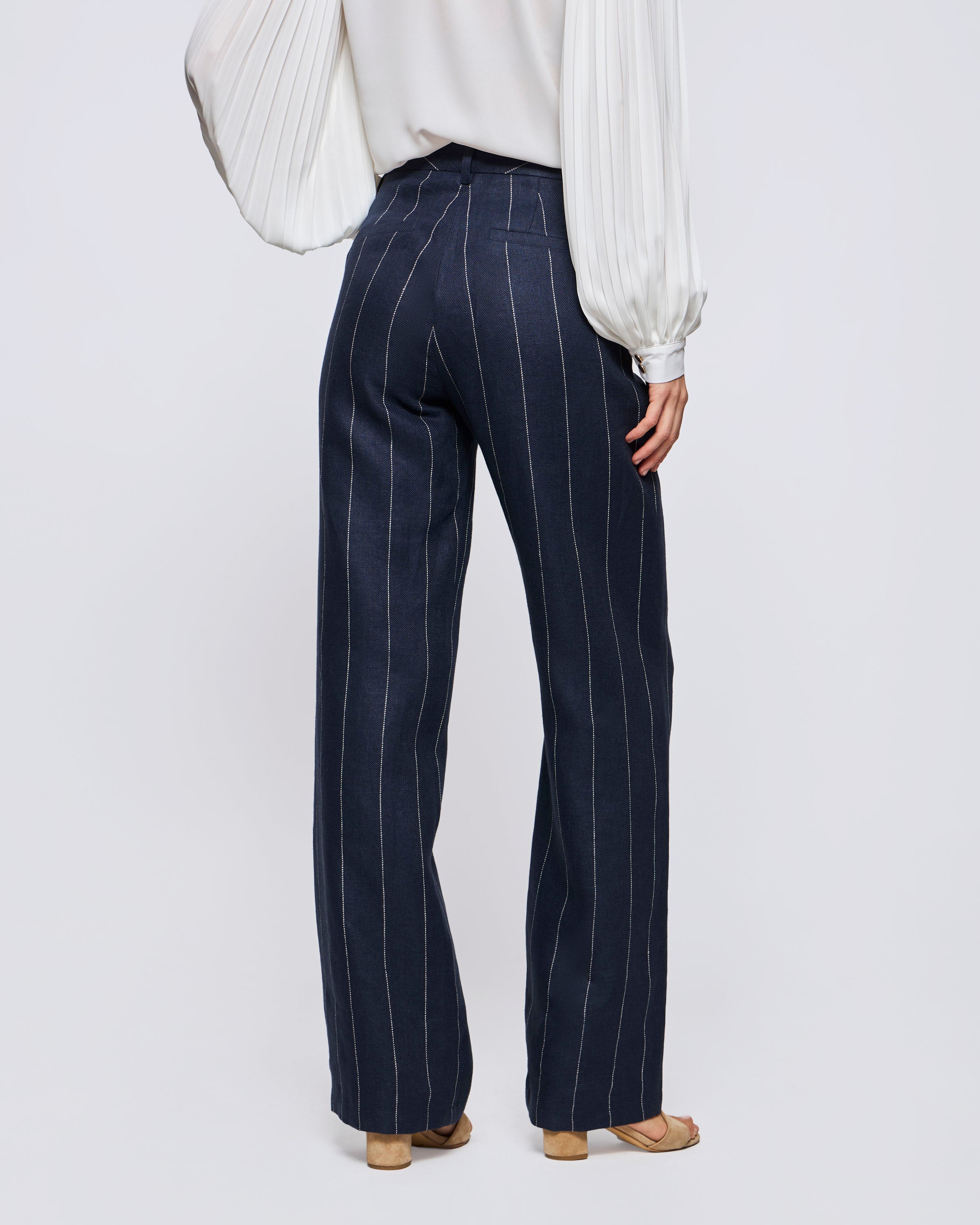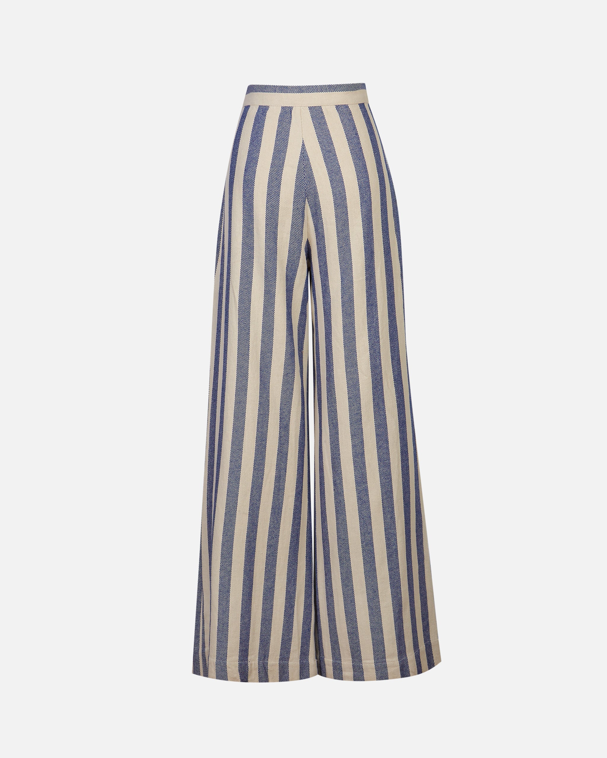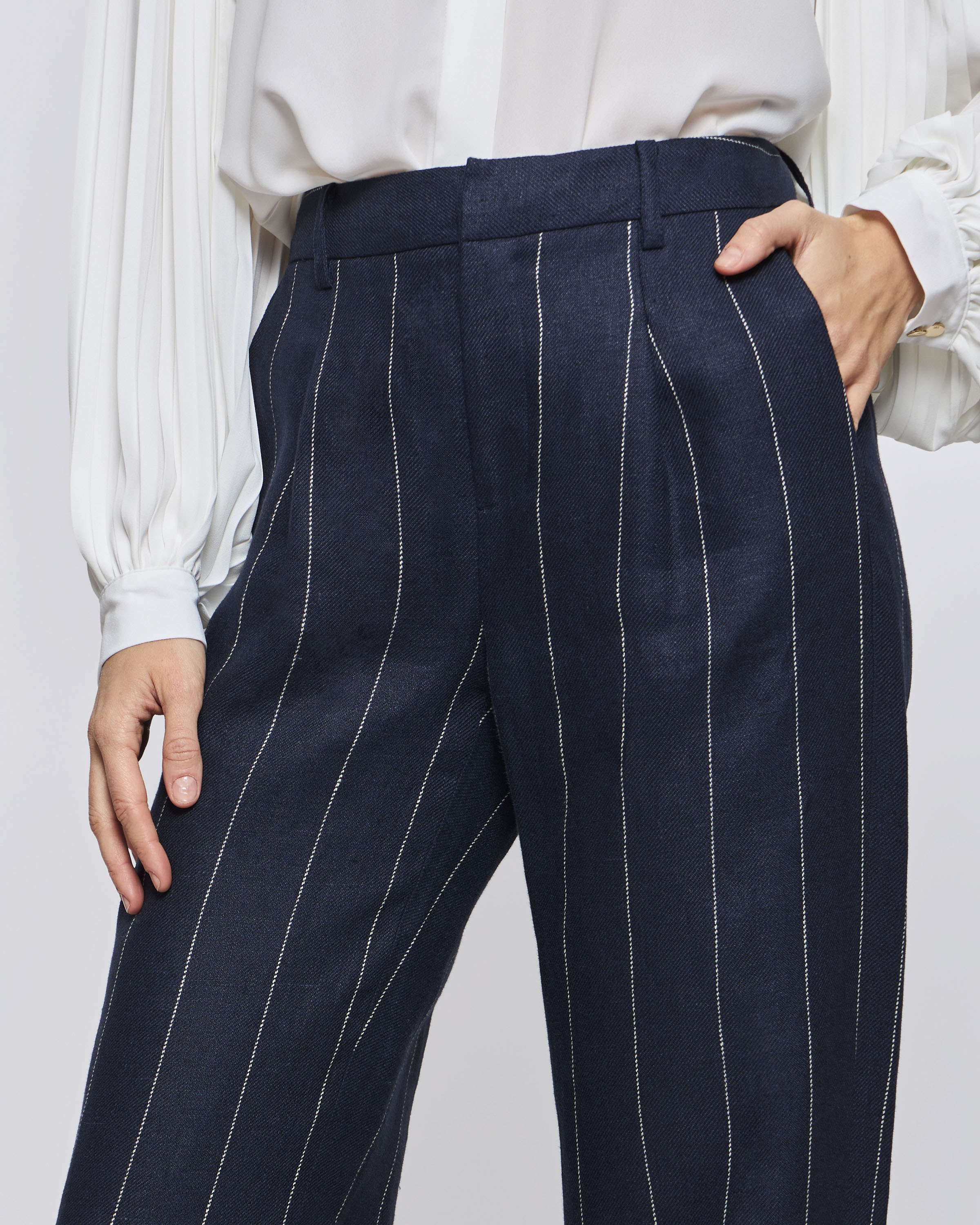 Pantalón Ancho Pinzas Rayas Ancha Azul