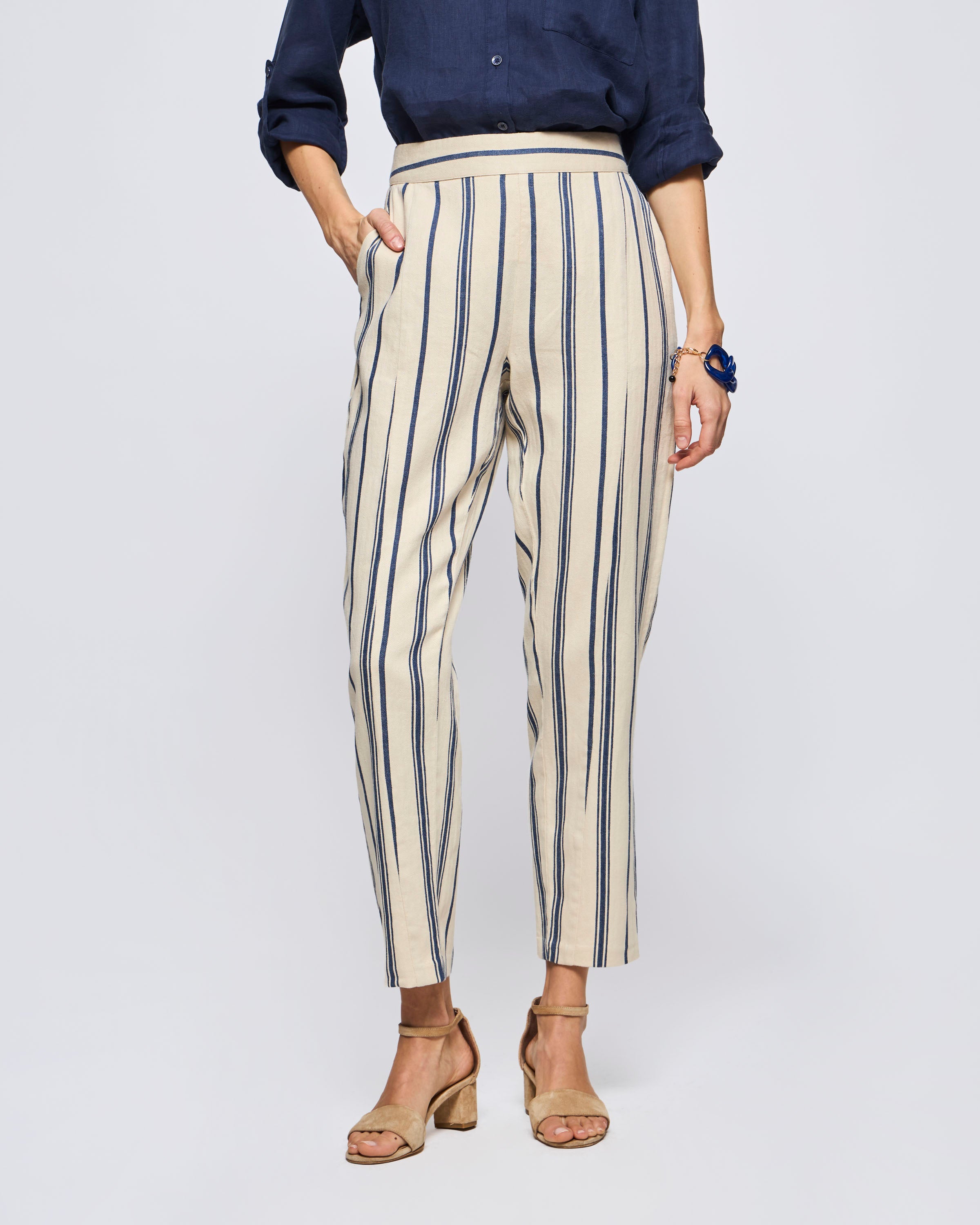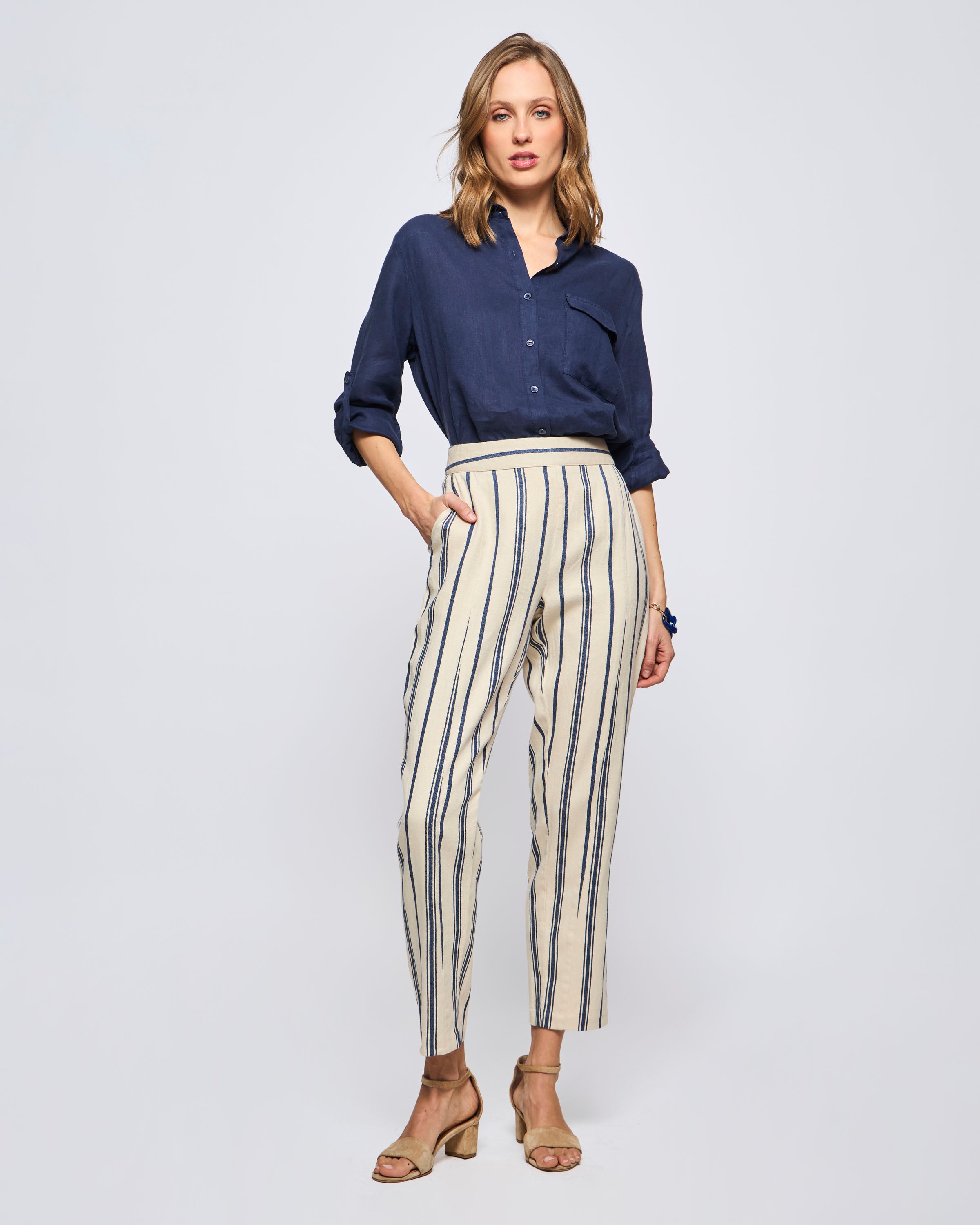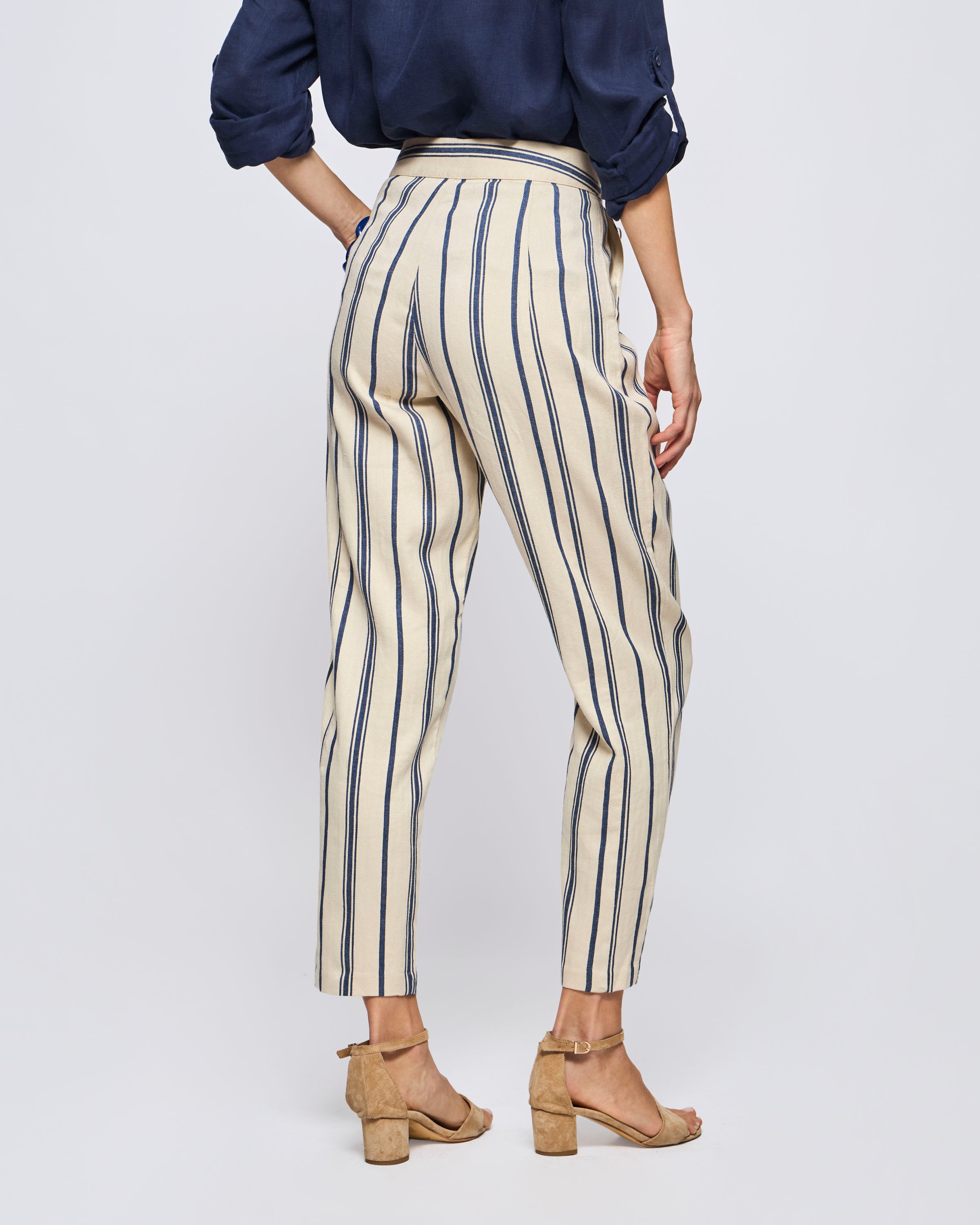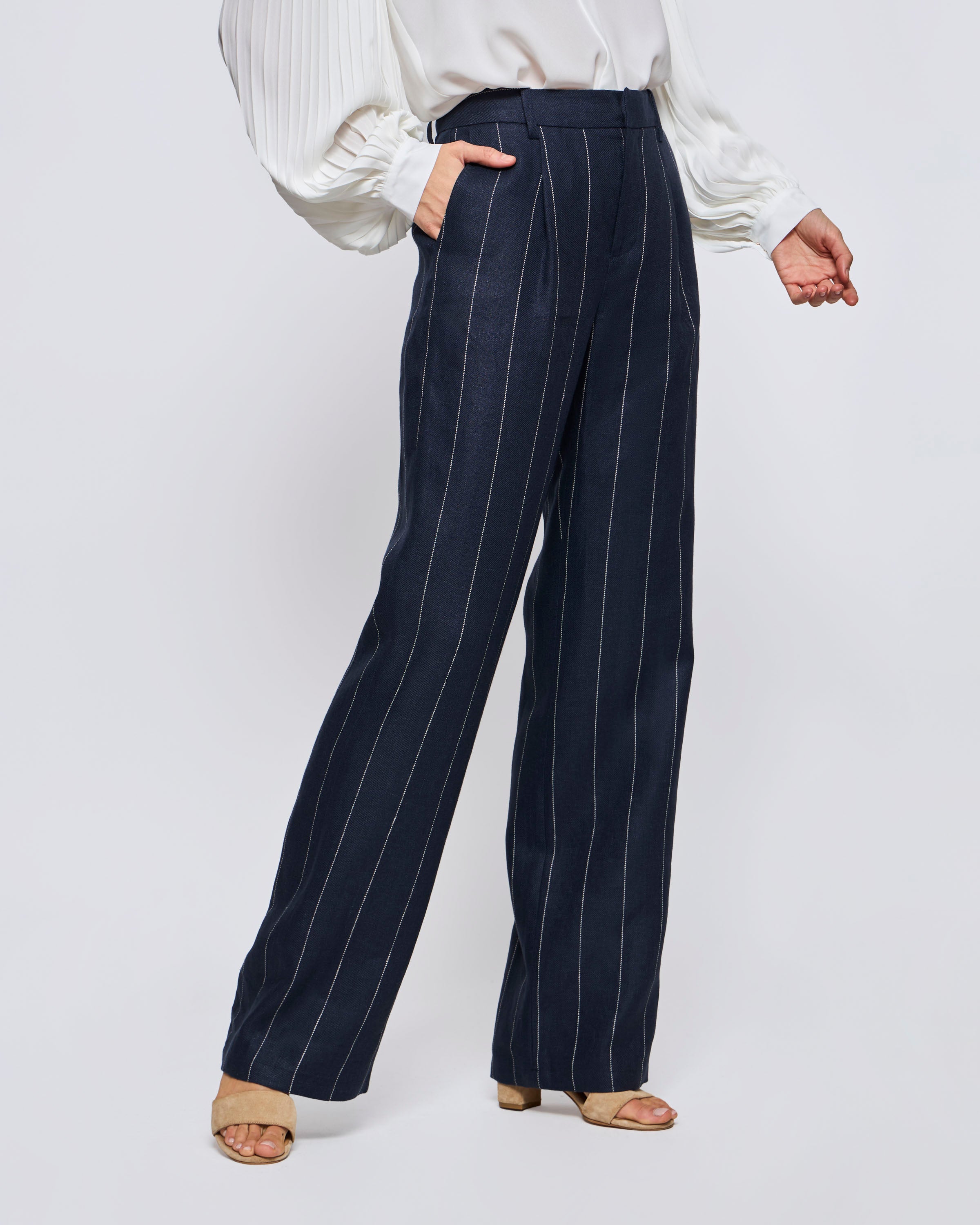Pantalón Ancho Pinzas Rayas Ancha Azul