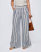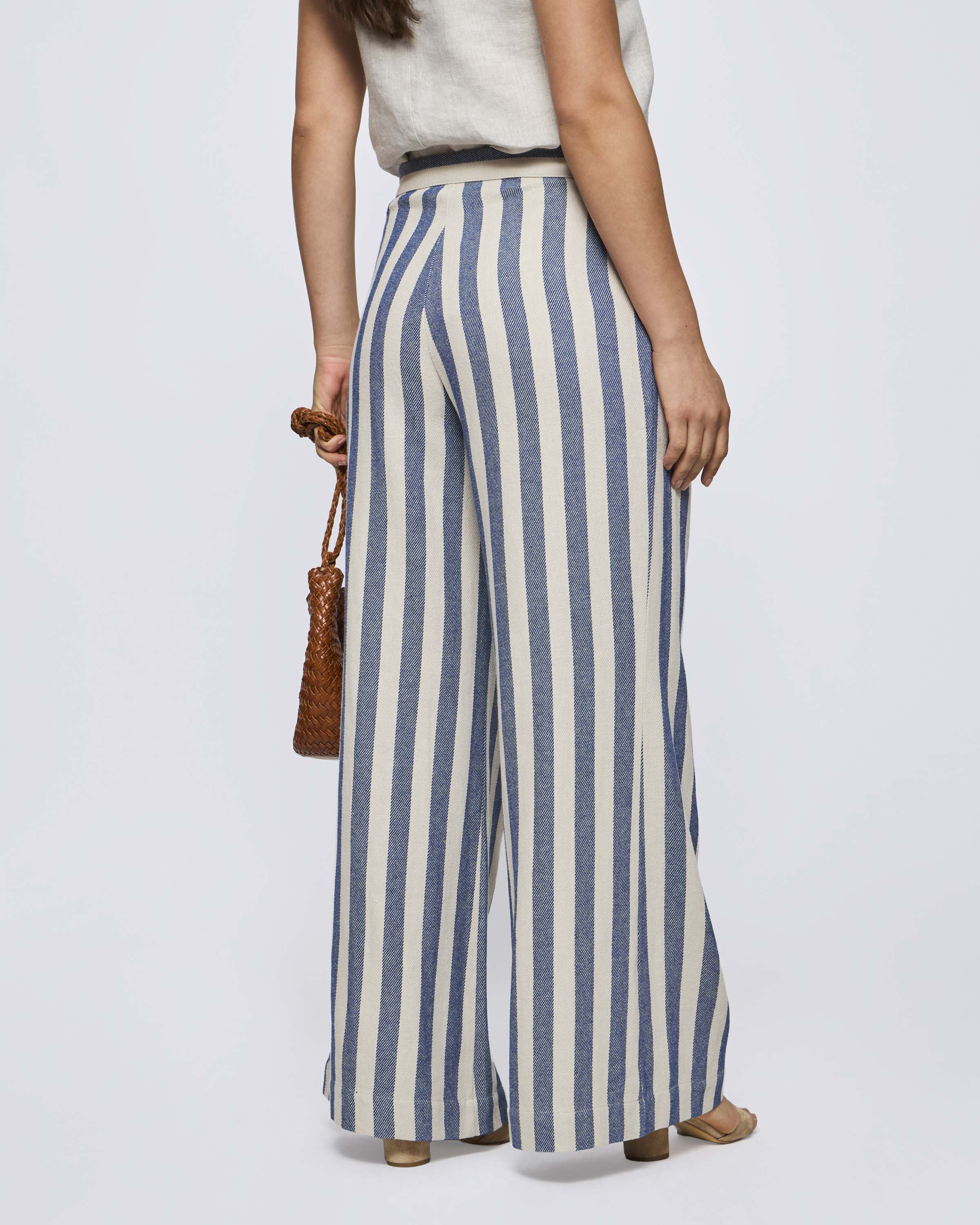 Pantalón Ancho Pinzas Rayas Ancha Azul